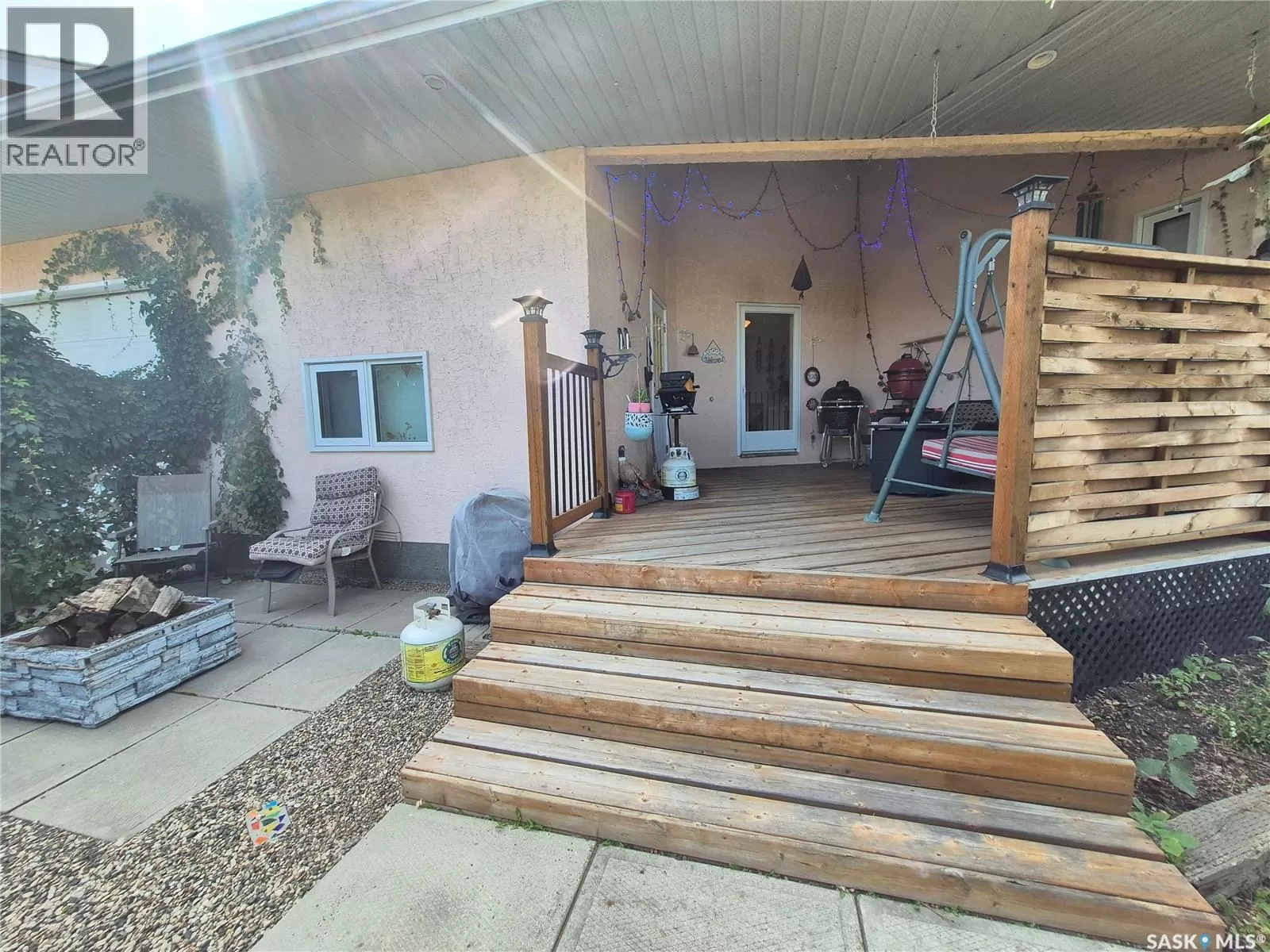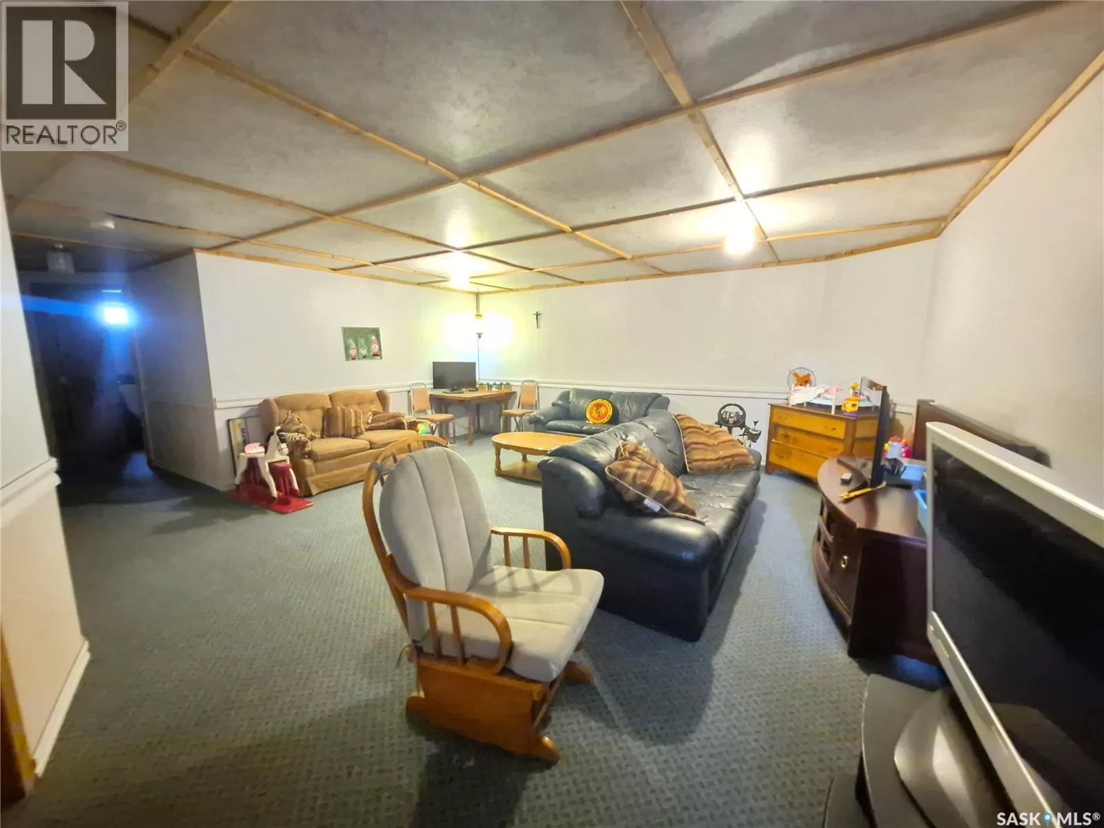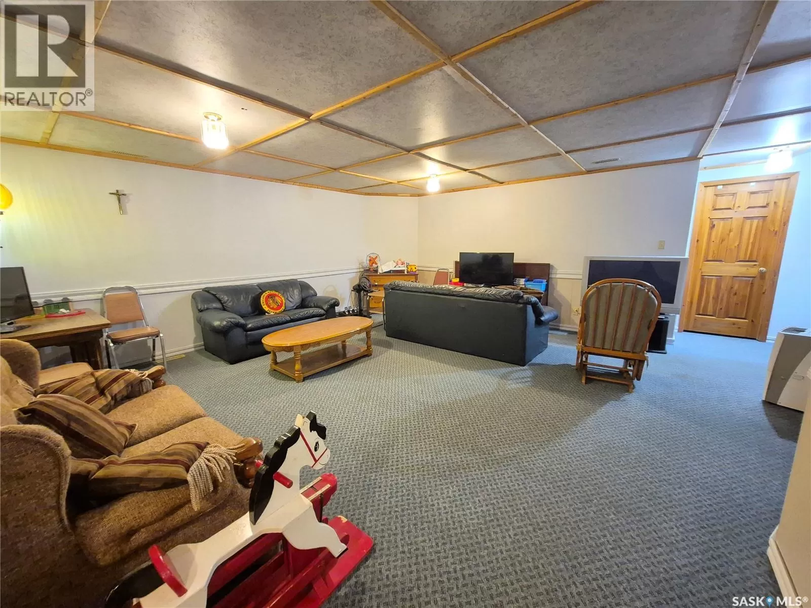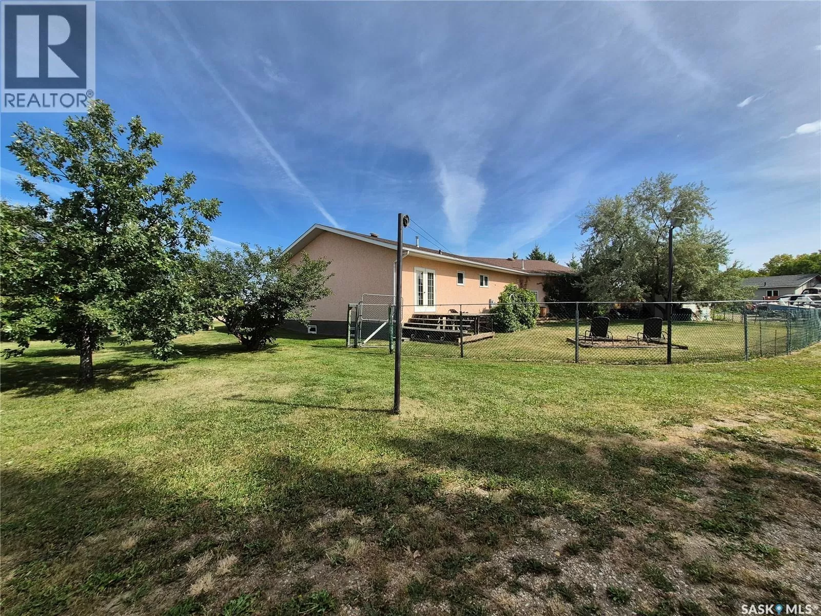 Welcome to this spacious 1,312 sqare foot family home in Midale, situated on a large corner lot with plenty of charm and functionality. Offering 4 bedrooms and 3 bathrooms, this home has room for everyone, plus a fully finished basement doubling the living space. The main floor features vaulted ceilings in the living room, creating an open and inviting atmosphere. The kitchen is a dream with an abundance of cupboards, counter space, and a sit-up breakfast bar, while the dedicated dining room is perfect for family meals or entertaining. The bright living areas flow nicely throughout, making this home warm and welcoming. The bedrooms are generous in size, with one featuring a unique loft that kids will love as a play or sleep spaceâor it could double as extra storage. The bathrooms are large and thoughtfully designed for family living. Currently, the attached garage has been converted into a spacious family room but can easily be returned to garage use if desired, as the garage door remains in place. Outdoor spaces are just as impressive, with a private covered front deck, back patio, fenced backyard, and beautifully landscaped garden space surrounded by mature trees and shrubs, ideal for relaxing or entertaining. This home combines practicality with character, making it an excellent choice for families looking for space, comfort, and a great community. (id:27476)