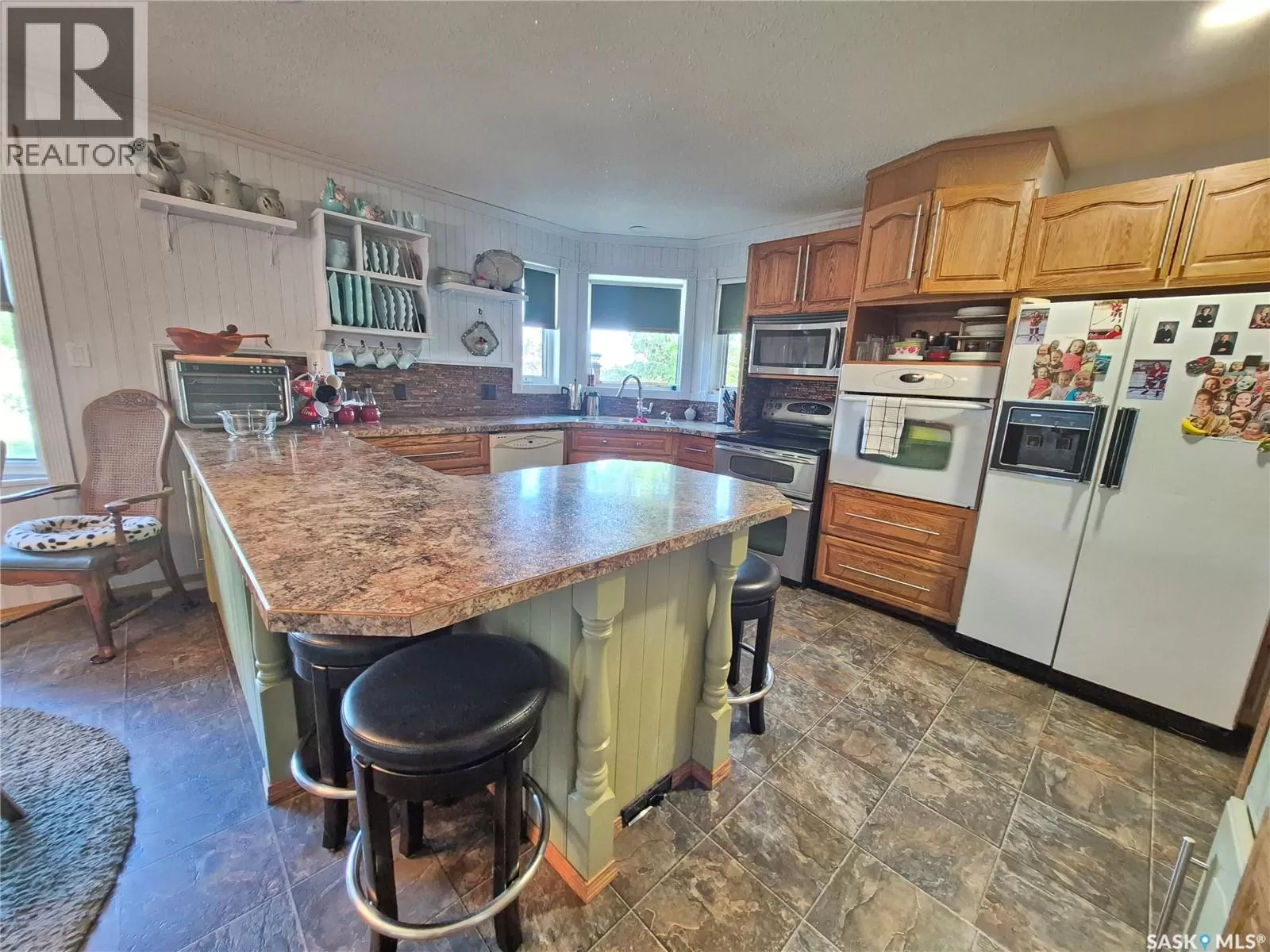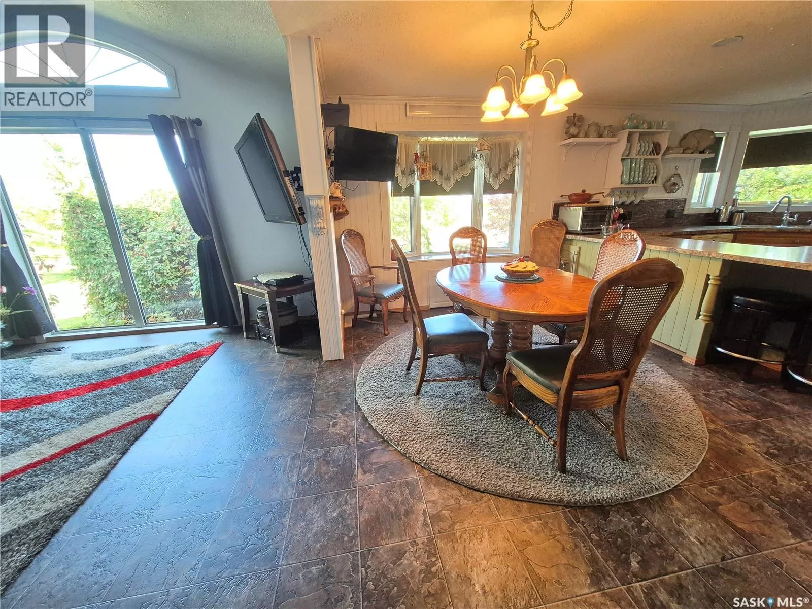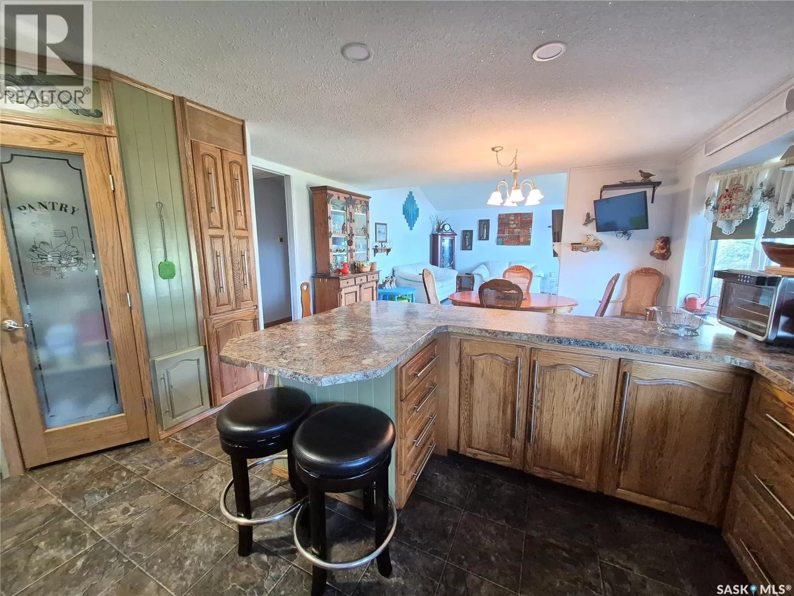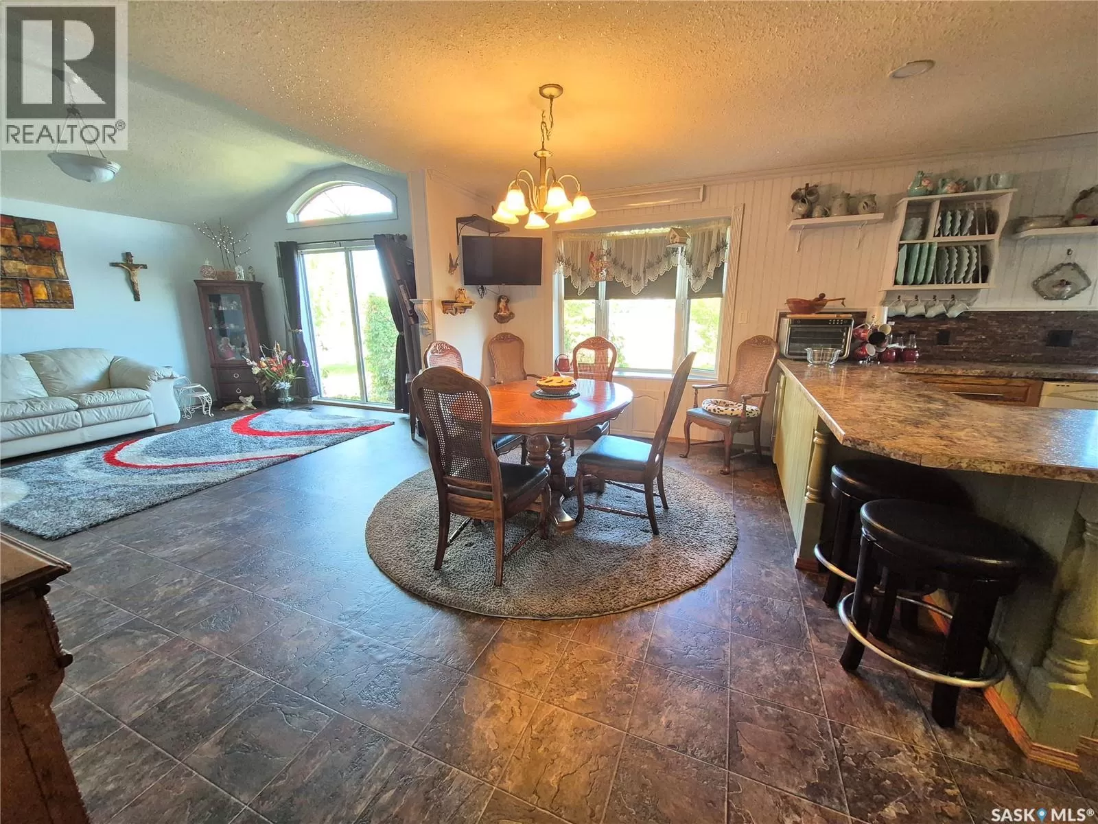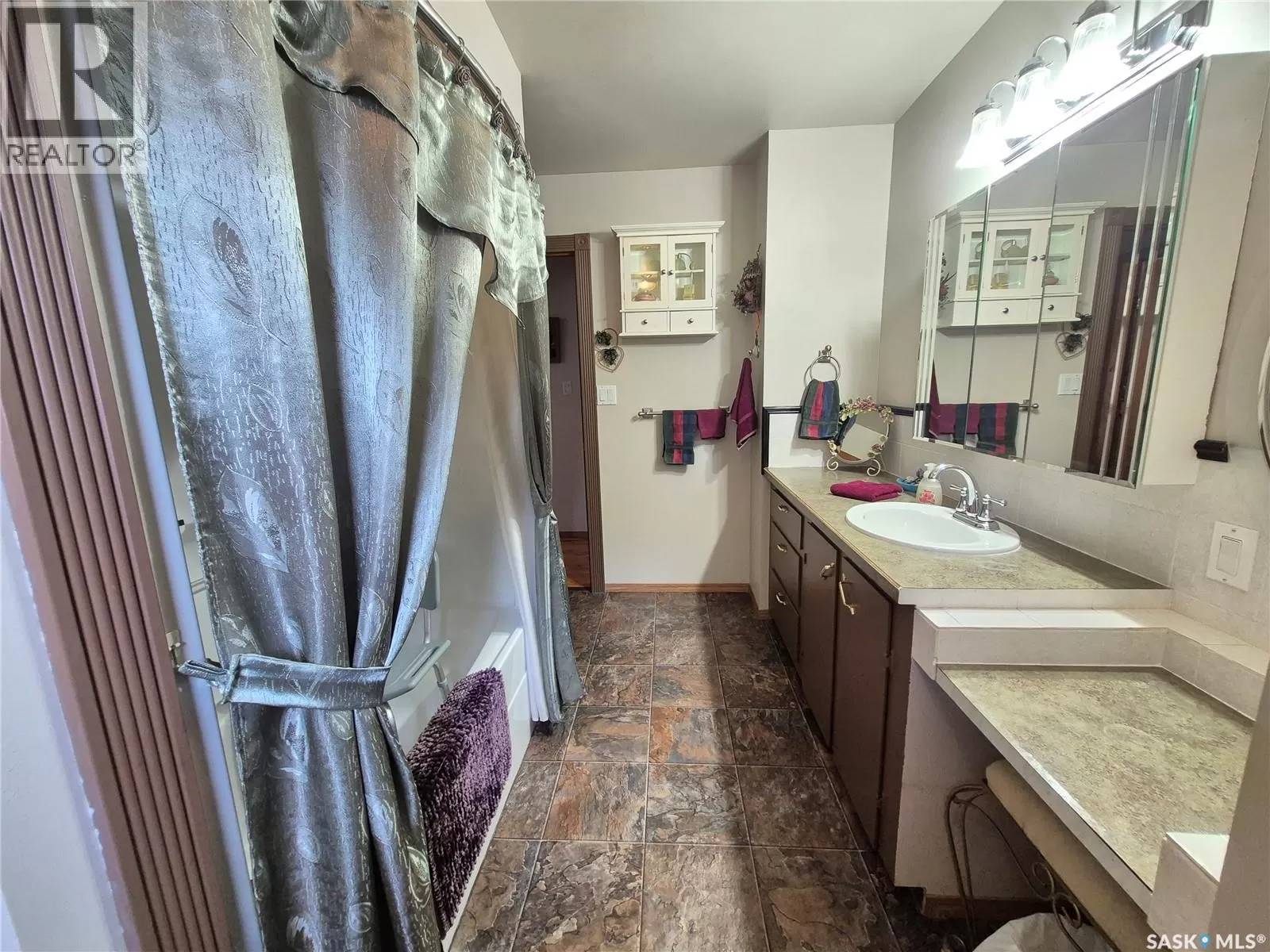 Welcome to this spacious 1,312 sqare foot family home in Midale, situated on a large corner lot with plenty of charm and functionality. Offering 4 bedrooms and 3 bathrooms, this home has room for everyone, plus a fully finished basement doubling the living space. The main floor features vaulted ceilings in the living room, creating an open and inviting atmosphere. The kitchen is a dream with an abundance of cupboards, counter space, and a sit-up breakfast bar, while the dedicated dining room is perfect for family meals or entertaining. The bright living areas flow nicely throughout, making this home warm and welcoming. The bedrooms are generous in size, with one featuring a unique loft that kids will love as a play or sleep spaceâor it could double as extra storage. The bathrooms are large and thoughtfully designed for family living. Currently, the attached garage has been converted into a spacious family room but can easily be returned to garage use if desired, as the garage door remains in place. Outdoor spaces are just as impressive, with a private covered front deck, back patio, fenced backyard, and beautifully landscaped garden space surrounded by mature trees and shrubs, ideal for relaxing or entertaining. This home combines practicality with character, making it an excellent choice for families looking for space, comfort, and a great community. (id:27476)