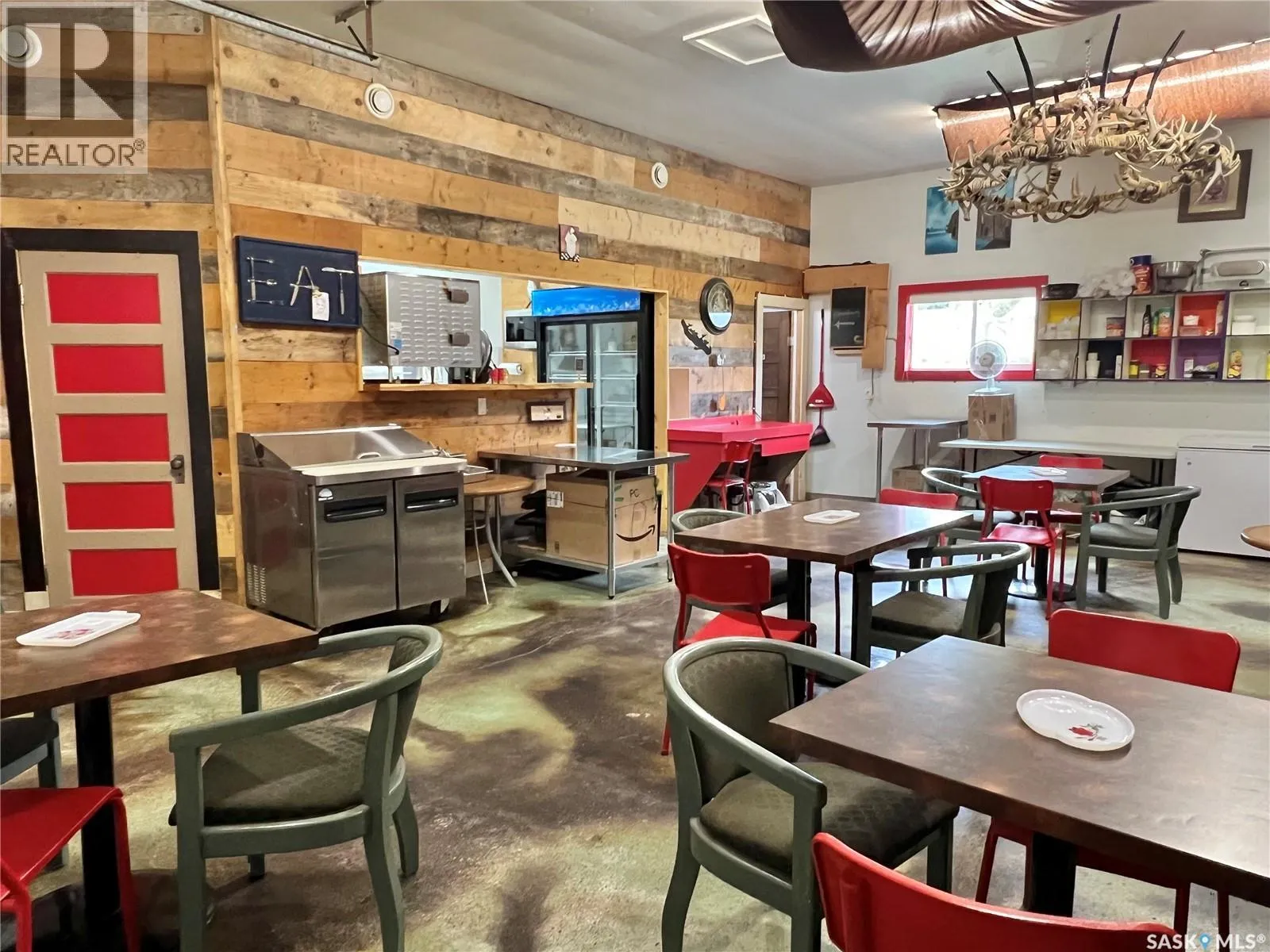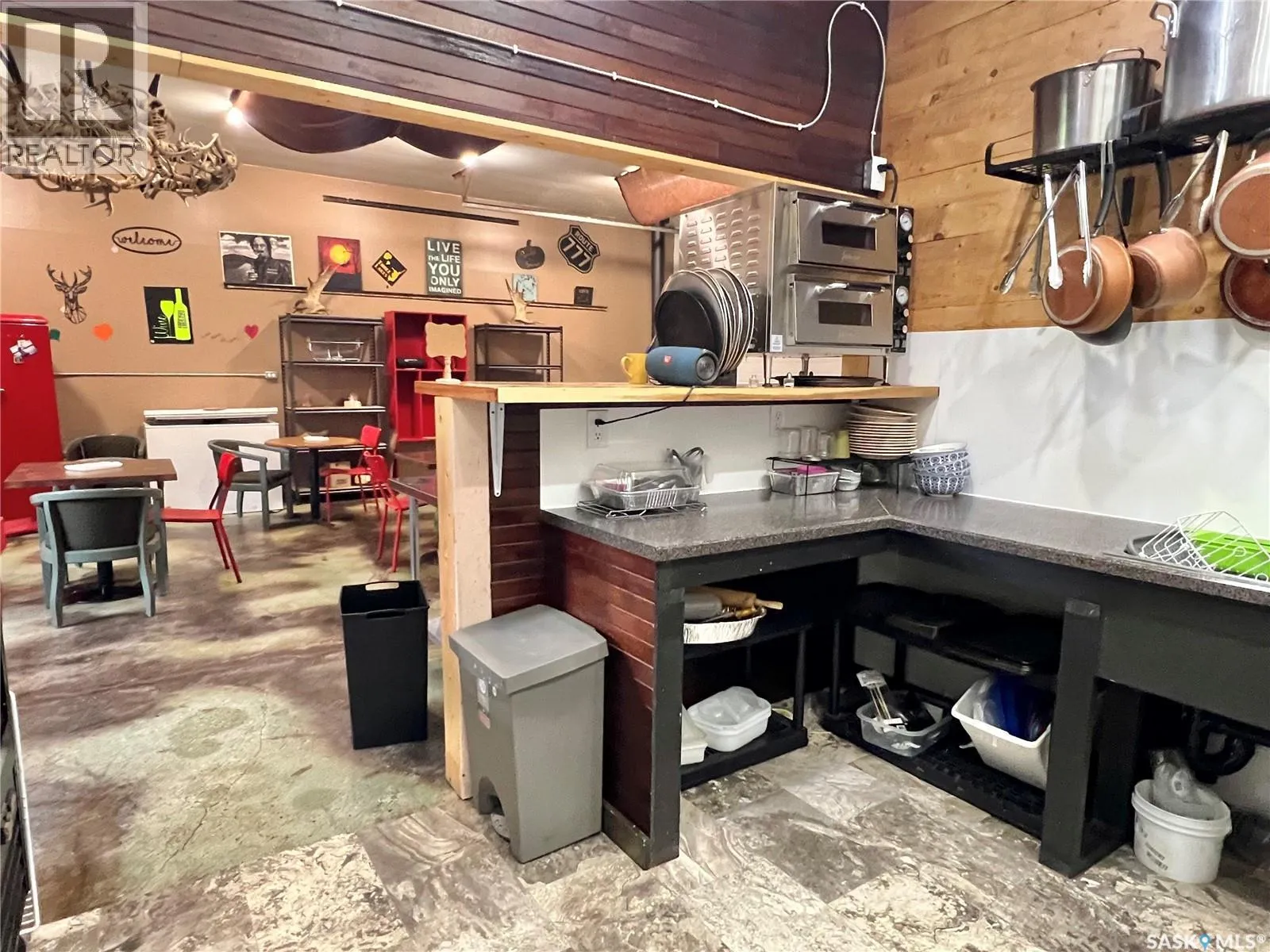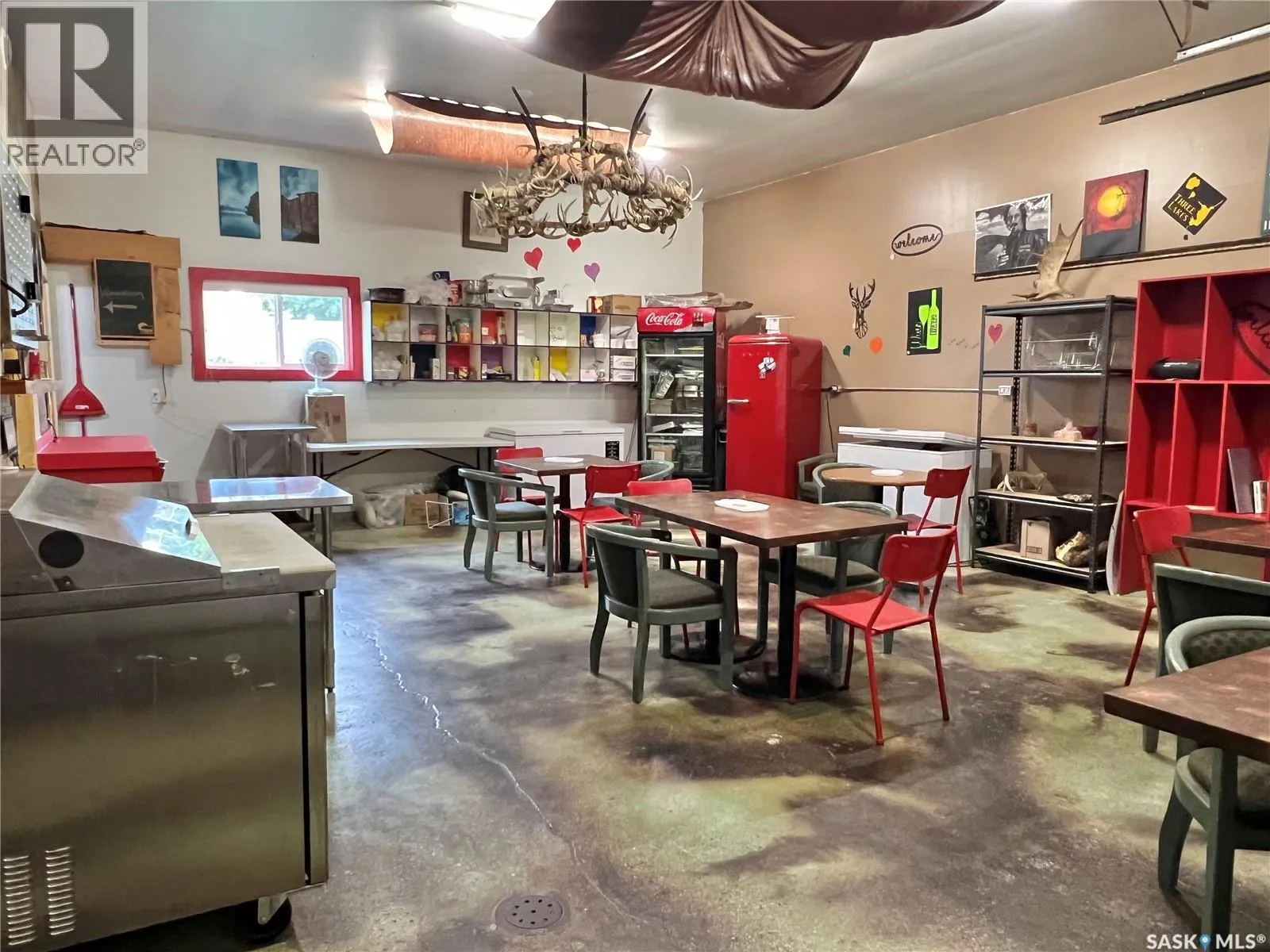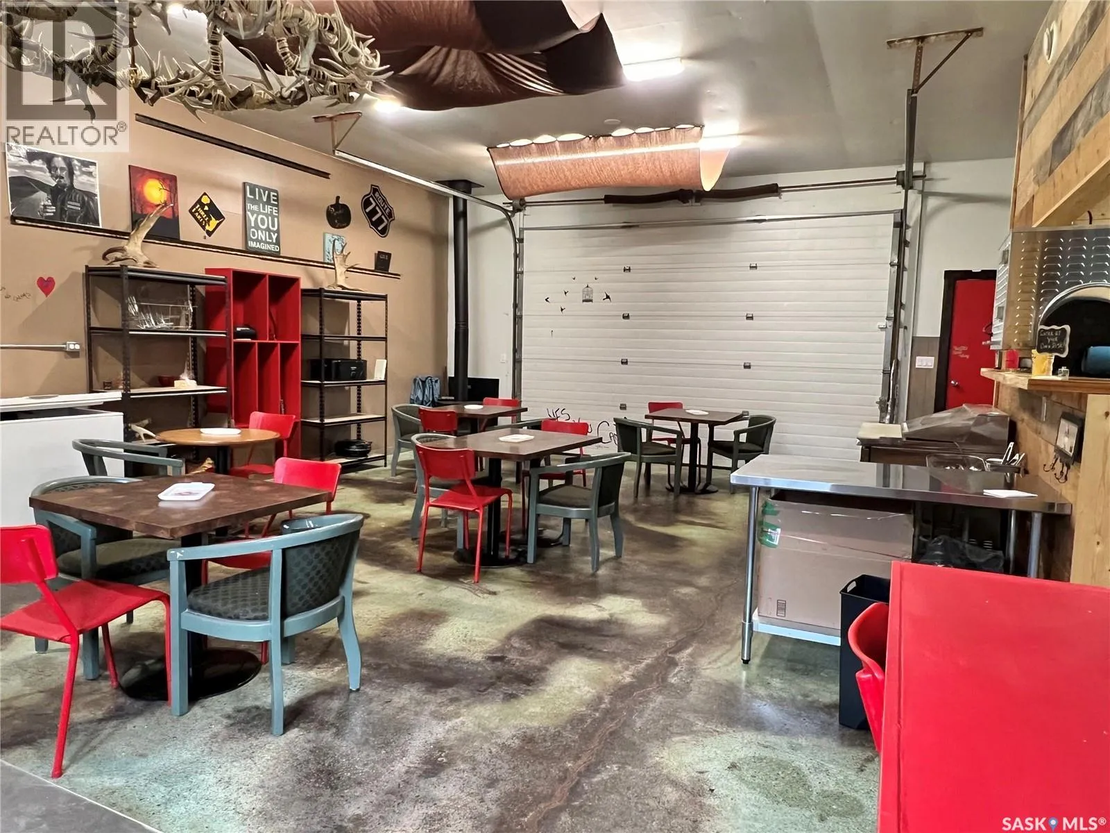 A great opportunity in Middle Lake, Saskatchewan adjacent to the beautiful Lucien Lake Regional park! This area is known for a combined farming and lake life environment. Which creates an attraction to utilize for a business in this supportive community! This building was currently being used as a bistro/pizza place with separate retail space. There is so many options available to utilize this space such as catering, renting for small functions, office space and so much more! The large sitting area in bistro provides a rustic experience with an overhead garage door that open to screen window to allow the outside, in! The kitchen space is setup nicely. There is a full bath in good condition. The retail space is turn key and ready to be utilized with your ideas! The land and buildings are included in sale with most attachments and fixtures, but equipment would be negotiable. *Antler chandelier is not included* (id:27476)