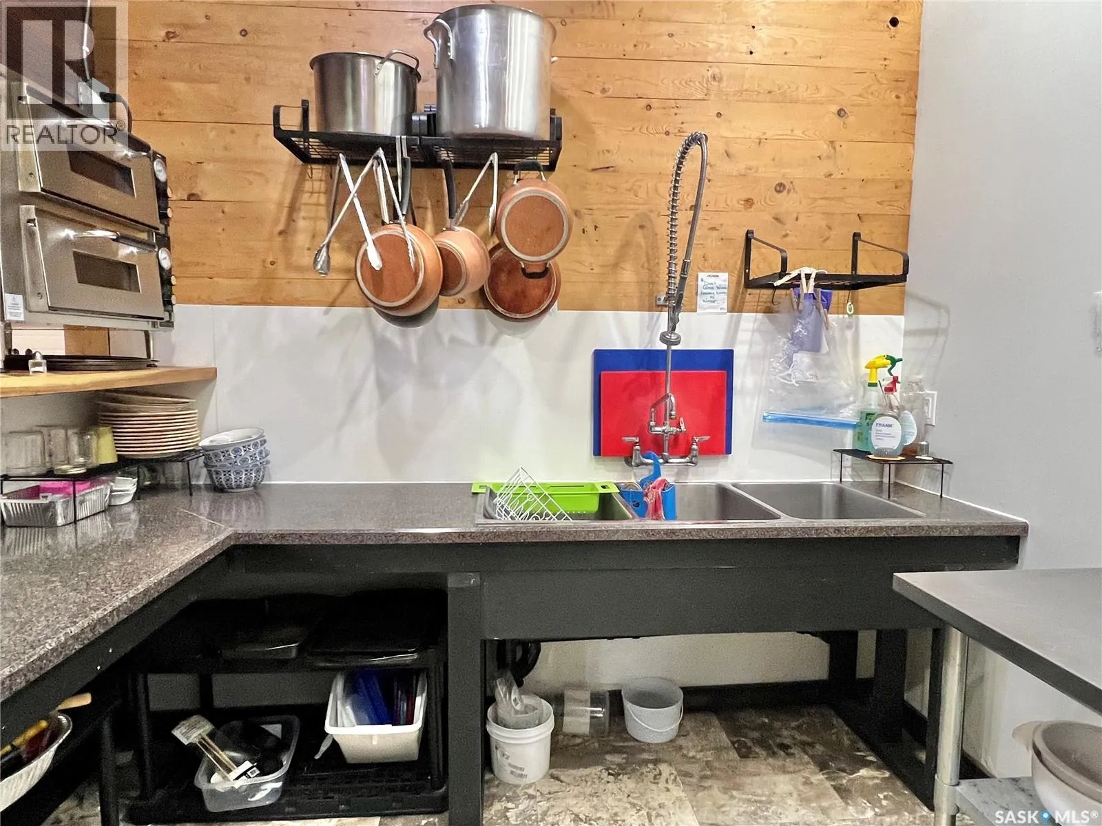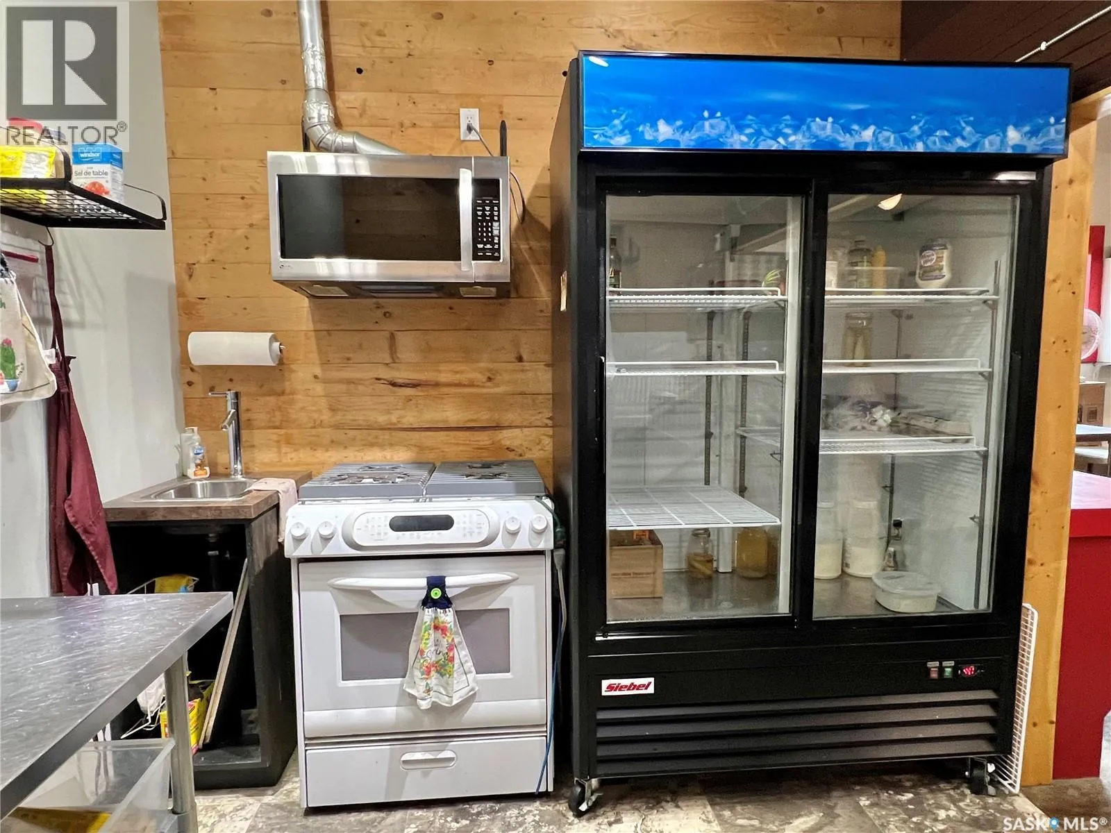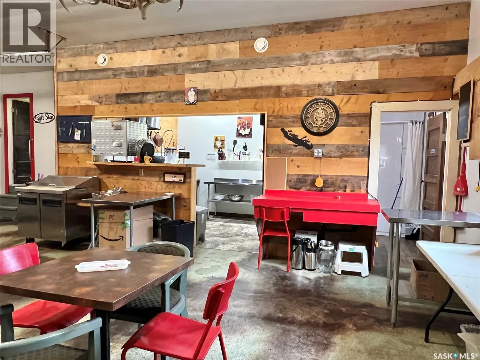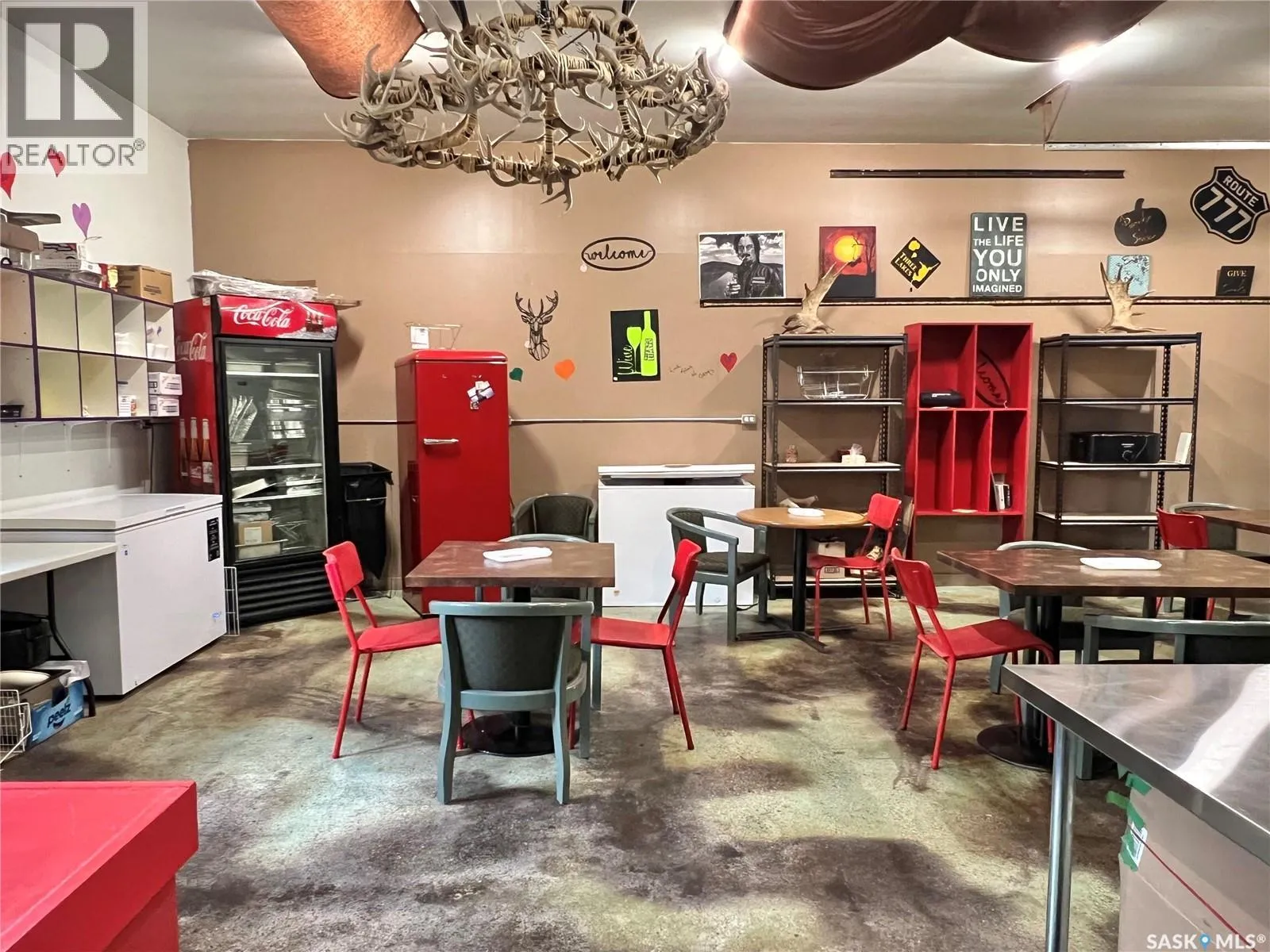 A great opportunity in Middle Lake, Saskatchewan adjacent to the beautiful Lucien Lake Regional park! This area is known for a combined farming and lake life environment. Which creates an attraction to utilize for a business in this supportive community! This building was currently being used as a bistro/pizza place with separate retail space. There is so many options available to utilize this space such as catering, renting for small functions, office space and so much more! The large sitting area in bistro provides a rustic experience with an overhead garage door that open to screen window to allow the outside, in! The kitchen space is setup nicely. There is a full bath in good condition. The retail space is turn key and ready to be utilized with your ideas! The land and buildings are included in sale with most attachments and fixtures, but equipment would be negotiable. *Antler chandelier is not included* (id:27476)