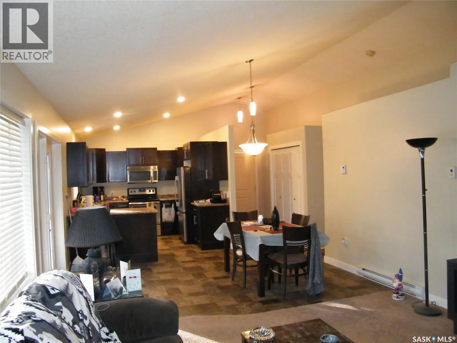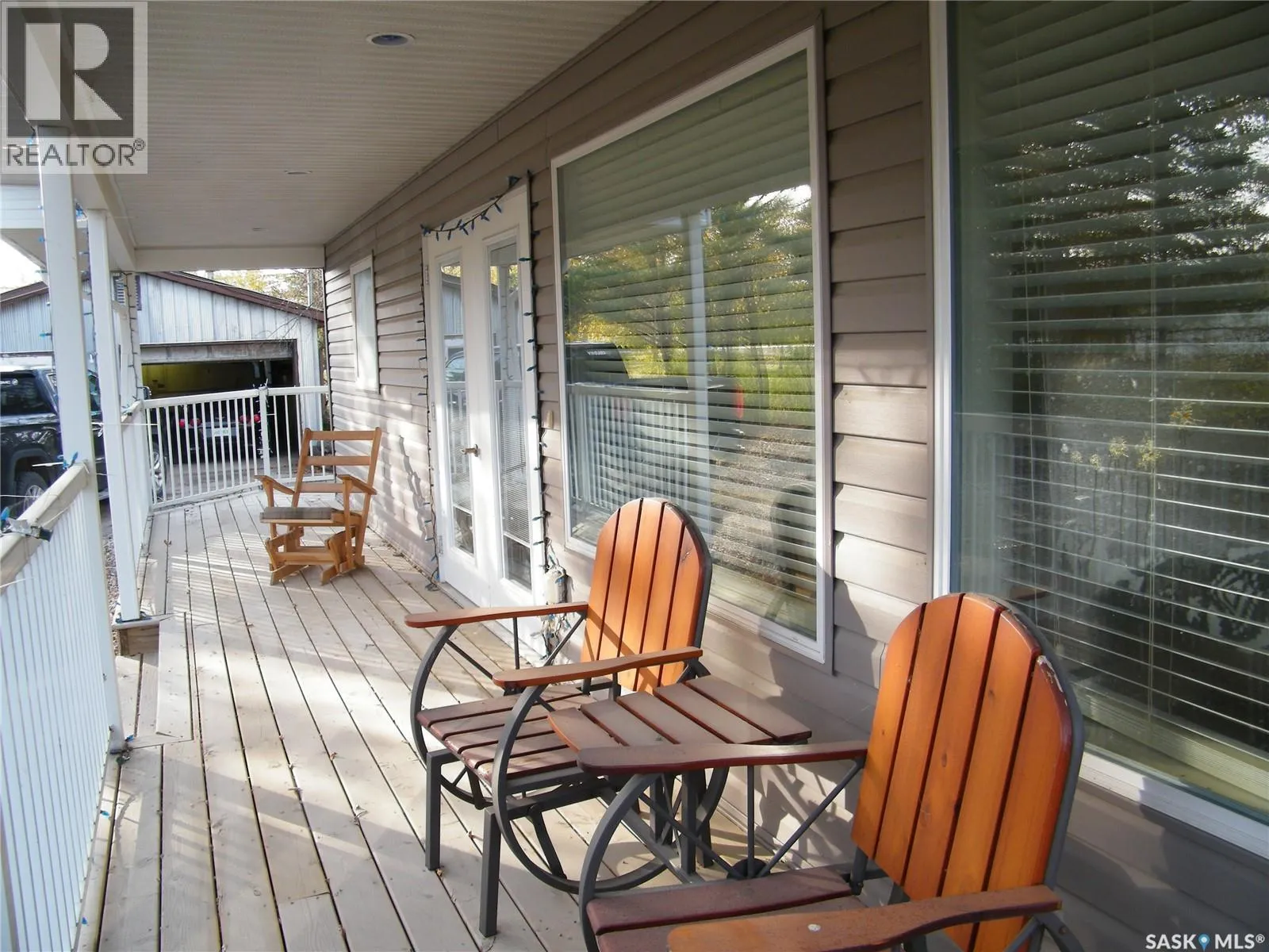 Located on Centre Street in Middle Lake, Saskatchewan this 2014 built approximate 1008 square foot bungalow on a crawl space features 2 bedrooms, 1 bath and an open concept kitchen, dining and living room with vaulted ceiling and wrap around covered verandah. The house has a 200 amp panel. This home is located on a 74 x 141 foot lot. There is ample yard space and also includes an oversized single garage that has its own panel box. The home is located a short walk to the gates of Lucien Lake Regional Park, Bethany Pioneer Village or a quick walk to the school or business core. Middle Lake features RO water and is located just off highway 20 - a short commute to the City of Humboldt. Please call your agent to arrange a showing today. All measurements to be verified by the Buyers. (id:27476)