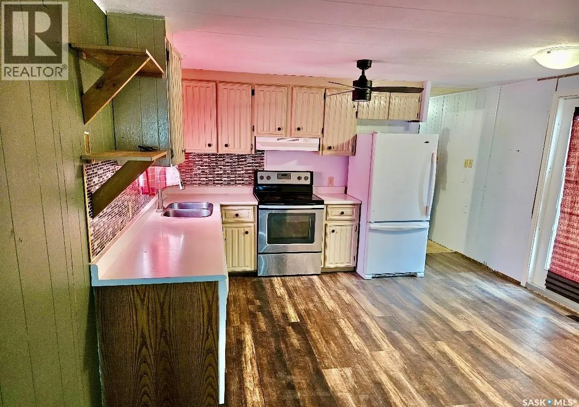 Welcome to 305 2nd Street W in the quiet town of Milden! Milden is a safe, quiet, family filled community that is a short drive to Outlook and Rosetown, is the home of The Milden Roadhouse and has bus pickup for your children to attend school in Rosetown or Dinsmore. The property is on a massive owned lot and features a big heated and insulated double detached garage, multiple garden plots, cherry & apple trees and a treehouse. This bright, spacious home features a large entry way, tons of storage including a cold storage cellar, laundry, a full four piece bathroom with storage, two large bedrooms, kitchen and dining area with all appliances included, a huge living room and a sunroom or extra storage room. You will be pleased to find there are lots of updates such as the HE furnace, windows in the front bay windows, fridge 2015, dishwasher 2014, insulated skirting around the trailer 2013, vinyl plank flooring in the kitchen and living room 2019, new paint in the living room and kitchen 2019, some new treated wood supports under home, newer patio doors on to the 12x12 deck, lots of new light fixtures, water heater and electrical panel in 2021, added extra insulation and new carpet in the master bedroom, completely renovated second bedroom including insulation, complete bathroom Reno, new electrical mast and mostly all new plumbing throughout. Call today for your own private tour! (id:27476)