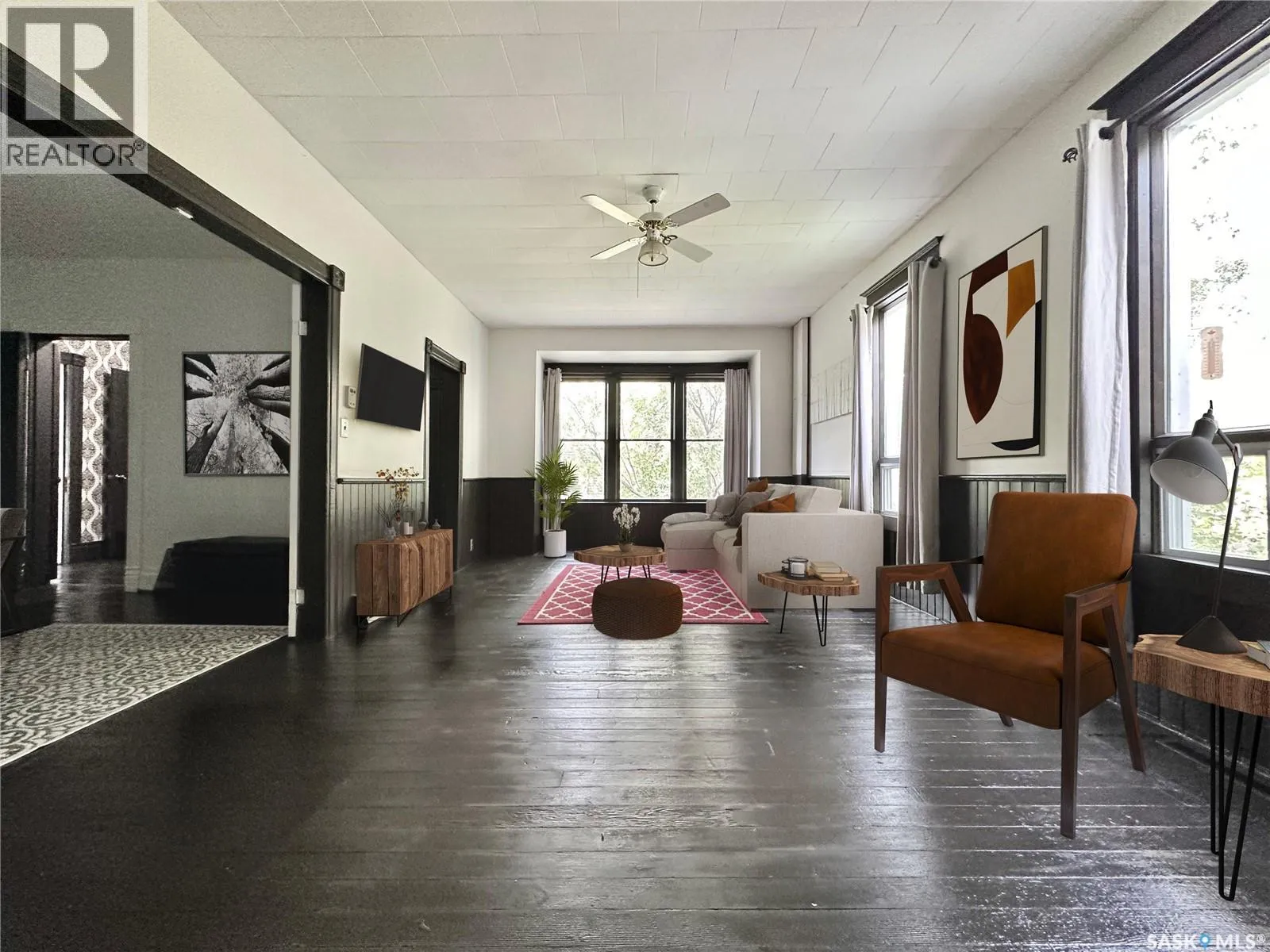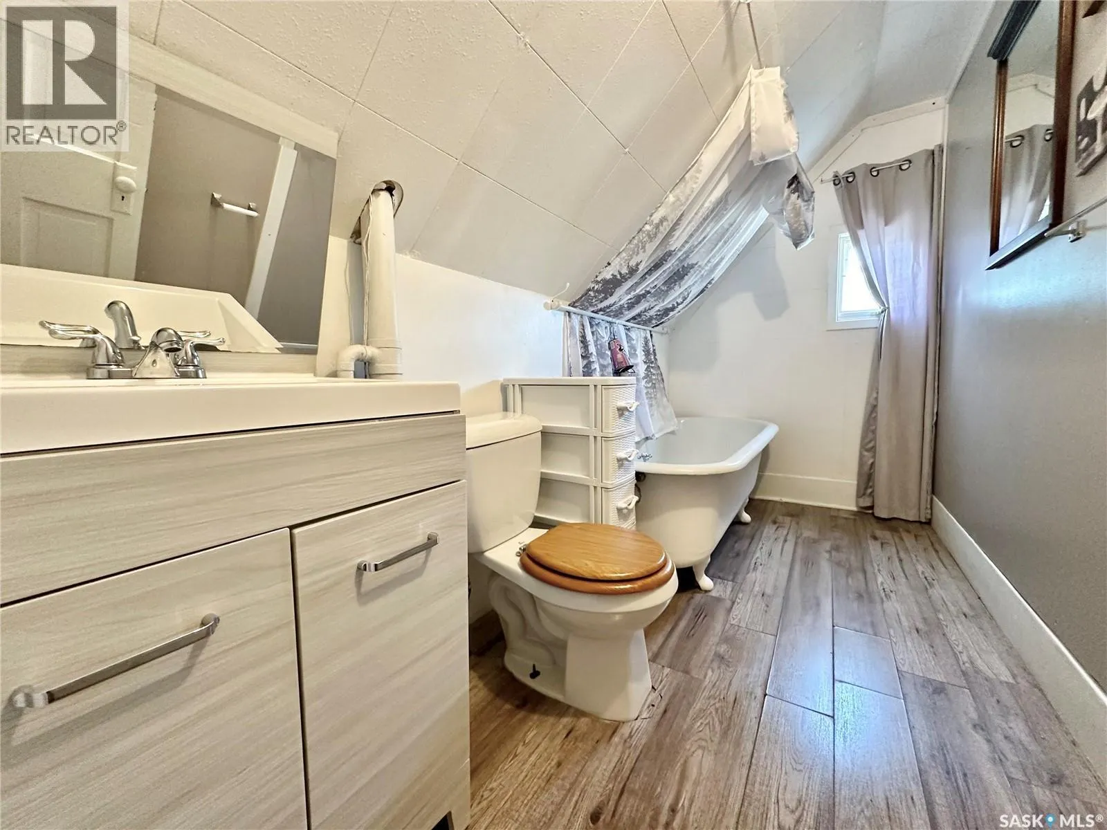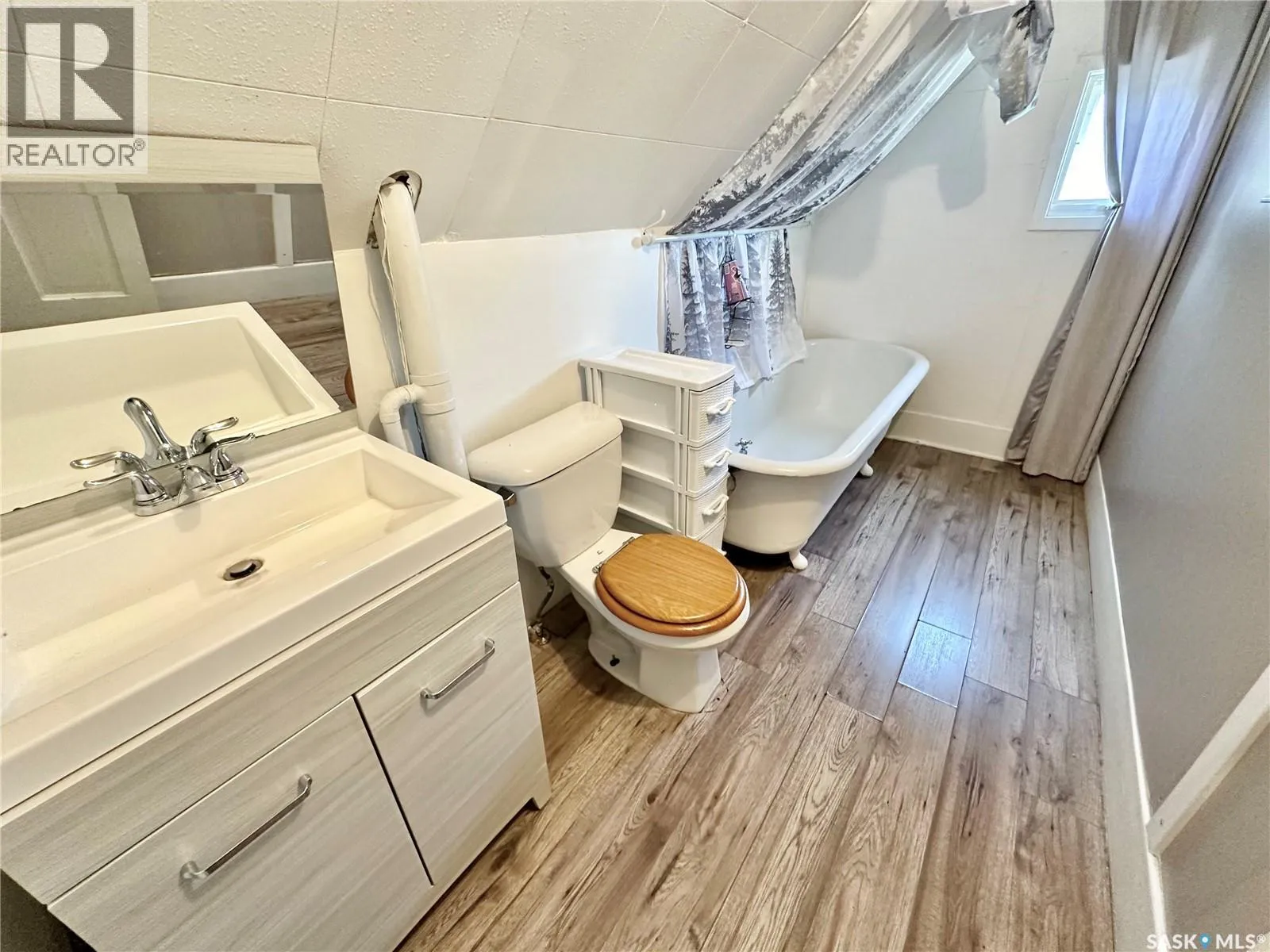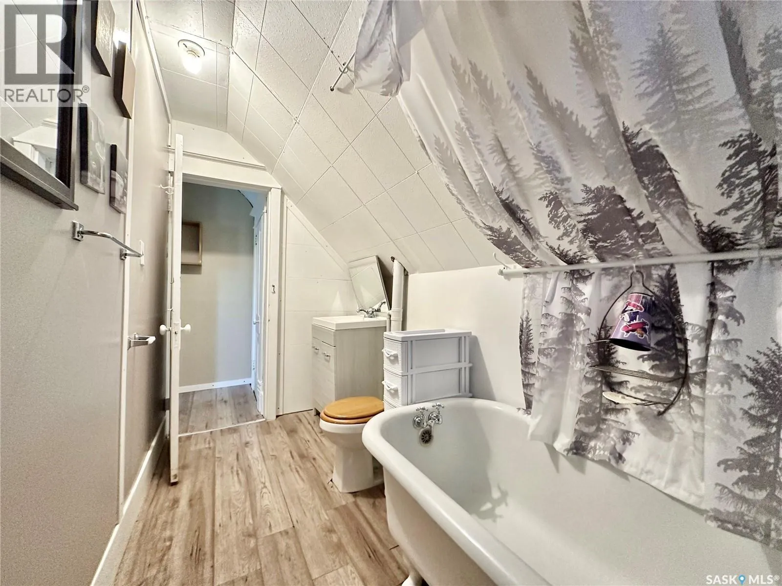 Welcome to 220 Souris located in the family oriented community of Milestone only 40 minutes from Regina on a well-maintained highway. This home is sitting on 2 lots and overlooks a green space. In town amenities include: schools K-12, daycare, preschool, skating rink, curling rink, swimming pool, groceries, gas and more. Year-round childrenâs activities include sports and swimming lessons. Enter into the enclosed verandah that allows for outdoor gear or additional storage. As soon as you step into the front entry you canât help but notice the character shining through with original banister and tall ceilings. Entry leads you to the main living area with hardwood floors and tall windows on each wall that flood the room with natural light. Huge living room has space for the entire family. Double doors separate the formal dining room from the living room. Kitchen offers lots of cupboard space and an adjoining bonus room. Bonus room can be family only eating area, convert to a walk-in pantry with a butlerâs pantry or maybe a main floor laundry room. All appliances will remain. Powder room conveniently located on main level. Direct entry to the garage is in the back landing. Gas heater in garage once worked but needs fixed. Back alley access to your driveway and entrance to the garage. At the front of the house there is a bonus room for a home office, home gym, playroom, sewing/craft room or whatever your family needs. Upper level continues with hardwood flooring and has three good-sized bedrooms, a 3-piece bathroom that has an updated vanity and clawfoot tub. Shower and vanity in separate room so everyone can get ready at same time. Lower level is unfinished. Enjoy the peacefulness of country living with added amenities and a strong sense of community. Electrical panel replaced 2 years ago and water heater only 2 years old as well. Shingles are updated. Formal dining room and the front bonus room were once used as bedrooms. (id:27476)