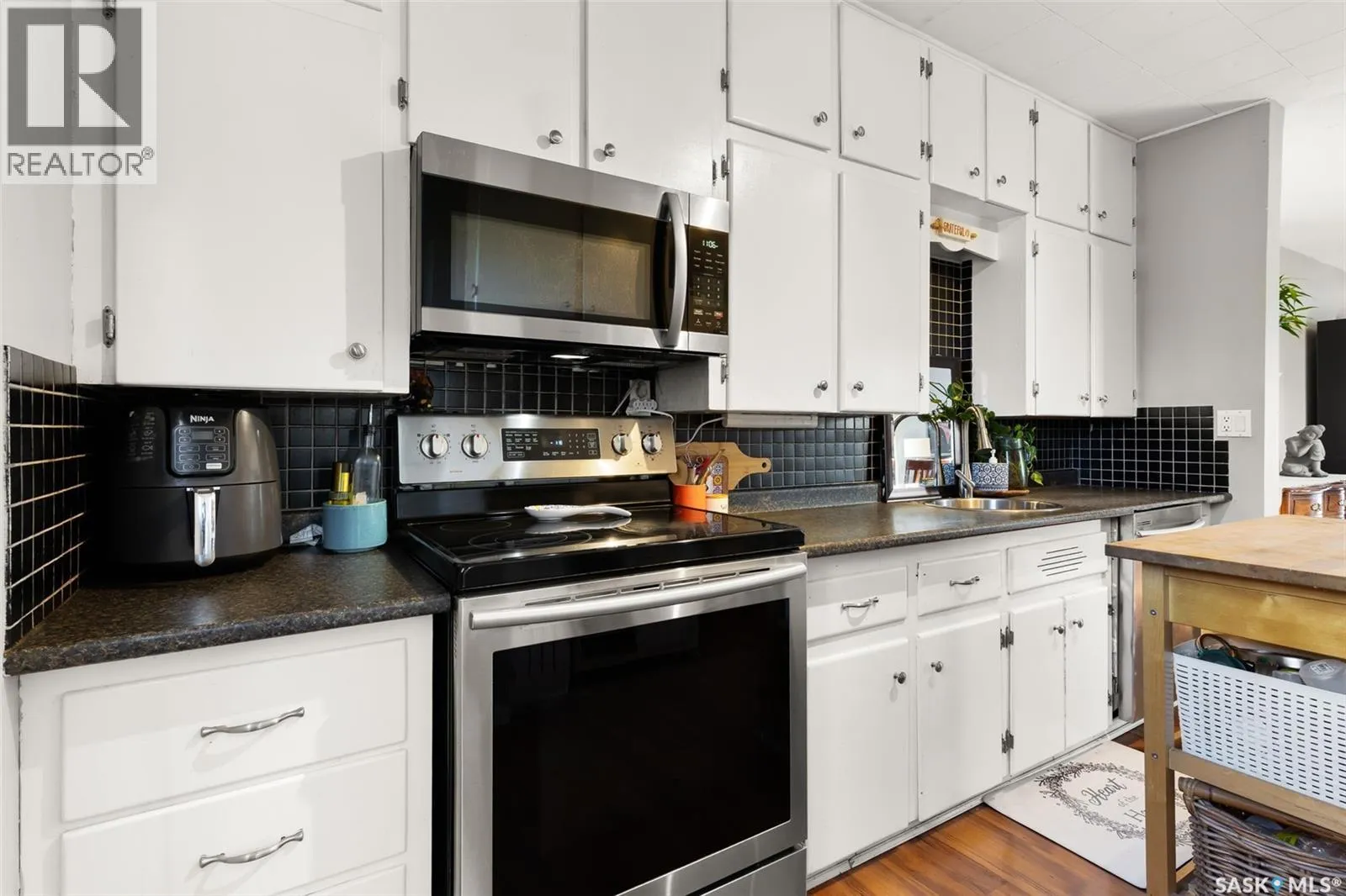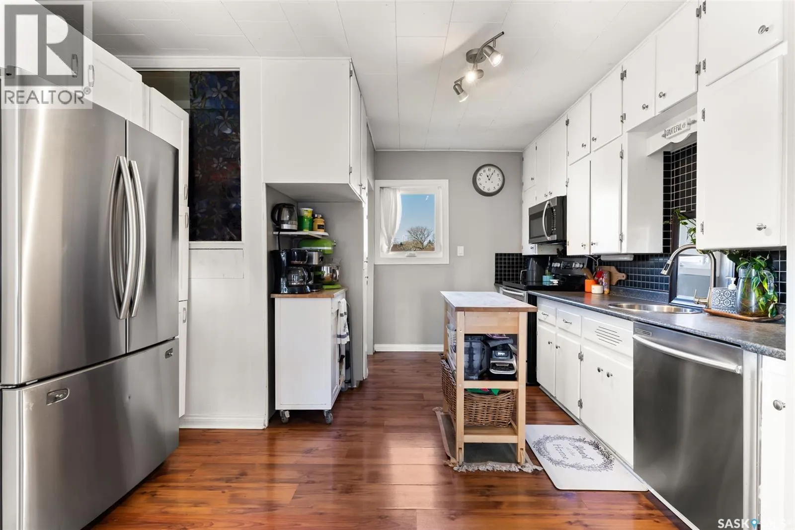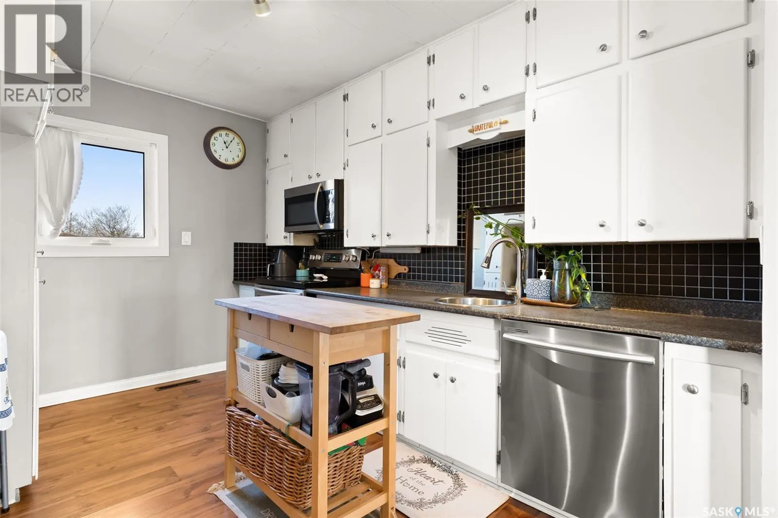 Welcome to 230 5th Street in the thriving community of Milestone - just a quick 30-minute commute to Regina and approximately 40 minutes to Weyburn. Enjoy small-town living with all the essential amenities, including K-12 schooling, grocery store, gas stations, restaurants, recreation facilities, and more. Originally built in 1955 with a second-floor addition in 1986, this spacious family home offers a versatile layout and great functionality. The second level features three bedrooms and a four-piece bathroom. Most windows throughout the home have been upgraded to PVC. The main floor provides excellent flow with an open-concept kitchen, dining room, and living room. The inviting living room offers French doors leading to the deck down to a patio where you can enjoy the fully fenced backyard. The kitchen includes stainless steel appliances, an over-the-range microwave, built-in dishwasher, and plenty of cabinet space. A large primary bedroom with walk-in closet is conveniently located on the main level, with a four-piece bathroom adjacent. A cozy den/nook off the main living space provides the perfect spot for a small office or reading corner. The basement is fully developed with a generous rec room, an additional bedroom, a three-piece bathroom, full laundry/storage room. A great flex space for hobbies, playroom, or home gym! Plenty of natural light throughout enhances the warm, welcoming feel of the home. Outside, the 50â x 140â (7,000 sq ft) lot features a fully fenced backyard and front driveway. The insulated single detached garage is connected to the home via the front foyer for added convenience. A unique and well-loved property in a wonderful community - perfect for families seeking comfort, space, and the charm of small-town Saskatchewan living. Come experience life in Milestone! (id:27476)