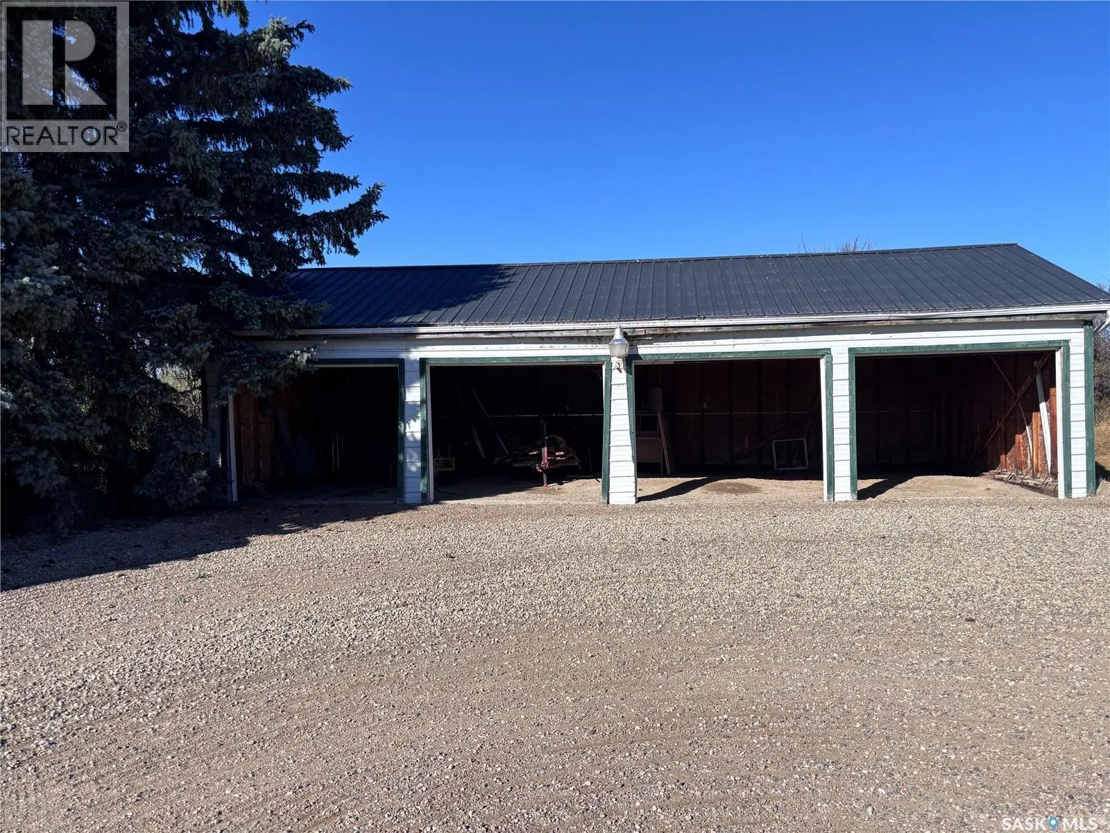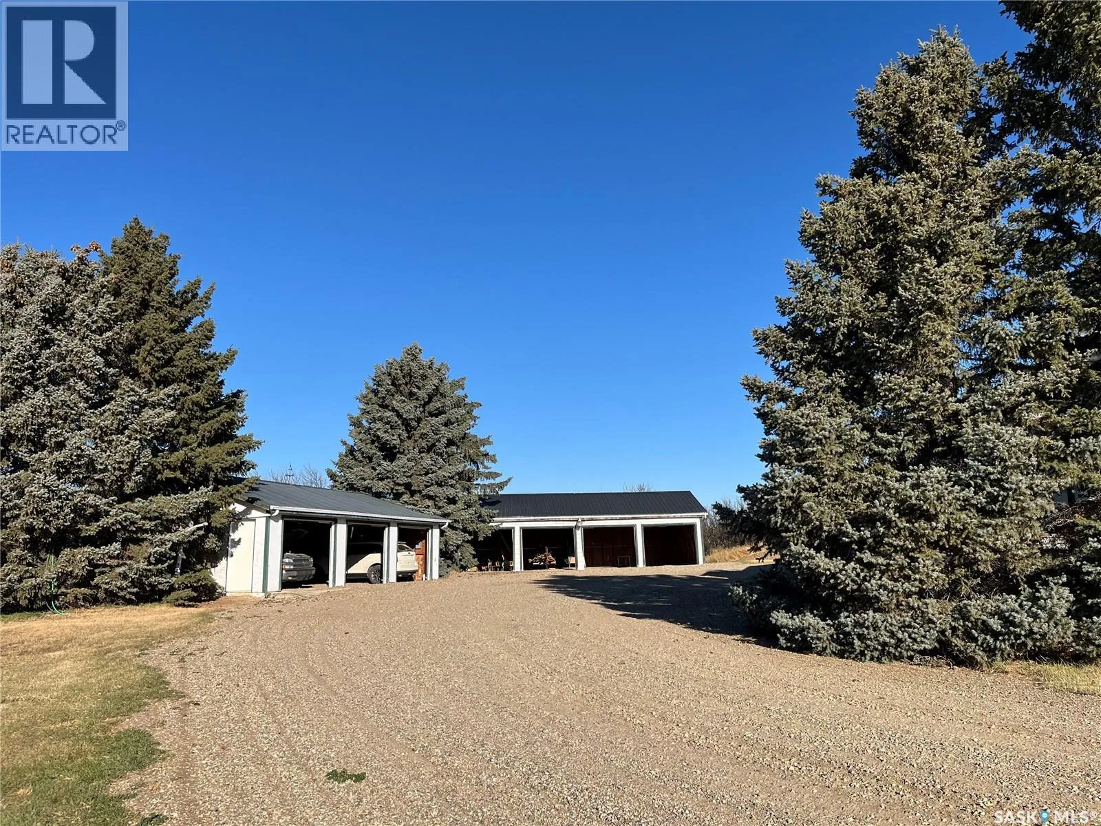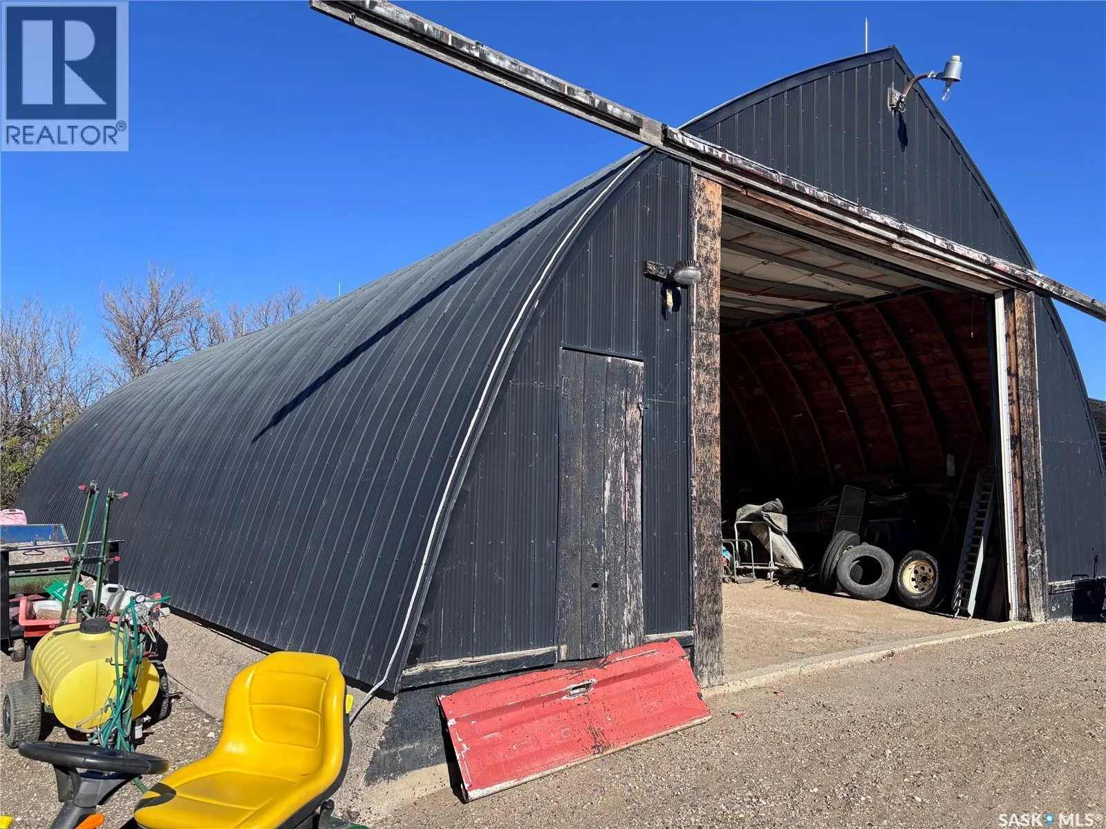 1.5 miles north of Shackleton, just 1.5 miles off of #32 Hwy Here is an acreage with options. The house is a 1954 build with 2 bedrooms, kitchen, living room and 4 pc. bath on main. 2 bedrooms , a 3pc bath and rec room with storage and utility areas complete the basement. This home includes recent kitchen update, newer flooring, vinyl windows and steel roof. Current owner/seller has been collecting and refurbishing older vehicles for years. The heated shop is 32' x 48', quonset is 30' x 50', barn is 28 x 40. There are 2- 10'x20' steel sheds, a 3 car garage by the house, a 4 car garage, a 2 car garage and several small storage sheds. The 2 - 53' Sea Cans are included in the sale, one used for vehicle storage and one with shelving for storage. The yard is surrounded with an excellent shelter belt. Some new evergreens have been planted in recent years. There is potential here for someone to live away from the hustle and bustle but still have access to pavement and nearby amenities. Whether you want to restore vehicles, run a shop or have a place for a few horses or a small livestock operation this will suit your needs. (id:27476)