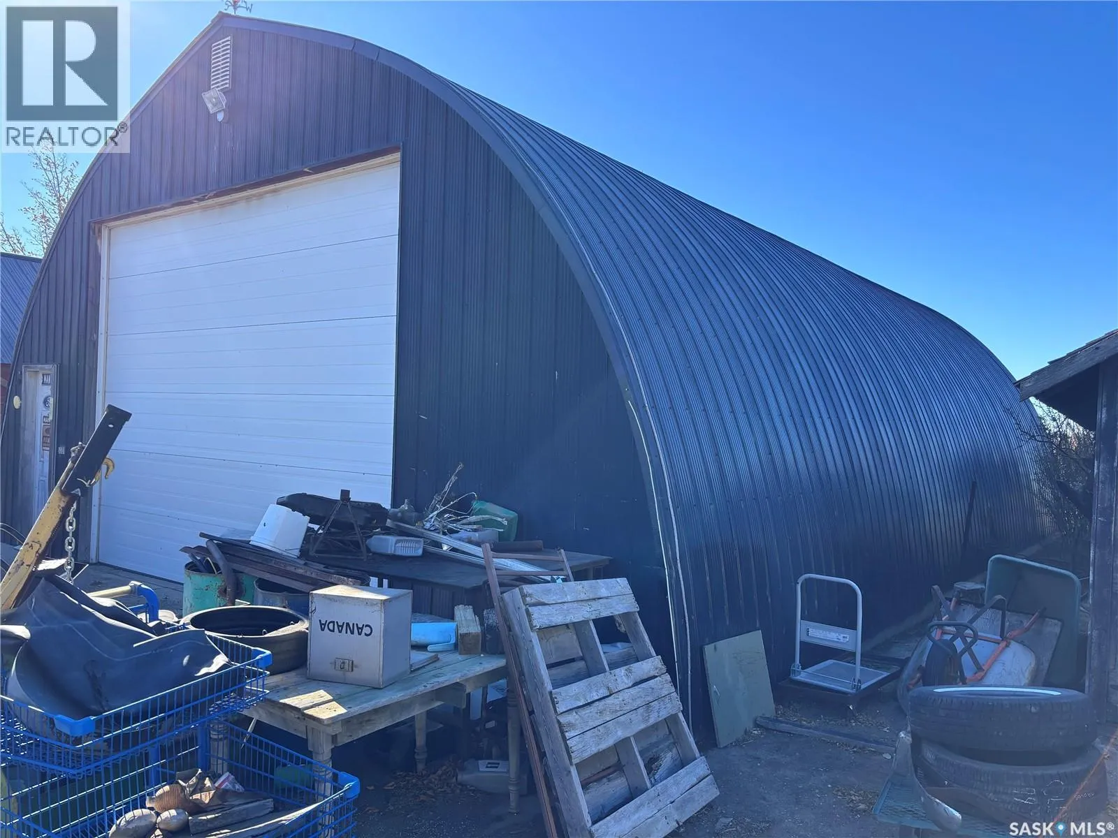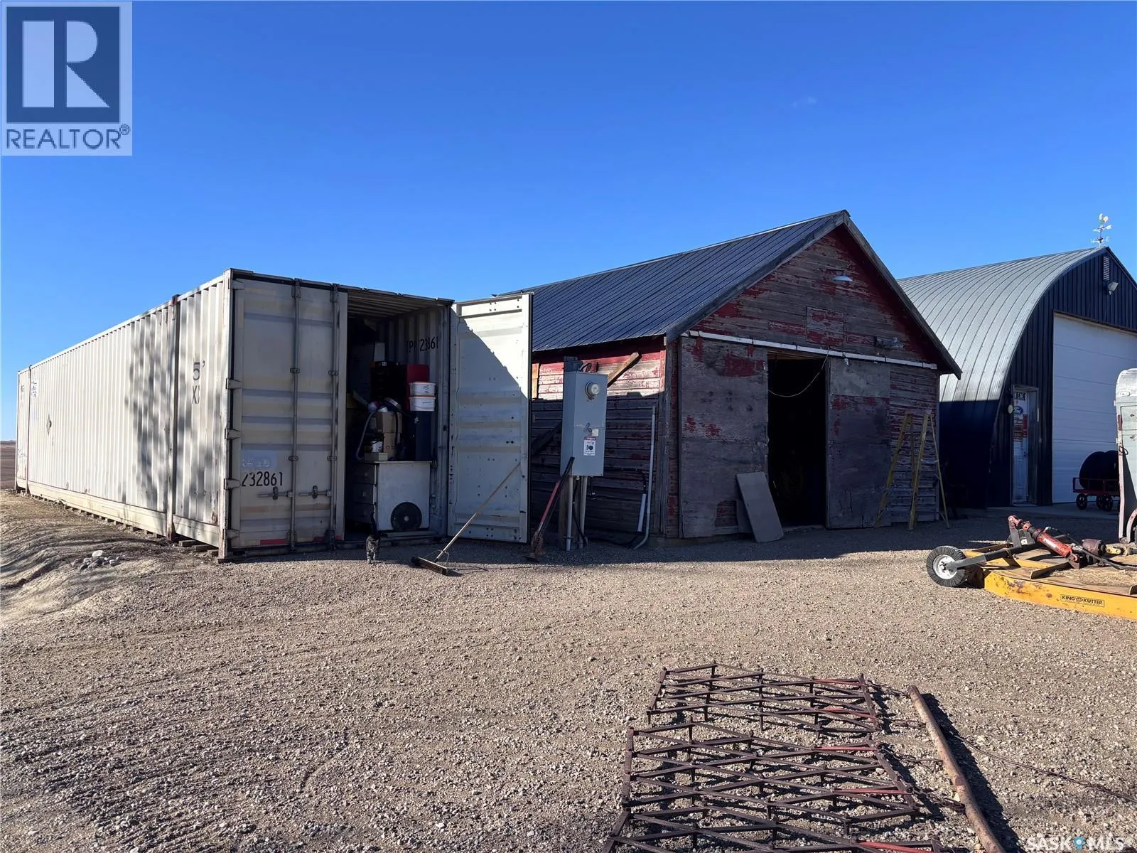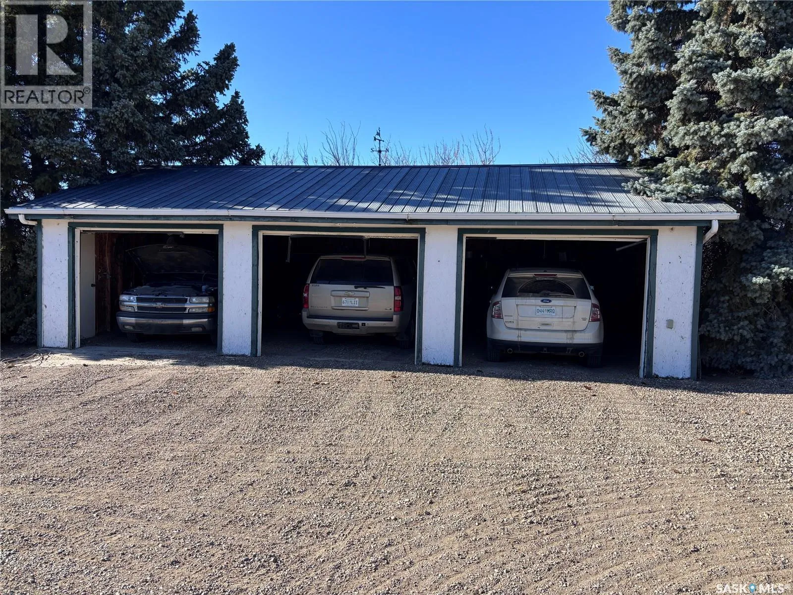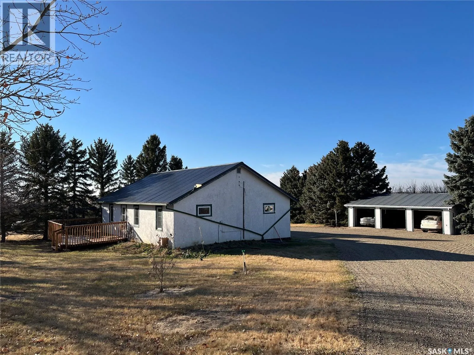 1.5 miles north of Shackleton, just 1.5 miles off of #32 Hwy Here is an acreage with options. The house is a 1954 build with 2 bedrooms, kitchen, living room and 4 pc. bath on main. 2 bedrooms , a 3pc bath and rec room with storage and utility areas complete the basement. This home includes recent kitchen update, newer flooring, vinyl windows and steel roof. Current owner/seller has been collecting and refurbishing older vehicles for years. The heated shop is 32' x 48', quonset is 30' x 50', barn is 28 x 40. There are 2- 10'x20' steel sheds, a 3 car garage by the house, a 4 car garage, a 2 car garage and several small storage sheds. The 2 - 53' Sea Cans are included in the sale, one used for vehicle storage and one with shelving for storage. The yard is surrounded with an excellent shelter belt. Some new evergreens have been planted in recent years. There is potential here for someone to live away from the hustle and bustle but still have access to pavement and nearby amenities. Whether you want to restore vehicles, run a shop or have a place for a few horses or a small livestock operation this will suit your needs. (id:27476)