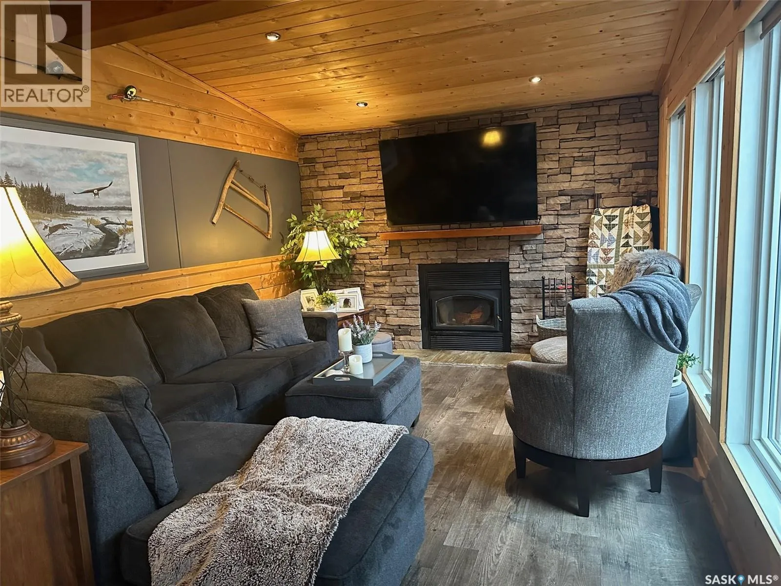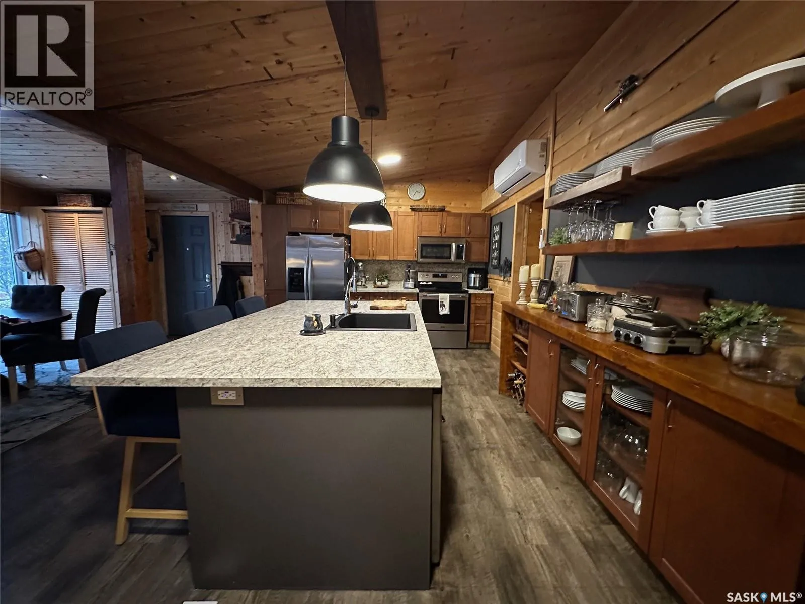 Welcome to 2003 Fox street in the beautiful Resort community of Missinipe also known as Otter Lake, located roughly 80 km north of LaRonge. This is the property you've been waiting for with year round road access and year round running water and sewer makes a prime 4 season adventure destination. On arrival you are welcomed with a warm and inviting ambience, this gorgeous 3 bedroom 2 bath home has spared no attention to detail when it comes to decor and decorating. When you walk into this beautiful custom decorated home, you are greeted with an open concept kitchen that boasts an abundance of space for all your cooking and entertaining needs, cozy up to the island and enjoy good conversation or just enjoy the ascetics of the coffee bar and floating shelves wood ceilings and tasteful decor. Equipped with stainless steel appliance, maple cupboards stone back splash, this is a kitchen you'll never want to leave. If you are looking for a stunning home that offers a combination of amazing atmosphere for entertaining, but also captures peace and serenity of a space where you can retreat and recharge in, this is your home. Winter or summer enjoy nights curled up on the couch, with your book and the warmth of the wood burning fireplace, or have a relaxing bath in the deep soaker tub. If your feeling a little more social invite friends or family and entertain on the spacious deck and show off your bbq talents from the out door kitchen space. This meticulously kept home is perfectly located in central part of the community across from the park or a quick walk to the public beach or public boat launch. This an amazing opportunity to own your own retreat and all this amazing home and community has to offer. This is a turn key sale and comes equipped with furniture, dishes except for some personal effects and pictures the owners will be keeping. Don't let this one pass you by, Call today to book your private viewing!! (id:27476)
