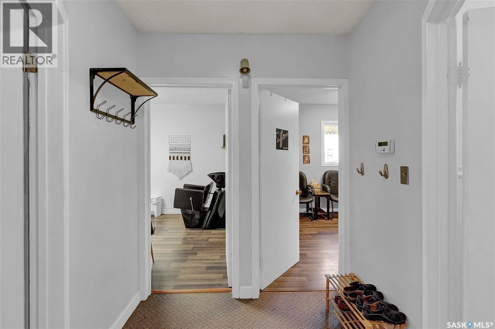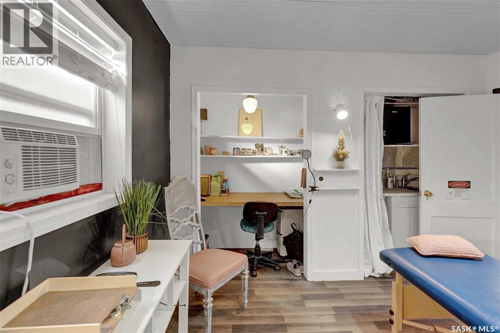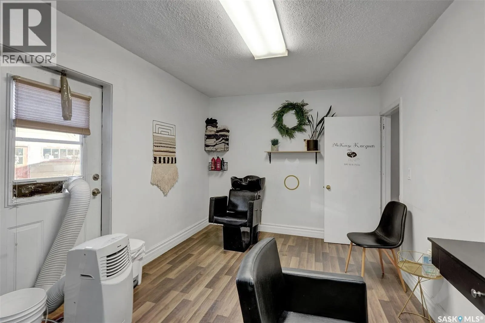 Excellent Commercial zoned building for sale in Montmartre, SK with great street frontage. Start or move your small business where there are 5 private rooms, 4 with interior entries off main entrance hall and 1 with exterior entry. Potential for $2000.00 to $2500.00 total monthly revenue. Currently there are 4 existing leases in place until the end of 2025, one as Hair Salon and one as Retail. Vendor operates a Remedial Massage Therapy business in 'Room 1' and requires a 3yr Lease-back from purchaser. Plumbing for sinks in 3 rooms, one common bathroom, laundry room/storage room with washer/dryer included also houses the furnace and water heater. Coffee bar in hallway. There is a 27' x 30' Detached Garage used for storage, note; one overhead door is not operational. Building on crawl space with access in laundry/mechanical room. Metal roof on both house and garage. Call for further details or to arrange viewing. (id:27476)
