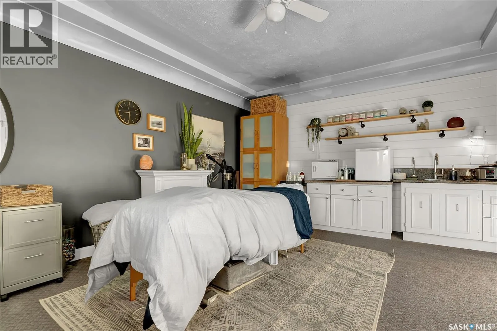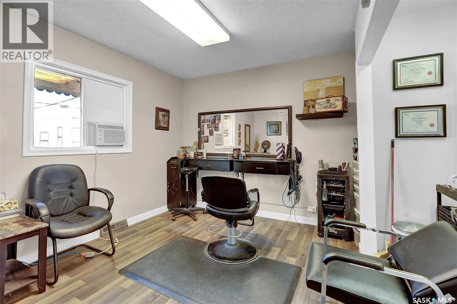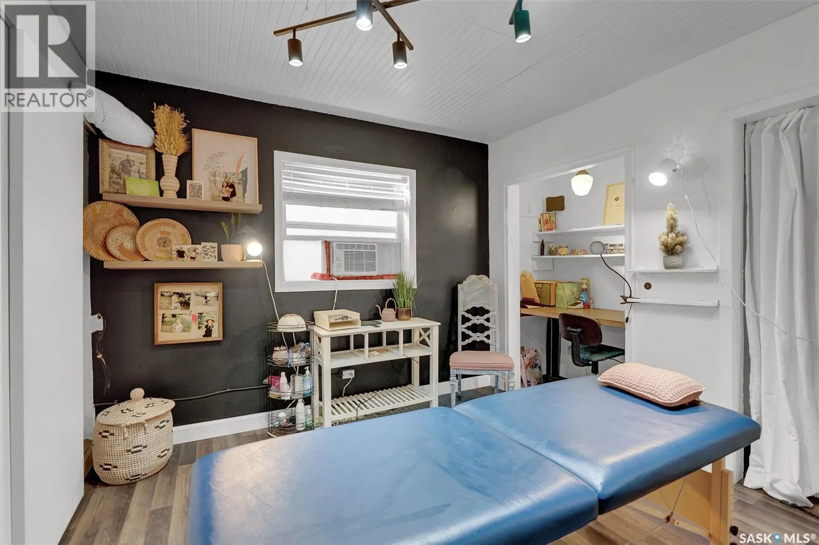 Excellent Commercial zoned building for sale in Montmartre, SK with great street frontage. Start or move your small business where there are 5 private rooms, 4 with interior entries off main entrance hall and 1 with exterior entry. Potential for $2000.00 to $2500.00 total monthly revenue. Currently there are 4 existing leases in place until the end of 2025, one as Hair Salon and one as Retail. Vendor operates a Remedial Massage Therapy business in 'Room 1' and requires a 3yr Lease-back from purchaser. Plumbing for sinks in 3 rooms, one common bathroom, laundry room/storage room with washer/dryer included also houses the furnace and water heater. Coffee bar in hallway. There is a 27' x 30' Detached Garage used for storage, note; one overhead door is not operational. Building on crawl space with access in laundry/mechanical room. Metal roof on both house and garage. Call for further details or to arrange viewing. (id:27476)
