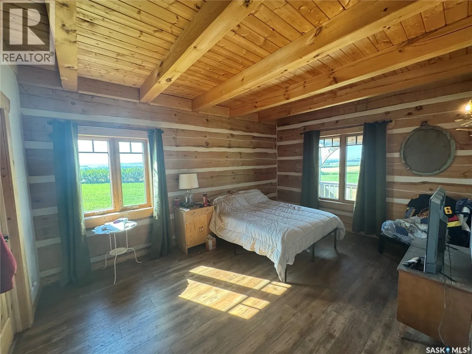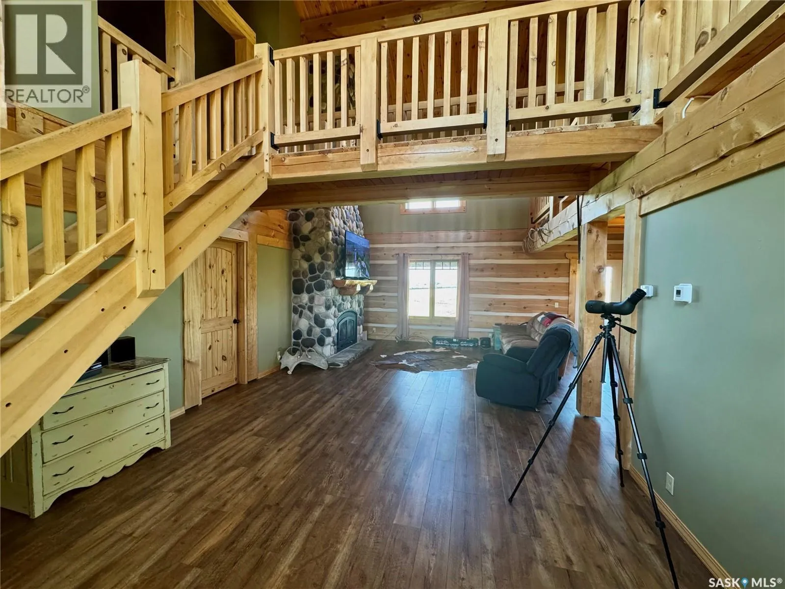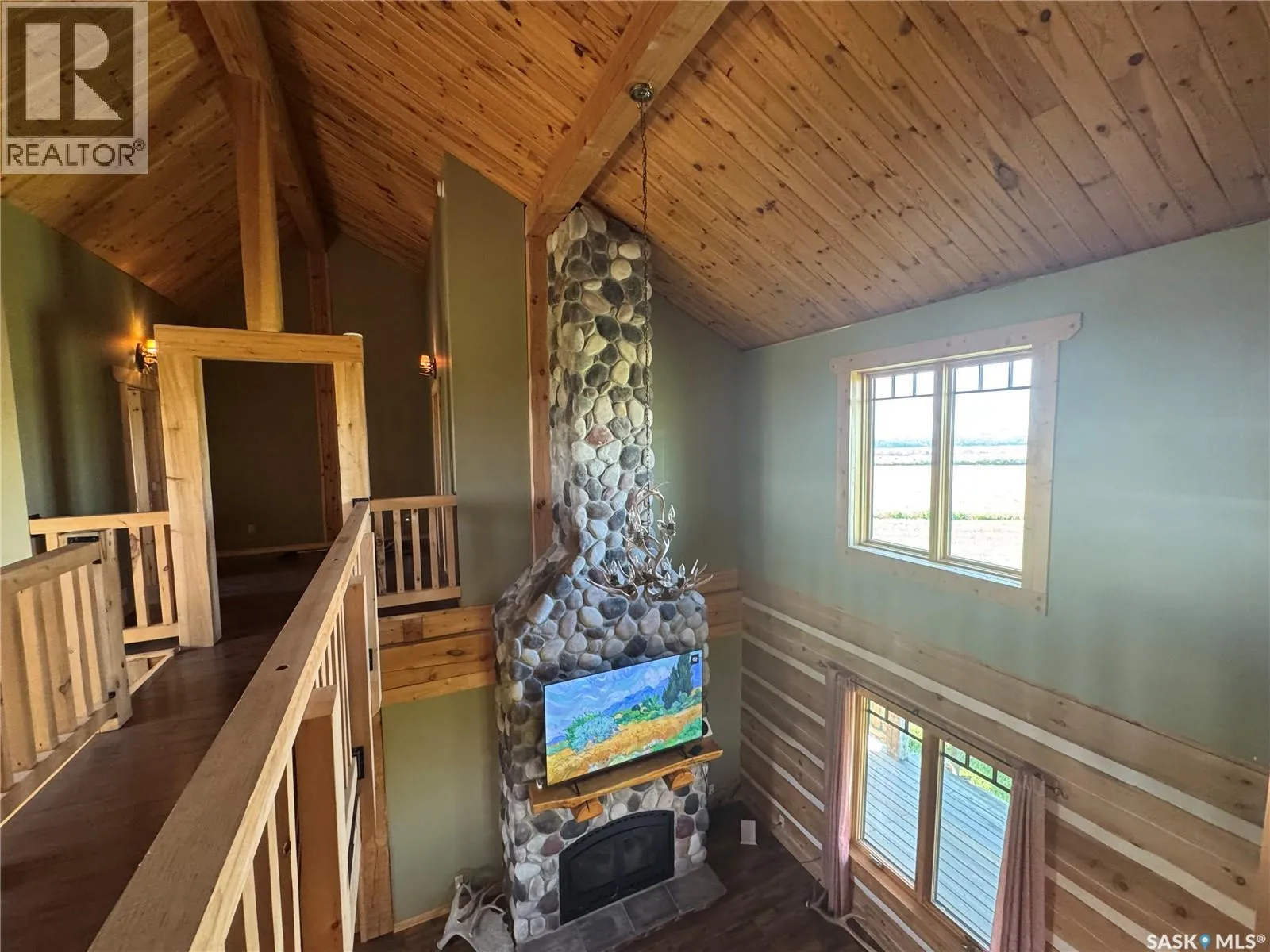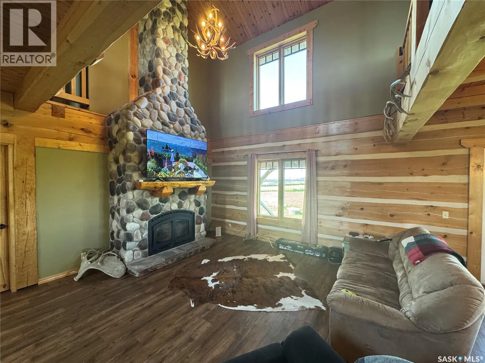 Nestled on the hill overlooking the South Saskatchewan River, 16KM east of Swanson. Welcome to the beautiful and secluded Log House on the Hill. Just 30 km south of Pike Lake, this property offers incredible views of the South Saskatchewan River. The home is fully equipped for year-round country living with geothermal in-floor heating, an additional furnace, central A/C, stainless steel kitchen appliances, on-demand hot water, and a washer/dryer. The parcel also includes a double detached heated garage, three separate porches, a wood-burning fireplace, and a top-level walkway overlooking the main living space â complete with a games room, bedroom, and bathroom. On the main floor, youâll find three convenient entrances: one into the mud/laundry room, one into the kitchen/living area, and a main entry into the foyer. The spacious master bedroom features a 4-piece ensuite and large windows framing scenic river views. Just a short 40-minute drive from Saskatoon, Hill House offers serenity, sweeping views, space to roam, and ample storage for your country lifestyle. Opportunities like this donât come up often â call today to book your private tour! (id:27476)