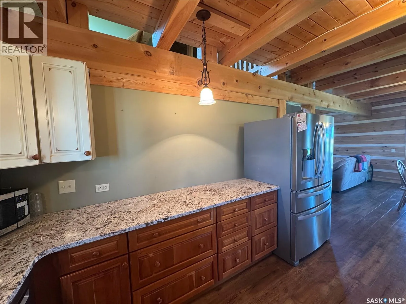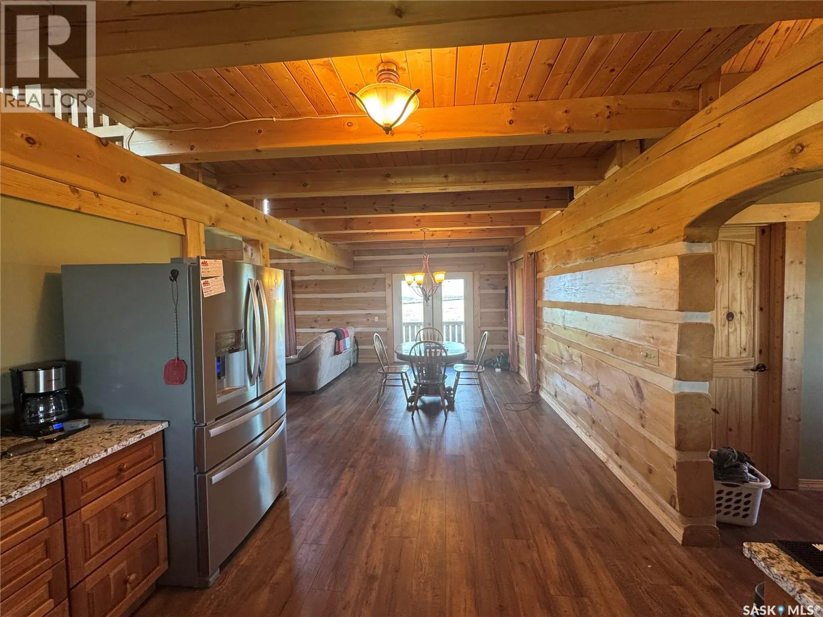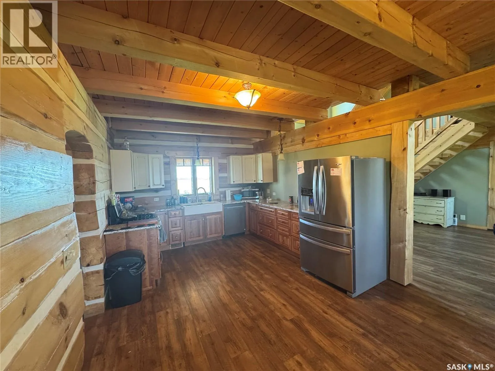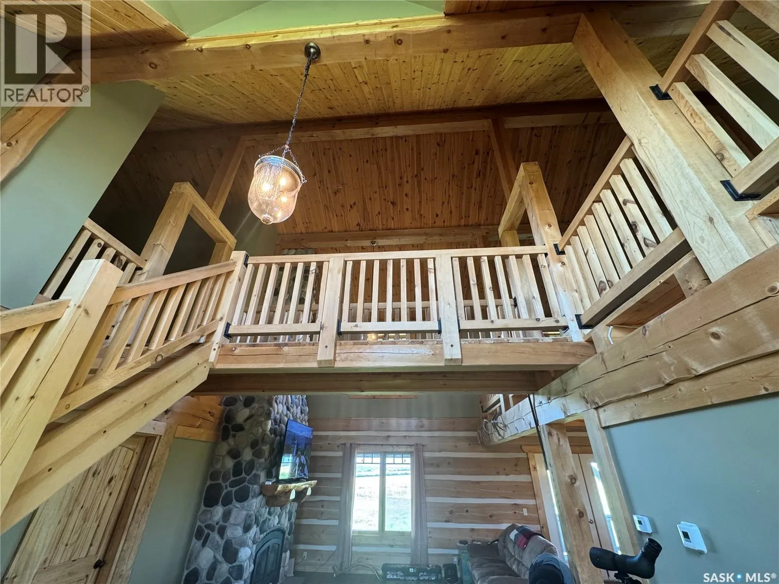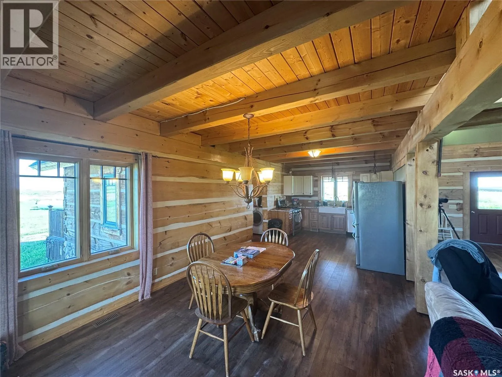Nestled on the hill overlooking the South Saskatchewan River, 16KM east of Swanson. Welcome to the beautiful and secluded Log House on the Hill. Just 30 km south of Pike Lake, this property offers incredible views of the South Saskatchewan River. The home is fully equipped for year-round country living with geothermal in-floor heating, an additional furnace, central A/C, stainless steel kitchen appliances, on-demand hot water, and a washer/dryer. The parcel also includes a double detached heated garage, three separate porches, a wood-burning fireplace, and a top-level walkway overlooking the main living space â complete with a games room, bedroom, and bathroom. On the main floor, youâll find three convenient entrances: one into the mud/laundry room, one into the kitchen/living area, and a main entry into the foyer. The spacious master bedroom features a 4-piece ensuite and large windows framing scenic river views. Just a short 40-minute drive from Saskatoon, Hill House offers serenity, sweeping views, space to roam, and ample storage for your country lifestyle. Opportunities like this donât come up often â call today to book your private tour! (id:27476)