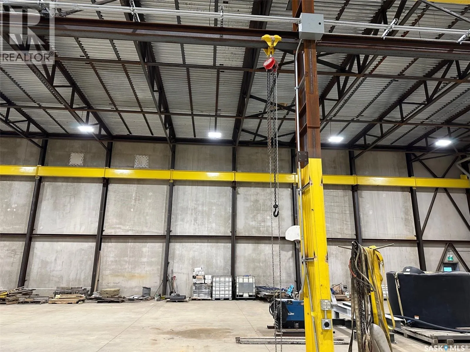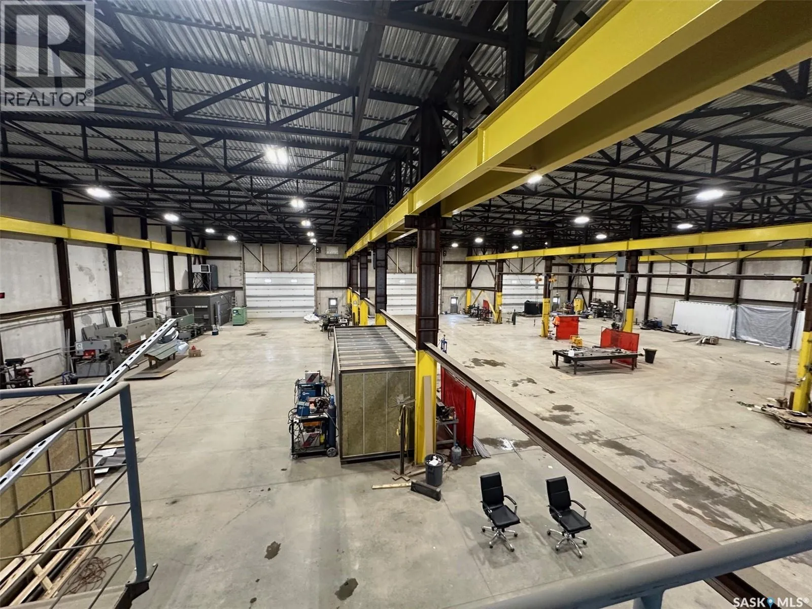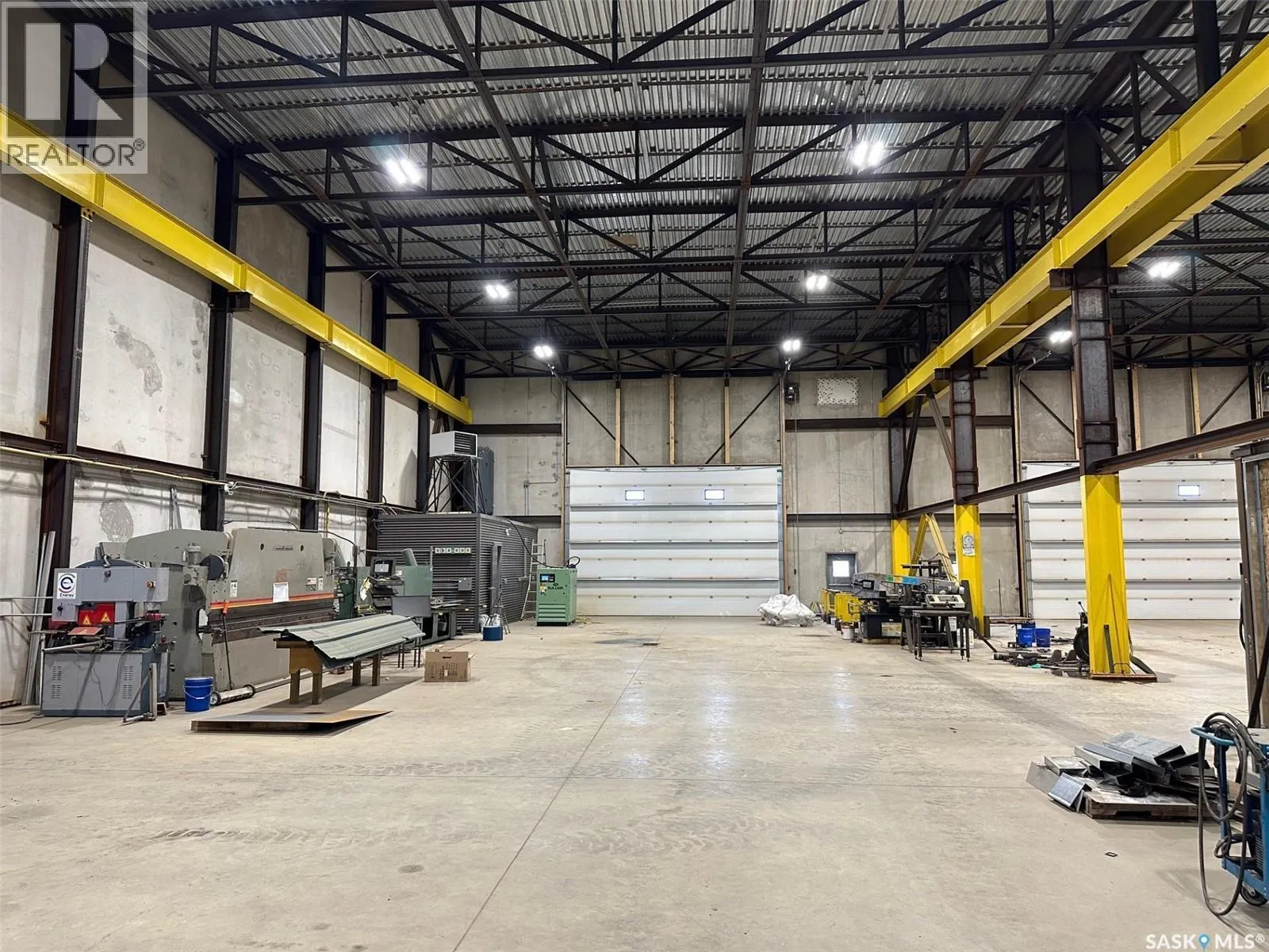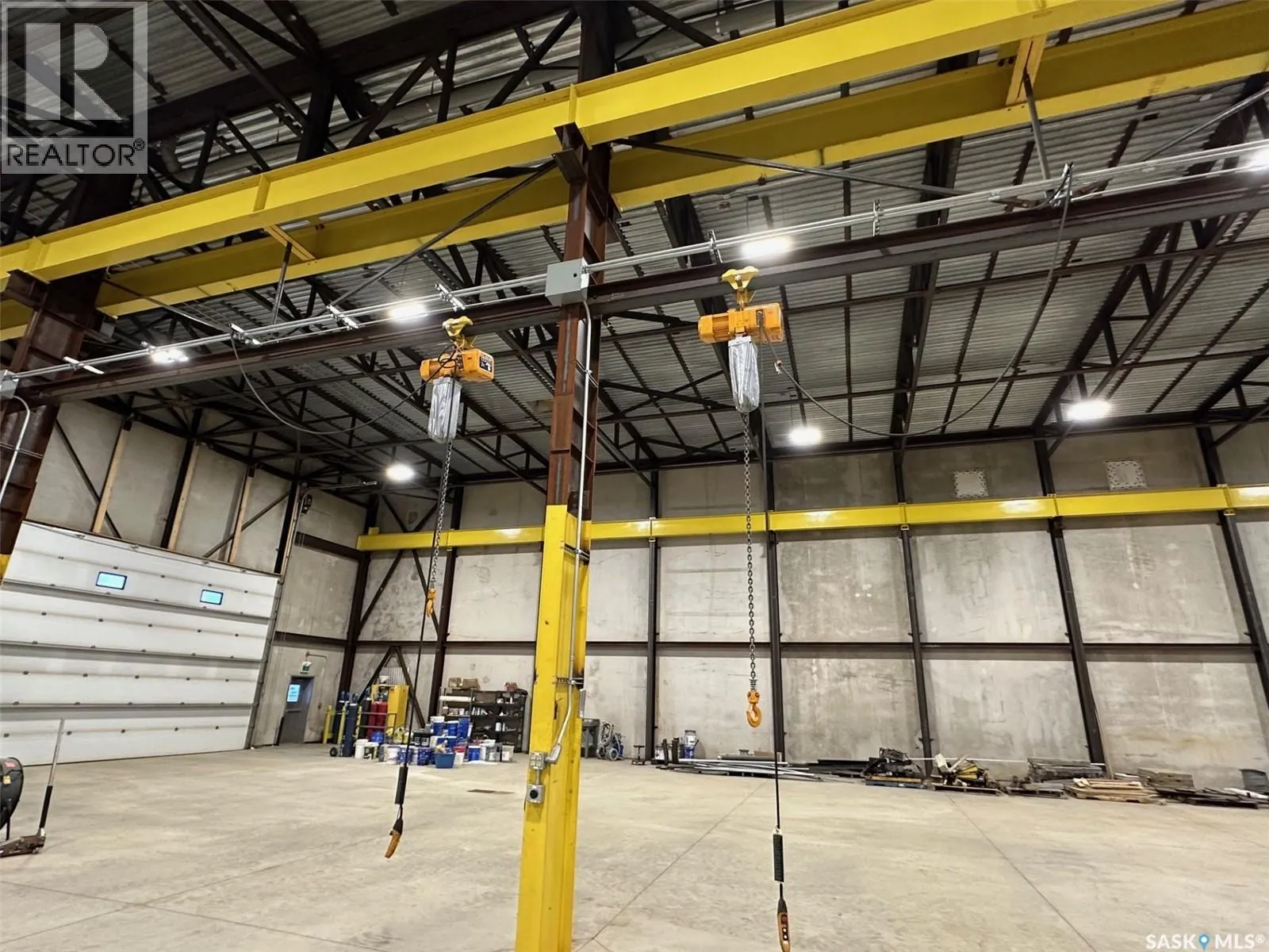 On the hill NW of the #1 and #301 Hwy intersection east of Moose Jaw The Metro Building offers 21,316 sq ft of high-quality industrial space constructed from precast concrete insulated panels, providing exceptional durability, insulation, and long-term performance. Just 5 kms east of Moose Jaw off the #301 Hwy on a hill overlooking the TransCanada Highway. The facility is designed for heavy commercial use with five large drive-through overhead doors, each measuring 24 feet wide by 16 feet high, allowing easy movement of trucks, equipment, and machinery. The building height is 30 feet to the ceiling and 26.5 feet to the bottom of the steel trusses, providing excellent clearance for industrial operations. The interior is equipped with industrial lifting equipment suitable for material handling, LED lighting throughout, and a heavy-load reinforced concrete floor with in-floor heat powered by four boilers. Electrical capacity includes an 800-amp three-phase service to support high-demand users. The building also features a two-part septic system, a cistern for potable water, and an additional cistern designed for water capture. The roof is protected with a sprayed-on rubber membrane for long-term durability. This is a rare opportunity to acquire a large, modern industrial facility with significant clearances, heavy-duty infrastructure, and flexible use potential. (id:27476)