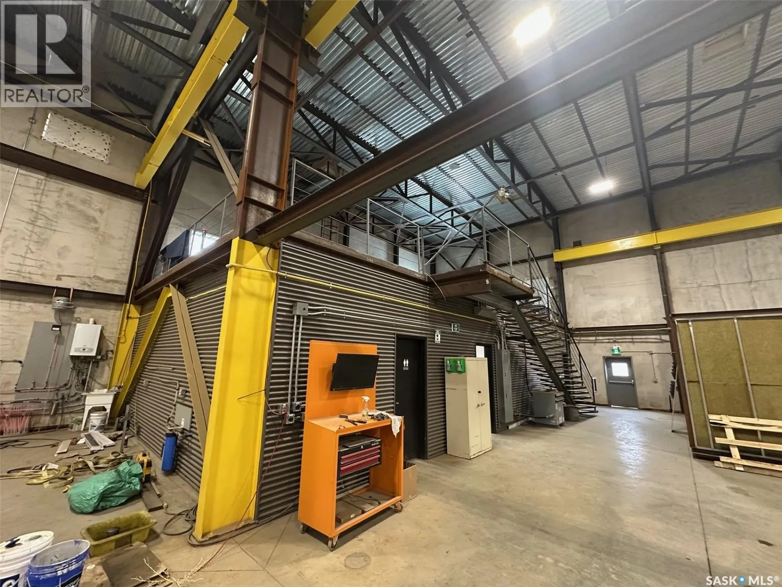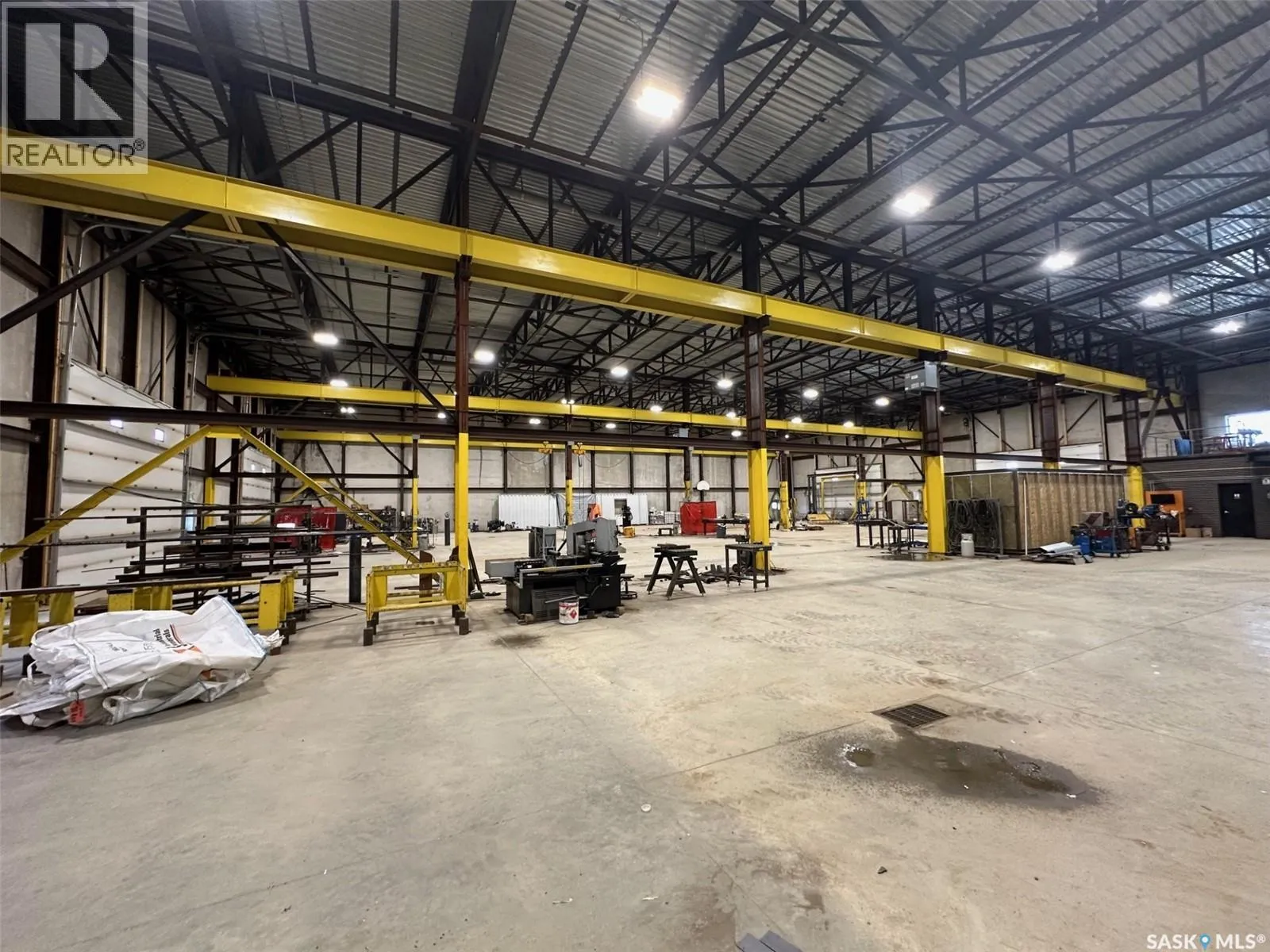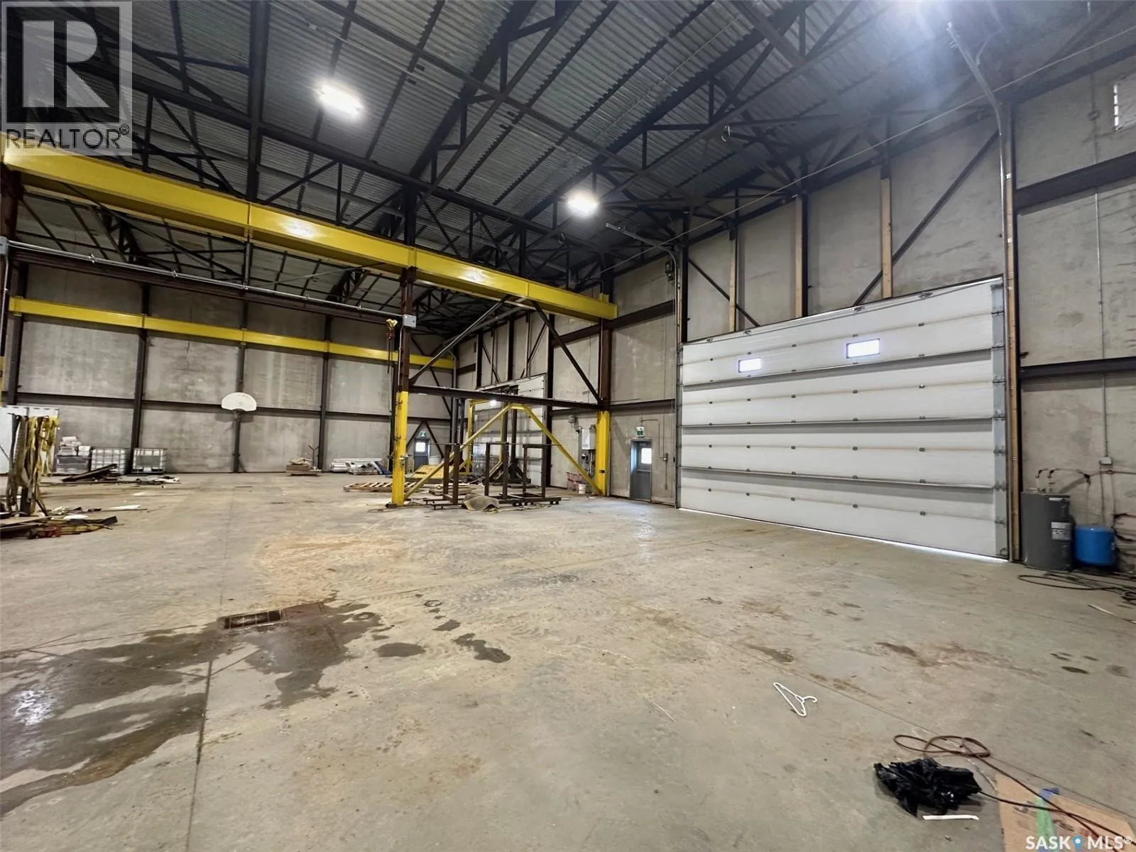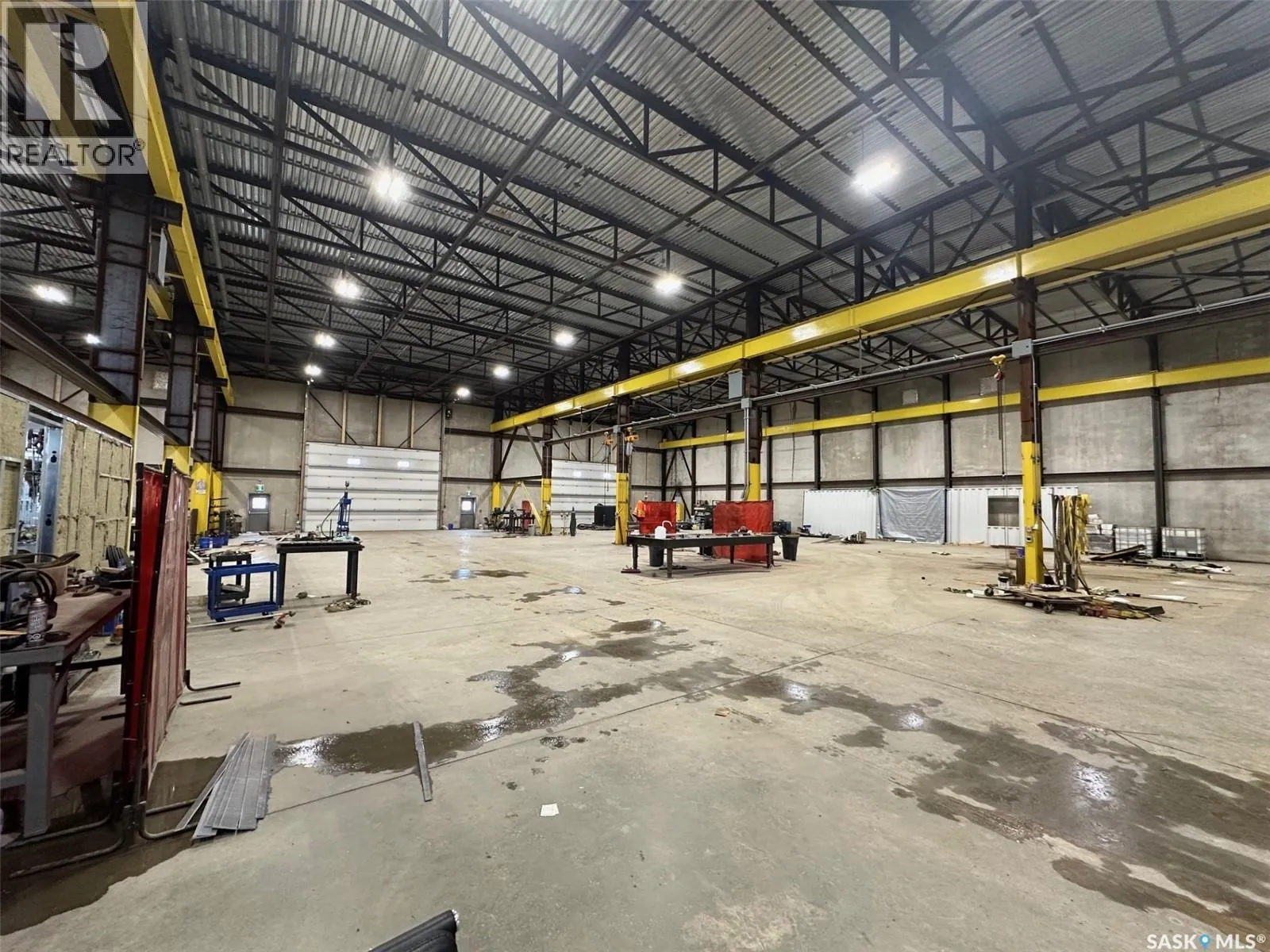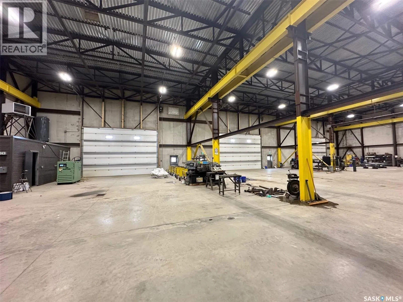 On the hill NW of the #1 and #301 Hwy intersection east of Moose Jaw The Metro Building offers 21,316 sq ft of high-quality industrial space constructed from precast concrete insulated panels, providing exceptional durability, insulation, and long-term performance. Just 5 kms east of Moose Jaw off the #301 Hwy on a hill overlooking the TransCanada Highway. The facility is designed for heavy commercial use with five large drive-through overhead doors, each measuring 24 feet wide by 16 feet high, allowing easy movement of trucks, equipment, and machinery. The building height is 30 feet to the ceiling and 26.5 feet to the bottom of the steel trusses, providing excellent clearance for industrial operations. The interior is equipped with industrial lifting equipment suitable for material handling, LED lighting throughout, and a heavy-load reinforced concrete floor with in-floor heat powered by four boilers. Electrical capacity includes an 800-amp three-phase service to support high-demand users. The building also features a two-part septic system, a cistern for potable water, and an additional cistern designed for water capture. The roof is protected with a sprayed-on rubber membrane for long-term durability. This is a rare opportunity to acquire a large, modern industrial facility with significant clearances, heavy-duty infrastructure, and flexible use potential. (id:27476)