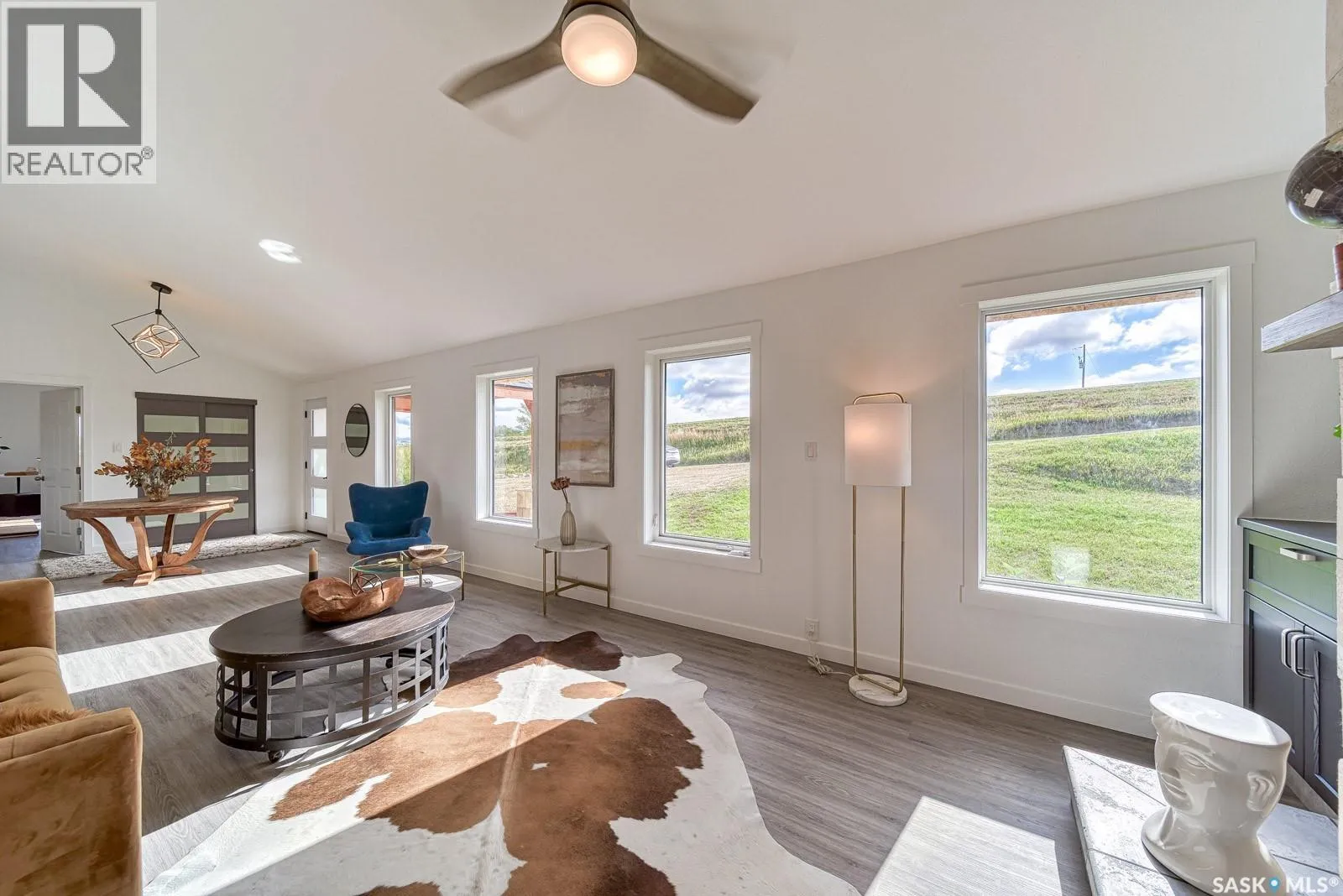 Your wait is over to own an amazing acreage property just 6 km east of Moose Jaw! River's Edge Acreage is a must-see opportunity you do not want to miss!! Combining an amazing location on the river's edge with just completed beautiful on-trend finishes to over 2400 sq/ft of this home, you will be amazed as you enter the great room with vaulted ceiling & gas fireplace! A games room or home office (330 sq/ft) has so much potential for families of any size & is adjacent to the great room! Stepping upstairs, you will absolutely love the fabulous open concept living area with a kitchen designed for all the chefs in the family! Quartz countertops, central island, lovely dining area, along with a spacious living room that steps onto the deck overlooking the beautiful river valley views with a staircase to take you out to the firepit area! Down the hall, a stunning bath with a gorgeous soaker tub walled in striking stone tiles is magazine-worthy! Three bedrooms, a laundry area, as well as another bath lead to the primary suite that has yet another beautiful bath plus a very special walk-in dressing room where you will love to spend time getting ready for your day! The walkout lower level has amazing potential to be another living space for family, income, or Airbnb, as 2 exits from the level go to lovely patio spaces (one is covered), or used for your personal needs! The 2.62-acre property has so much beauty that you will vacation at home! Just imagine taking out your kayak to the river's edge of your own private property! River's Edge Acreage must be seen to appreciate how amazing it is! Just a few features: 4 bedrooms, 3 baths, 2400 sq/ft newly finished interiors, 1600 sq/ft walkout lower level, new well, beautiful landscaping, minutes to Moose Jaw, no gravel roads to drive!, a virtual new home with gorgeous views,....I know!!! Be sure to view the 3D scan of the amazing floor plan & 360s & drone shots of the outdoors!! Directions: 50.3979722 -105.4138056 (id:27476)