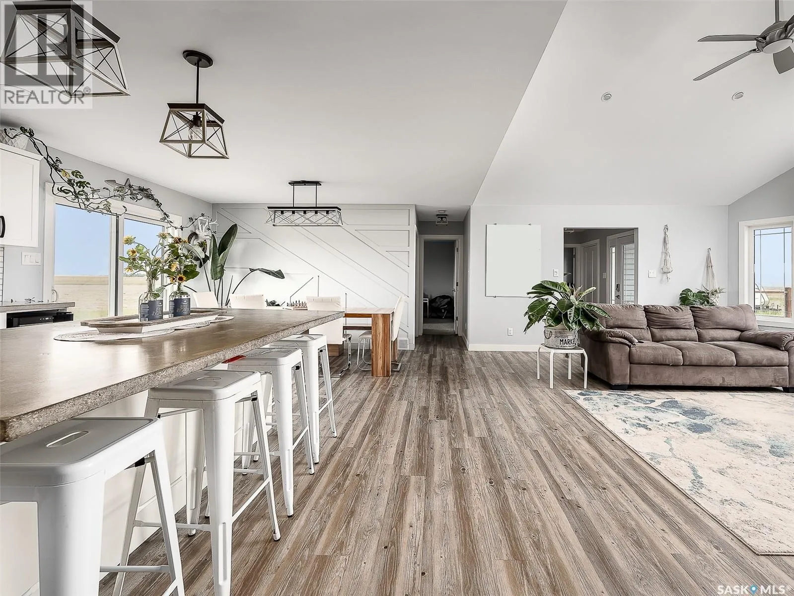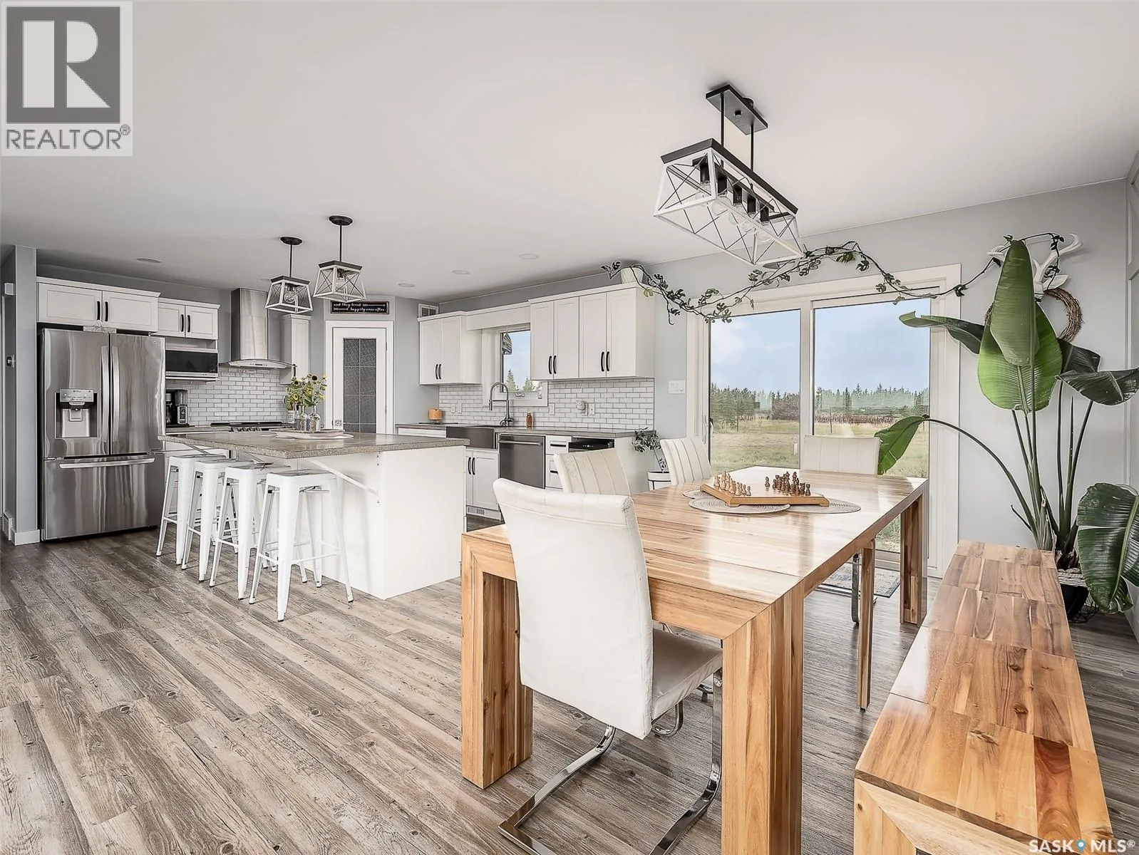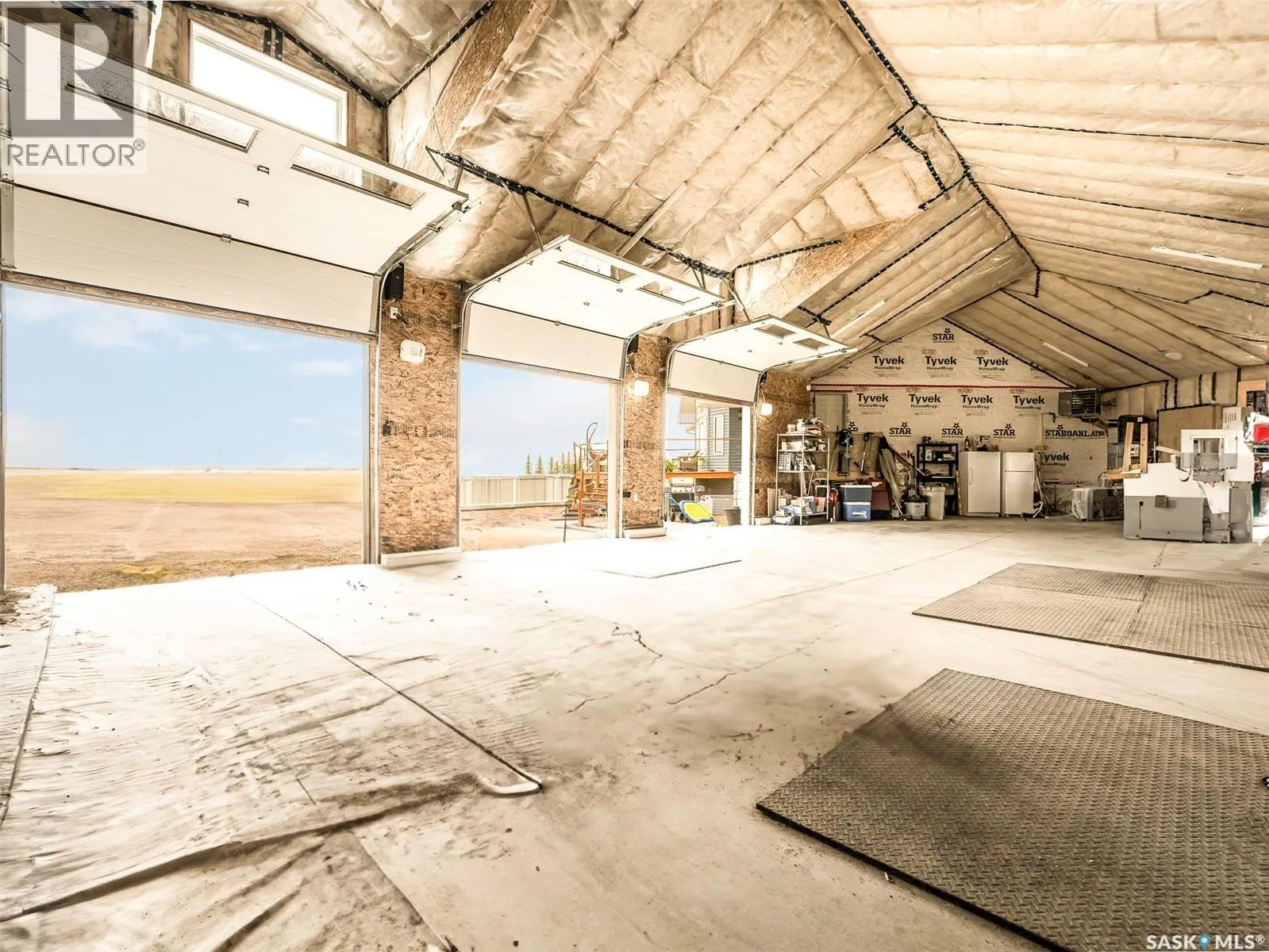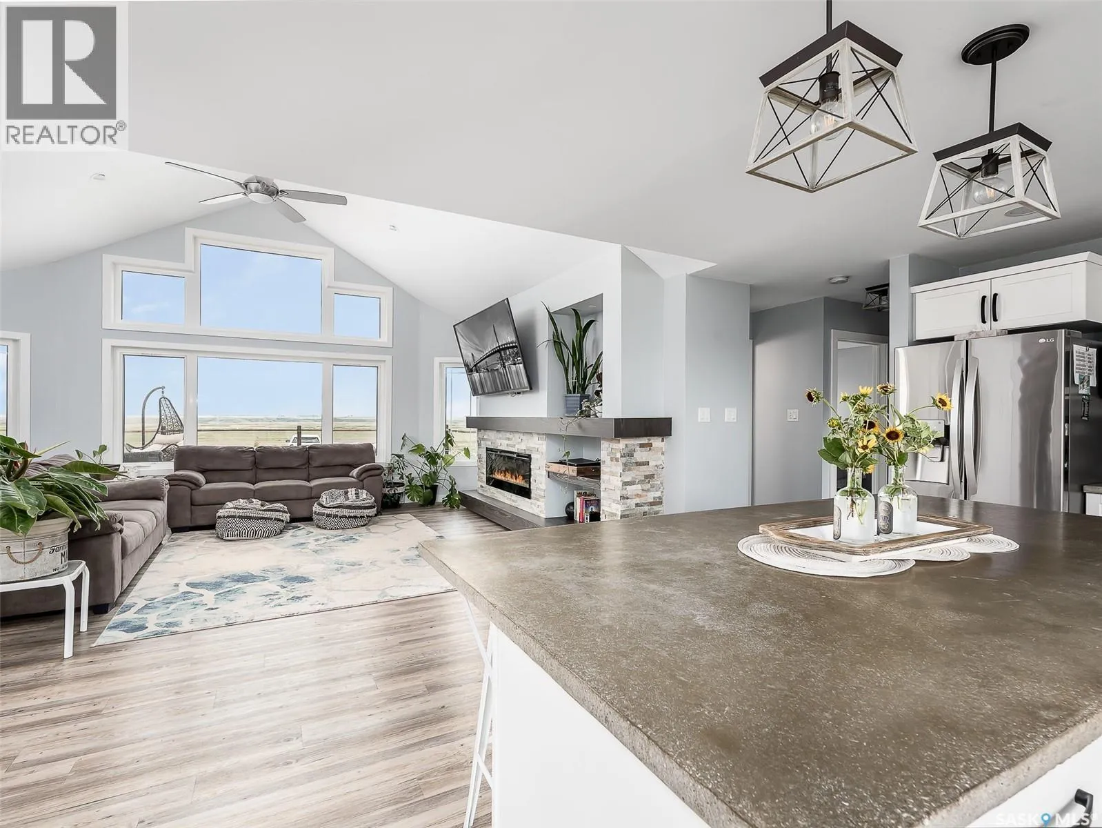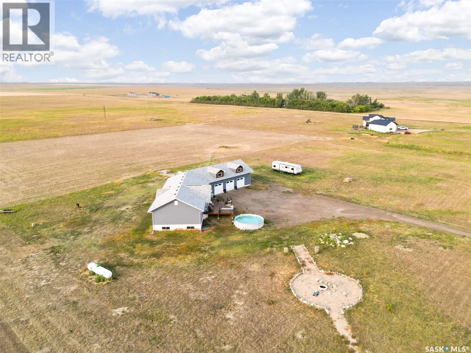 Dreaming of life in the country just minutes from the city?? Stargazing on your deck away from the city lights? Dreams do come true! This 10 acre parcel boasts a 1,600+ square foot home that is built with the best view in mind & the front deck will be your favourite place to soak up the sunrise! Inside, this home feels warm & welcoming with a modern farmhouse vibe! The view from the Living Room is stunning with huge south facing windows taking full advantage or the vaulted ceiling & is set off with a sleek Fireplace flanked by rustic built-ins. The open concept main floor is perfect for gathering with family & friends with the Kitchen boasting custom concrete countertops, deep farmhouse sink, corner pantry, stylish lighting & island with the Dining Room finished with feature wall & patio doors opening on to a new back deck. To one side of the home, you will find 2 spacious Bedrooms & full Bath with the Primary Suite (walk-in closet & 4pc Ensuite) on the opposite side of the house allowing for privacy. MAIN FLOOR LAUNDRY is adjacent to the MASSIVE HEATED GARAGE with soaring ceilings & dormers (future mezzanine??). The lower level is ready for your ideas with r/in plumbing for additional Bath & framing is set to begin to develop a Family Room, Bath & 2 Bedrooms (state of completion will depend on purchase timeline & is negotiable). Start planning your move to the country now & enjoy the peace & tranquility this change of address will bring! Directions: From MJ - Highway 1 East to Weyburn turn off. North on 301 to Twp Rd 172. East approximately 3kms to sign. (id:27476)