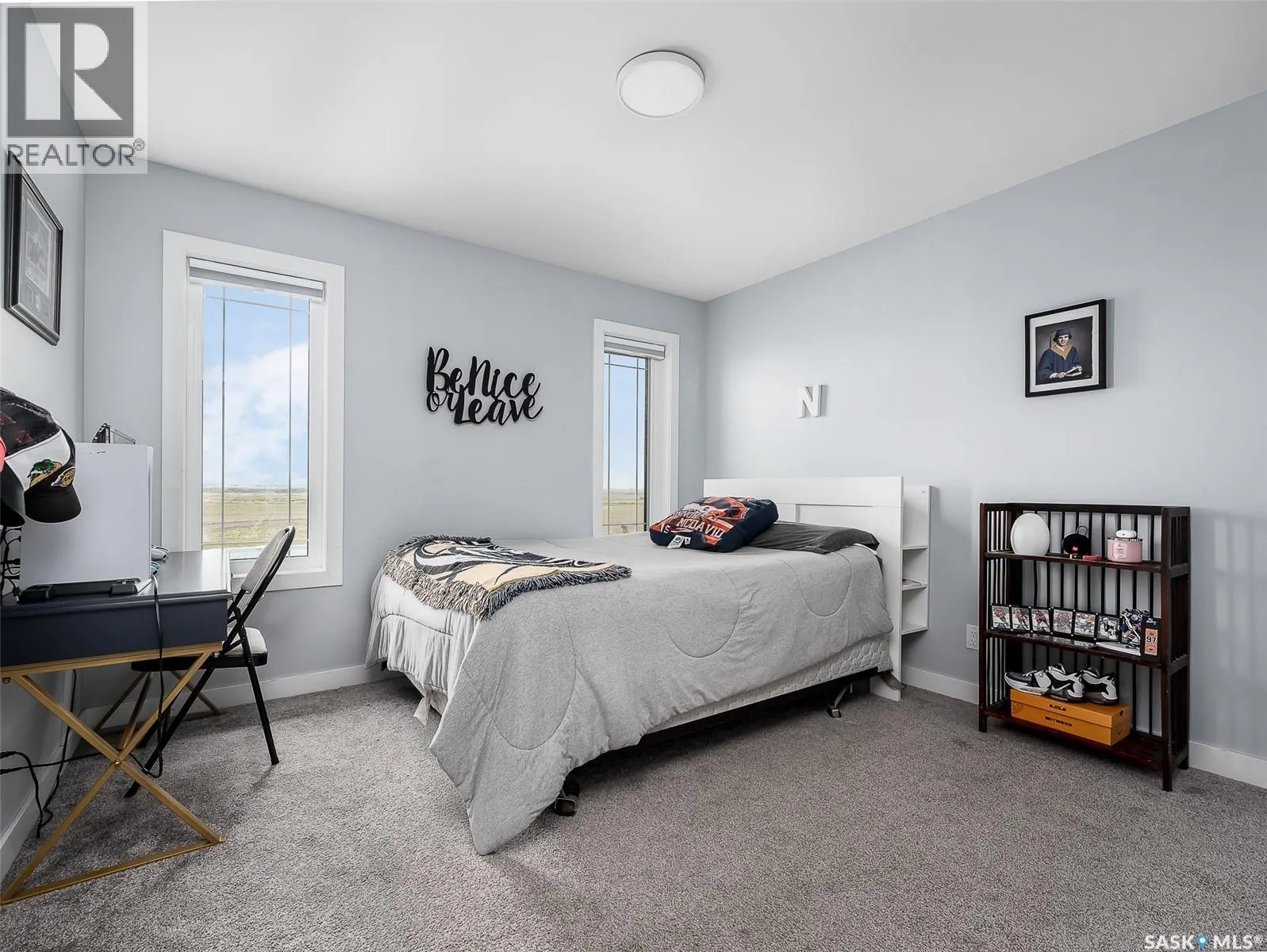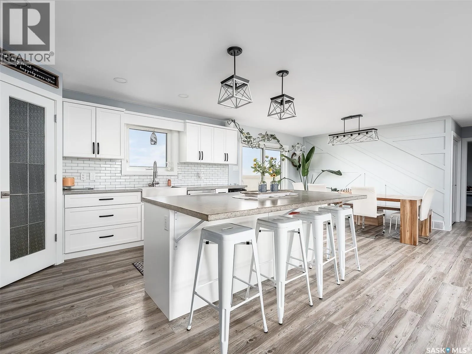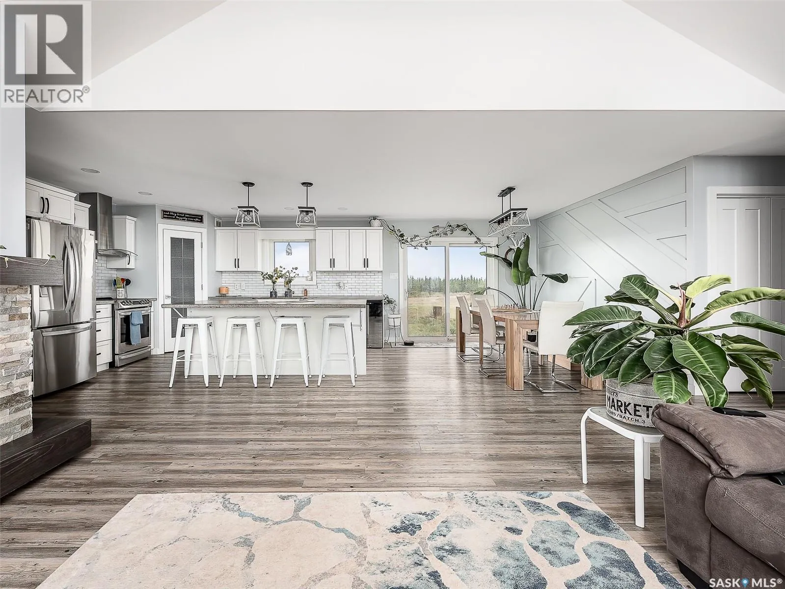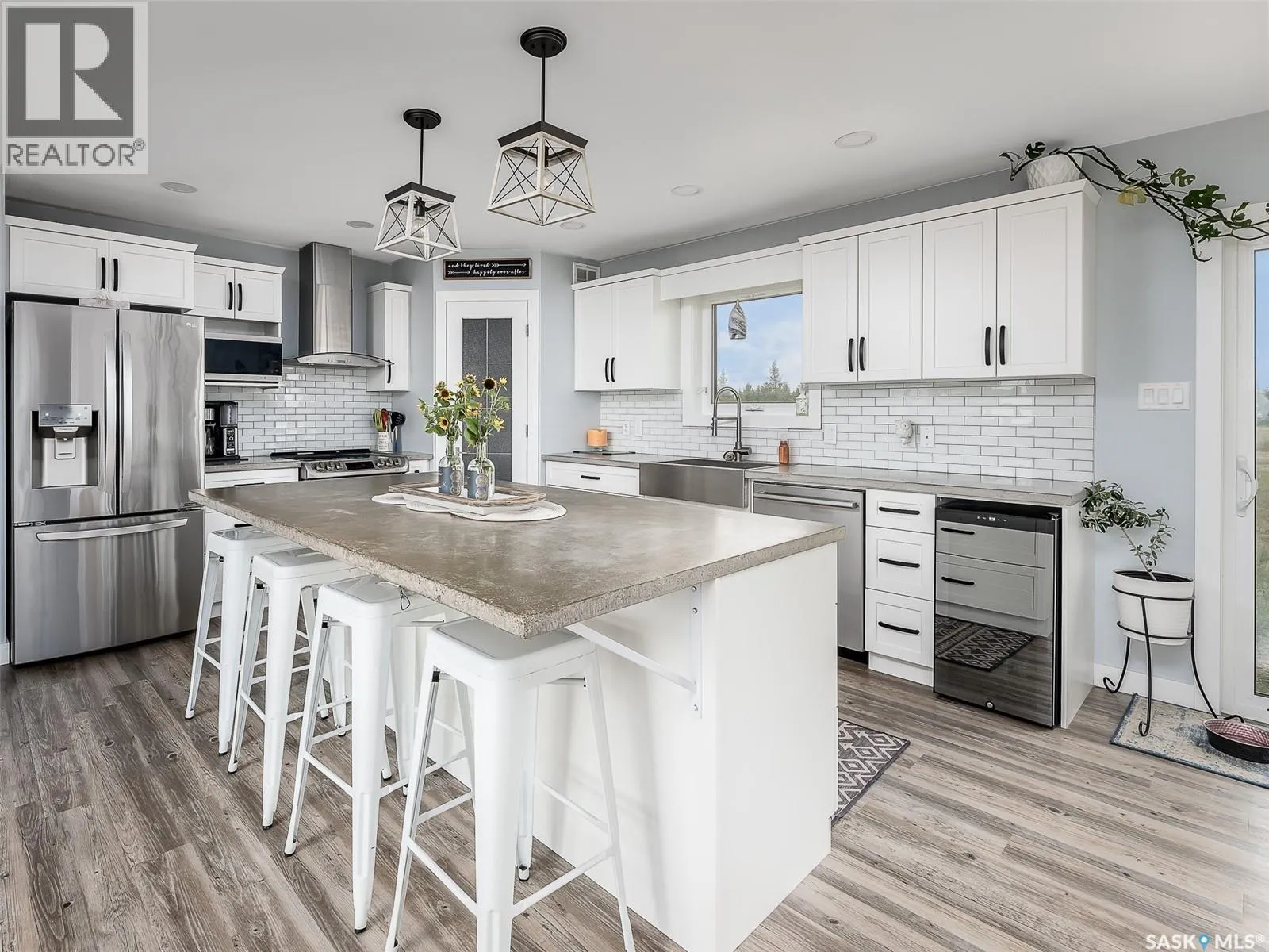 Dreaming of life in the country just minutes from the city?? Stargazing on your deck away from the city lights? Dreams do come true! This 10 acre parcel boasts a 1,600+ square foot home that is built with the best view in mind & the front deck will be your favourite place to soak up the sunrise! Inside, this home feels warm & welcoming with a modern farmhouse vibe! The view from the Living Room is stunning with huge south facing windows taking full advantage or the vaulted ceiling & is set off with a sleek Fireplace flanked by rustic built-ins. The open concept main floor is perfect for gathering with family & friends with the Kitchen boasting custom concrete countertops, deep farmhouse sink, corner pantry, stylish lighting & island with the Dining Room finished with feature wall & patio doors opening on to a new back deck. To one side of the home, you will find 2 spacious Bedrooms & full Bath with the Primary Suite (walk-in closet & 4pc Ensuite) on the opposite side of the house allowing for privacy. MAIN FLOOR LAUNDRY is adjacent to the MASSIVE HEATED GARAGE with soaring ceilings & dormers (future mezzanine??). The lower level is ready for your ideas with r/in plumbing for additional Bath & framing is set to begin to develop a Family Room, Bath & 2 Bedrooms (state of completion will depend on purchase timeline & is negotiable). Start planning your move to the country now & enjoy the peace & tranquility this change of address will bring! Directions: From MJ - Highway 1 East to Weyburn turn off. North on 301 to Twp Rd 172. East approximately 3kms to sign. (id:27476)