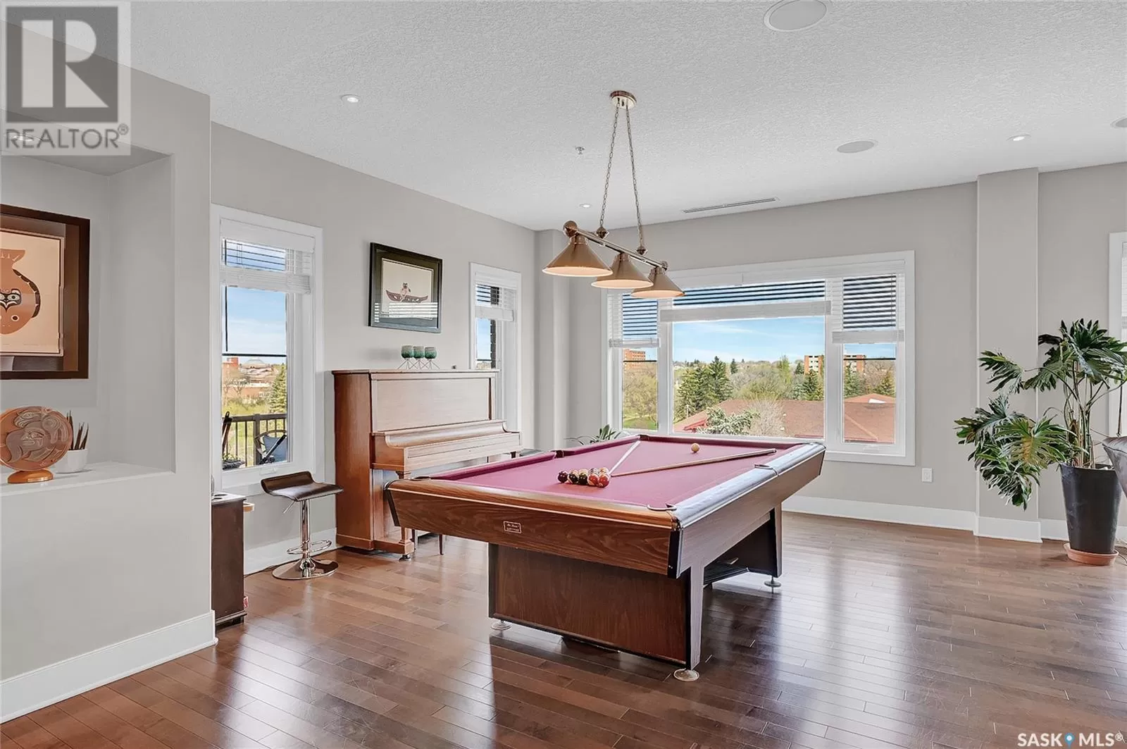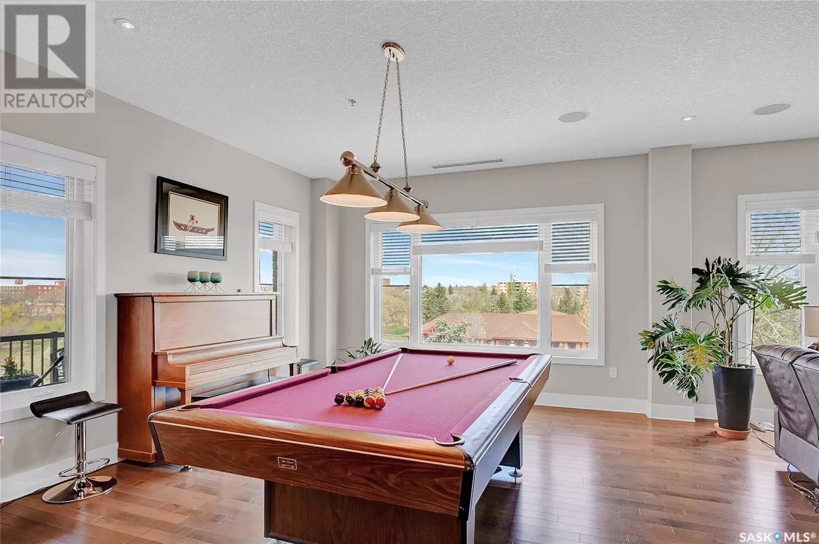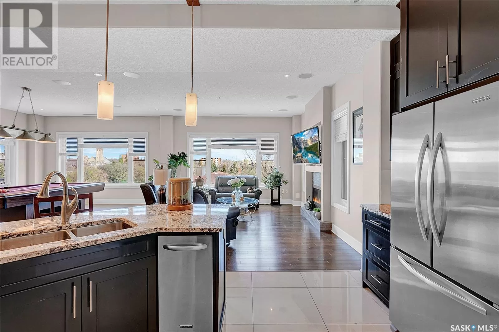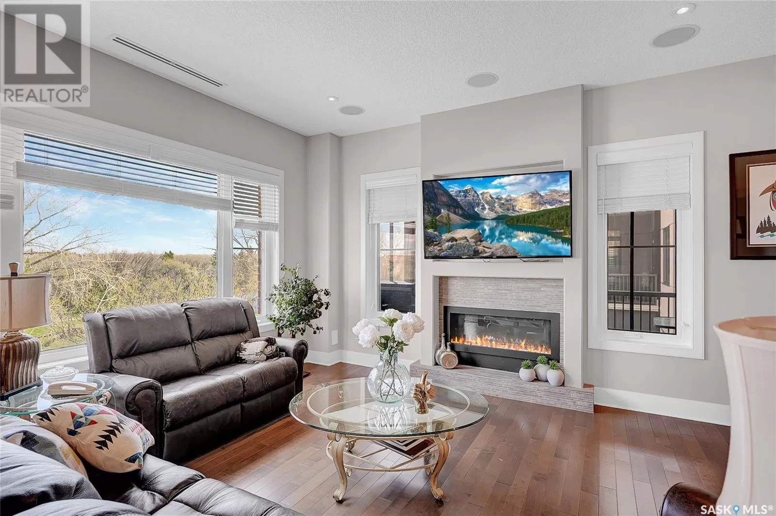 Unparalleled elegance & sophistication at Terrace East, a residence that epitomizes luxury living w/views of Crescent Park. This extraordinary condo is a sanctuary of style. Boasting granite, beautiful NEW hardwood flooring in the main living area & tile floors, that set a standard for upscale living. The grandeur of the 12-foot ceilings w/8ft solid core doors, add to the expansive open-concept living, magnified by floor to ceiling windows inviting an abundance of natural light w/access to 2 Balconies w/1 being screened in. Living Room adorn by sheer space, hosts a Gas Fireplace w/A/V h/u, in addition to the b/i Sound System set thru out. Dining area hosts a table fit for a king. Kitchen is a masterpiece w/island, ceiling-height cabinetry, pantry, top-of-the-line appliances including trash compactor, promises to inspire culinary exploration. This living space isnât finished yet, there is room for a gaming area, currently w/pool table & room for a bar & Patio Door leading to the NW Balcony to enjoy the summer sun overlooking the city skyline. Both balconies have natural Gas h/u & structured to support a hot tub if desired. There are 3 Bedrooms & Den that can used as 4th bedroom. Primary in the âEast Wingâ is a private retreat, complete w/Ensuite w/2 sinks, tile & glassed shower & a dream walk in closet. This wing is complete w/Den opening to the NE private screened in Balcony, welcoming the morning sun. The âWest Wingâ enjoys 2 bedrooms & Jack & Jill access to the 4pc. bath w/soaker tub & beautiful tile work & even a 2pc Bath. Terrace East is a secure luxury complex, offering 2 underground parking stalls, guest room, gym, mail & library Rms. 2 blocks of downtown w/a prestigious address across Crescent Park & steps to shopping, restaurants, & spas, ensuring a lifestyle of convenience & luxury. Click on the multimedia link to take a virtual tour of this Penthouse style condo & embrace the opportunity to live in one of the finest condominium buildings in the province. (id:27476)