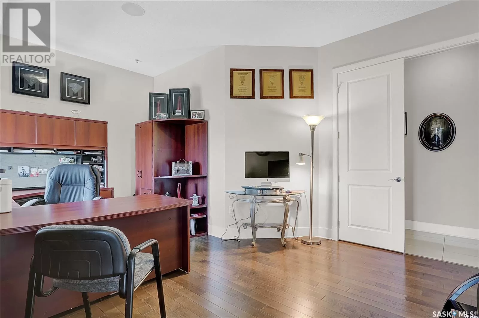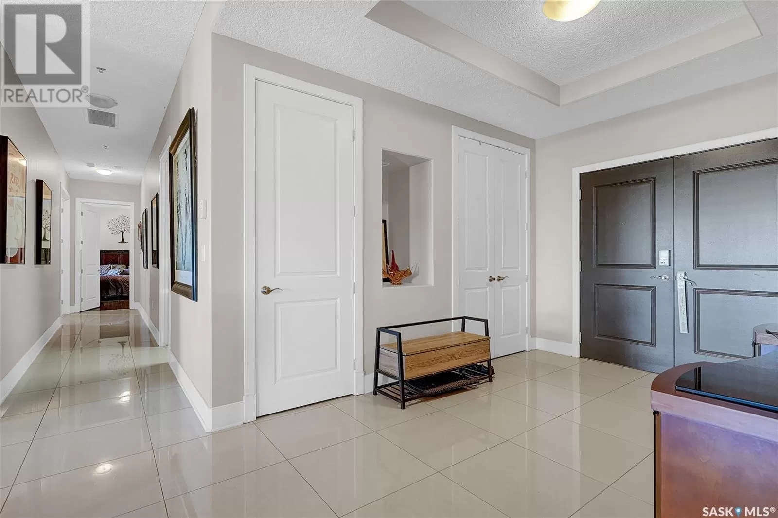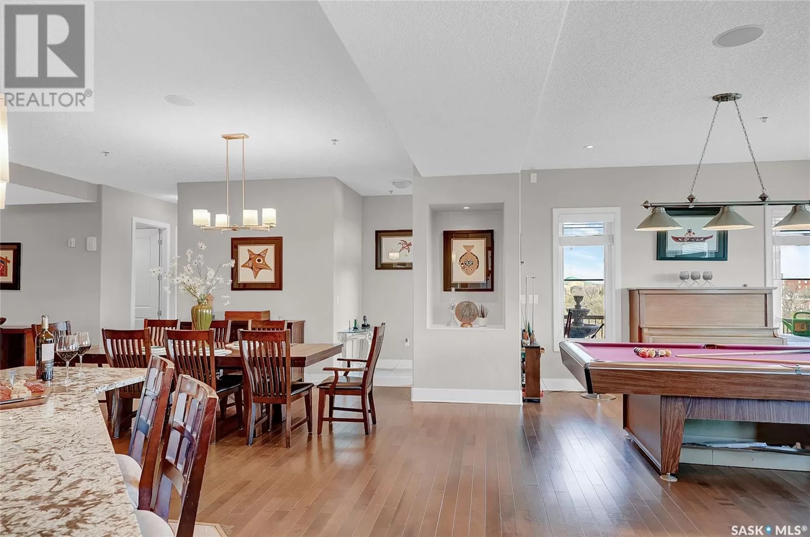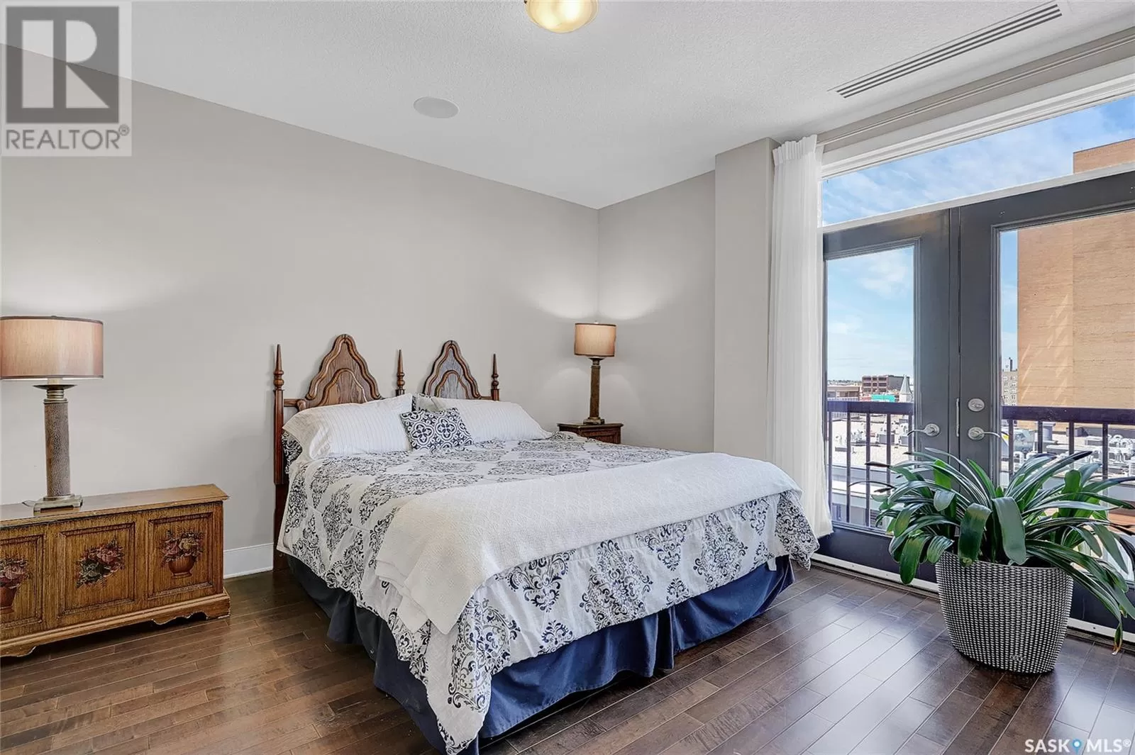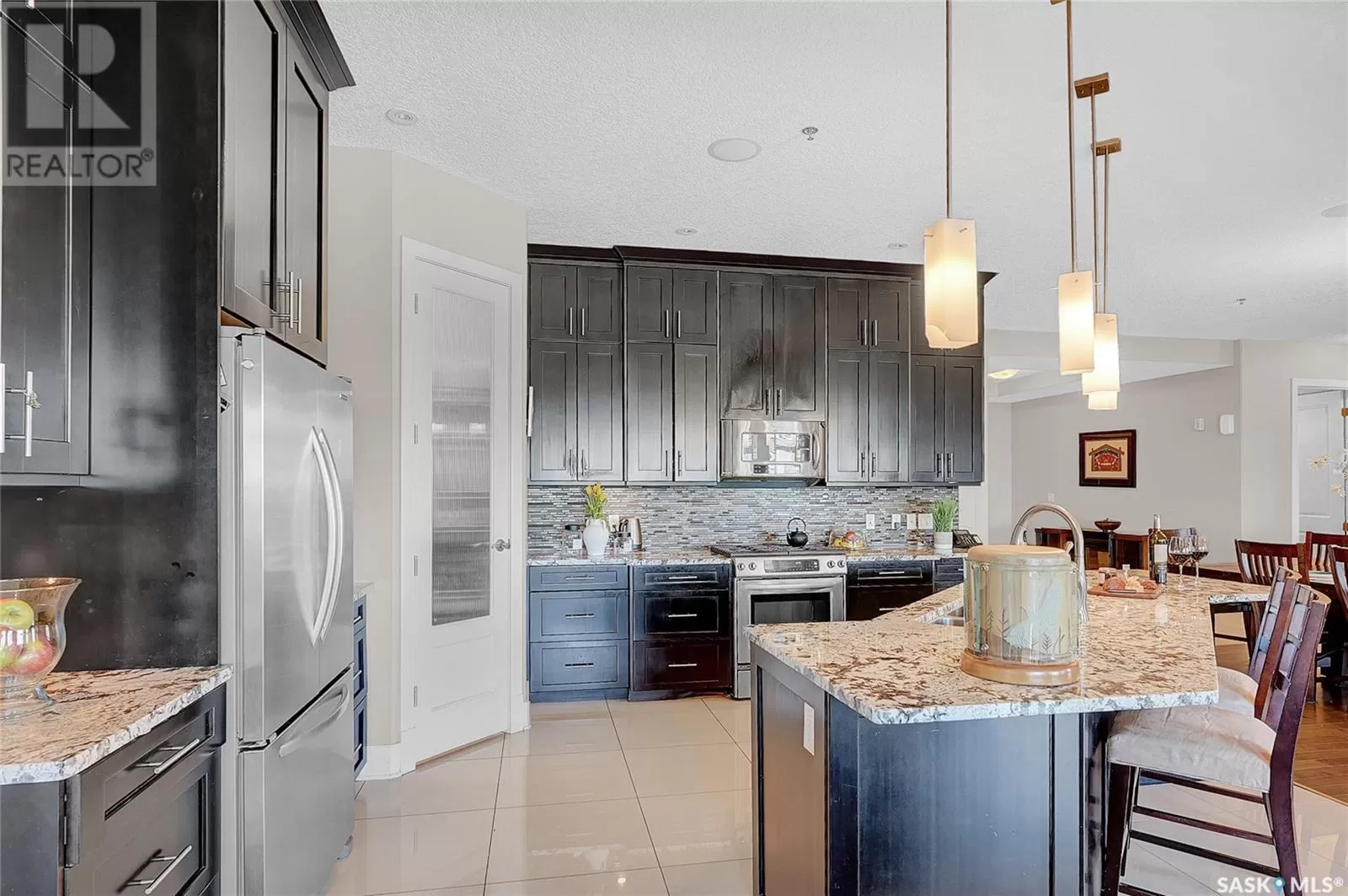 Unparalleled elegance & sophistication at Terrace East, a residence that epitomizes luxury living w/views of Crescent Park. This extraordinary condo is a sanctuary of style. Boasting granite, beautiful NEW hardwood flooring in the main living area & tile floors, that set a standard for upscale living. The grandeur of the 12-foot ceilings w/8ft solid core doors, add to the expansive open-concept living, magnified by floor to ceiling windows inviting an abundance of natural light w/access to 2 Balconies w/1 being screened in. Living Room adorn by sheer space, hosts a Gas Fireplace w/A/V h/u, in addition to the b/i Sound System set thru out. Dining area hosts a table fit for a king. Kitchen is a masterpiece w/island, ceiling-height cabinetry, pantry, top-of-the-line appliances including trash compactor, promises to inspire culinary exploration. This living space isnât finished yet, there is room for a gaming area, currently w/pool table & room for a bar & Patio Door leading to the NW Balcony to enjoy the summer sun overlooking the city skyline. Both balconies have natural Gas h/u & structured to support a hot tub if desired. There are 3 Bedrooms & Den that can used as 4th bedroom. Primary in the âEast Wingâ is a private retreat, complete w/Ensuite w/2 sinks, tile & glassed shower & a dream walk in closet. This wing is complete w/Den opening to the NE private screened in Balcony, welcoming the morning sun. The âWest Wingâ enjoys 2 bedrooms & Jack & Jill access to the 4pc. bath w/soaker tub & beautiful tile work & even a 2pc Bath. Terrace East is a secure luxury complex, offering 2 underground parking stalls, guest room, gym, mail & library Rms. 2 blocks of downtown w/a prestigious address across Crescent Park & steps to shopping, restaurants, & spas, ensuring a lifestyle of convenience & luxury. Click on the multimedia link to take a virtual tour of this Penthouse style condo & embrace the opportunity to live in one of the finest condominium buildings in the province. (id:27476)