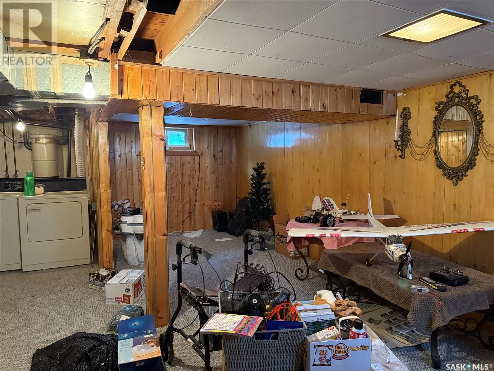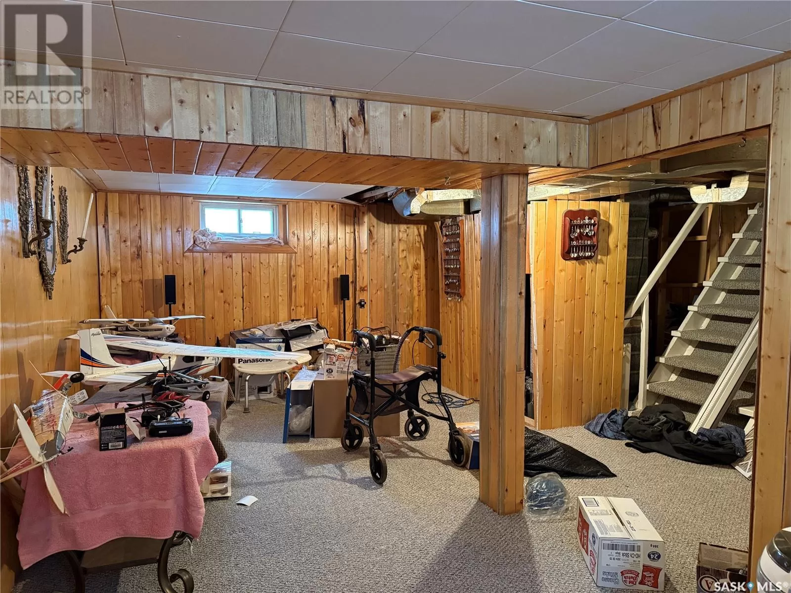 Great starter home or investment property. Just over 1100Sq ft on two levels. When you step through the front door you enter the cozy living room. To the right of the living room the 2 bedrooms and main bathroom are located. The bathroom has a safety walk in bathtub perfect for someone with mobility issues. Down the hall is the eat in kitchen that has an abundance of kitchen cupboards. Kitchen appliances are included for convenience (fridge, stove, hood fan). Around the corner from the kitchen are the stairs leading to the basement. There is also a stairlift installed that will be sold separately. Downstairs the finished basement has wall to wall cedar boards. There is enough room for a family room and a play/game/exercise area. There is an office/storage room on the one side of the basement and on the other side there is large 3pc bathroom and a separate laundry area (washer & dryer are included). Outside the backdoor is the deck with a platform lift to help someone with mobility issues. This will be sold separately. Last, but not least, there is a 2-car heated garage with concrete floor, built in shelving and a separate storage room. There is off street parking behind the garage and there are 2 storage sheds. Many updates done in the last 4yrs APV: Sewer line replaced with backflow valve, electrical panel replaced, shingles on house/garage/2 sheds (id:27476)