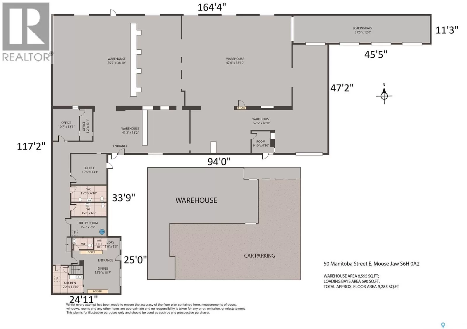 Welcome to an exceptional opportunity in downtown Moose Jaw! This expansive commercial warehouse boasts nearly 9,000 sq ft, providing a versatile space for your business needs. Conveniently located with easy access to the #1 highway, visibility is maximized for your enterprise. Featuring two offices, three bathrooms, a locker room, and a well-equipped kitchen space, this warehouse is designed to meet your operational requirements seamlessly. The practical layout includes three 9' overhead doors, perfectly suited for hauling trucks or semis, along with an additional 10' overhead door at the front of the building. Ample parking right in front ensures convenience for both staff and clients. Don't miss out on this prime location that combines functionality, accessibility, and prominence for your business success! ***All photos were taken during former tenant occupancy. Property is now vacant.*** (id:27476)