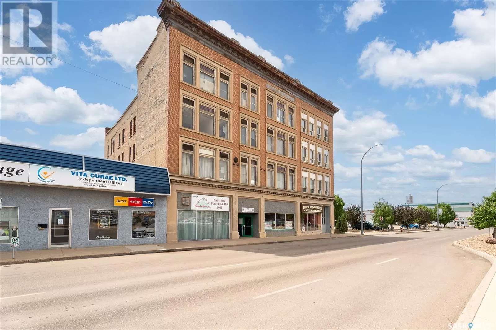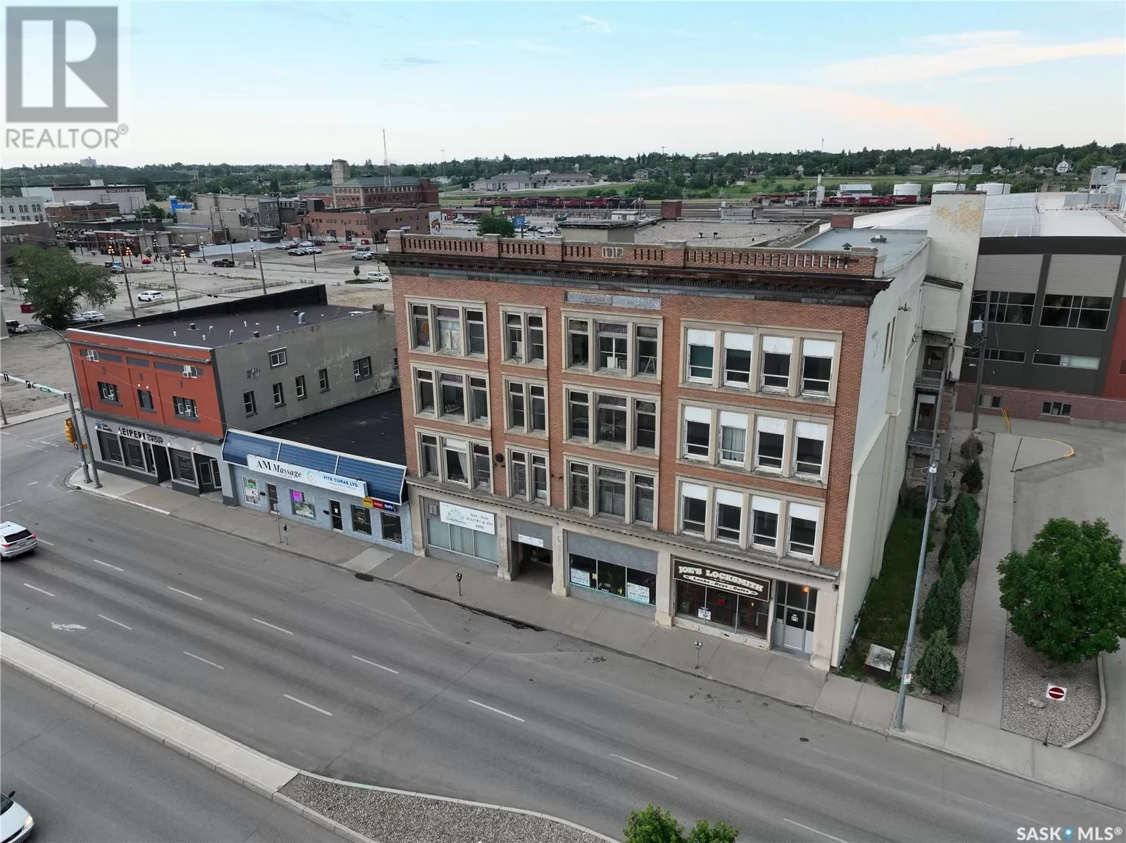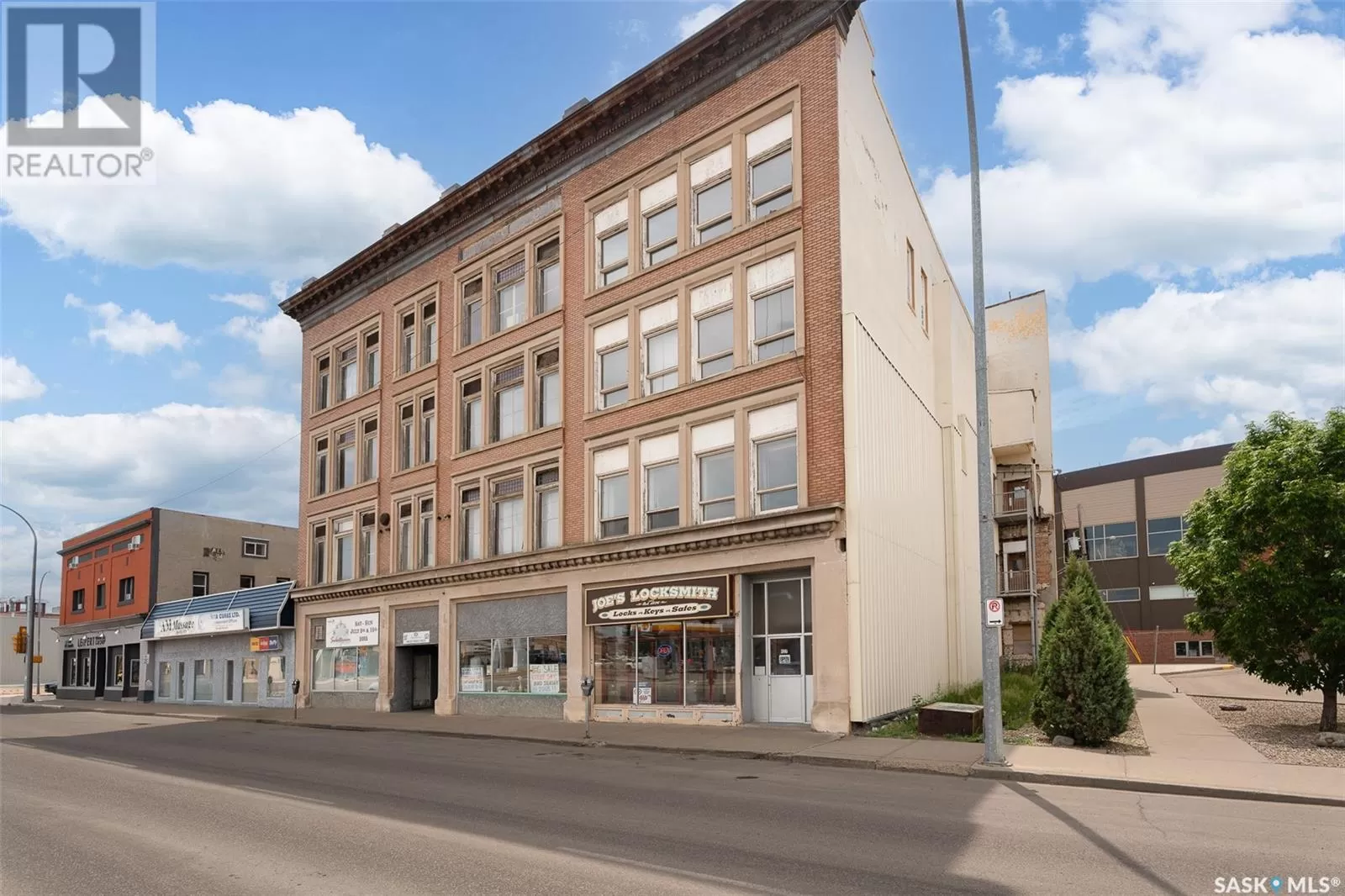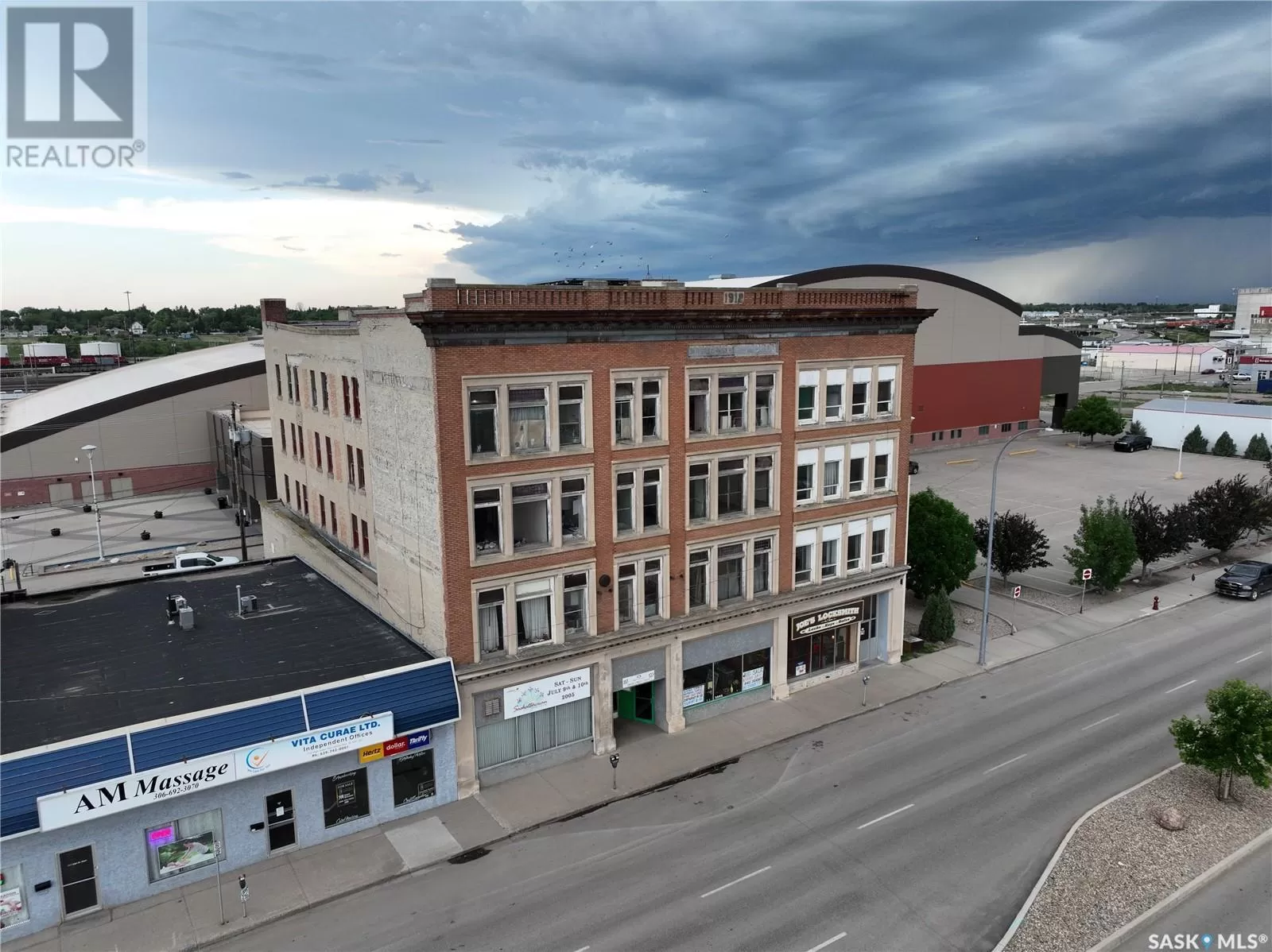 This historic 4 story commercial building located in the heart of downtown Moose Jaw right next door to the Moose Jaw Events Center has so much upside potential! This historic building was completed in 1913 known as the Allan-Cummings Department Store. This reinforced concrete building features 2 main floor commercial spaces totaling 5,500 sq.ft.. The next 3 floors boast 24 residential apartments! This building is serviced with a passenger elevator to all floors as well as a stunning spiral stair case from basement to 4th floor! All of the suites are 1 bedroom with 6 larger apartments that overlook high street at the front of the building. The remaining 18 suites are smaller one bedrooms. All suites feature a living room, smaller galley style kitchen, a bedroom and a 3 piece bathroom. All 26 suites are setup to have separate meters. The building is heated by a commercial steam boiler. If you are looking for a large mixed use commercial building with a large value-add component this is it. So much history in an excellent central location! Information package will be available for serious buyers. Reach out today to book your showing! (id:27476)