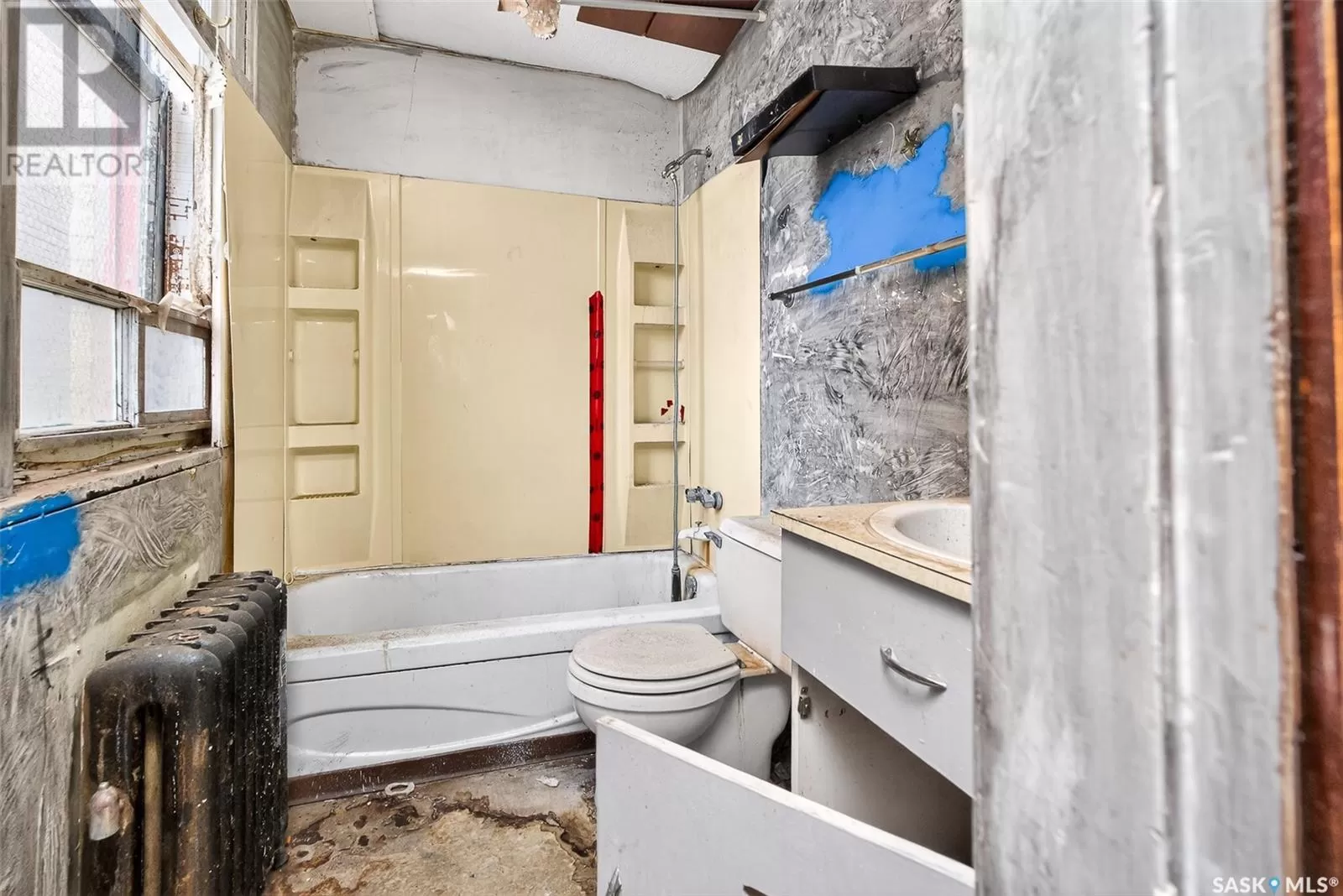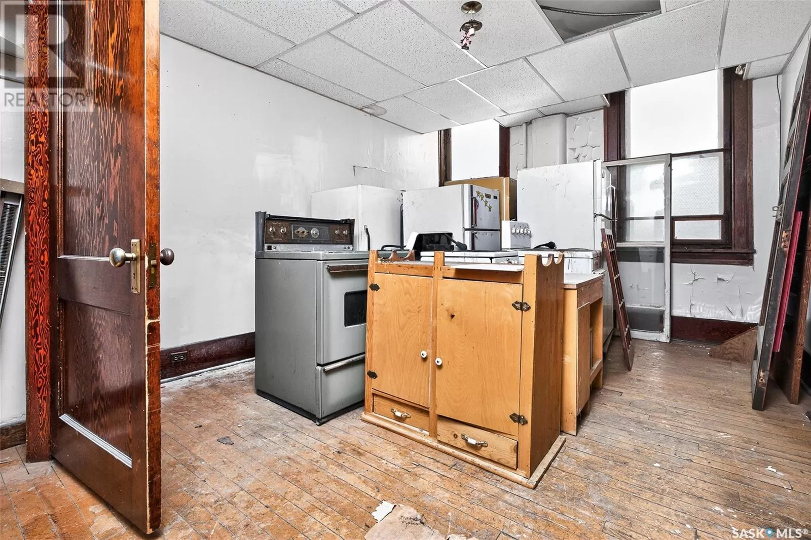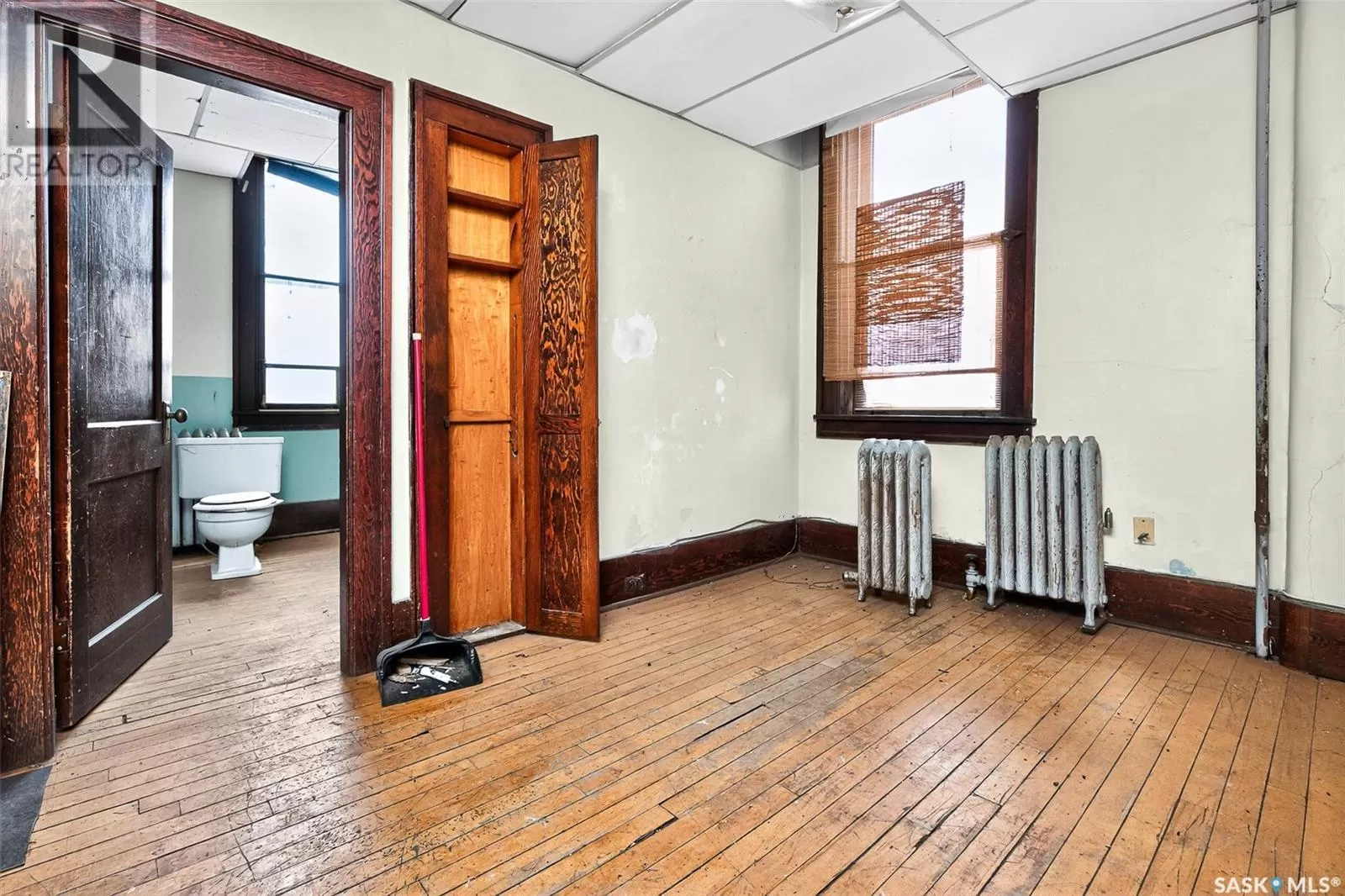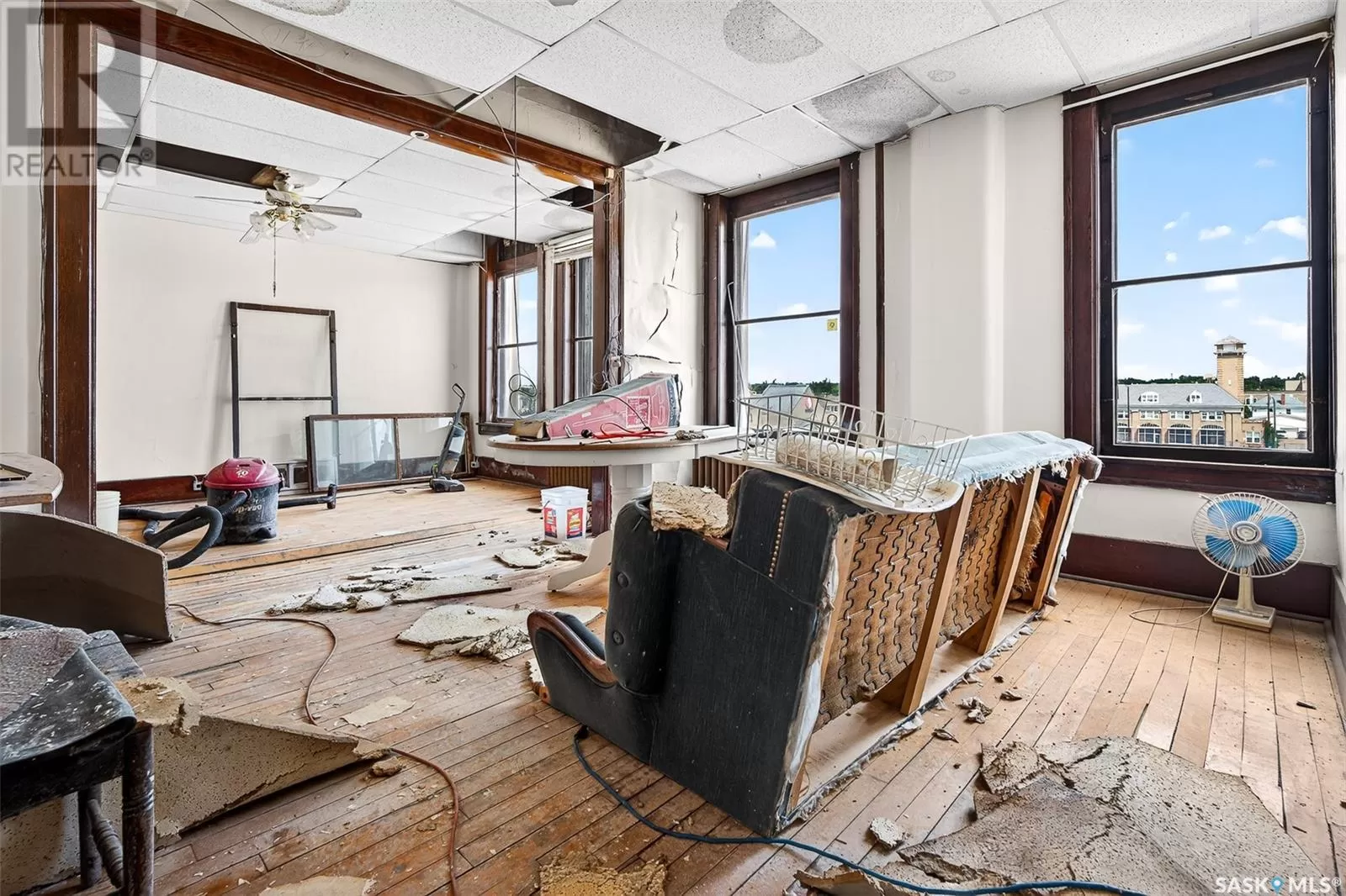 This historic 4 story commercial building located in the heart of downtown Moose Jaw right next door to the Moose Jaw Events Center has so much upside potential! This historic building was completed in 1913 known as the Allan-Cummings Department Store. This reinforced concrete building features 2 main floor commercial spaces totaling 5,500 sq.ft.. The next 3 floors boast 24 residential apartments! This building is serviced with a passenger elevator to all floors as well as a stunning spiral stair case from basement to 4th floor! All of the suites are 1 bedroom with 6 larger apartments that overlook high street at the front of the building. The remaining 18 suites are smaller one bedrooms. All suites feature a living room, smaller galley style kitchen, a bedroom and a 3 piece bathroom. All 26 suites are setup to have separate meters. The building is heated by a commercial steam boiler. If you are looking for a large mixed use commercial building with a large value-add component this is it. So much history in an excellent central location! Information package will be available for serious buyers. Reach out today to book your showing! (id:27476)