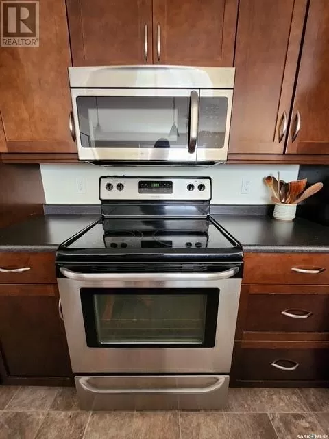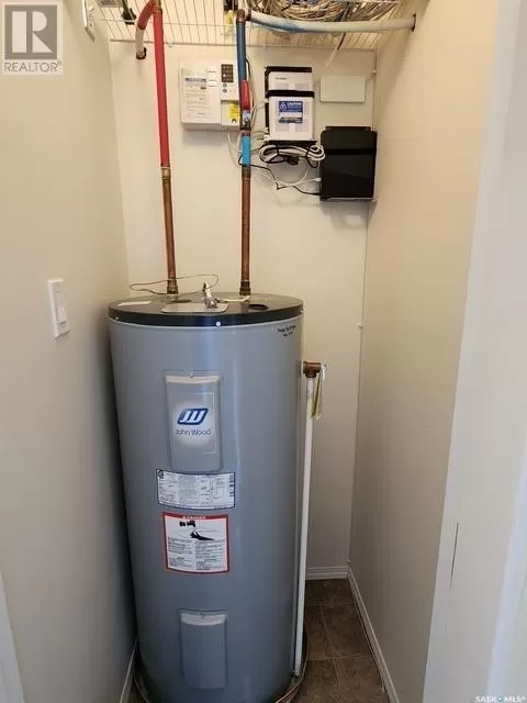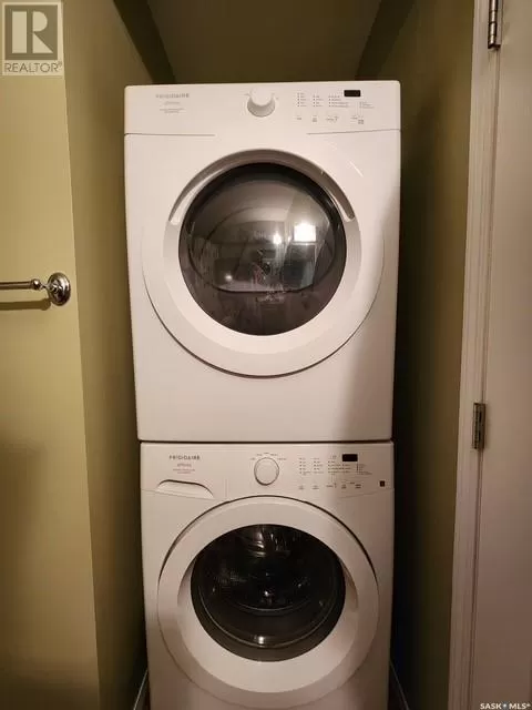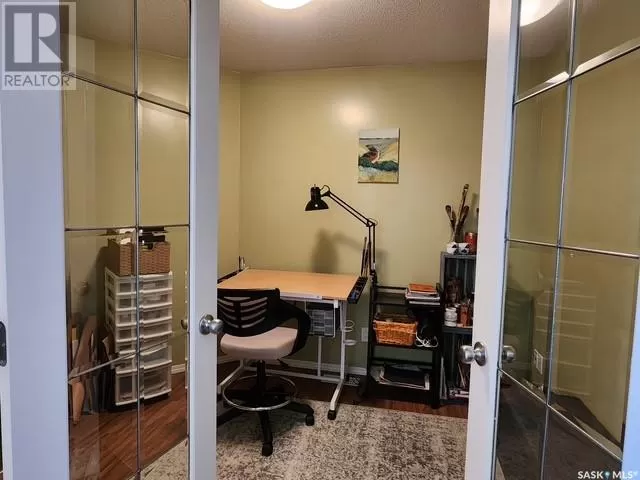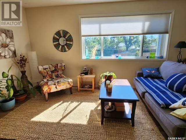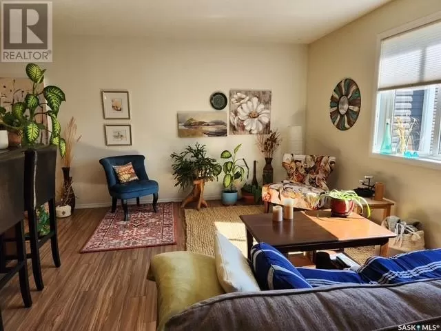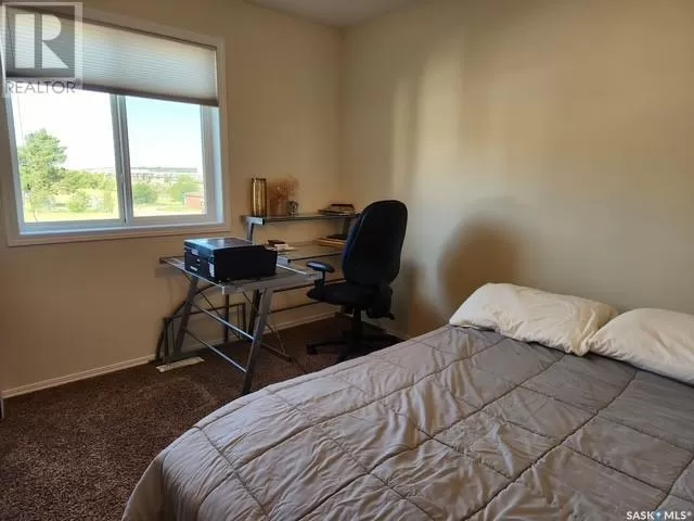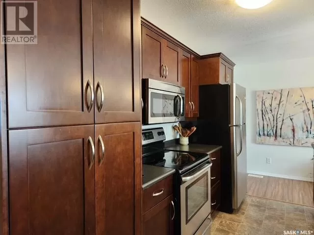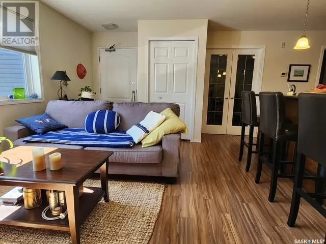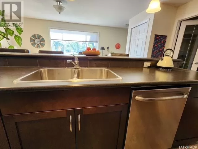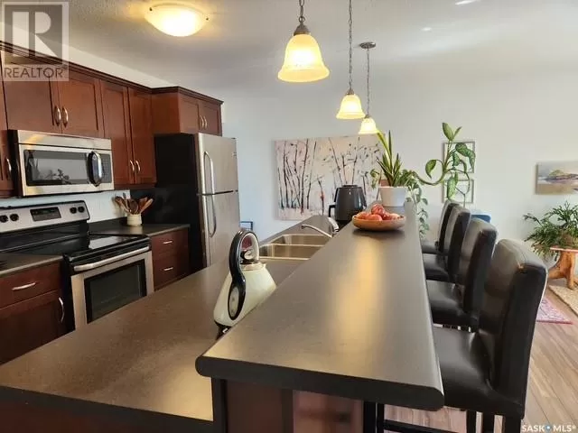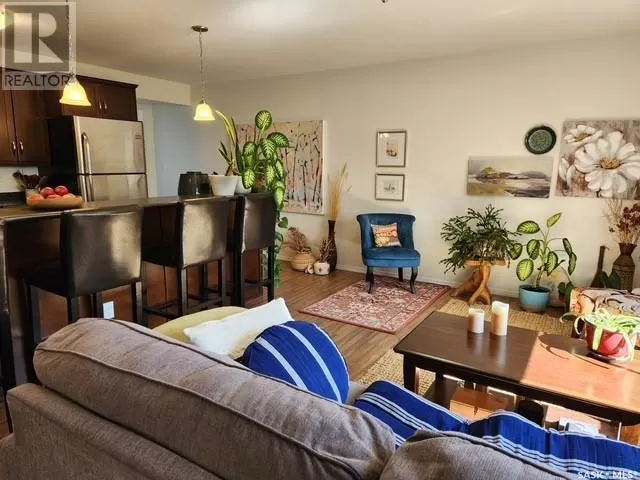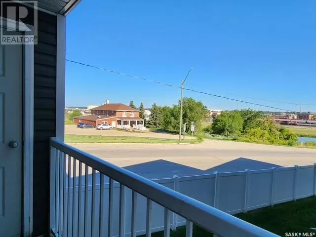 Just a sweet place to call home, plus a handy central location. You can get to the Air Base in just a few minutes, if that is important to you. OR, downtown is just a few minutes in the other direction. ALSO, if you love Moose Jaw and its Parks, you will be happy to learn that this condo is just a two-block walk to the ever-popular Wakamow Park. As you step into this fine 2nd floor unit, you will be impressed with the welcoming open design of the Kitchen/Dining/Living area. The galley kitchen, with stainless steel appliances (Stove, Fridge, Dishwasher, Microwave with fan), is designed with a two-tier, 11-foot-long islandâwork space on the kitchen side and a spacious coffee/breakfast bar on the living room side. Four handy bar stools are there already, waiting for you to enjoy that morning coffee. There are 2 Bedrooms, 1 Bathroom, In Suite Laundry, PLUS a special room with glassed FRENCH DOORS off the kitchen area. You could use it for Dining, an Office, a Guest Room, or it would make a great Craft Room. Your design and choice! CENTRAL AIR makes for comfort on those warmer days. You can capture the city skyline and the sunsets from the BALCONY. This is a newer BUILDING, centrally located, and makes for very AFFORDABLE living. Donât miss the opportunity. You can MOVE right in! (id:27476)