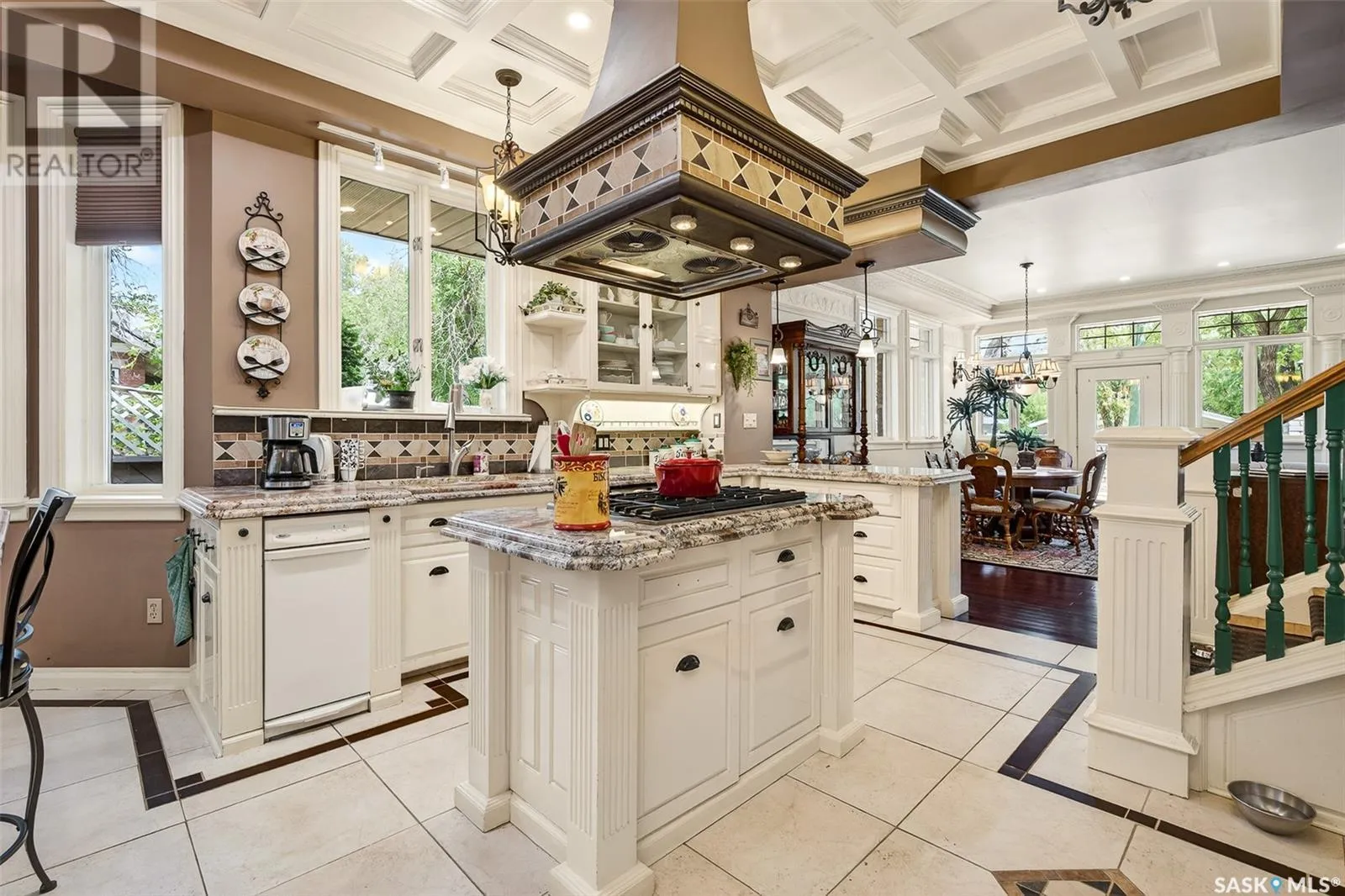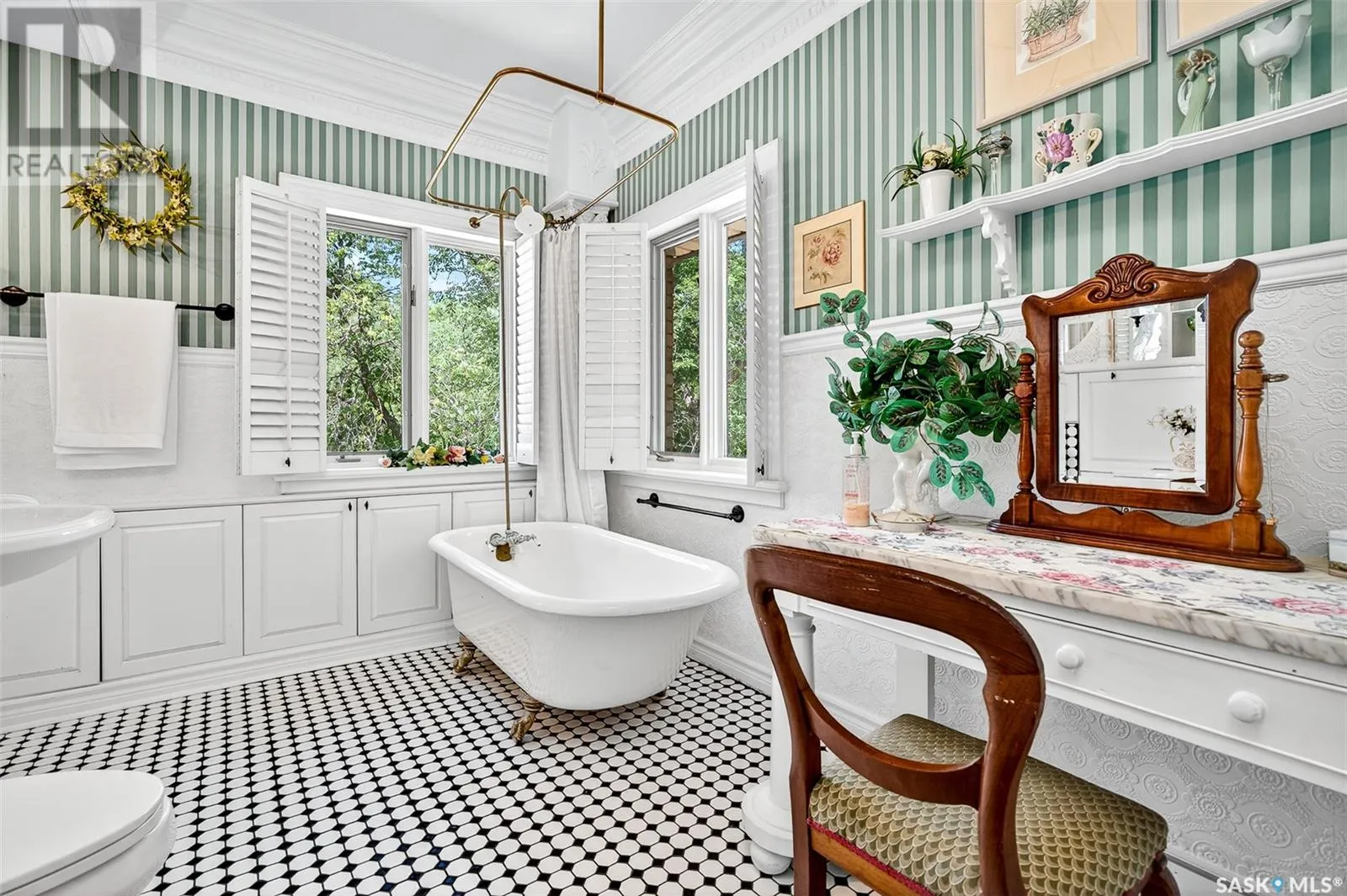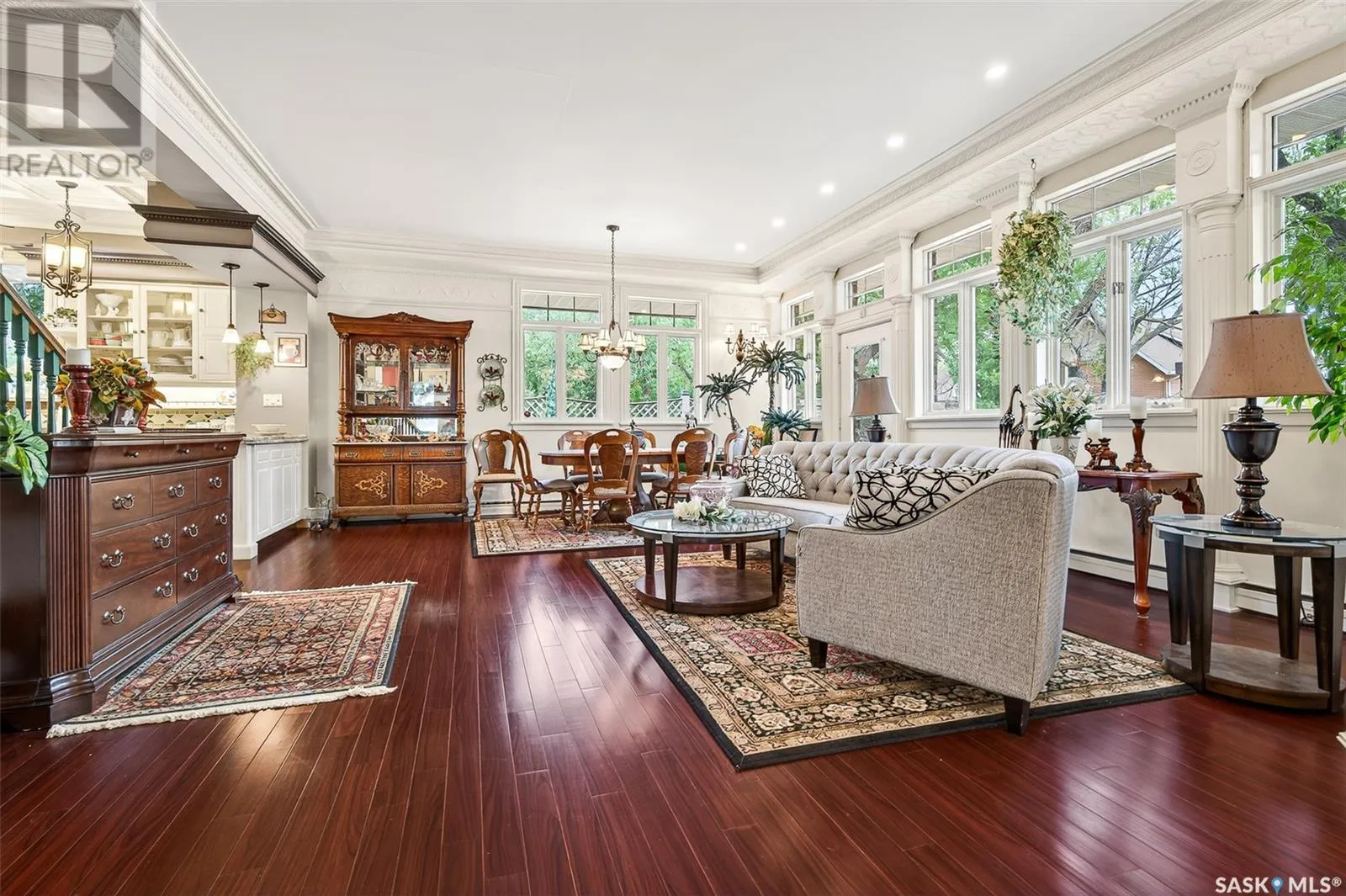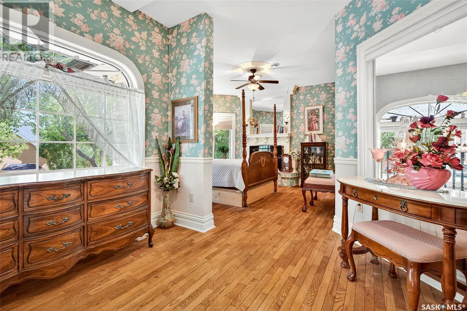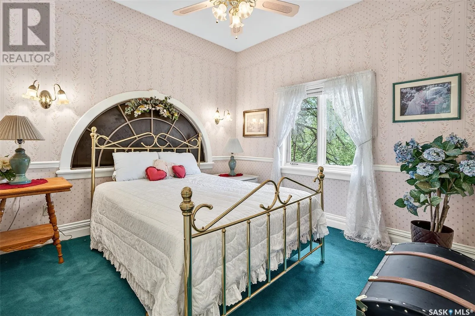 Victorian Elegance in the Avenues! Built in 1990, this 3-storey home offers nearly 5,000 sq/ft of exquisite living space, blending old-world charm with modern comforts. Featuring 4 spacious bedrooms, 6 bathrooms, including a luxurious primary suite with a spa-like 4pc ensuite, complete with a clawfoot tub with shower. The home is adorned with granite countertops, porcelain and hardwood flooring, and four fireplaces, creating warm, inviting spaces throughout. The dream eat-in kitchen is outfitted with a BI gas stove and a vintage-style antique fridgeâperfect for the inspired chef. Enjoy the charm of the grand oak staircase that gracefully connects all three levels, leading to a 3-season sunroom on the second floorâideal for relaxing or entertaining. Comfort is paramount, with in-floor heating, a heated double attached garage, and a detached workshop for all your projects or hobbies. Amazing family home or ideal to use as a Bed & Breakfast or home business. Fun Fact: Scenes from Just Friends (2005) with Ryan Reynolds and Amy Smart were filmed here! This unique property is not just a homeâitâs a lifestyle. Whether youâre looking for a grand family residence or a business opportunity such as a Bed & Breakfast, this is a rare find you wonât want to miss. Please ask your REALTOR® for the information package. (id:27476)