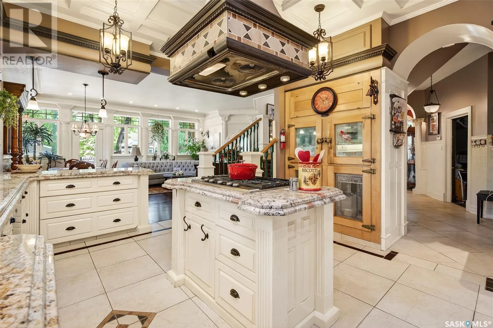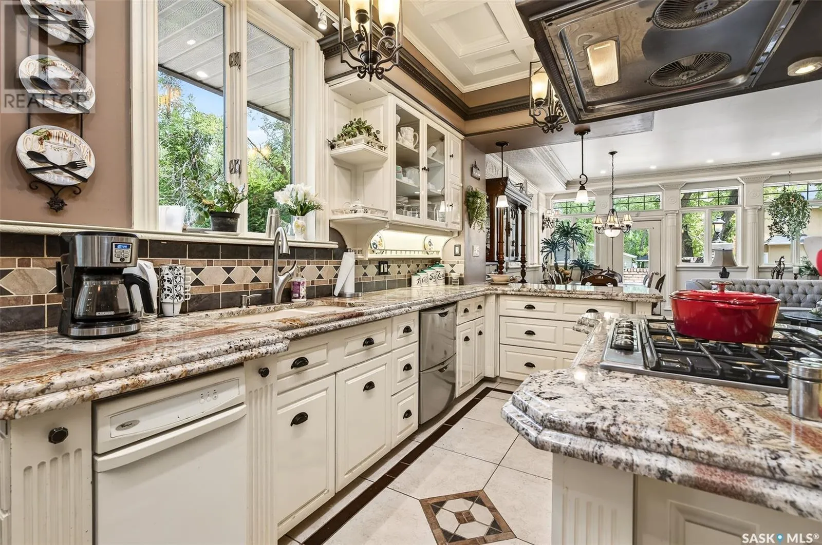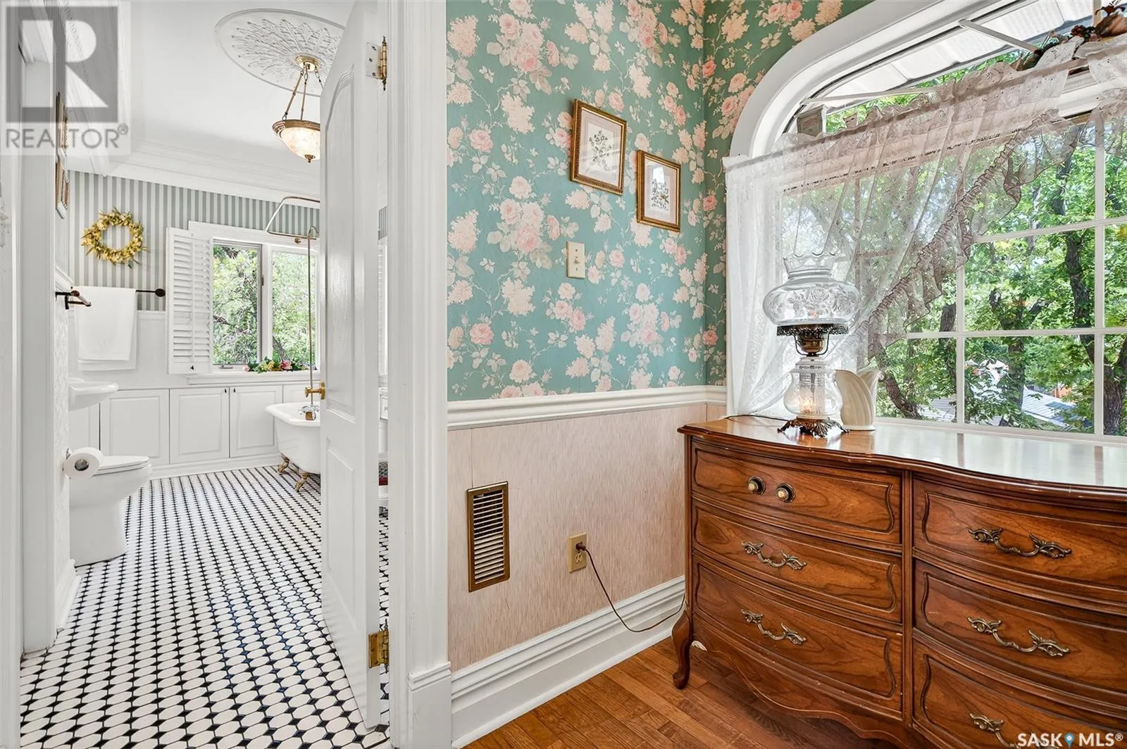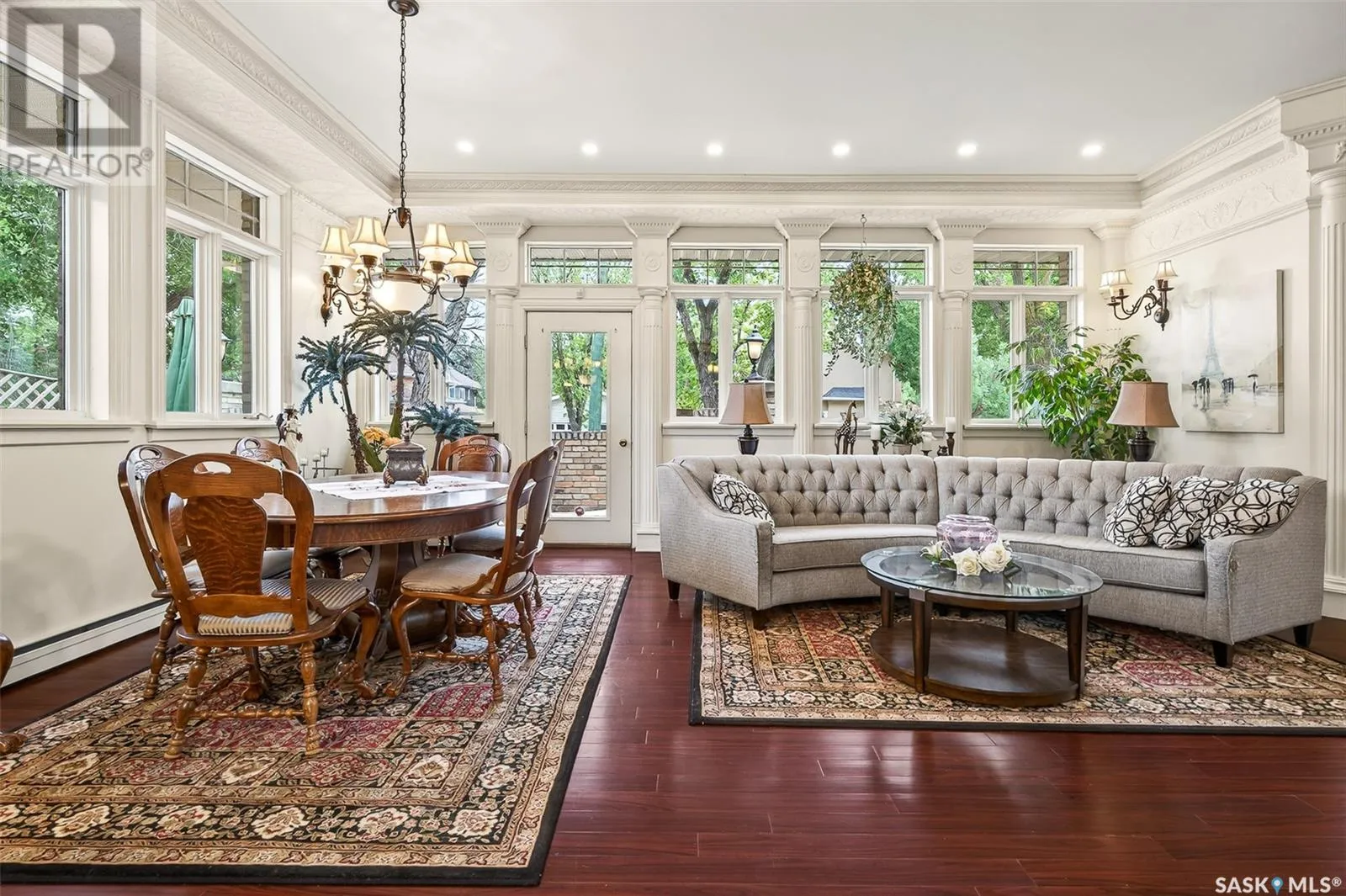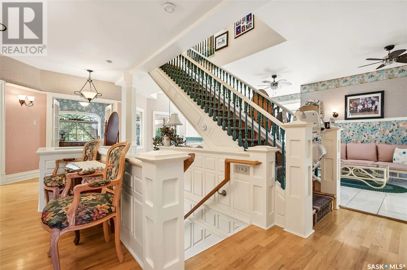 Victorian Elegance in the Avenues! Built in 1990, this 3-storey home offers nearly 5,000 sq/ft of exquisite living space, blending old-world charm with modern comforts. Featuring 4 spacious bedrooms, 6 bathrooms, including a luxurious primary suite with a spa-like 4pc ensuite, complete with a clawfoot tub with shower. The home is adorned with granite countertops, porcelain and hardwood flooring, and four fireplaces, creating warm, inviting spaces throughout. The dream eat-in kitchen is outfitted with a BI gas stove and a vintage-style antique fridgeâperfect for the inspired chef. Enjoy the charm of the grand oak staircase that gracefully connects all three levels, leading to a 3-season sunroom on the second floorâideal for relaxing or entertaining. Comfort is paramount, with in-floor heating, a heated double attached garage, and a detached workshop for all your projects or hobbies. Amazing family home or ideal to use as a Bed & Breakfast or home business. Fun Fact: Scenes from Just Friends (2005) with Ryan Reynolds and Amy Smart were filmed here! This unique property is not just a homeâitâs a lifestyle. Whether youâre looking for a grand family residence or a business opportunity such as a Bed & Breakfast, this is a rare find you wonât want to miss. Please ask your REALTOR® for the information package. (id:27476)