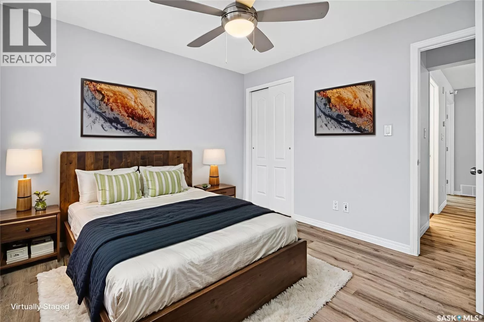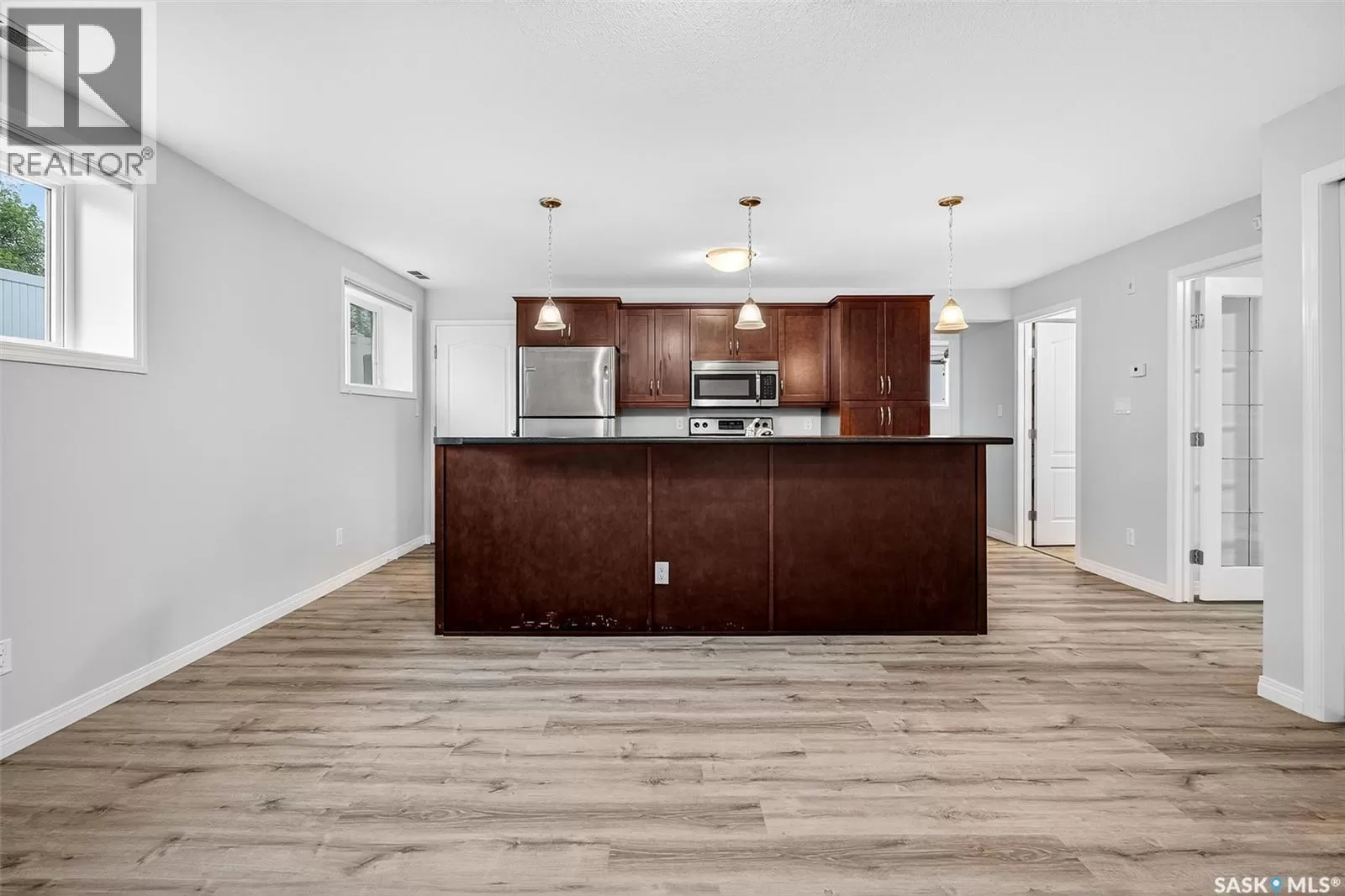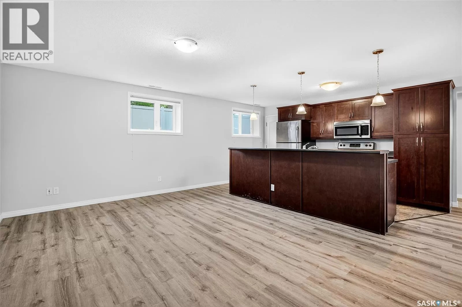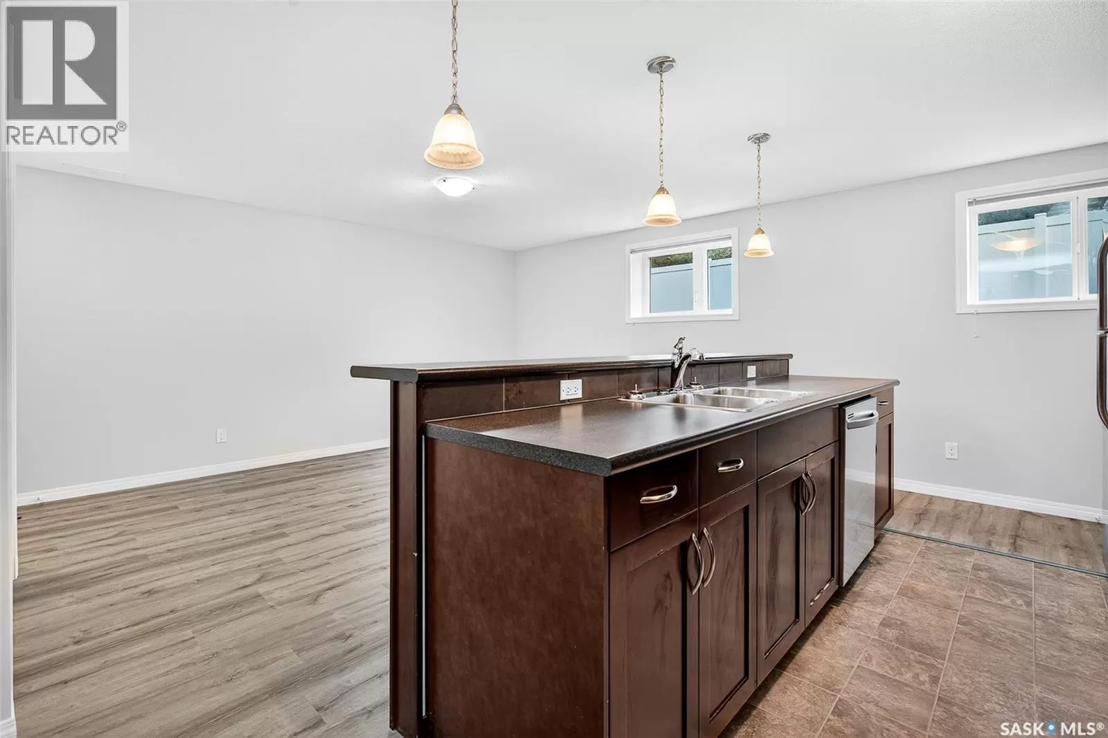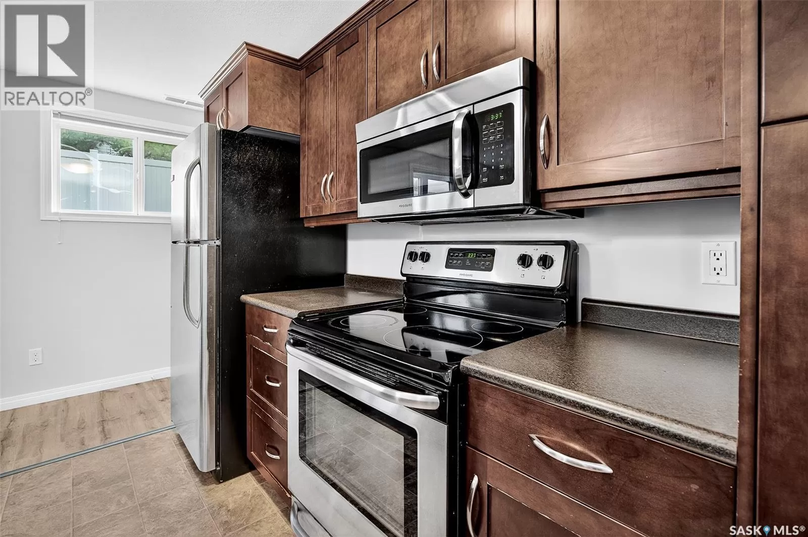 Are you looking for easy living? This beautifully updated main floor condo sits in the South West corner and boasts no stairs - which is sure to be a hit. Heading inside we find a large open concept living area! A spacious living room opens to a large eat-up island with stunning wood cabinetry. The spacious galley style kitchen boasts lots of storage and counter space as well as a stainless steel appliance package! Down the hall we find stunning french doors leading to an office. Next we find a spacious 4 piece bathroom with in unit laundry! At the end of the hall we find two good sized bedrooms! Brand new vinyl plank flooring and baseboards just installed, new hot water tank in '22 and a new AC in '18. This condo has been beautifully cared for - pride of ownership shows throughout! Centrally located within walking distance to downtown and Wakamow park. Low condo fees and a quick possession available! Reach out today to book your showing! (id:27476)