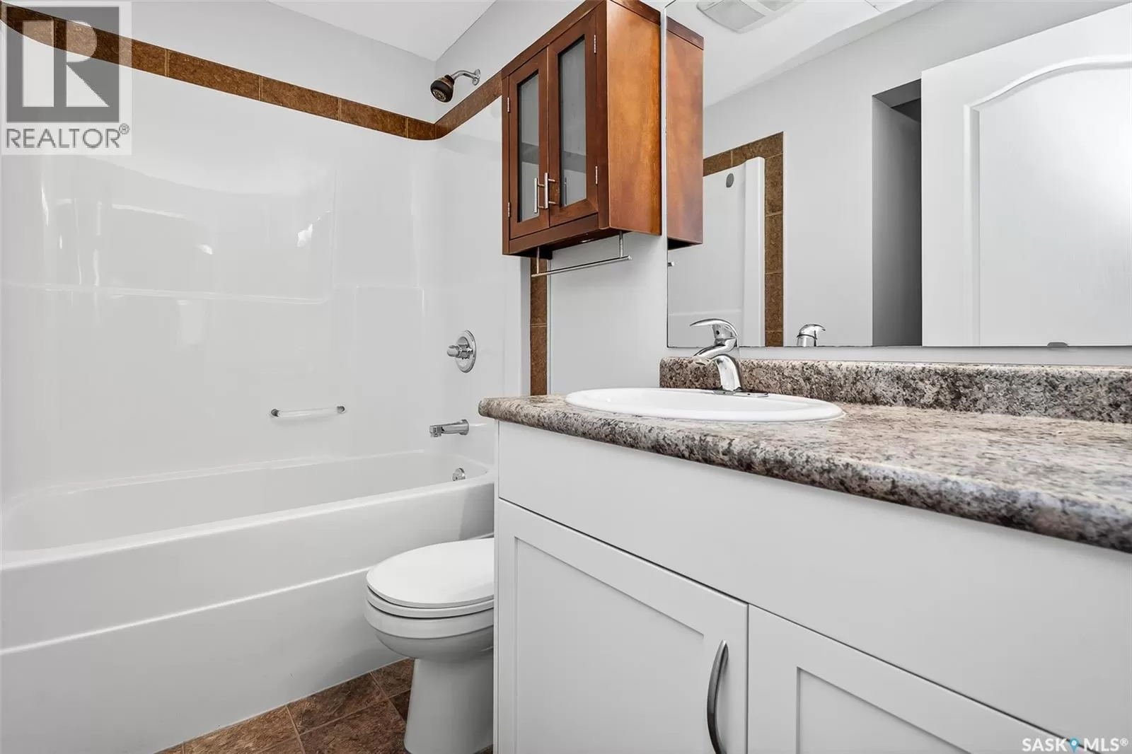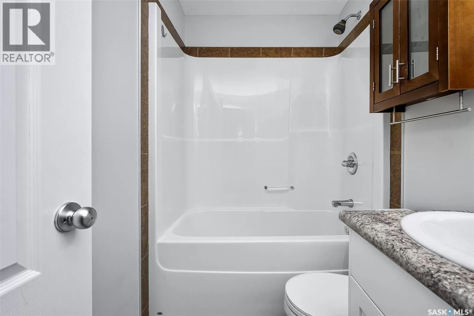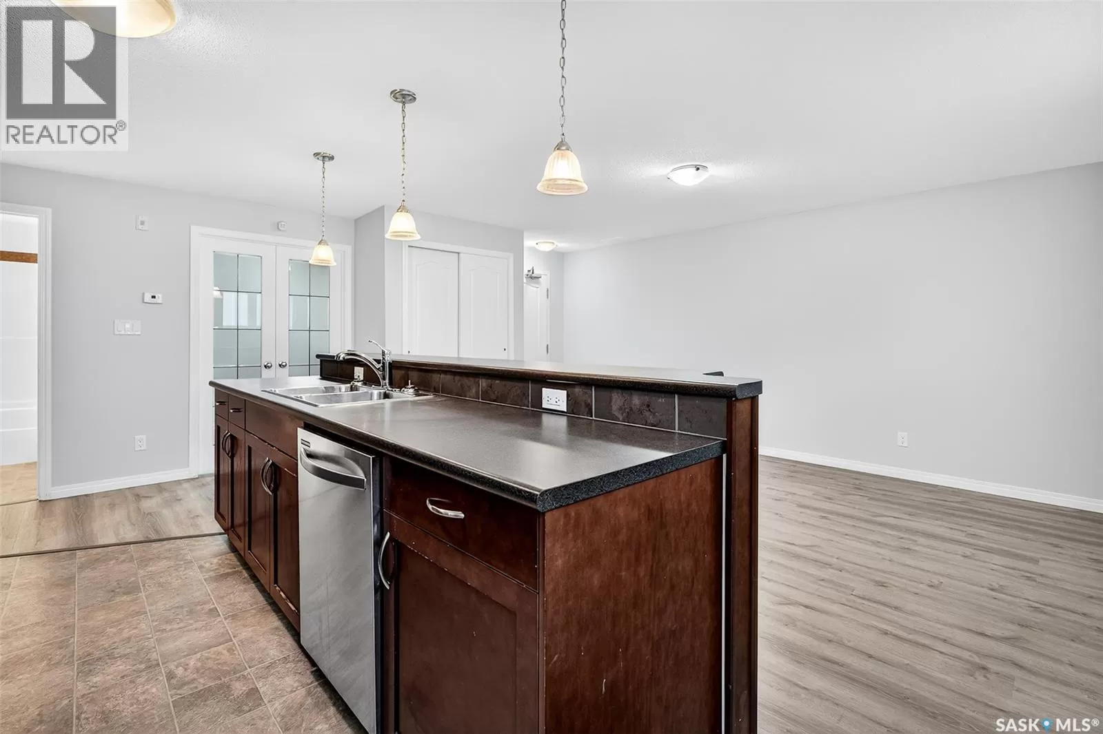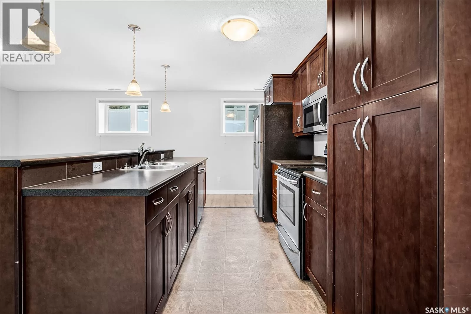 Are you looking for easy living? This beautifully updated main floor condo sits in the South West corner and boasts no stairs - which is sure to be a hit. Heading inside we find a large open concept living area! A spacious living room opens to a large eat-up island with stunning wood cabinetry. The spacious galley style kitchen boasts lots of storage and counter space as well as a stainless steel appliance package! Down the hall we find stunning french doors leading to an office. Next we find a spacious 4 piece bathroom with in unit laundry! At the end of the hall we find two good sized bedrooms! Brand new vinyl plank flooring and baseboards just installed, new hot water tank in '22 and a new AC in '18. This condo has been beautifully cared for - pride of ownership shows throughout! Centrally located within walking distance to downtown and Wakamow park. Low condo fees and a quick possession available! Reach out today to book your showing! (id:27476)