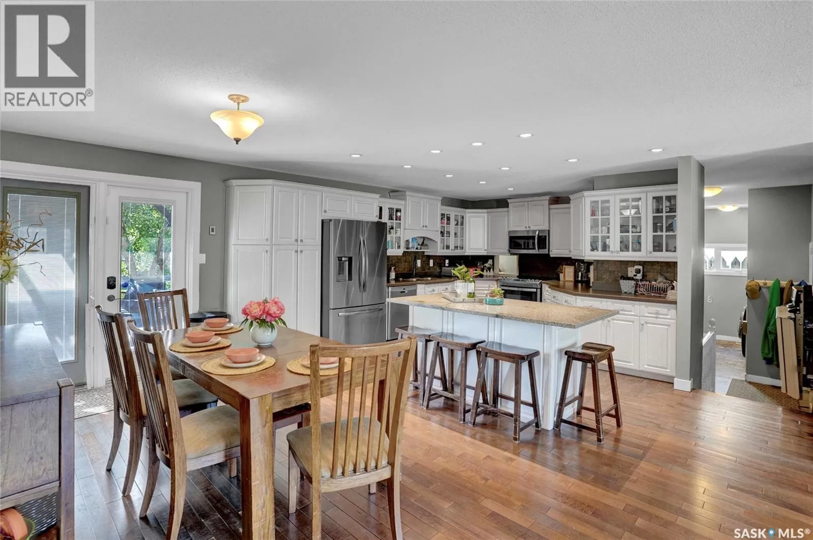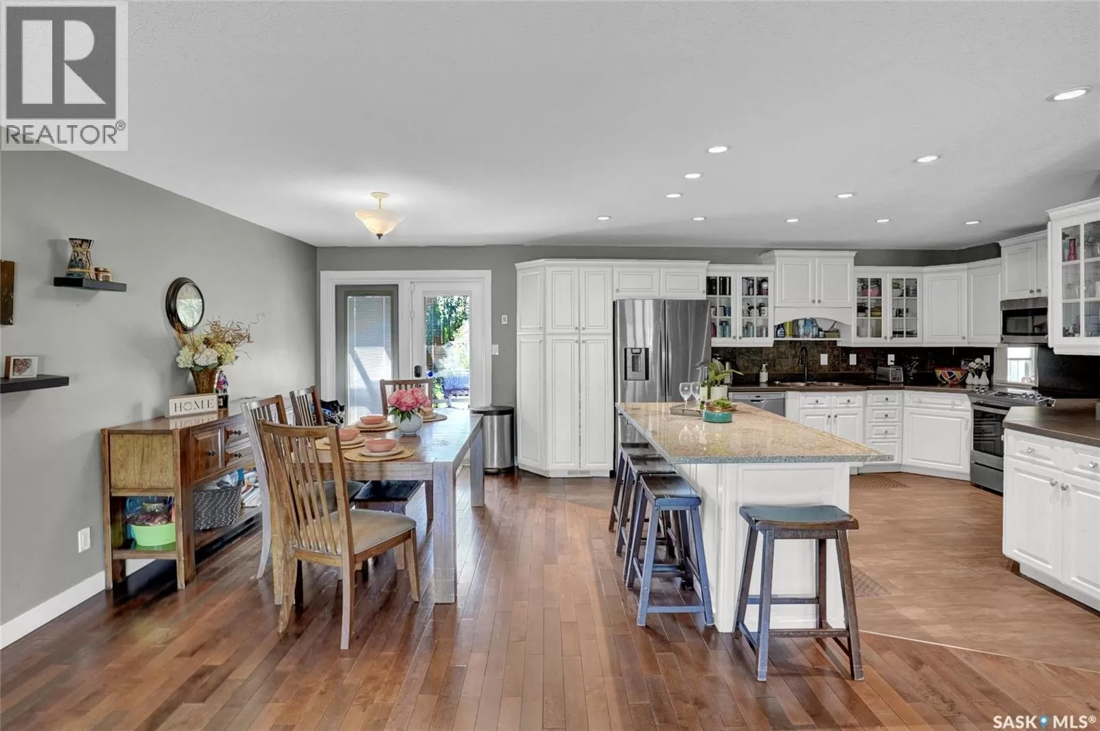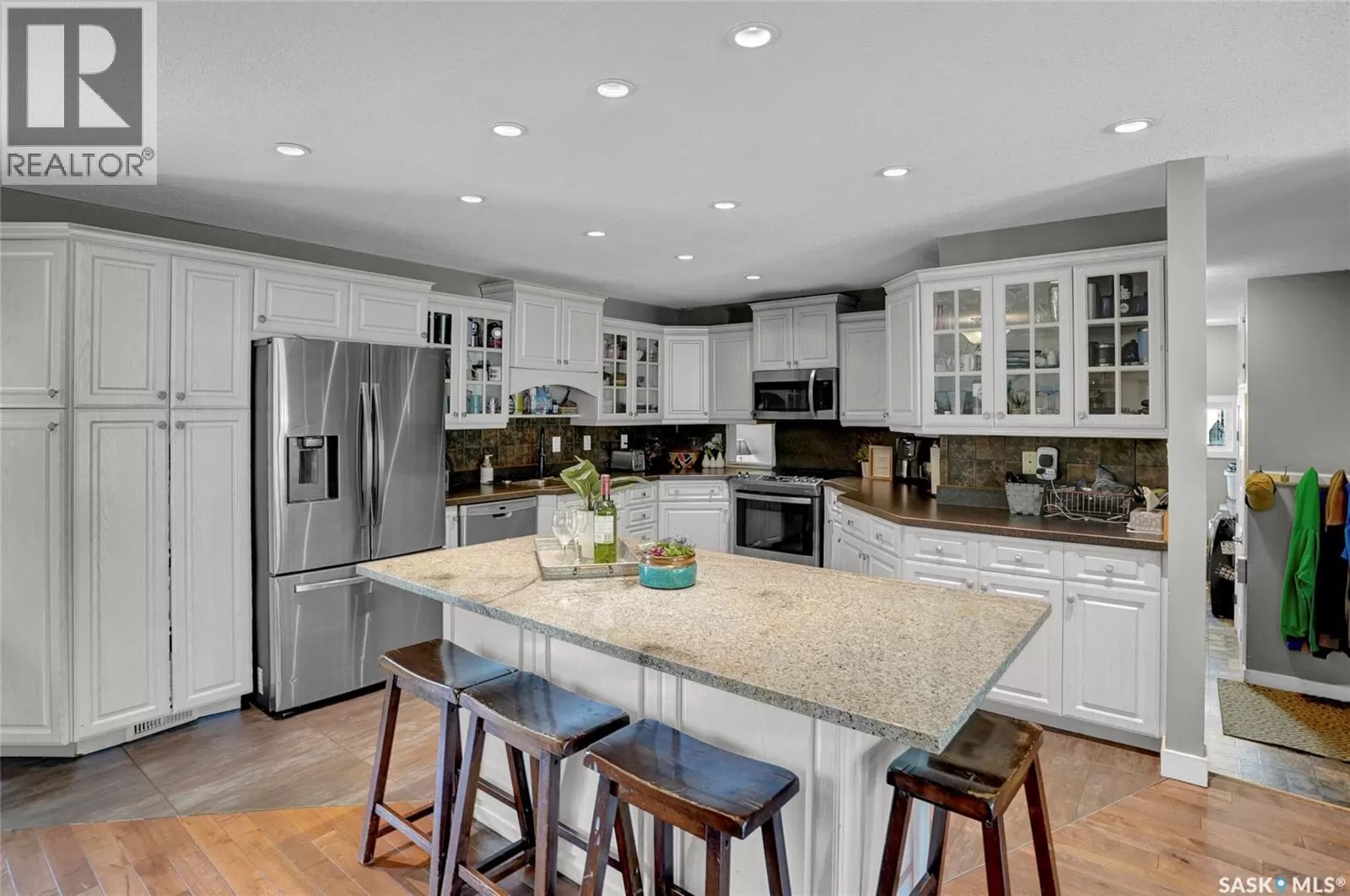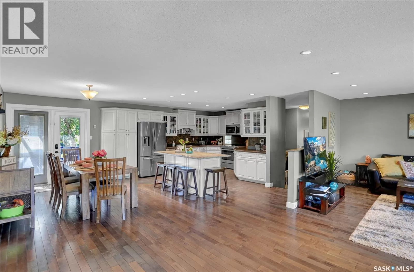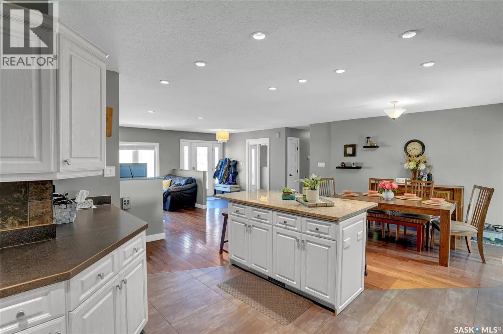 Are you searching for the perfect space for your family in a sought-after neighbourhood of Moose Jaw? Look no further! This rare bungalow split home not only provides ample space but also features a stunning large fenced yard, approximately 71ft x 156ft, nestled in desirable VLA. You are greeted by the front walkway leading to both a single att. insulated garage & an RV/boat drive. Entering the foyer, you are introduced to an open-concept design that flows effortlessly. The living room highlighted by a bay-style window & hardwood floor that continue seamlessly into the dining room & main bedrooms. The dining area offers plenty of room for entertaining & kitchen is a dream w/center island, white cabinetry, ample counter space & built-in pantry for all your needs. A patio door from this area opens to the main deck for indoor-outdoor living. The main floor houses 3 bedrooms, w/the primary having an ensuite featuring a walk-in shower & walk-in closet. The floor also boasts a fantastic family room where you can cozy up by the gas fireplace set in Tindal stone. This room also provides access to the deck w/a gazebo. The main floor is complete w/an updated 4pc. bath, 2pc. bath, laundry room equipped w/counter & cabinets, along w/ access to the garage. The lower level offers substantial space w/family & game areas. It includes 2 bedrooms (windows may not meet fire code), 1 of which features a walk-in closet. An updated 4pc. bath, storage rooms & even a usable crawl space currently used for playing hockey sticks. The backyard is truly an oasis, boasting a 2-tiered deck complete w/pergola-style cover & gazebo. The mature, landscaped yard is fenced and offers a sense of privacy that is perfect for summer entertaining. This home is ideal for a large family, situated on a fantastic lot in the prime VLA neighbourhood. This is your opportunity to own a spacious family home in an excellent location. CLICK ON THE MULTI MEDIA LINK FOR A VISUAL TOUR and call for your personal tour. (id:27476)