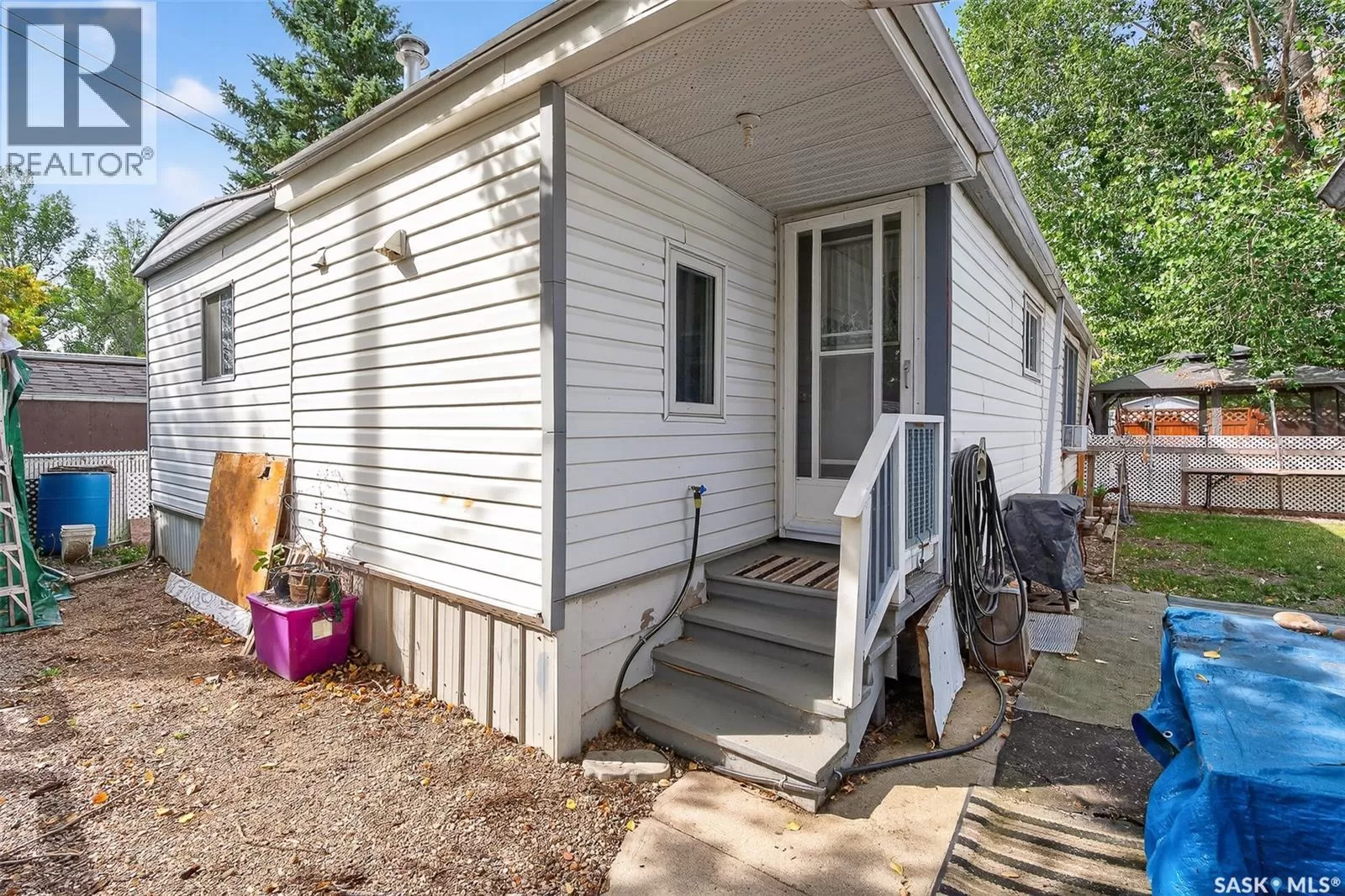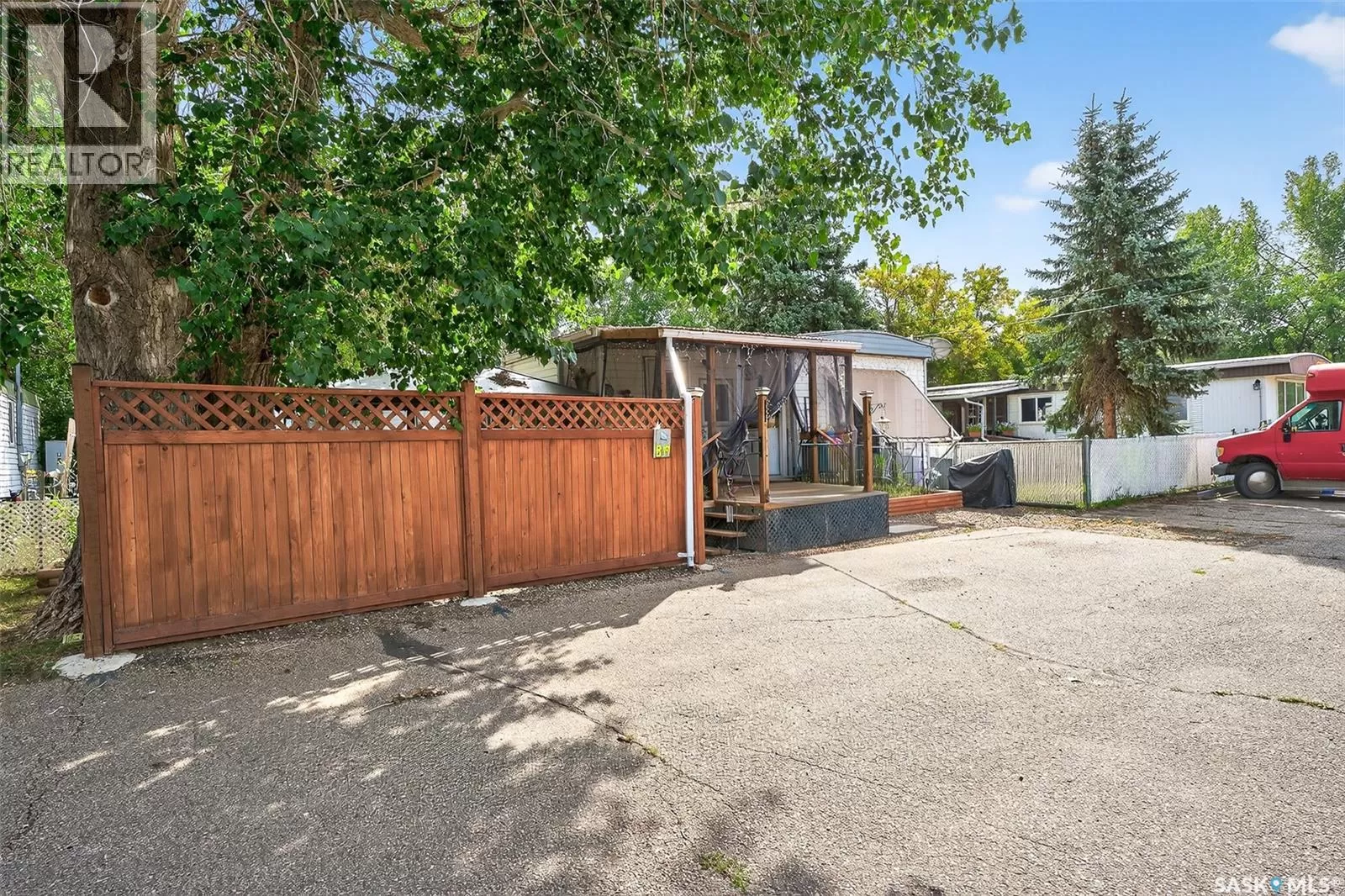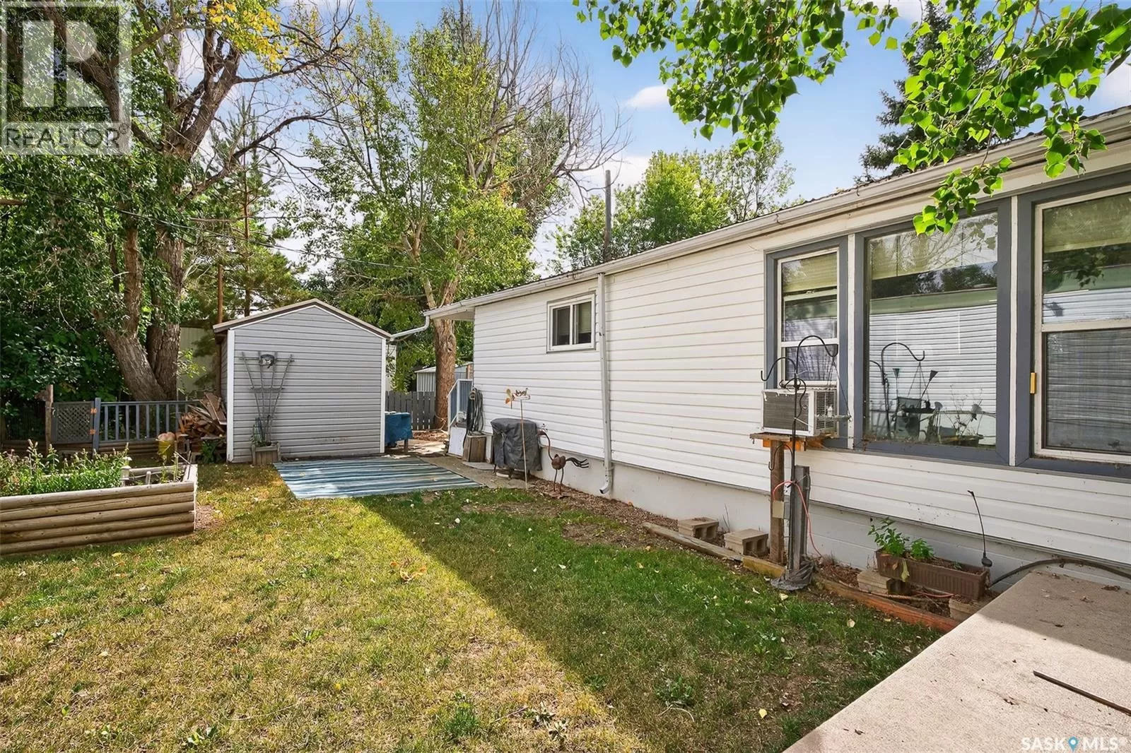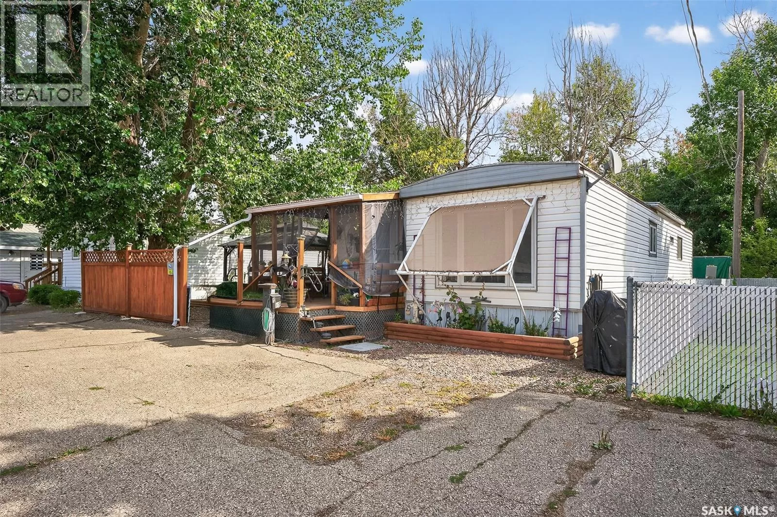 PRAIRIE OASIS TRAILER COURT - Super Cute and Well Maintained 2 bedroom 1080 sq. ft mobile home...Bright open concept living area. Front entrance with deep closet. Kitchen features large island with eat up snack counter, lots of white cabinets plus a pantry and is complete with fridge and stove. Large front facing living room. Spacious dining room with a huge window overlooking your side yard. Full 4pce bathroom, a large mud room at the back entrance and a separate laundry room complete with washer and dryer. Newer deck on front, screened patio, fenced and landscaped side yard with garden boxes and an 8x14 garden shed. Window air conditioner in dining room. Some updated windows including the front window, newer water heater. Monthly fees are $748.21. This includes lot pad fees, city licensing fee, plus garbage and recycling. Lot fees covers your water, sewer, park maintenance and snow removal. CALL A REALTOR TODAY TO VIEW... , (id:27476)