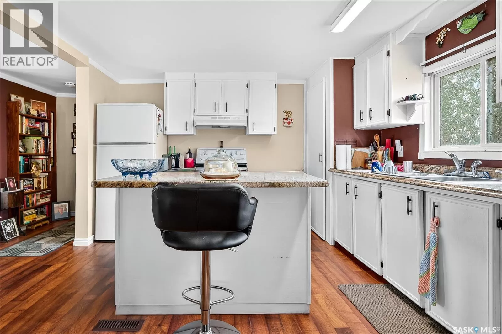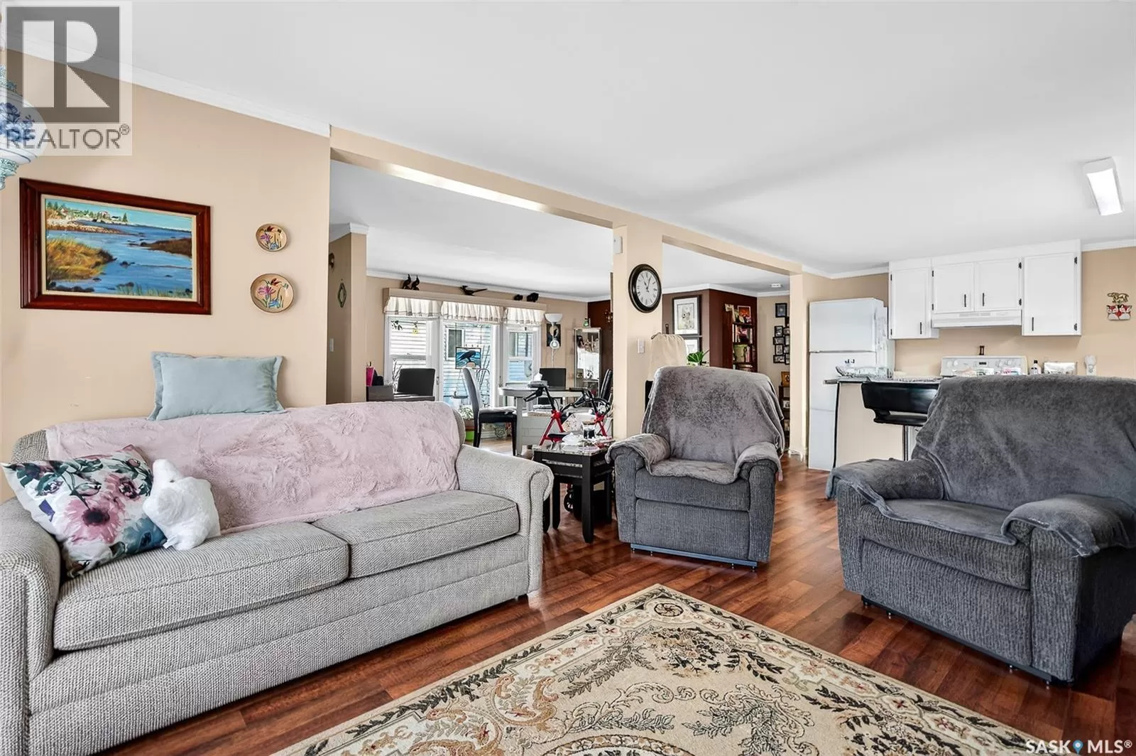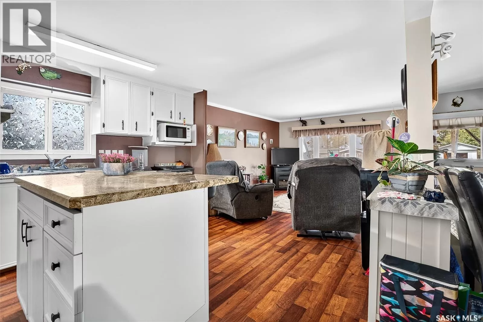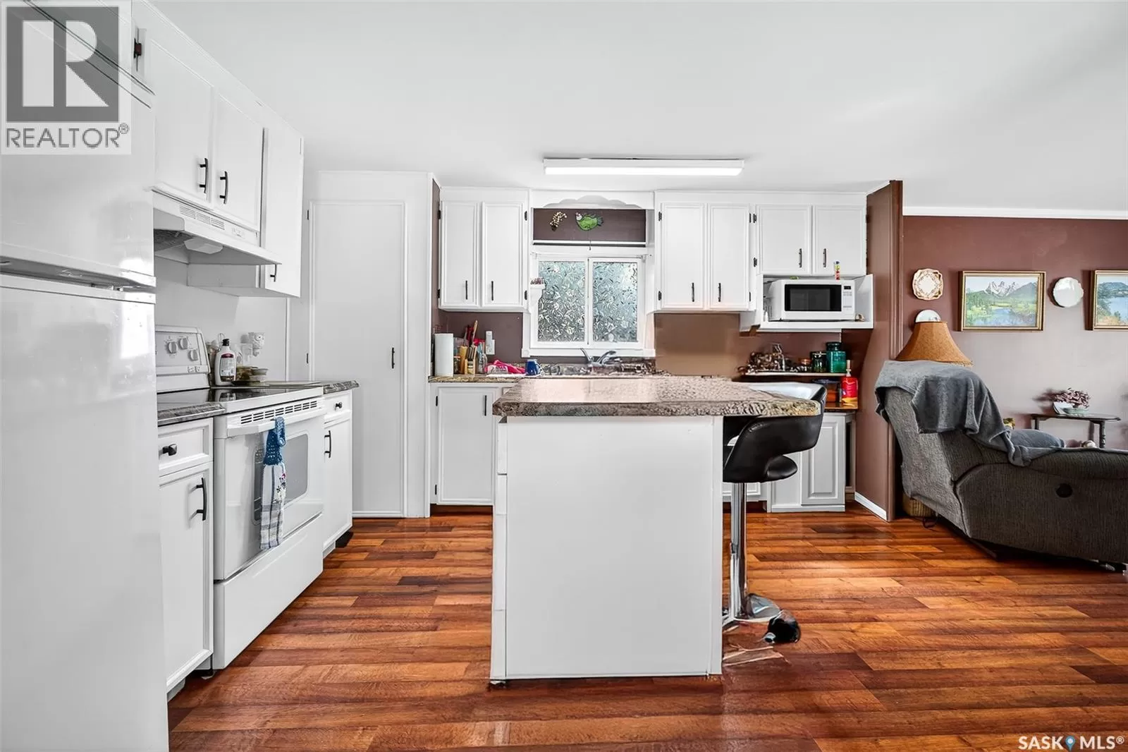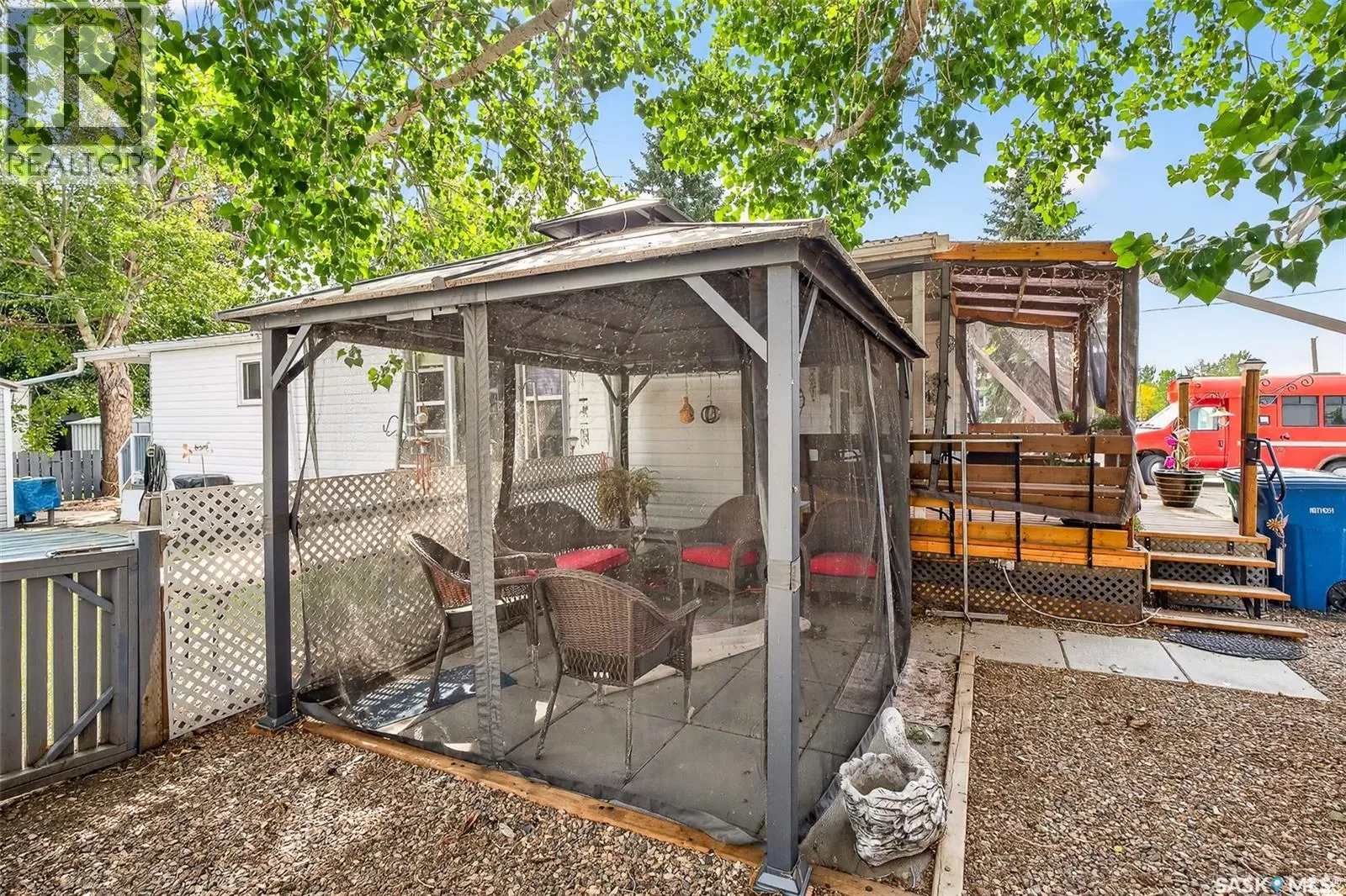 PRAIRIE OASIS TRAILER COURT - Super Cute and Well Maintained 2 bedroom 1080 sq. ft mobile home...Bright open concept living area. Front entrance with deep closet. Kitchen features large island with eat up snack counter, lots of white cabinets plus a pantry and is complete with fridge and stove. Large front facing living room. Spacious dining room with a huge window overlooking your side yard. Full 4pce bathroom, a large mud room at the back entrance and a separate laundry room complete with washer and dryer. Newer deck on front, screened patio, fenced and landscaped side yard with garden boxes and an 8x14 garden shed. Window air conditioner in dining room. Some updated windows including the front window, newer water heater. Monthly fees are $748.21. This includes lot pad fees, city licensing fee, plus garbage and recycling. Lot fees covers your water, sewer, park maintenance and snow removal. CALL A REALTOR TODAY TO VIEW... , (id:27476)