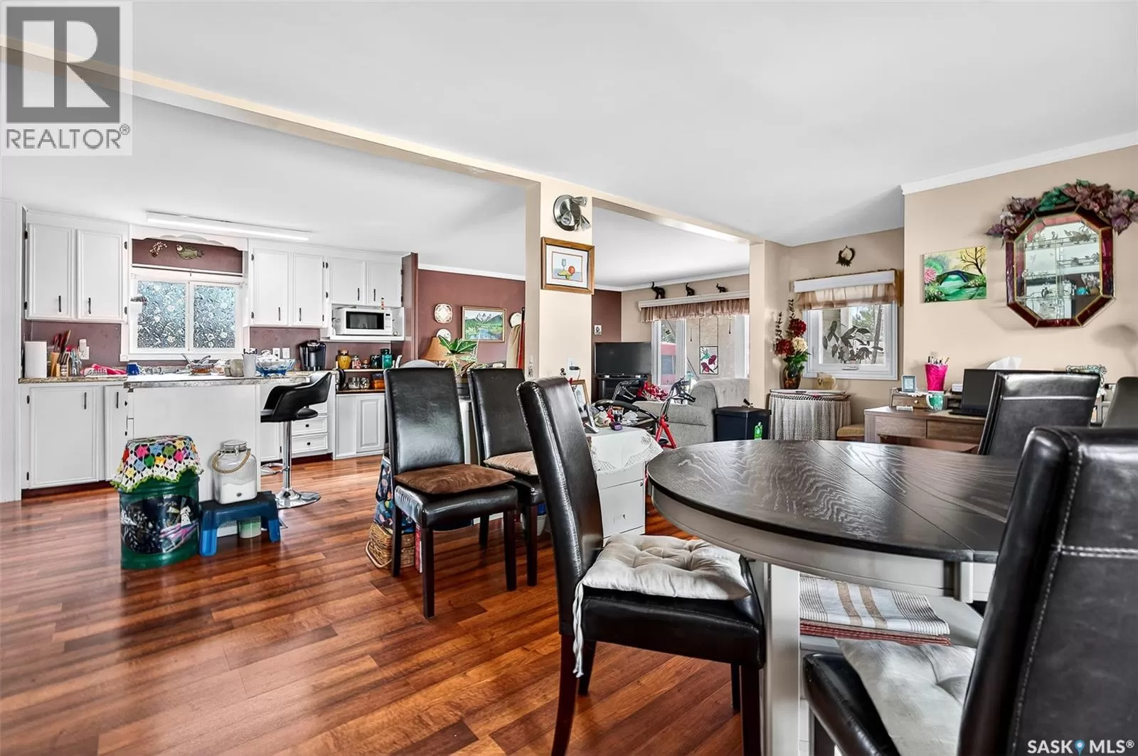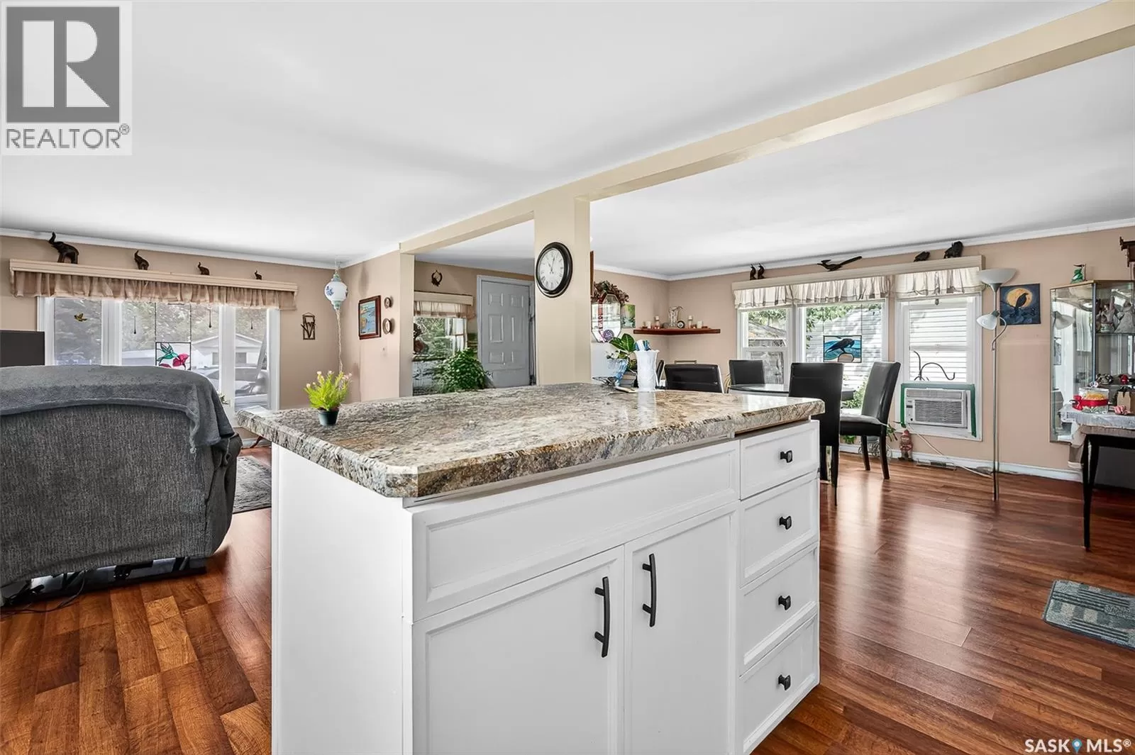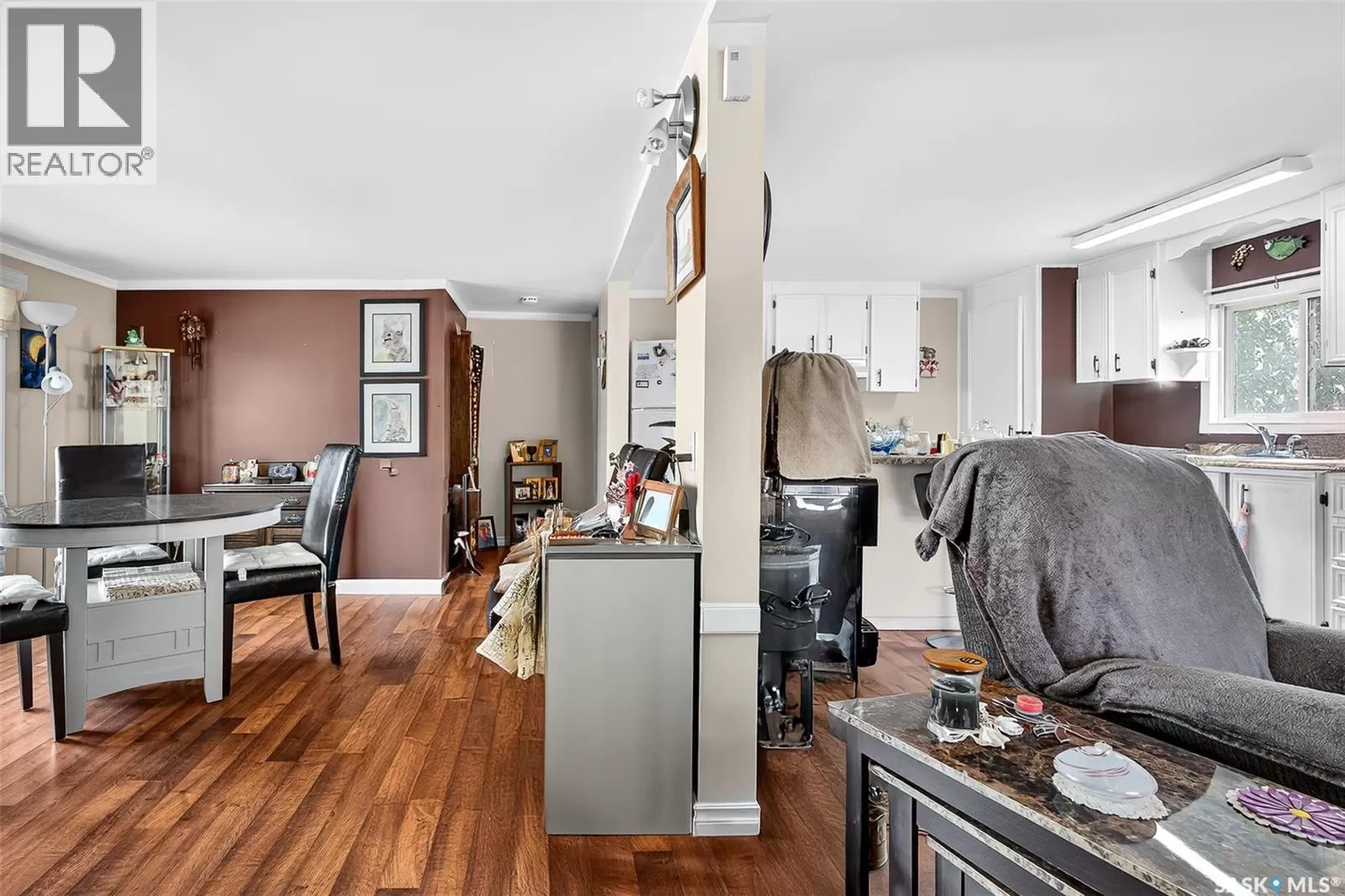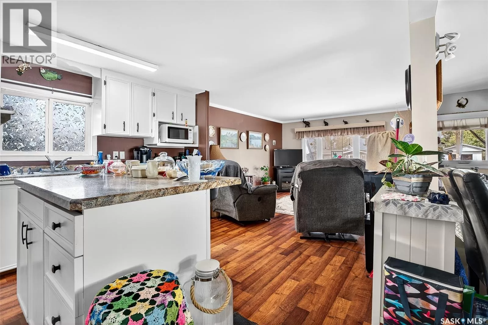 PRAIRIE OASIS TRAILER COURT - Super Cute and Well Maintained 2 bedroom 1080 sq. ft mobile home...Bright open concept living area. Front entrance with deep closet. Kitchen features large island with eat up snack counter, lots of white cabinets plus a pantry and is complete with fridge and stove. Large front facing living room. Spacious dining room with a huge window overlooking your side yard. Full 4pce bathroom, a large mud room at the back entrance and a separate laundry room complete with washer and dryer. Newer deck on front, screened patio, fenced and landscaped side yard with garden boxes and an 8x14 garden shed. Window air conditioner in dining room. Some updated windows including the front window, newer water heater. Monthly fees are $748.21. This includes lot pad fees, city licensing fee, plus garbage and recycling. Lot fees covers your water, sewer, park maintenance and snow removal. CALL A REALTOR TODAY TO VIEW... , (id:27476)