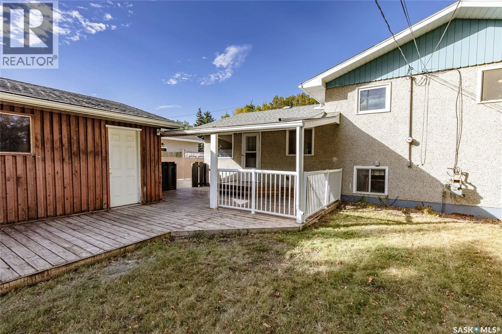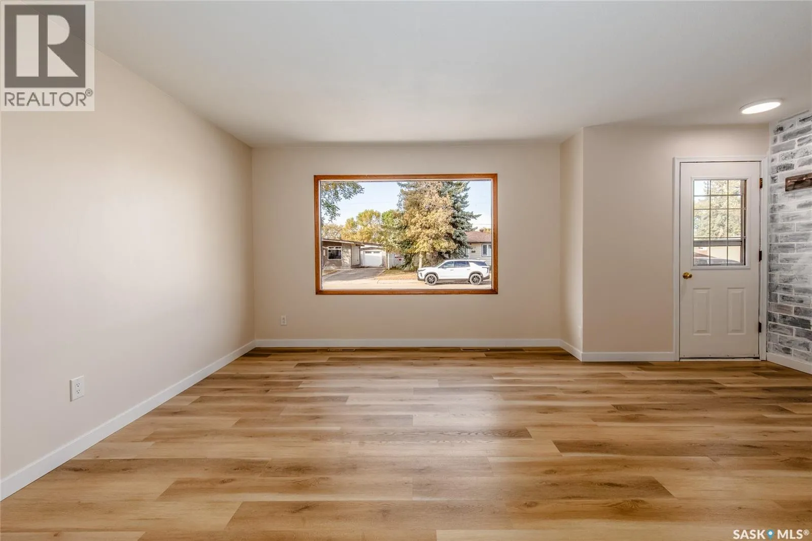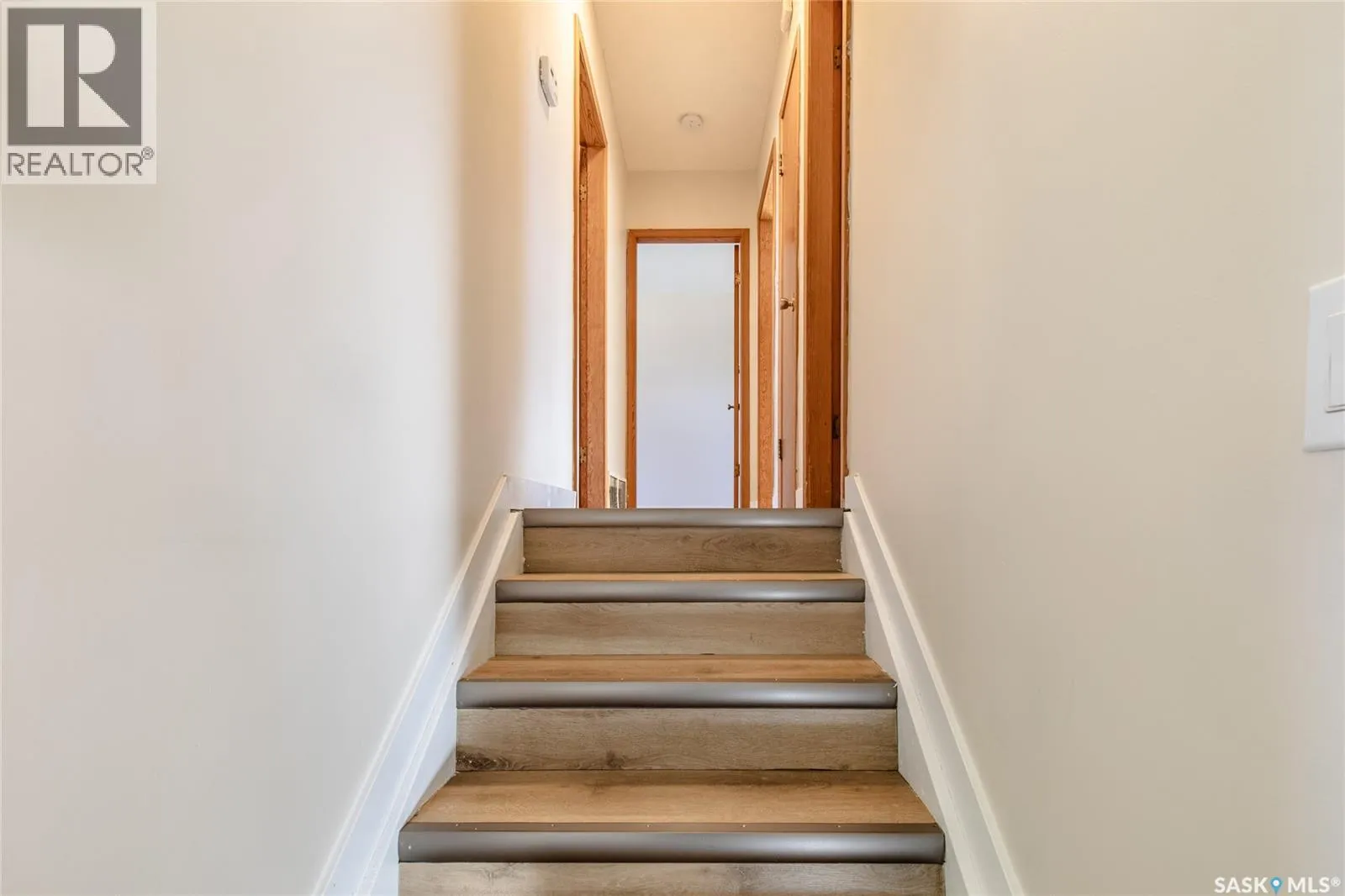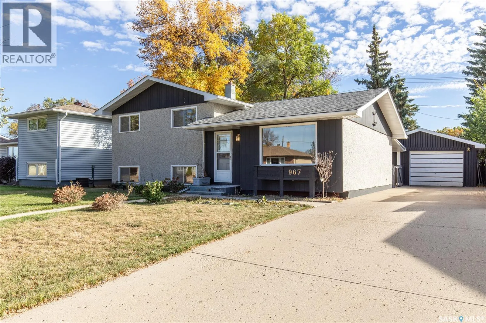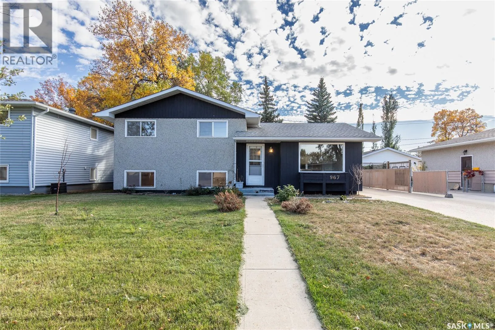 Welcome to this inviting 3-level split home in the highly desirable Palliser area, offering a thoughtful layout, modern updates, and excellent proximity to schools, recreation, and amenities. Step inside to find an eat-in kitchen that has been refreshed with brand new white cabinetry, new countertops, and new dishwasher and microwave hood fan. Also included are the side-by-side SS fridge/freezer, SS double oven, washer and dryer (all appliances included âas isâ). Fresh paint on the main floor, paired with new vinyl plank flooring throughout the entire home, gives the interior a clean and modern feel. The spacious living room has a large picture window. Upstairs, youâll find three comfortable bedrooms (freshly painted) and a 4-pc bathroom with tiled tub surround, while the finished basement provides extra living area perfect for a family room, playroom, or office, plus plenty of additional storage. Central air conditioning ensures seasonal comfort. The property sits on a large, fully fenced lot with alley access and a swing gate wide enough for vehicle entry. A garden area is ready for your green thumb, and the south-facing covered deck is ideal for relaxing or entertaining in every season. Parking is never an issue with an oversized single-car garage, off-street parking, and RV parking. Location is a standout feature â this home is just minutes away from the Kinsmen Sportsplex, SASKPOLY Tech, skateboard park, ball diamonds, walking paths, churches, and elementary schools and a high school. This property truly blends practicality with lifestyle, offering move-in ready updates, flexible living spaces, and an unbeatable Palliser location. Some photos have been stagged. (id:27476)