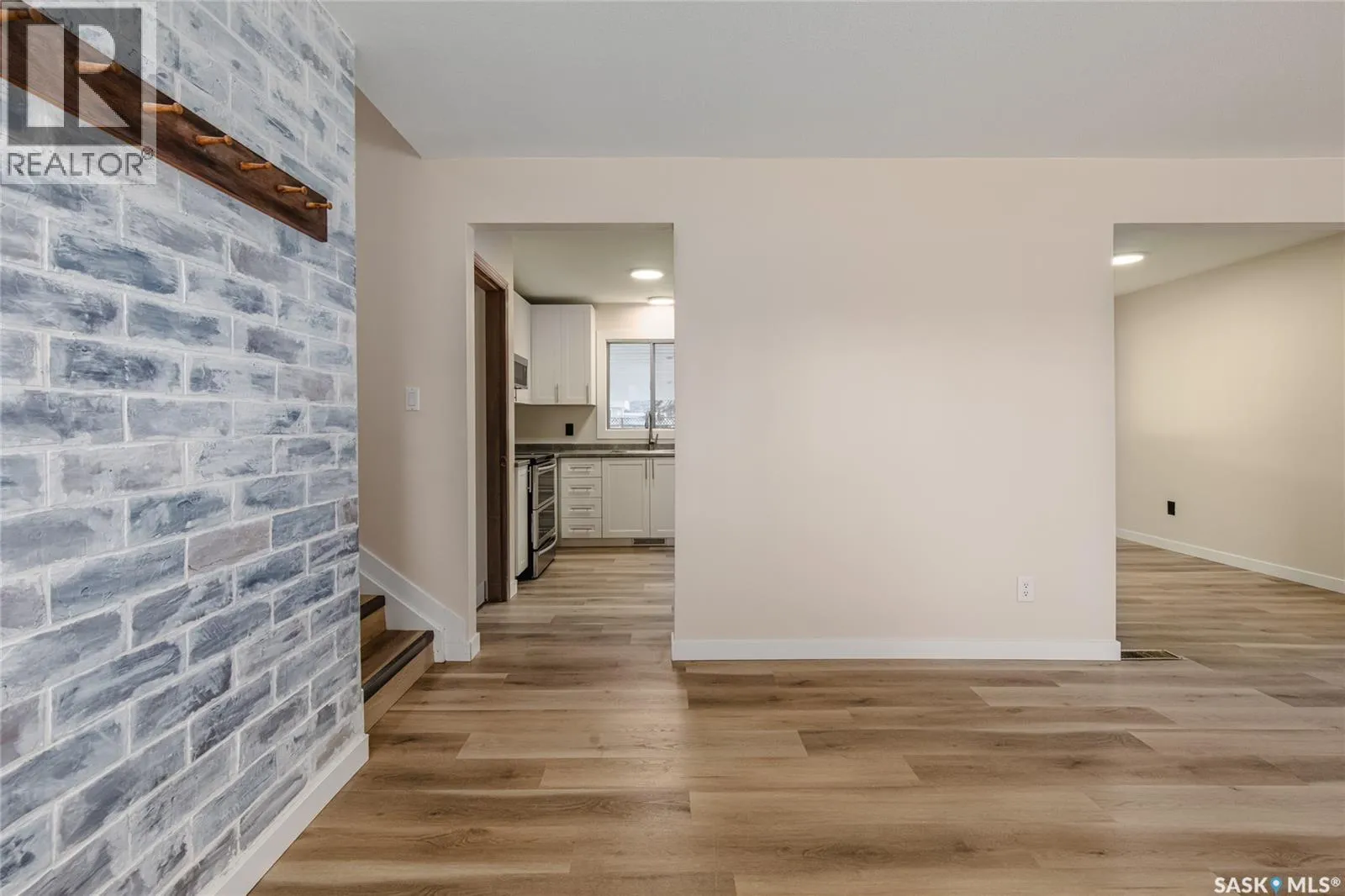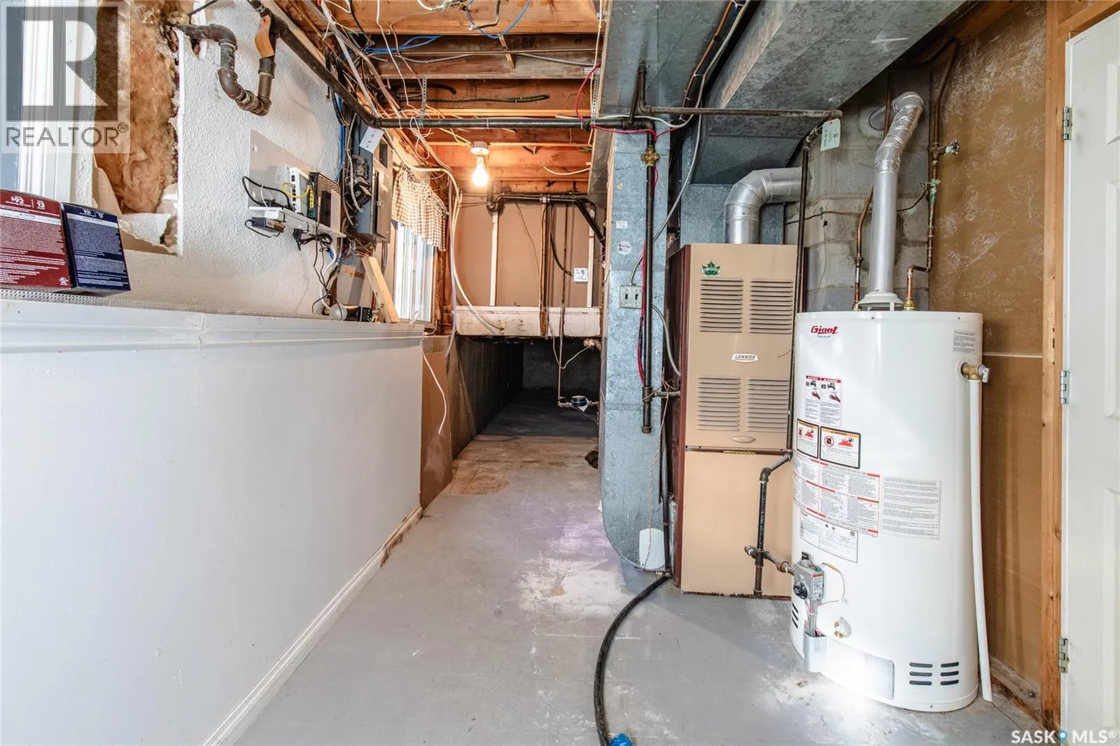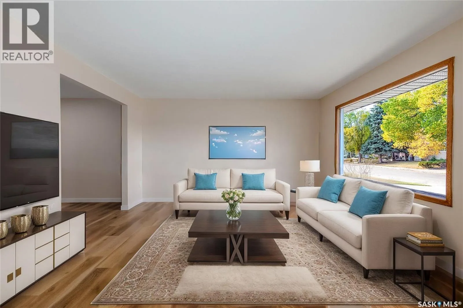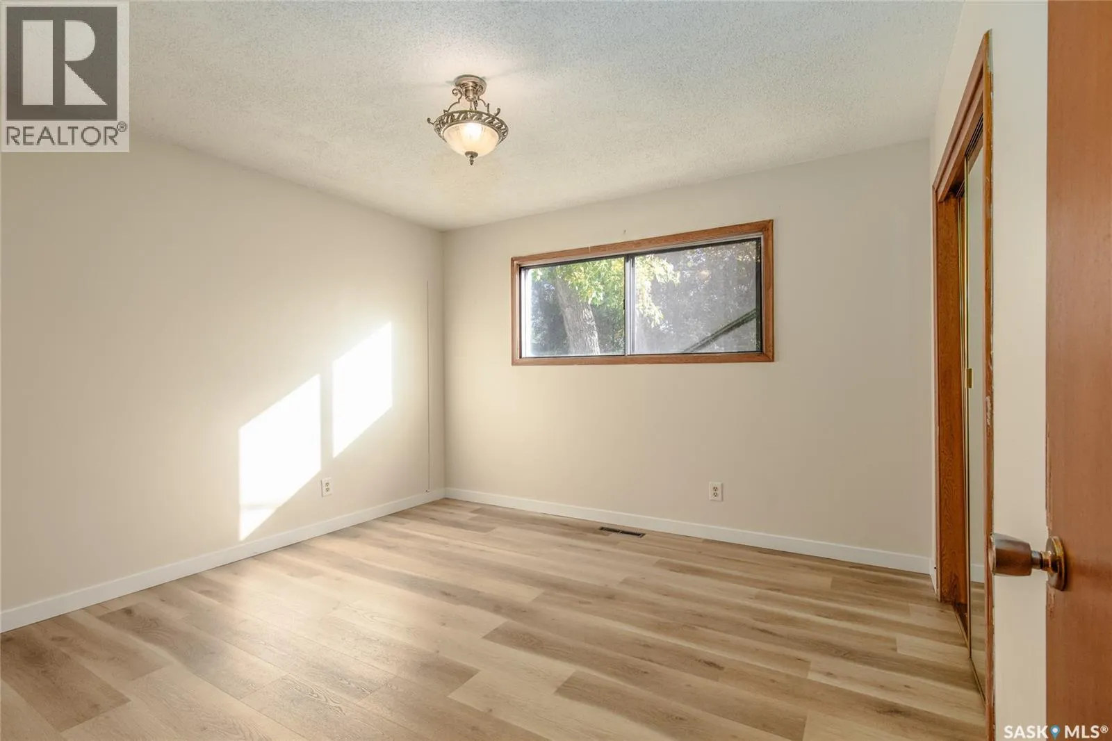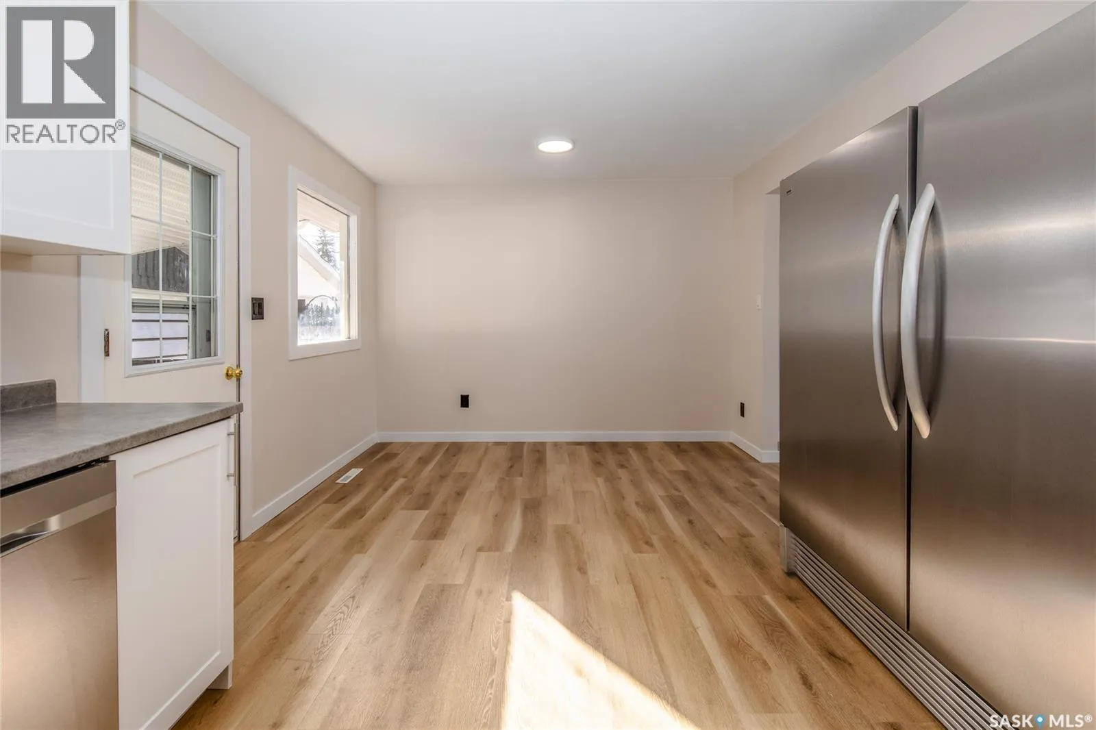 Welcome to this inviting 3-level split home in the highly desirable Palliser area, offering a thoughtful layout, modern updates, and excellent proximity to schools, recreation, and amenities. Step inside to find an eat-in kitchen that has been refreshed with brand new white cabinetry, new countertops, and new dishwasher and microwave hood fan. Also included are the side-by-side SS fridge/freezer, SS double oven, washer and dryer (all appliances included âas isâ). Fresh paint on the main floor, paired with new vinyl plank flooring throughout the entire home, gives the interior a clean and modern feel. The spacious living room has a large picture window. Upstairs, youâll find three comfortable bedrooms (freshly painted) and a 4-pc bathroom with tiled tub surround, while the finished basement provides extra living area perfect for a family room, playroom, or office, plus plenty of additional storage. Central air conditioning ensures seasonal comfort. The property sits on a large, fully fenced lot with alley access and a swing gate wide enough for vehicle entry. A garden area is ready for your green thumb, and the south-facing covered deck is ideal for relaxing or entertaining in every season. Parking is never an issue with an oversized single-car garage, off-street parking, and RV parking. Location is a standout feature â this home is just minutes away from the Kinsmen Sportsplex, SASKPOLY Tech, skateboard park, ball diamonds, walking paths, churches, and elementary schools and a high school. This property truly blends practicality with lifestyle, offering move-in ready updates, flexible living spaces, and an unbeatable Palliser location. Some photos have been stagged. (id:27476)