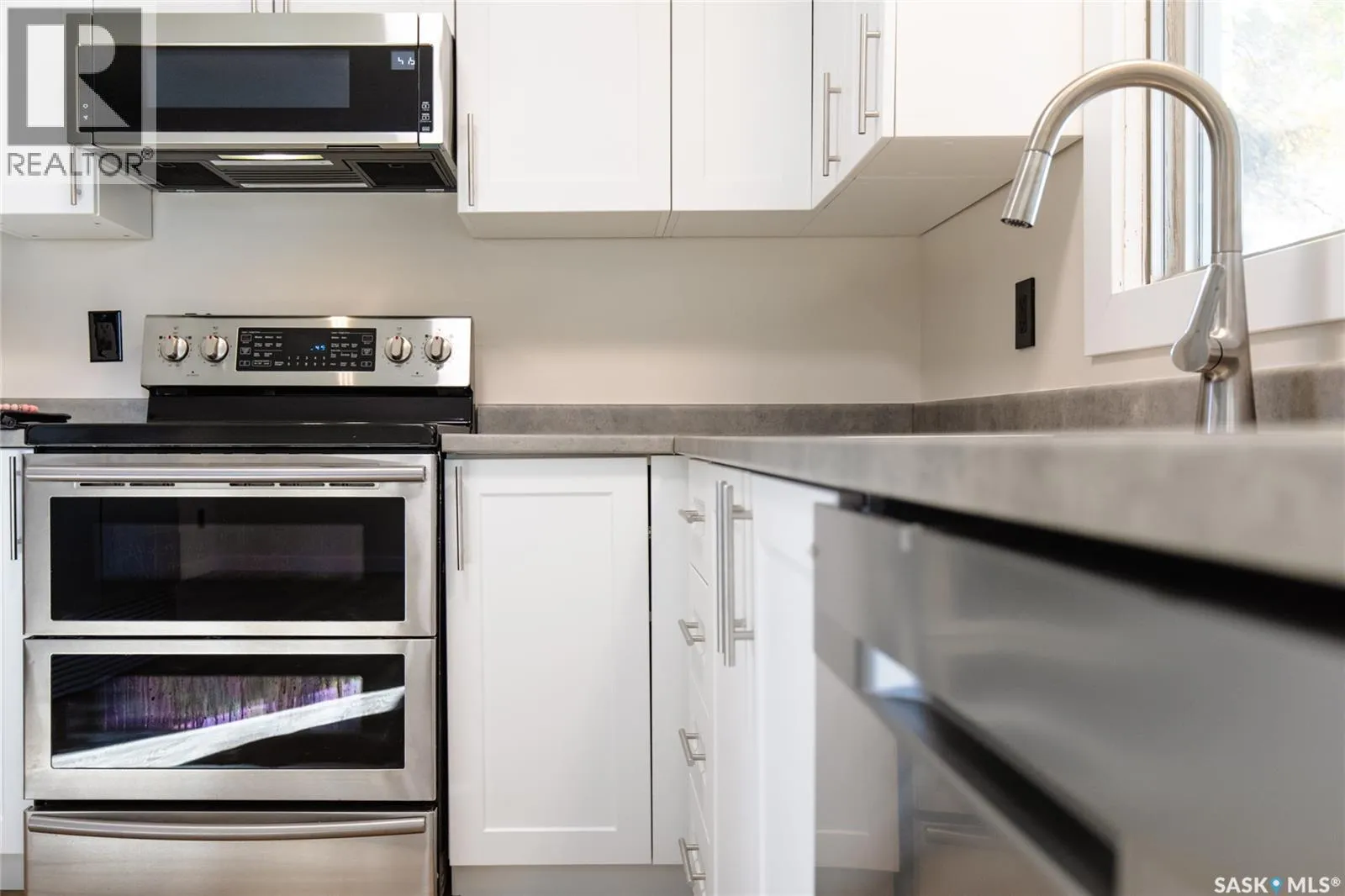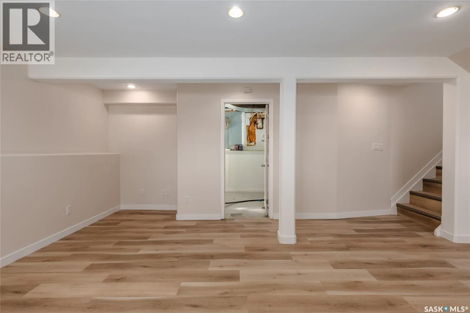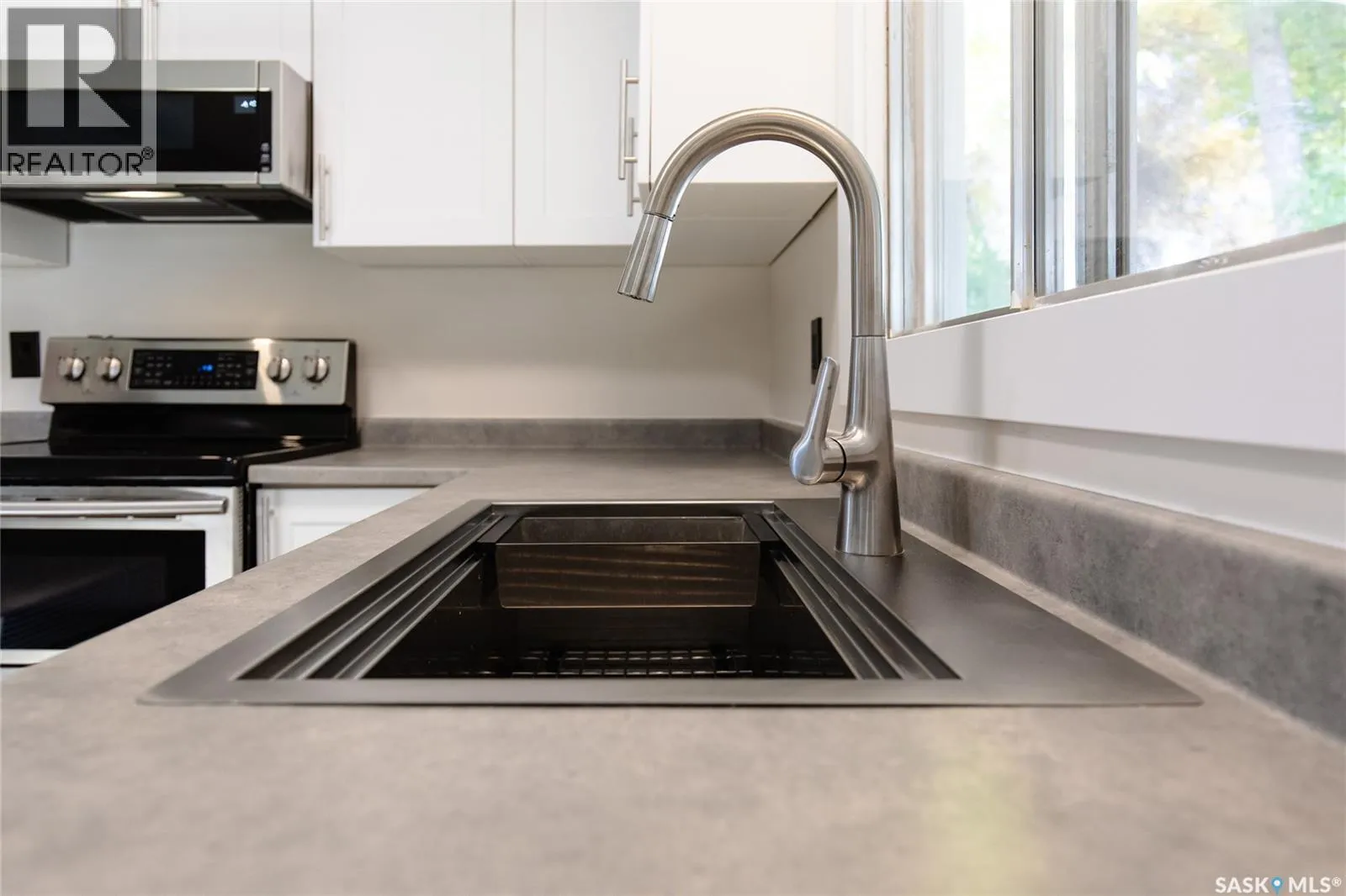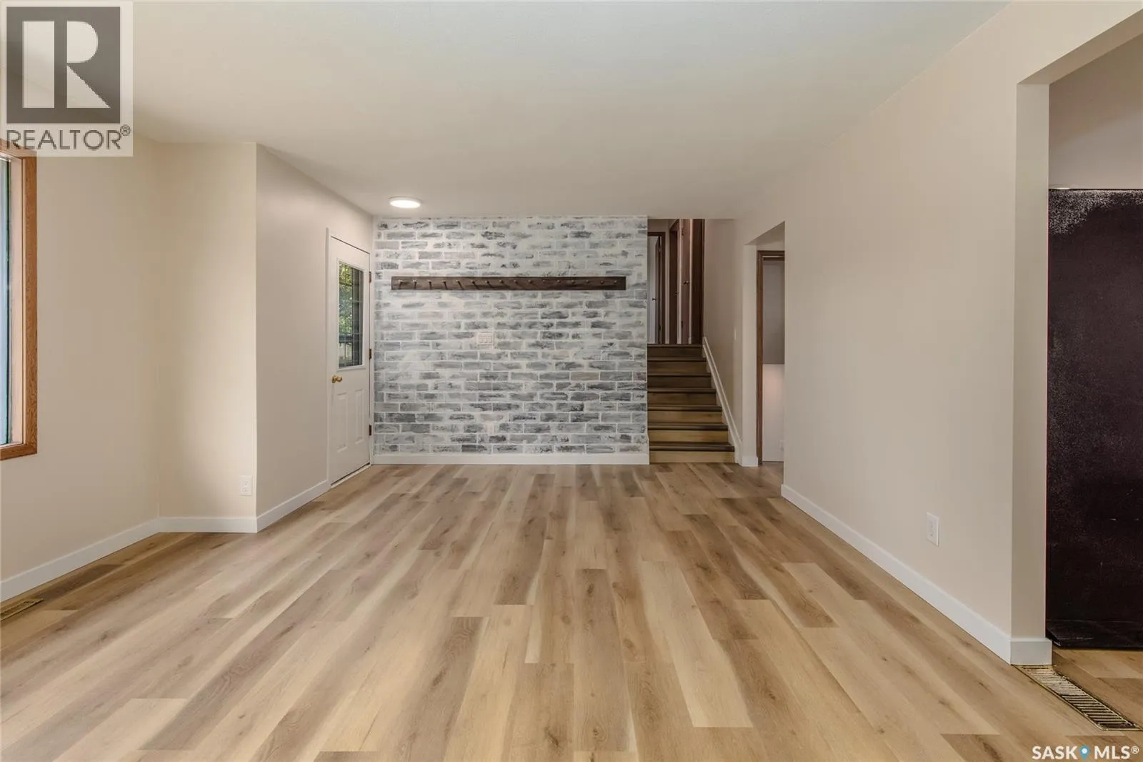 Welcome to this inviting 3-level split home in the highly desirable Palliser area, offering a thoughtful layout, modern updates, and excellent proximity to schools, recreation, and amenities. Step inside to find an eat-in kitchen that has been refreshed with brand new white cabinetry, new countertops, and new dishwasher and microwave hood fan. Also included are the side-by-side SS fridge/freezer, SS double oven, washer and dryer (all appliances included âas isâ). Fresh paint on the main floor, paired with new vinyl plank flooring throughout the entire home, gives the interior a clean and modern feel. The spacious living room has a large picture window. Upstairs, youâll find three comfortable bedrooms (freshly painted) and a 4-pc bathroom with tiled tub surround, while the finished basement provides extra living area perfect for a family room, playroom, or office, plus plenty of additional storage. Central air conditioning ensures seasonal comfort. The property sits on a large, fully fenced lot with alley access and a swing gate wide enough for vehicle entry. A garden area is ready for your green thumb, and the south-facing covered deck is ideal for relaxing or entertaining in every season. Parking is never an issue with an oversized single-car garage, off-street parking, and RV parking. Location is a standout feature â this home is just minutes away from the Kinsmen Sportsplex, SASKPOLY Tech, skateboard park, ball diamonds, walking paths, churches, and elementary schools and a high school. This property truly blends practicality with lifestyle, offering move-in ready updates, flexible living spaces, and an unbeatable Palliser location. Some photos have been stagged. (id:27476)