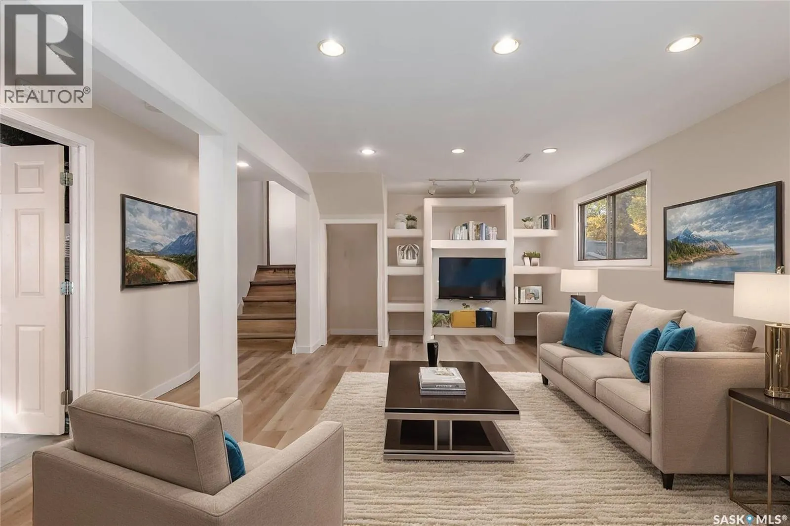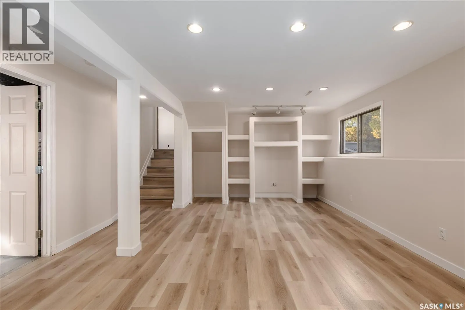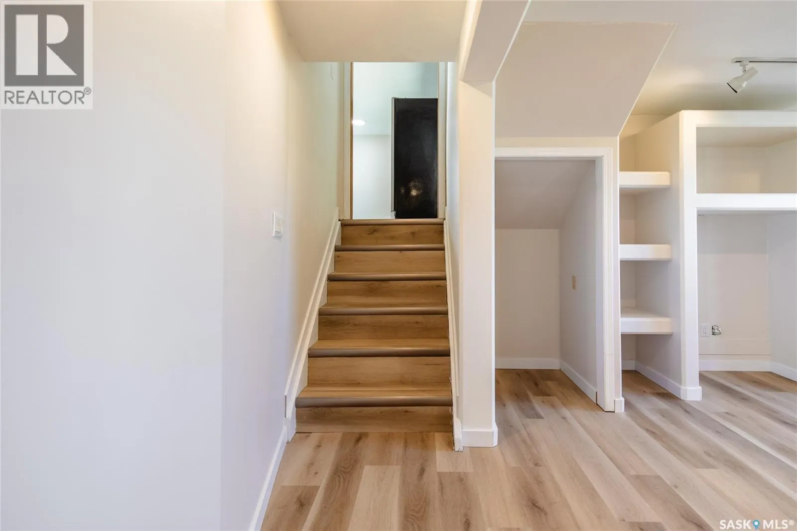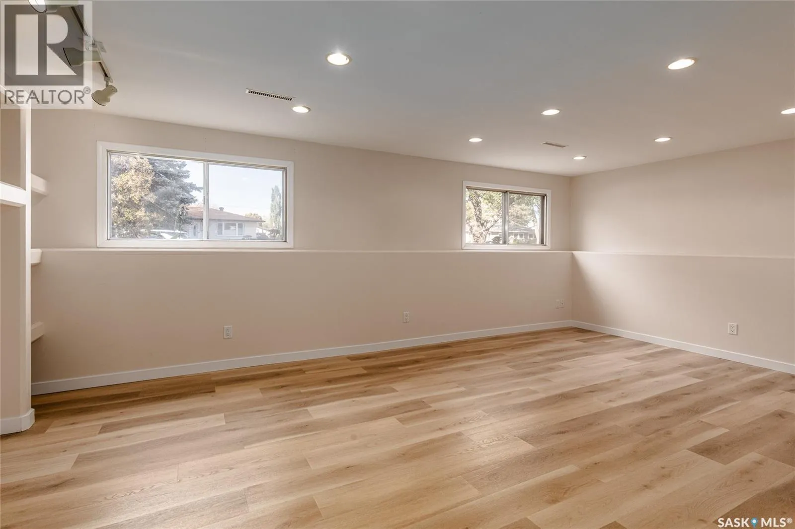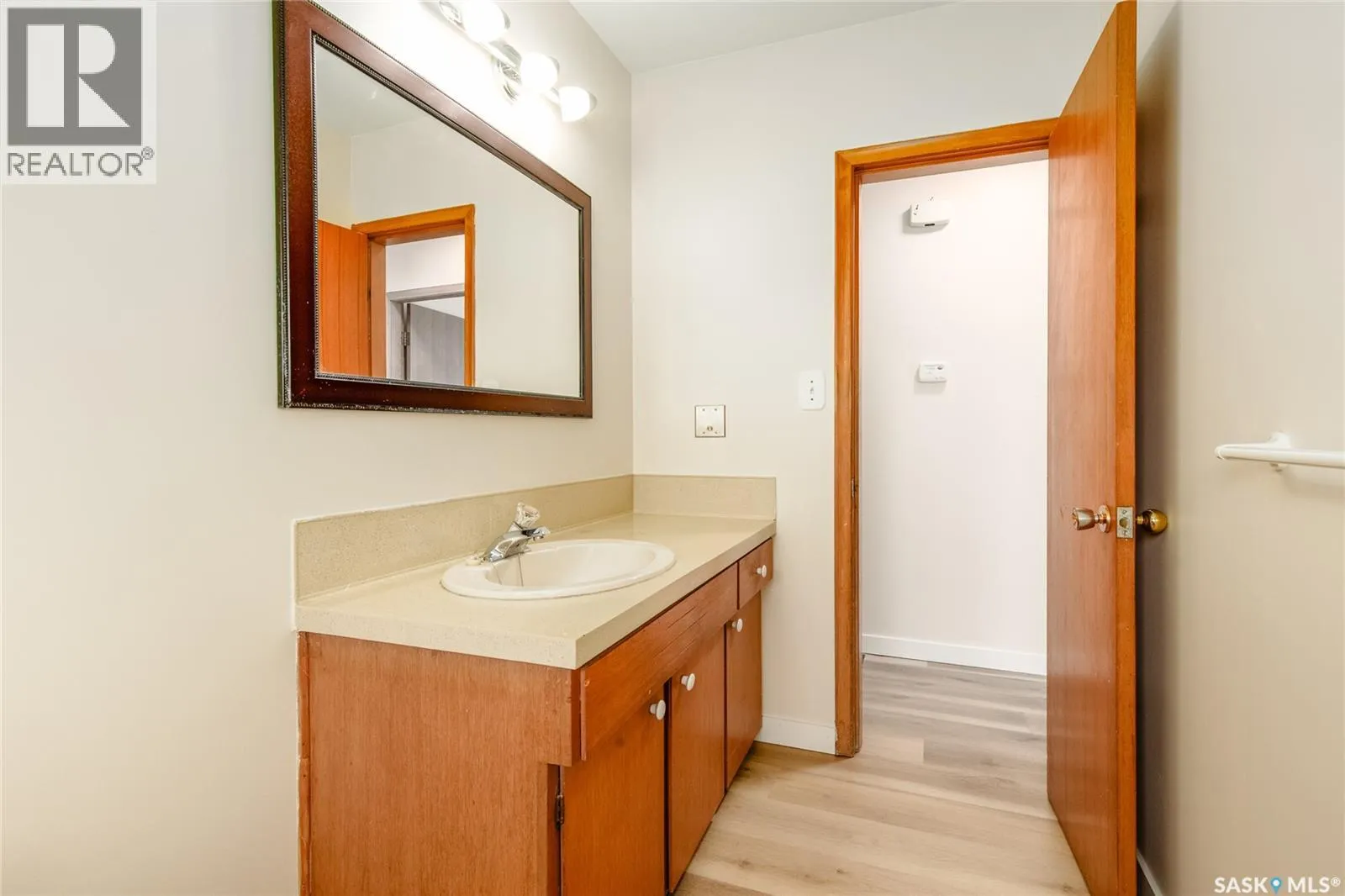 Welcome to this inviting 3-level split home in the highly desirable Palliser area, offering a thoughtful layout, modern updates, and excellent proximity to schools, recreation, and amenities. Step inside to find an eat-in kitchen that has been refreshed with brand new white cabinetry, new countertops, and new dishwasher and microwave hood fan. Also included are the side-by-side SS fridge/freezer, SS double oven, washer and dryer (all appliances included âas isâ). Fresh paint on the main floor, paired with new vinyl plank flooring throughout the entire home, gives the interior a clean and modern feel. The spacious living room has a large picture window. Upstairs, youâll find three comfortable bedrooms (freshly painted) and a 4-pc bathroom with tiled tub surround, while the finished basement provides extra living area perfect for a family room, playroom, or office, plus plenty of additional storage. Central air conditioning ensures seasonal comfort. The property sits on a large, fully fenced lot with alley access and a swing gate wide enough for vehicle entry. A garden area is ready for your green thumb, and the south-facing covered deck is ideal for relaxing or entertaining in every season. Parking is never an issue with an oversized single-car garage, off-street parking, and RV parking. Location is a standout feature â this home is just minutes away from the Kinsmen Sportsplex, SASKPOLY Tech, skateboard park, ball diamonds, walking paths, churches, and elementary schools and a high school. This property truly blends practicality with lifestyle, offering move-in ready updates, flexible living spaces, and an unbeatable Palliser location. Some photos have been stagged. (id:27476)