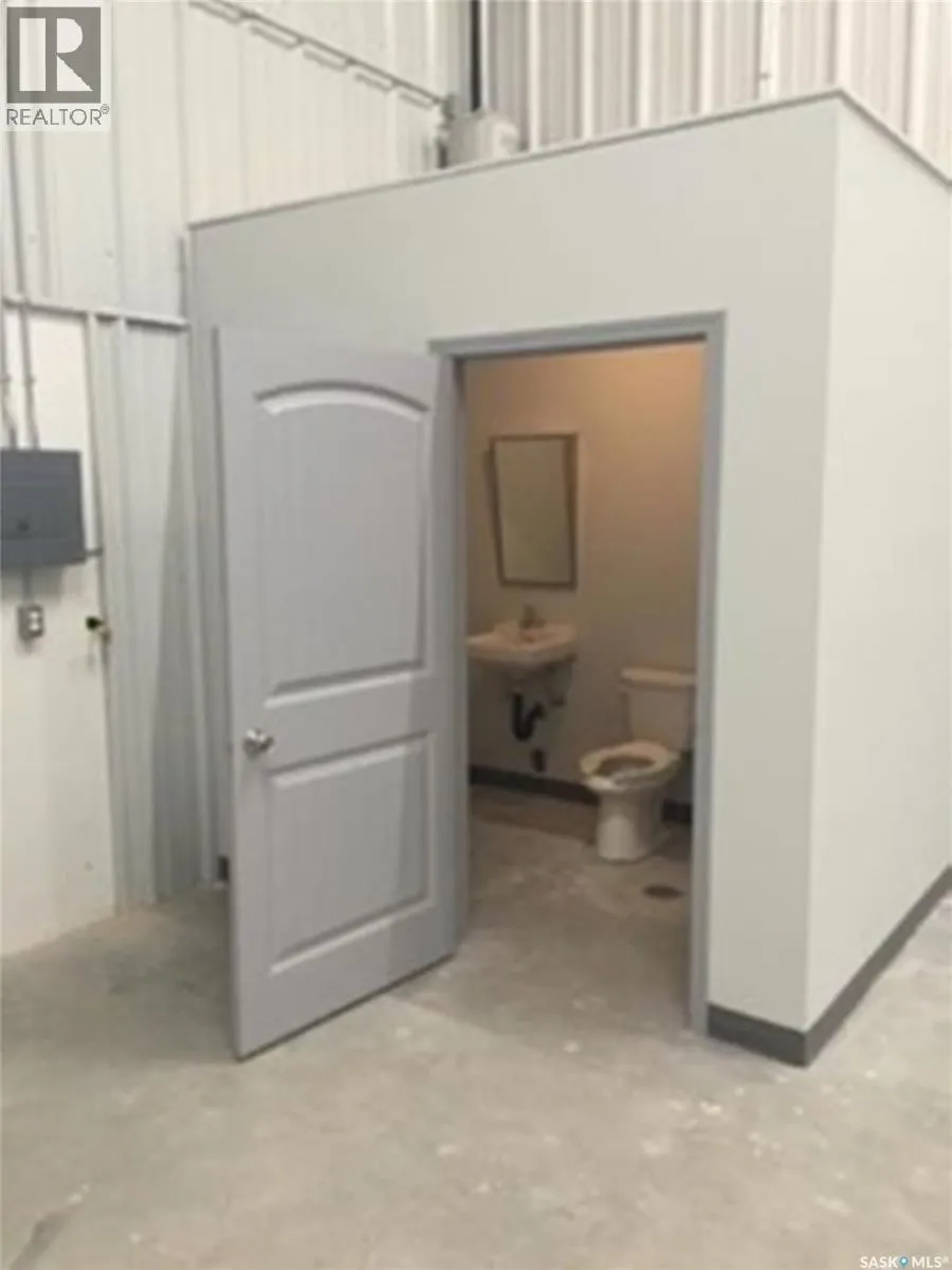 Here is your chance to lease approx. 2000 SQ/ft of premium warehouse/storage space for your business for only $1950 plus GST. Located on East side of Moose Jaw, only 1 km to access Highway #1. This double bay has two 14â x 14â grade doors that are powered, 2-man doors, 2 floor drains, heavy load concrete floor, ceiling height at center is 19.7â, and in-unit heat. There is a 155psi air compressor in building that supplies air to the bay, LED lighting, 2 pc bathroom and ample parking. If needed, there is 3 phase power located to the bay but not hooked up. Included in the lease price is building insurance, common area maintenance, snow removal, property tax, power, water & sewer and security cameras. Energy is paid by the tenant. Zone M4 permitted uses include - offices including contractor offices, building supply establishments, farm supply store, equipment sales & service establishments, light industrial uses, machinery & equipment storage. (id:27476)
