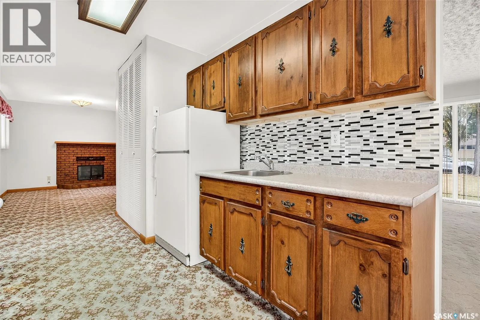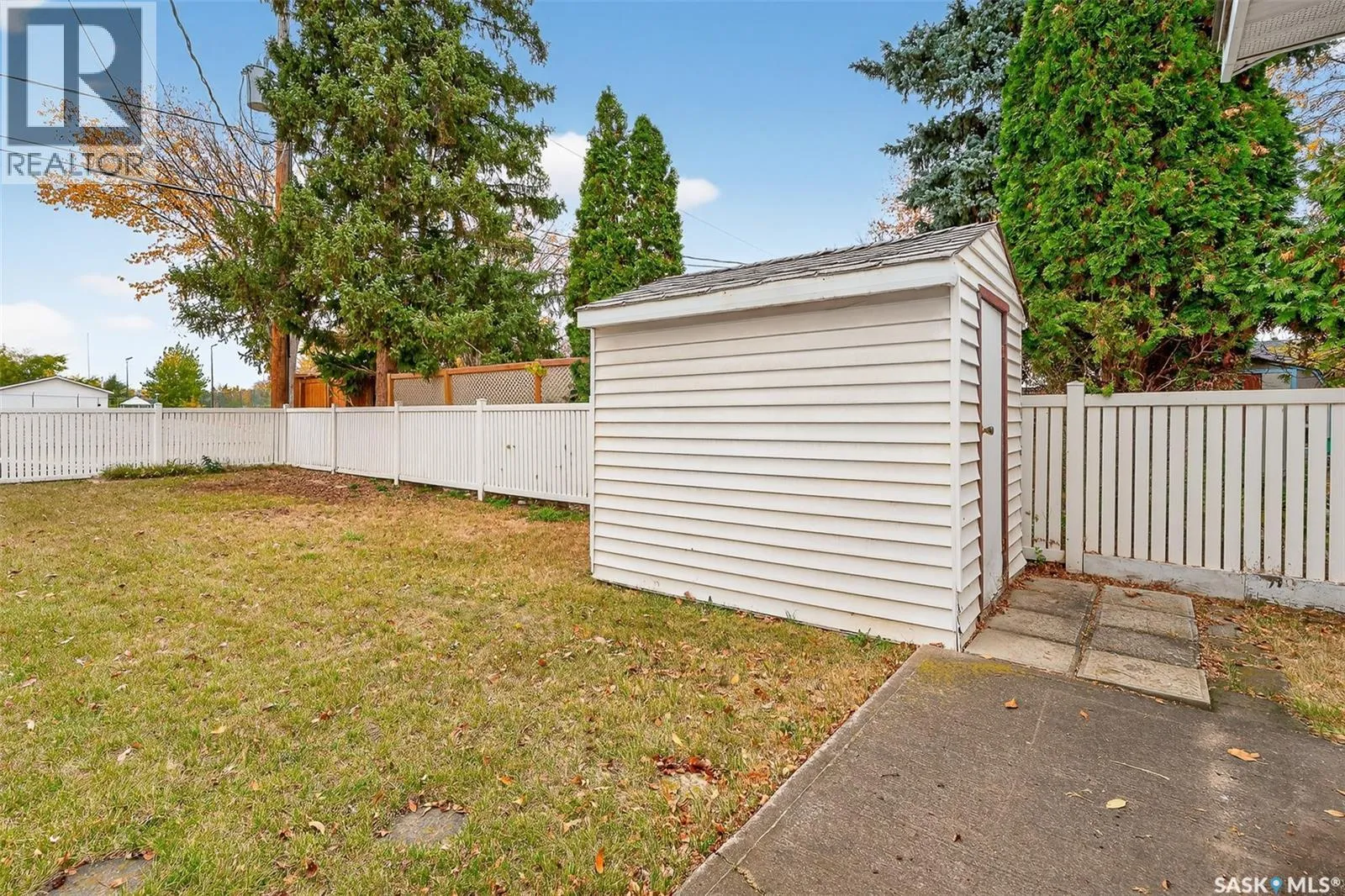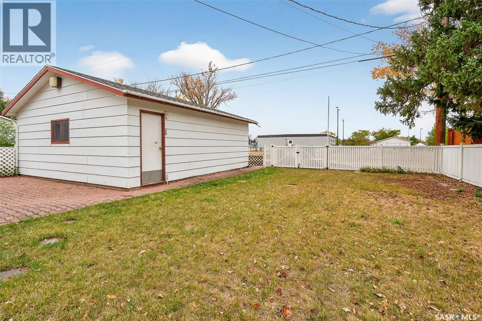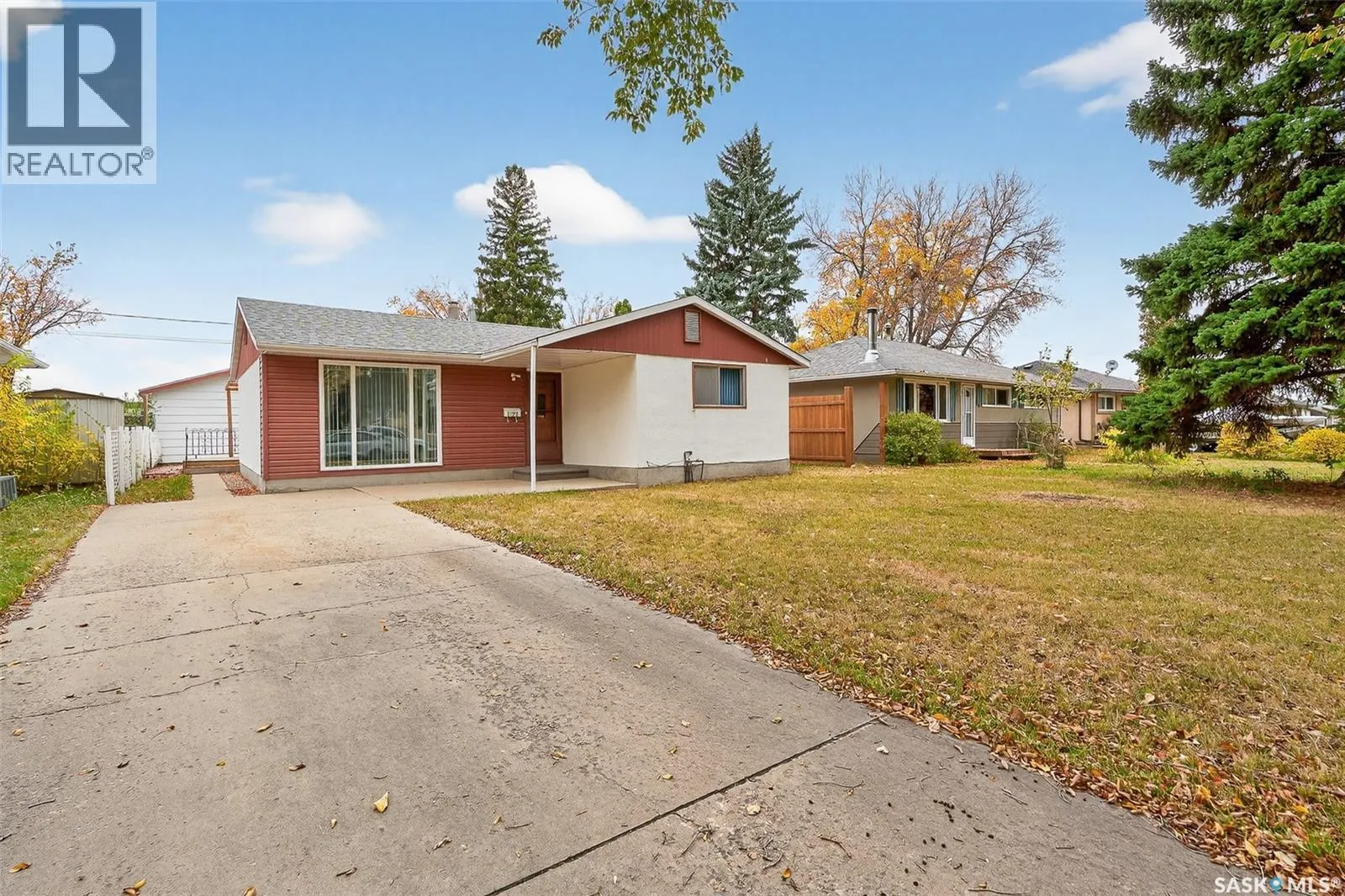 Have you been looking for a home with everything all on one level? Now available 1125 sq. ft. bungalow offers comfortable, accessible living with thoughtful design throughout. Featuring 2 bedrooms, 1 bathroom and a large yard with a 22 x 24 insulated detached garage. This home is ideally located within walking distance to Sask Polytech, making it a perfect choice for professionals, students, or anyone seeking convenient single-level living. Inside, youâll find a spacious living room that seamlessly flows into the dining area, complete with patio doors leading to a covered deckâideal for relaxing or entertaining. The kitchen offers plenty of cabinetry and counter space, providing functionality for everyday cooking and gatherings alike. A cozy family room with a gas fireplace adds warmth and additional living space for you to enjoy. Outside, the partially fenced yard includes a green space area and ample room for a garden, offering the perfect balance of privacy and outdoor enjoyment. This home combines comfort, convenience, and functionalityâall on one level! (id:27476)