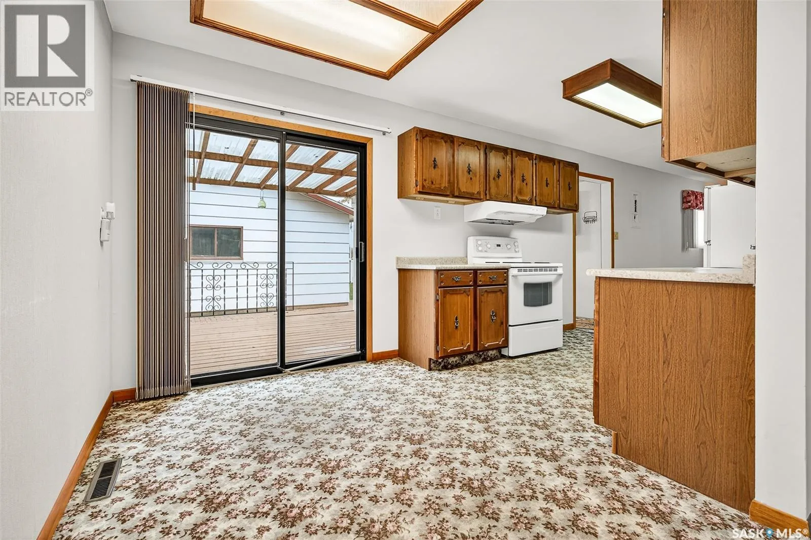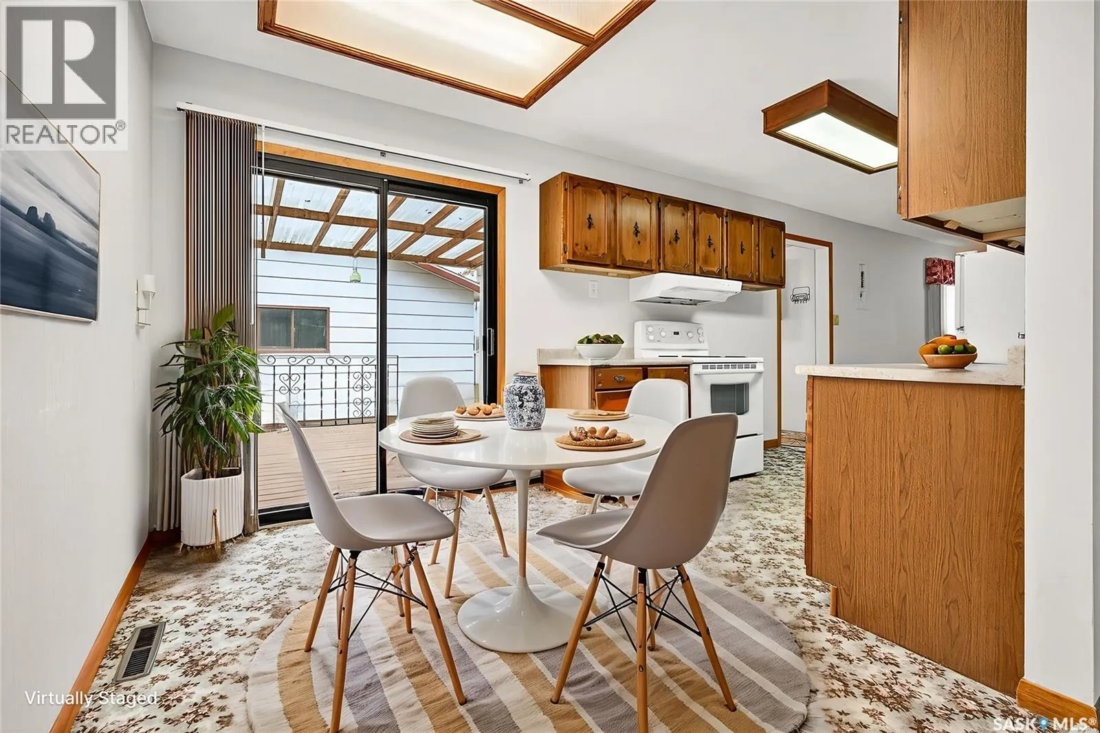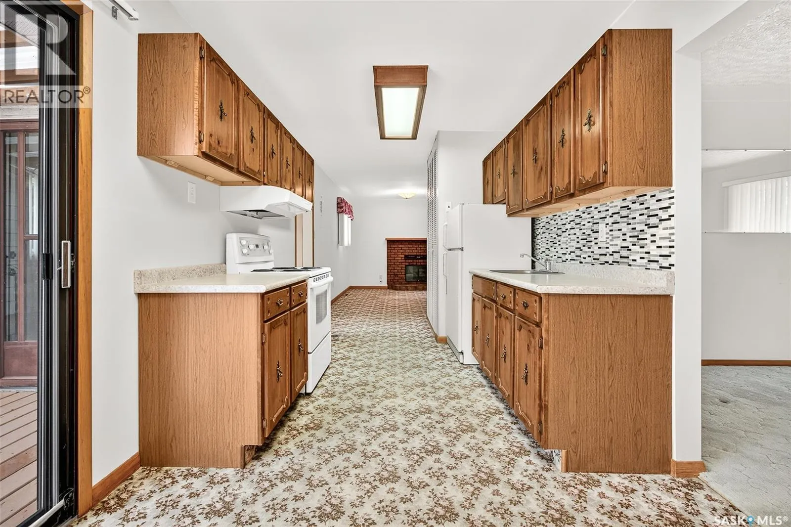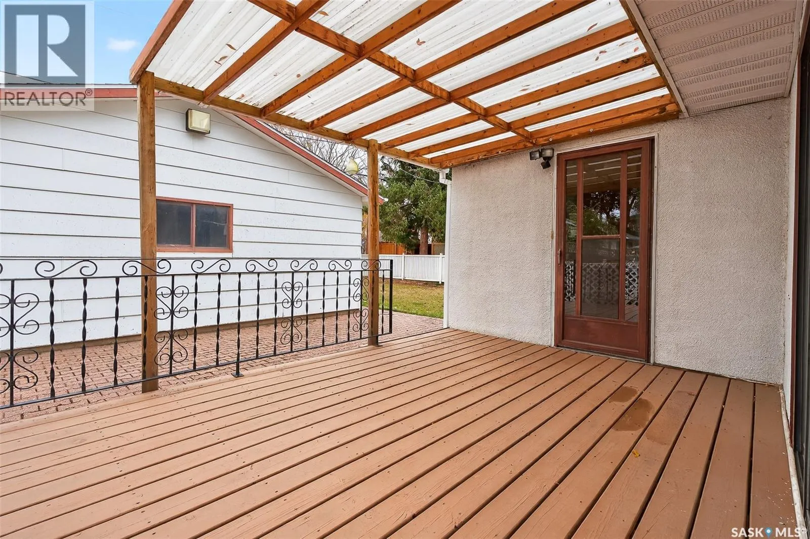 Have you been looking for a home with everything all on one level? Now available 1125 sq. ft. bungalow offers comfortable, accessible living with thoughtful design throughout. Featuring 2 bedrooms, 1 bathroom and a large yard with a 22 x 24 insulated detached garage. This home is ideally located within walking distance to Sask Polytech, making it a perfect choice for professionals, students, or anyone seeking convenient single-level living. Inside, youâll find a spacious living room that seamlessly flows into the dining area, complete with patio doors leading to a covered deckâideal for relaxing or entertaining. The kitchen offers plenty of cabinetry and counter space, providing functionality for everyday cooking and gatherings alike. A cozy family room with a gas fireplace adds warmth and additional living space for you to enjoy. Outside, the partially fenced yard includes a green space area and ample room for a garden, offering the perfect balance of privacy and outdoor enjoyment. This home combines comfort, convenience, and functionalityâall on one level! (id:27476)