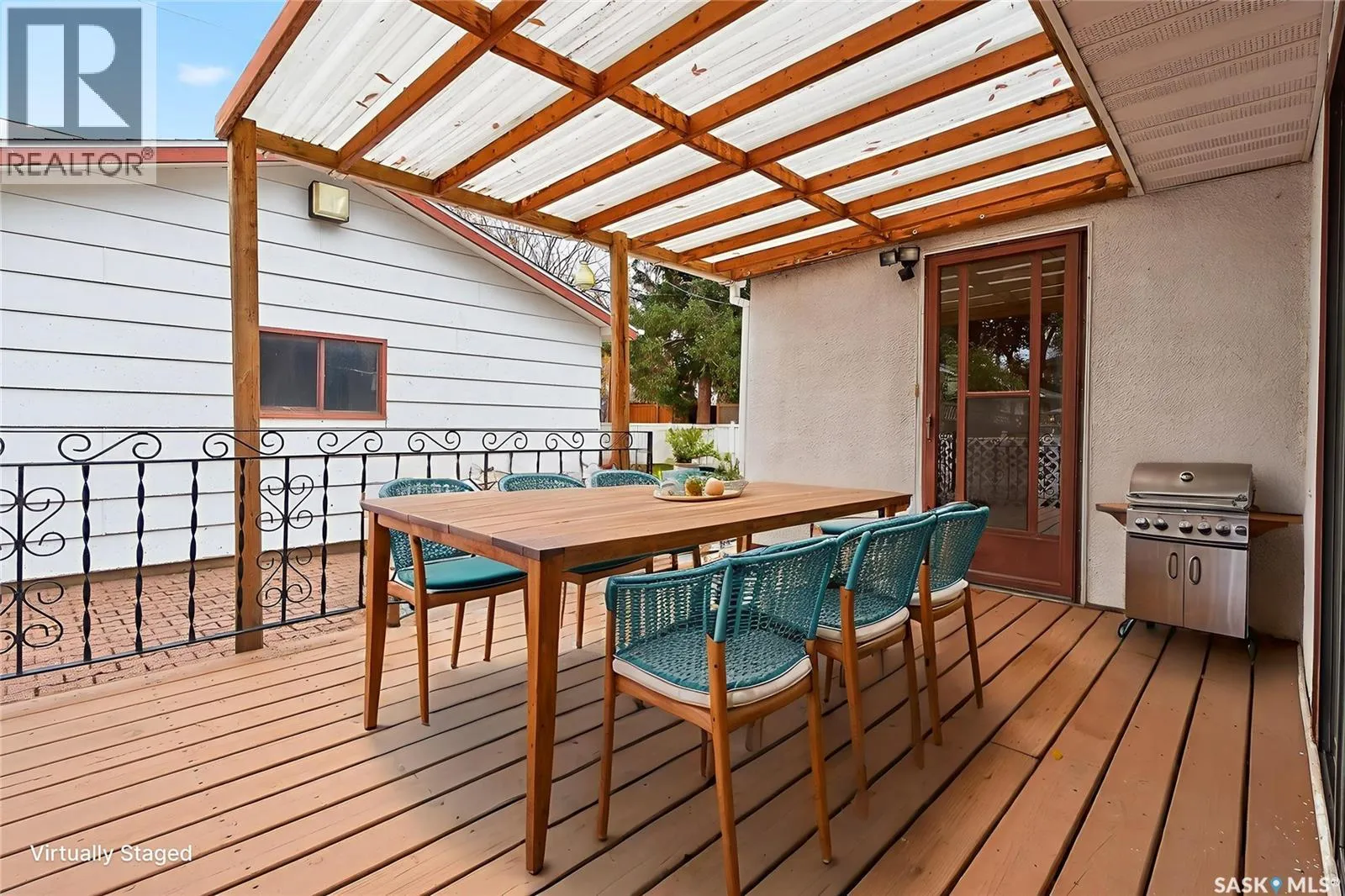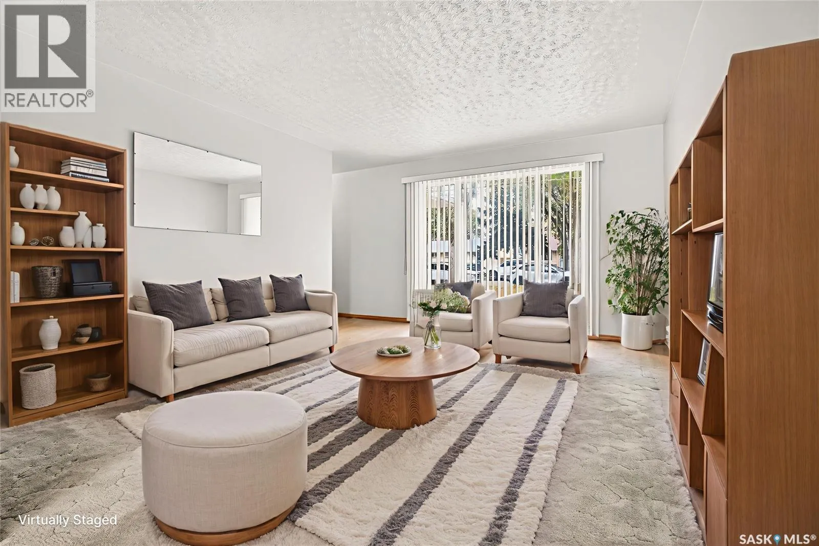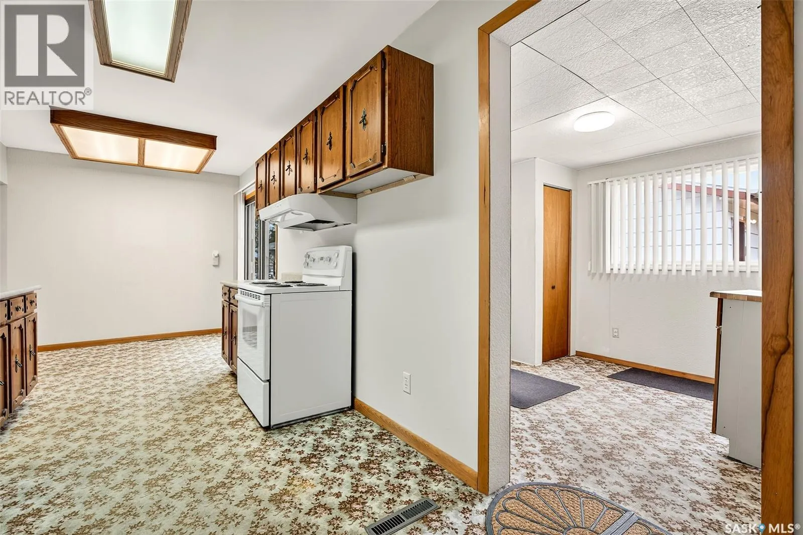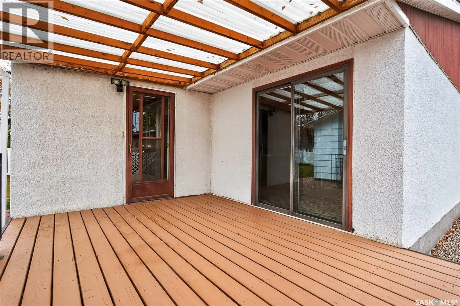 Have you been looking for a home with everything all on one level? Now available 1125 sq. ft. bungalow offers comfortable, accessible living with thoughtful design throughout. Featuring 2 bedrooms, 1 bathroom and a large yard with a 22 x 24 insulated detached garage. This home is ideally located within walking distance to Sask Polytech, making it a perfect choice for professionals, students, or anyone seeking convenient single-level living. Inside, youâll find a spacious living room that seamlessly flows into the dining area, complete with patio doors leading to a covered deckâideal for relaxing or entertaining. The kitchen offers plenty of cabinetry and counter space, providing functionality for everyday cooking and gatherings alike. A cozy family room with a gas fireplace adds warmth and additional living space for you to enjoy. Outside, the partially fenced yard includes a green space area and ample room for a garden, offering the perfect balance of privacy and outdoor enjoyment. This home combines comfort, convenience, and functionalityâall on one level! (id:27476)