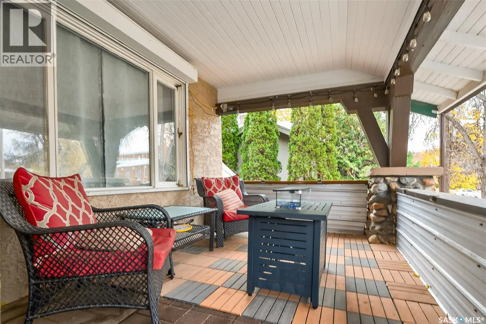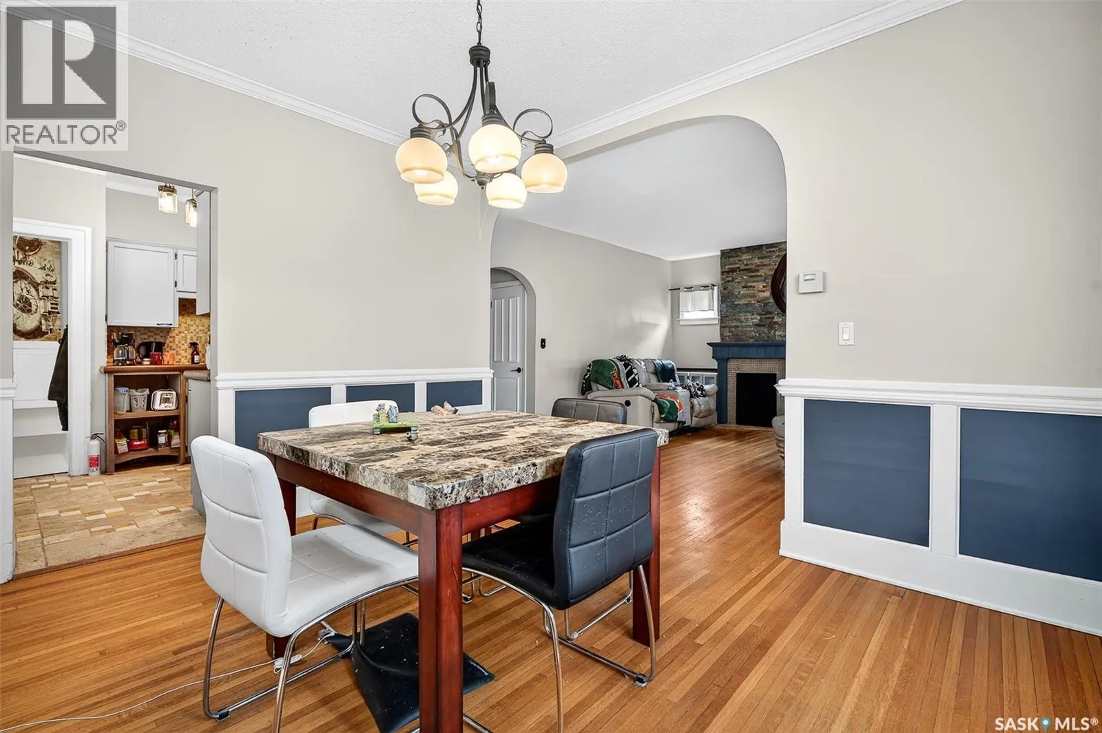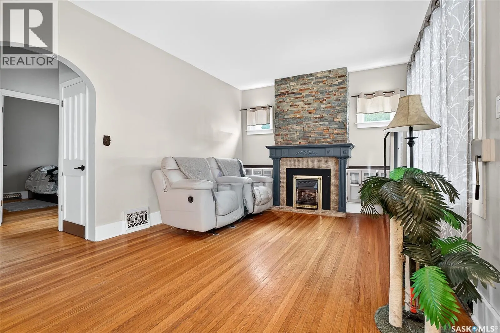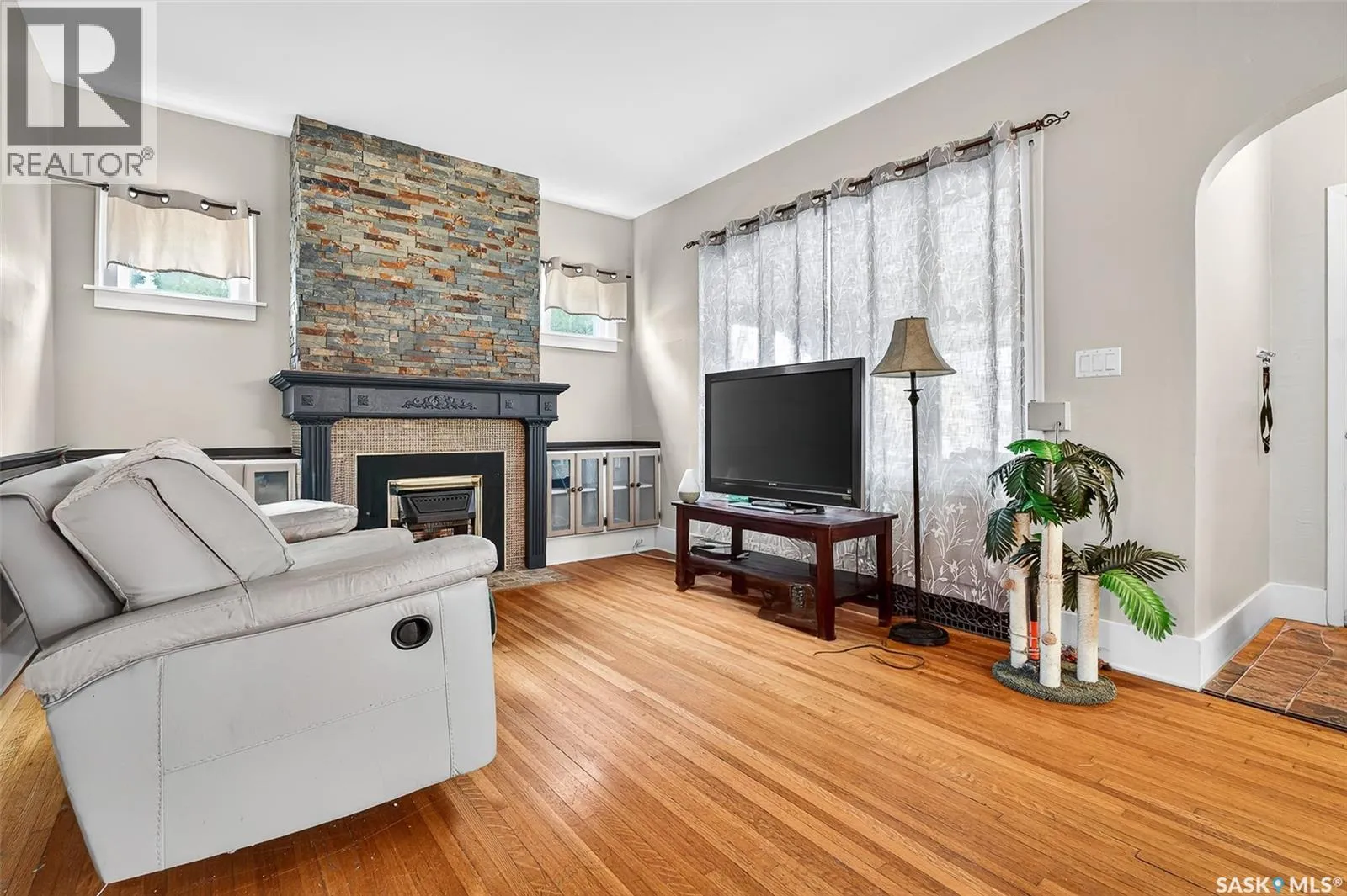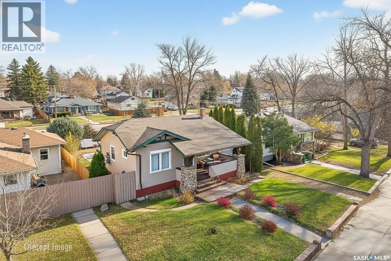 Are you looking for a charming house in the avenues? This beautiful bungalow boasts over 900 sq.ft. with 3 beds and 2 baths and a double detached garage. Excellent curb appeal as you arrive with the stone pillars giving so much character! You are sure to love the covered front veranda - the perfect place for a morning coffee! Heading inside you are greeted by a beautiful open concept living and dining area with high ceilings, hardwood floors, a gas fireplace and lots of natural light! Off the dining room we find a stunning kitchen with marble floors, concrete counters, and ample cabinetry. Down the hall we find 2 spacious bedrooms with closets! As well as an updated 4 piece bathroom with a travertine marble shower tub surround and granite vanity! Heading downstairs we find a large family room perfect place for the kids to go! There is also a third bedroom and a 2 piece bath on this level. Finishing off the basement we have a spacious laundry/utility room and lots of storage space! Heading outside we find a fully fenced backyard with 2 storage sheds! The 22'x24' garage is sure to be a hit - with epoxy floors, 2 openers and insulated! Lots of off street parking with a front and rear driveway. Lots of updates over the years and a pride of ownership shows through! Quick possession is available! Reach out today to book your showing! (id:27476)