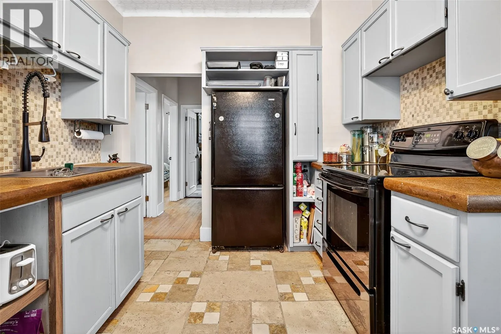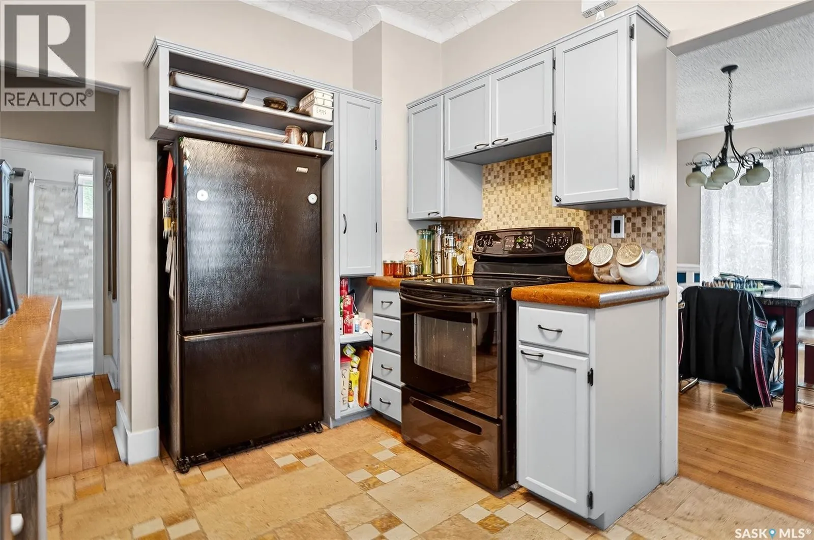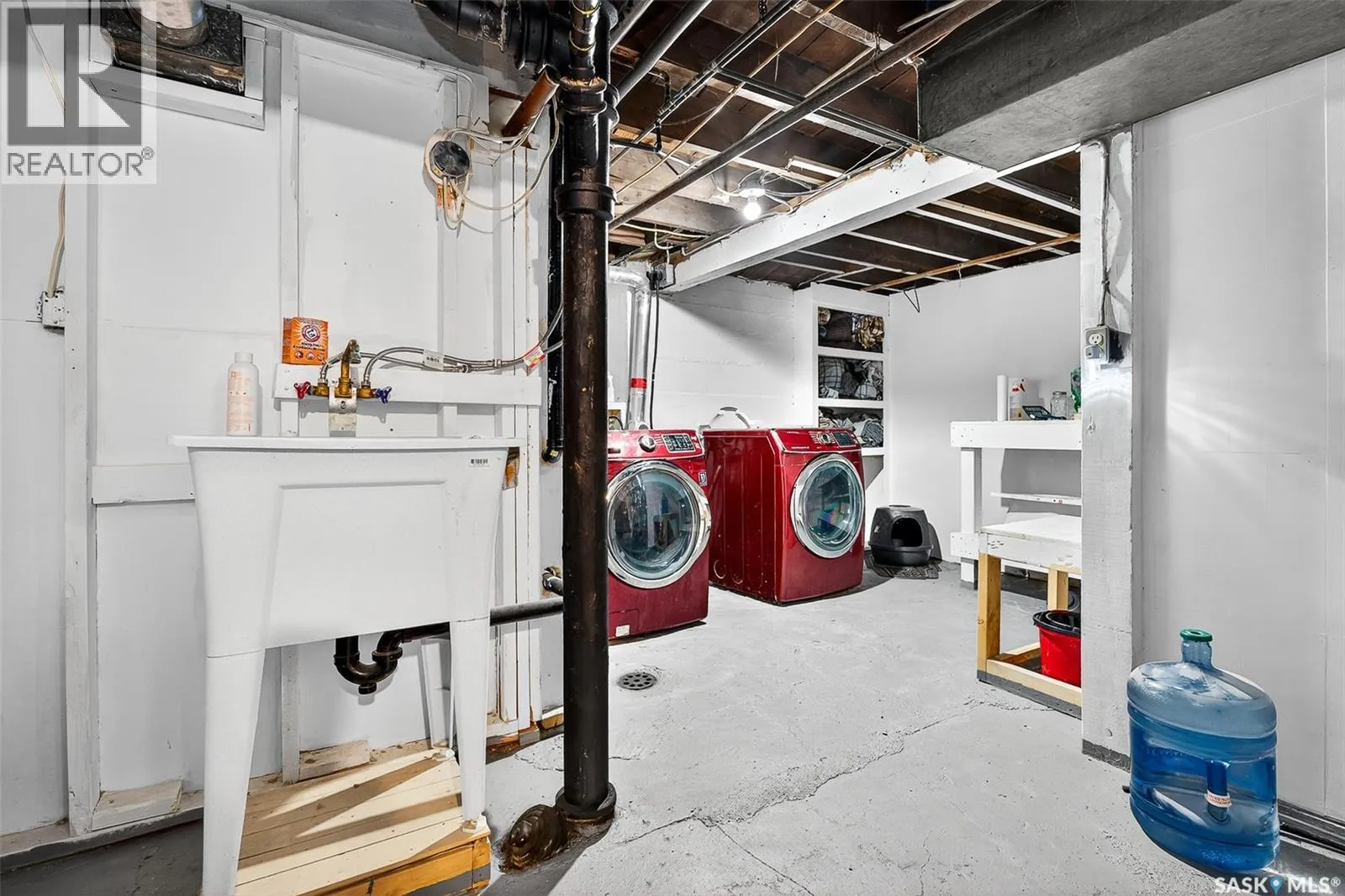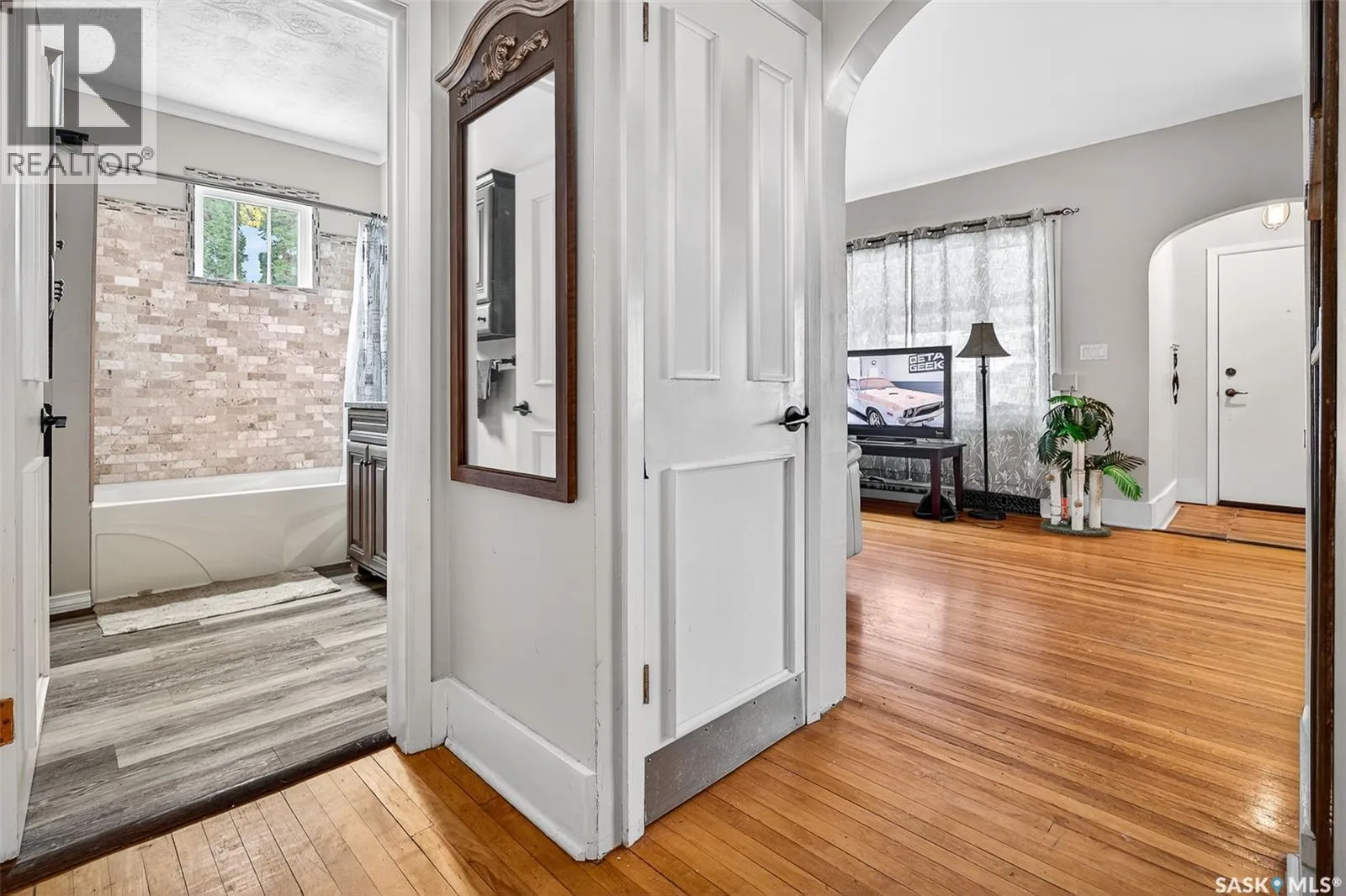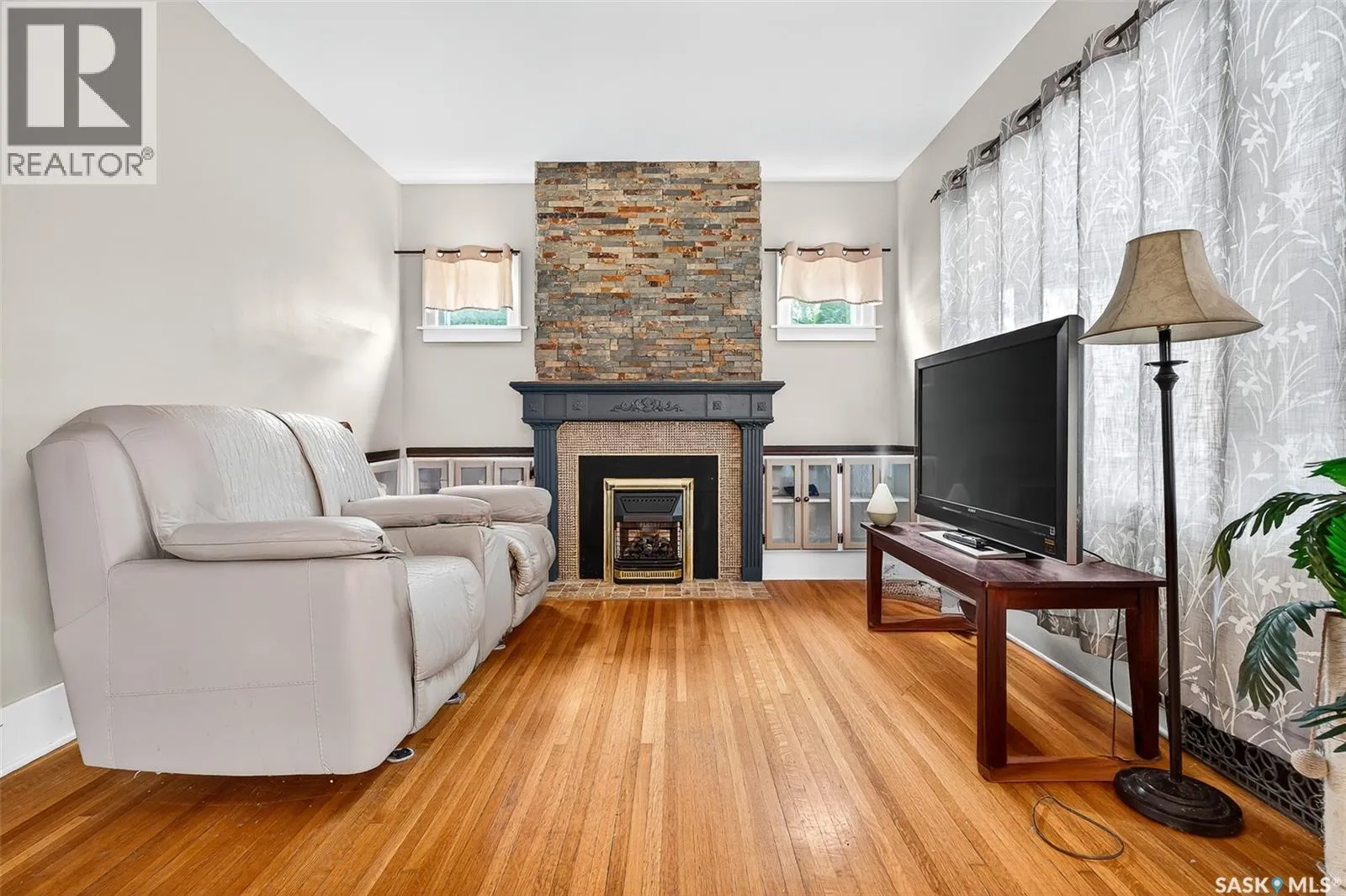Are you looking for a charming house in the avenues? This beautiful bungalow boasts over 900 sq.ft. with 3 beds and 2 baths and a double detached garage. Excellent curb appeal as you arrive with the stone pillars giving so much character! You are sure to love the covered front veranda - the perfect place for a morning coffee! Heading inside you are greeted by a beautiful open concept living and dining area with high ceilings, hardwood floors, a gas fireplace and lots of natural light! Off the dining room we find a stunning kitchen with marble floors, concrete counters, and ample cabinetry. Down the hall we find 2 spacious bedrooms with closets! As well as an updated 4 piece bathroom with a travertine marble shower tub surround and granite vanity! Heading downstairs we find a large family room perfect place for the kids to go! There is also a third bedroom and a 2 piece bath on this level. Finishing off the basement we have a spacious laundry/utility room and lots of storage space! Heading outside we find a fully fenced backyard with 2 storage sheds! The 22'x24' garage is sure to be a hit - with epoxy floors, 2 openers and insulated! Lots of off street parking with a front and rear driveway. Lots of updates over the years and a pride of ownership shows through! Quick possession is available! Reach out today to book your showing! (id:27476)