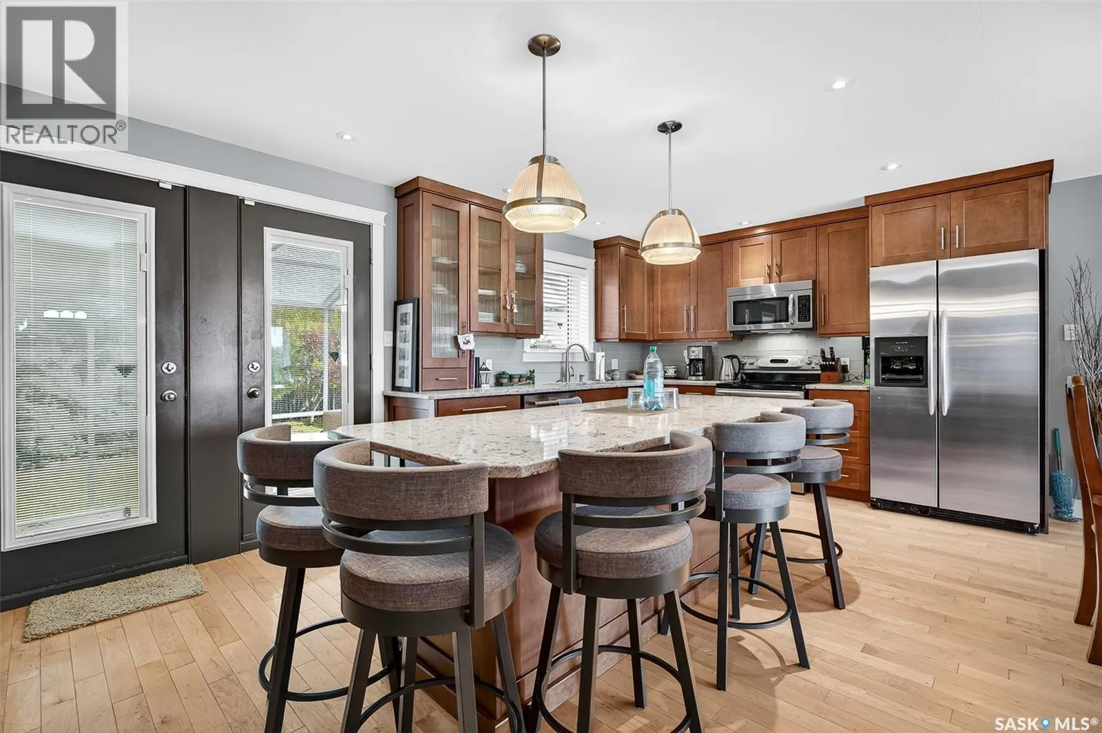One Owner, Custom Built 5-level split offering an impressive 1,957 sq ft of thoughtfully designed living space. Located in the highly sought-after Sunningdale area, this home showcases craftsmanship and foresight well beyond its year built. As you enter the main level features an open-concept design that seamlessly blends functionality and style. A spacious living room with large windows fills the space with natural light and creates a warm, welcoming atmosphere. The generous dining area flows effortlessly into the renovated kitchen, which is a true highlight â complete with stone countertops, stainless steel appliances, an eat-in island, abundant cabinetry, and an area that could be a coffee bar. Perfect for both everyday living and entertaining. Upstairs is a rare findâ¦.4 bedrooms all on one level. There are three bedrooms, a 4pc main bathroom and a spacious primary bedroom with a 3-piece ensuite and a large walk-in closet. As you walk into the 3rd level you enter a warm, inviting family room featuring a cozy wood-burning fireplace, with convenient access to the double attached garage with radiant heat, laundry area, 3pc bathroom and the access to the fully fenced backyard â ideal for gatherings and outdoor enjoyment. The next level offers a generous games or recreation room, providing endless possibilities for a home gym, playroom, or entertainment area. On the fifth and final level, youâll find a large versatile room with plenty of storage space, the utility area, and potential for relocating the laundry if desired. Outside, enjoy a beautifully landscaped and fully fenced yard complete with underground sprinklers, 2 sheds and a screened-in three-season deck with composite decking (which also has access off the kitchen), perfect for relaxing or entertaining while staying sheltered from the elements. This property perfectly blends quality construction, tasteful updates, and a functional multi-level layout. (id:27476)