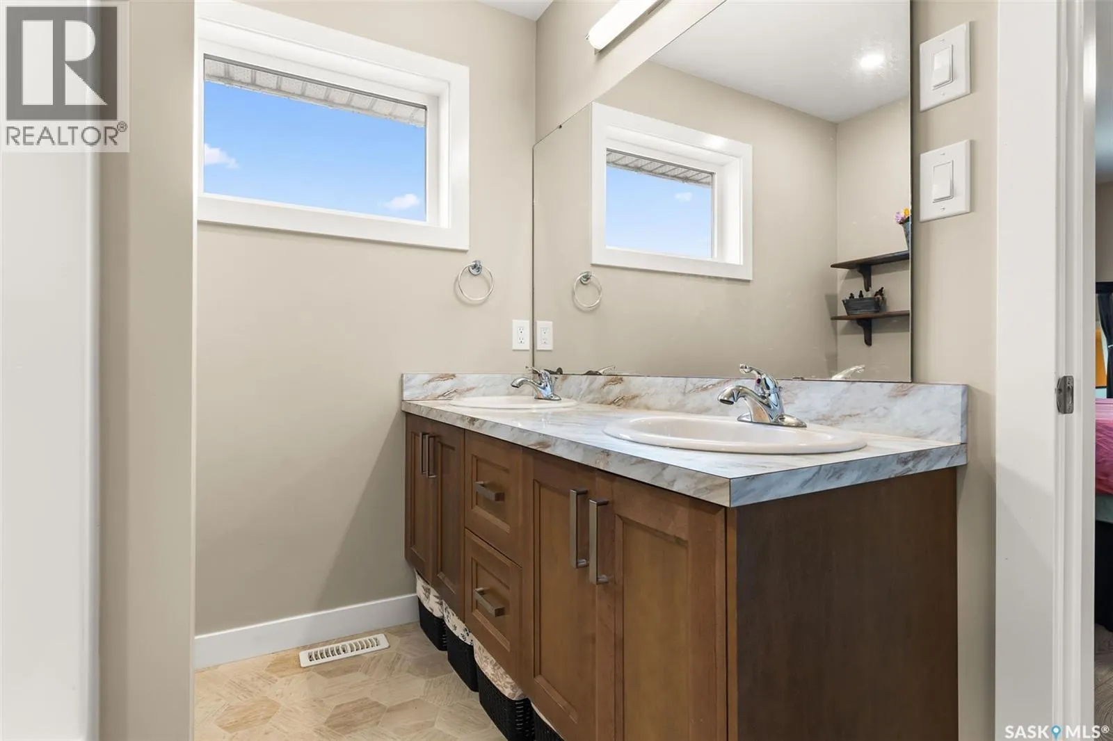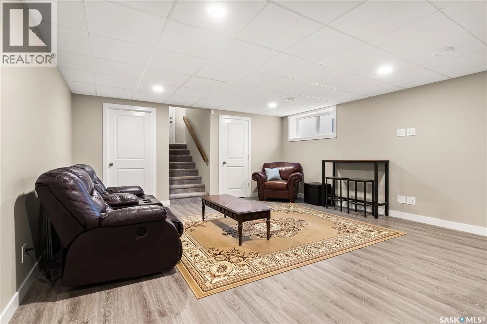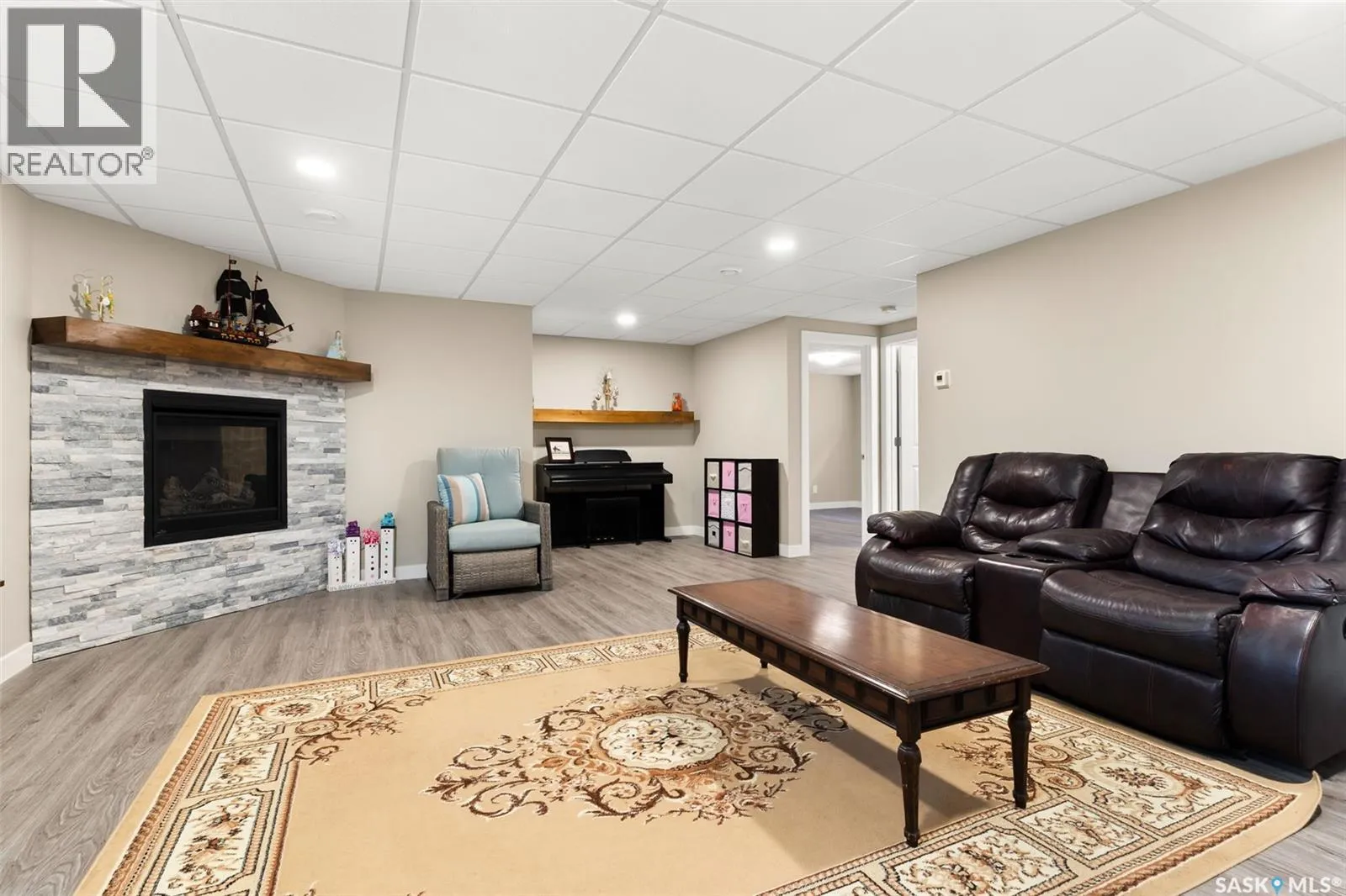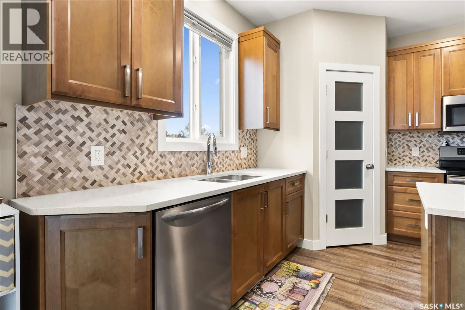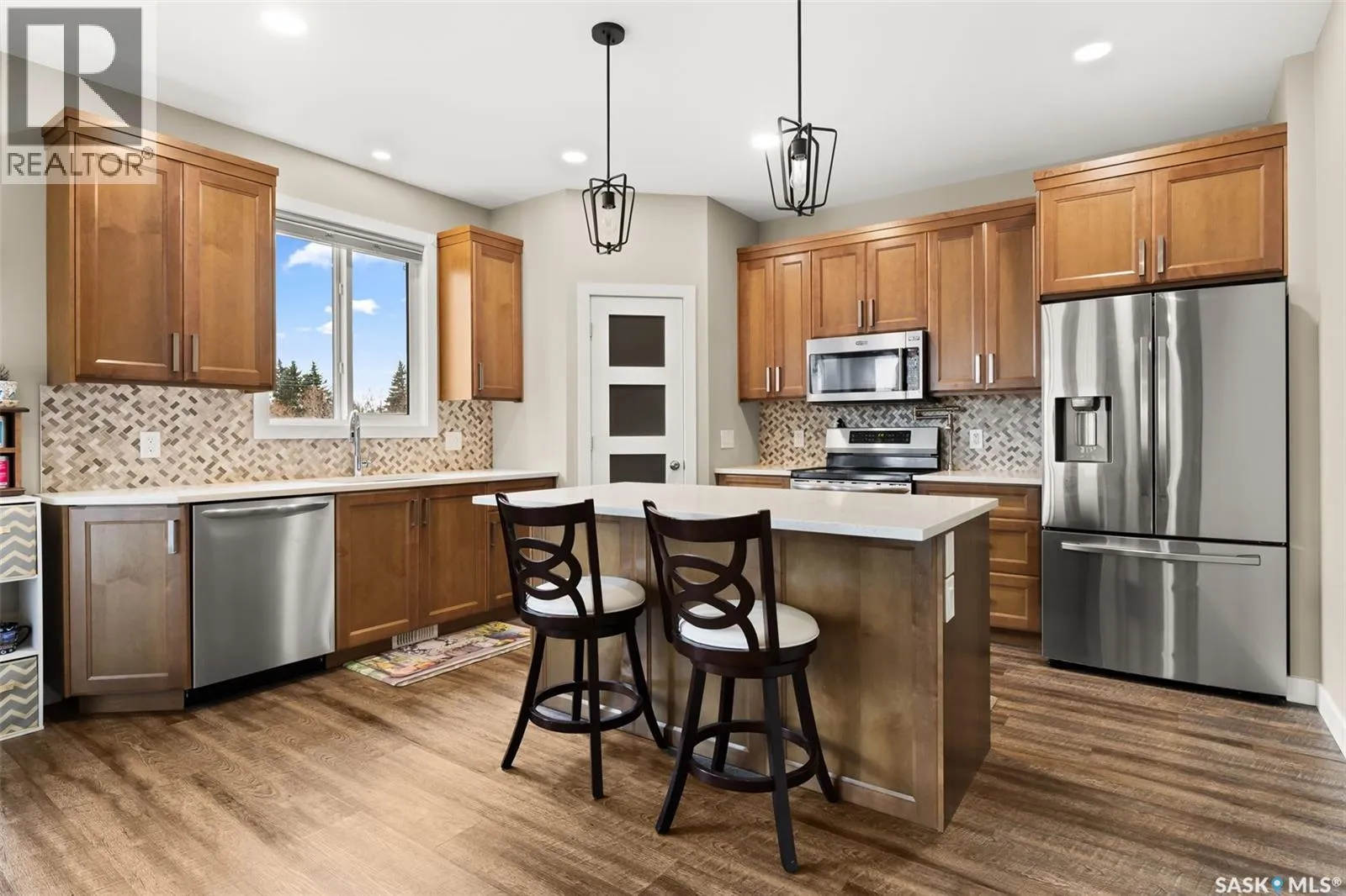 Discover the perfect blend of comfort and function in this spacious 5-bedroom, 3-bathroom family home. Step inside to find a welcoming and open main floor with 9ft ceilings. The sun-filled kitchen features maple cabinetry with stone counters, a stylish backsplash, pot filler, and plenty of drawers and prep space. Down the hall are 2 bedrooms, a 4-piece bathroom and main floor laundry for added convenience. Upstairs, the private and spacious primary suite offers a relaxing escape with a large walk-in closet and 5-piece ensuite with two sinks. The fully finished basement expands your living space with a cozy gas fireplace with custom mantle, perfect for movie nights or family gatherings. Here you will find 2 additional bedrooms ideal for guests or an at-home office. Outside, the yard is completely finished and offers a low maintenance fence, raised garden beds with underground sprinklers, a patio and covered deck. Enjoy the convenience of an attached and heated 24âx 24â garage and Govee permanent lighting that adds a touch of charm year-round. With no back neighbours this is a wonderful opportunity for those seeking space, quality, and privacy, all in one exceptional home. (id:27476)