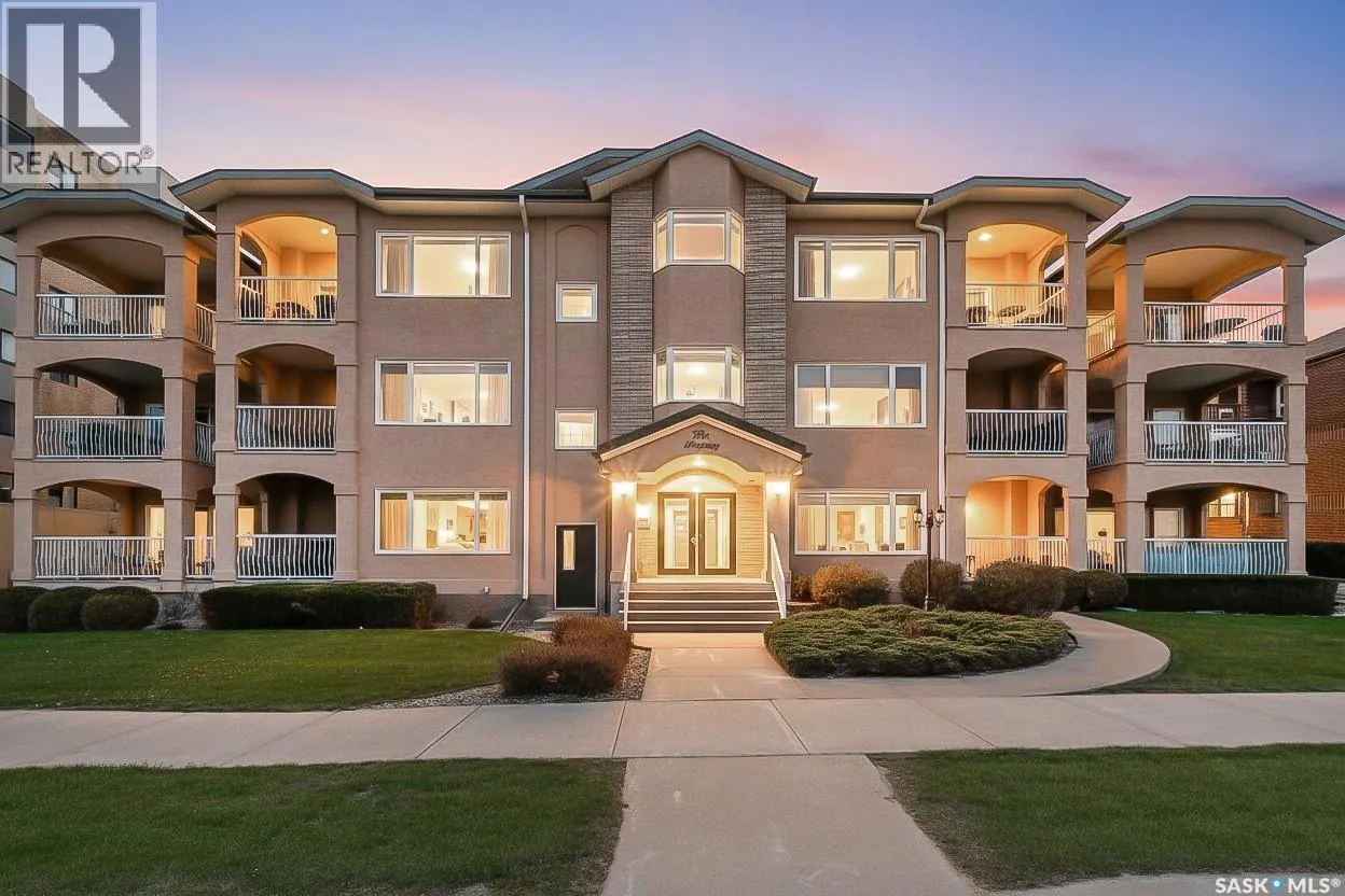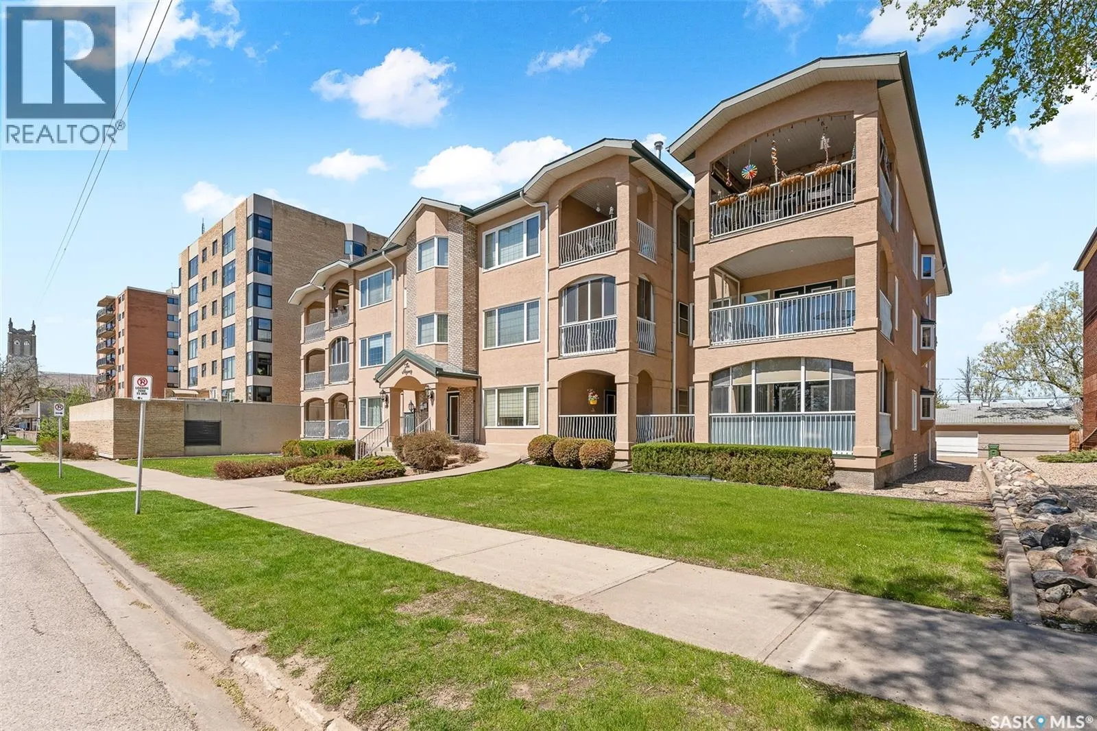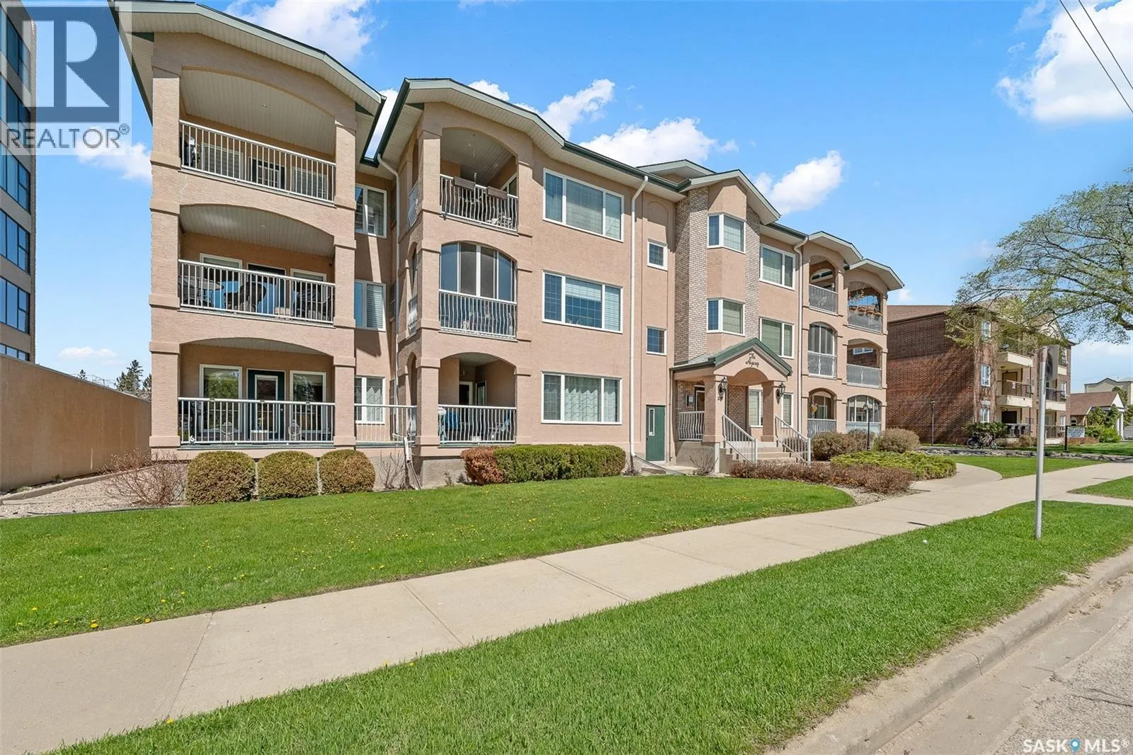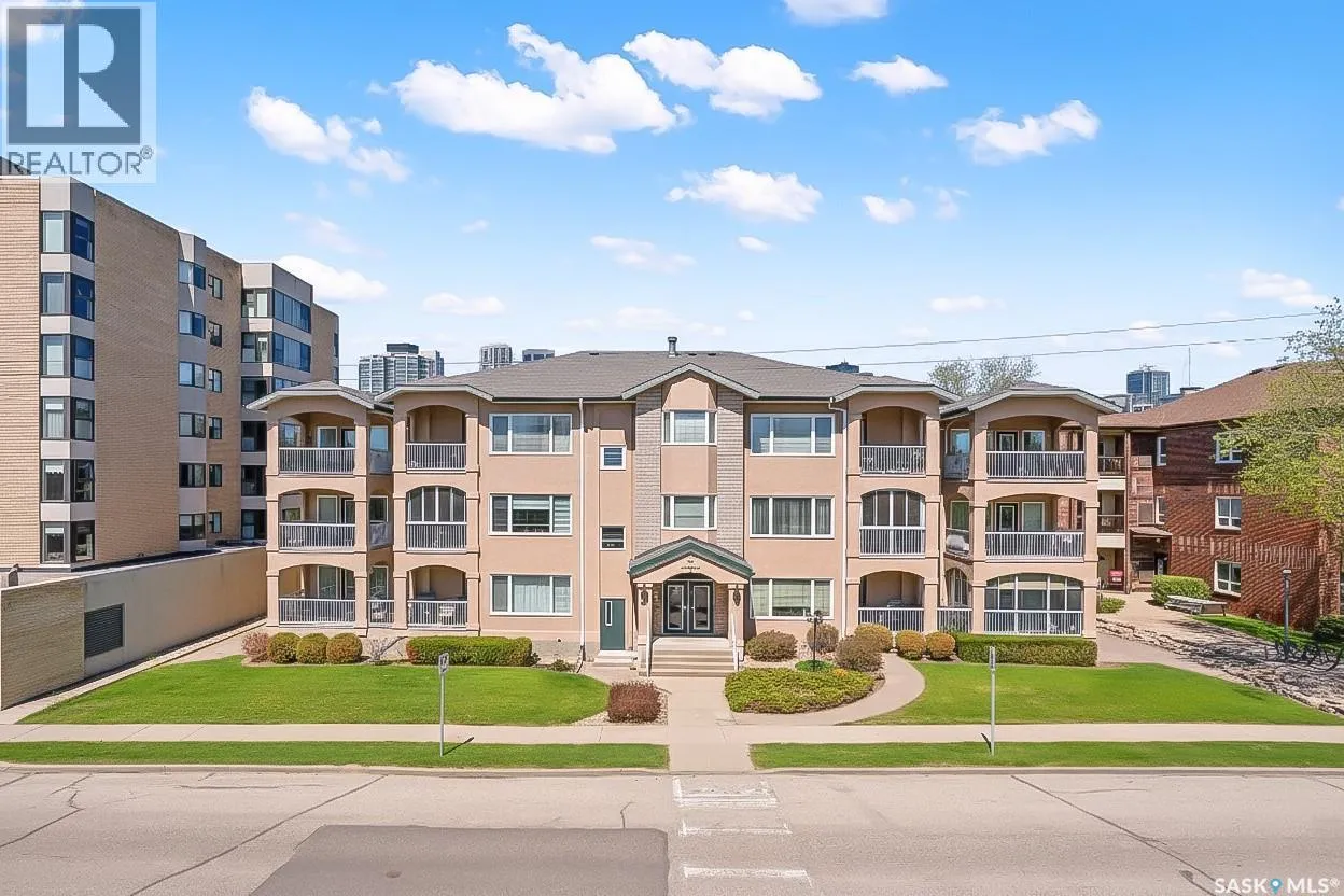 Condo living at its finest...."The Regency" is located across from Crescent Park & close to downtown amenities. A large foyer welcomes you into this comfortable "open concept" custom floor design. Efficiently styled kitchen featuring an abundance of white cabinetry with under cabinet lighting, counter space and pantry... plus, an adjoining dining area large enough for family gatherings. The spacious living room has garden doors leading to your private covered balcony for fair weather entertaining. The in-suite laundry room with a washer and dryer has extra storage space and cabinetry. An oversized bedroom has 2 large closets and is big enough to accommodate 2 beds. The large renovated 3pc bathroom has a stunning tile shower. A personal storage locker is included in the basement. There is 1 underground heated parking stall plus off-street parking for guests. New water heater installed March 2025. This custom designed condo development is wheelchair accessible, has security doors and an elevator for your convenience and comfort. Enjoy a carefree lifestyle. Come have a peek at your next home!! SOME PHOTOS ARE VIRTUALLY STAGED. (id:27476)