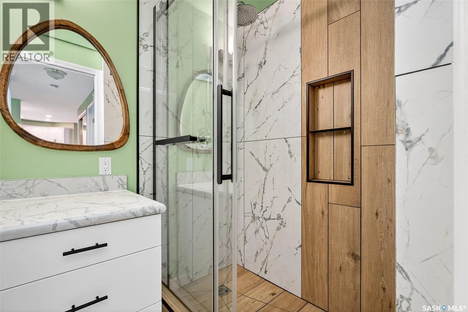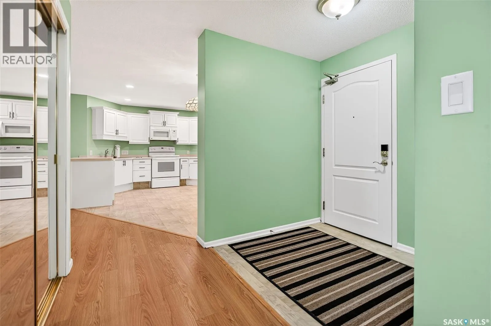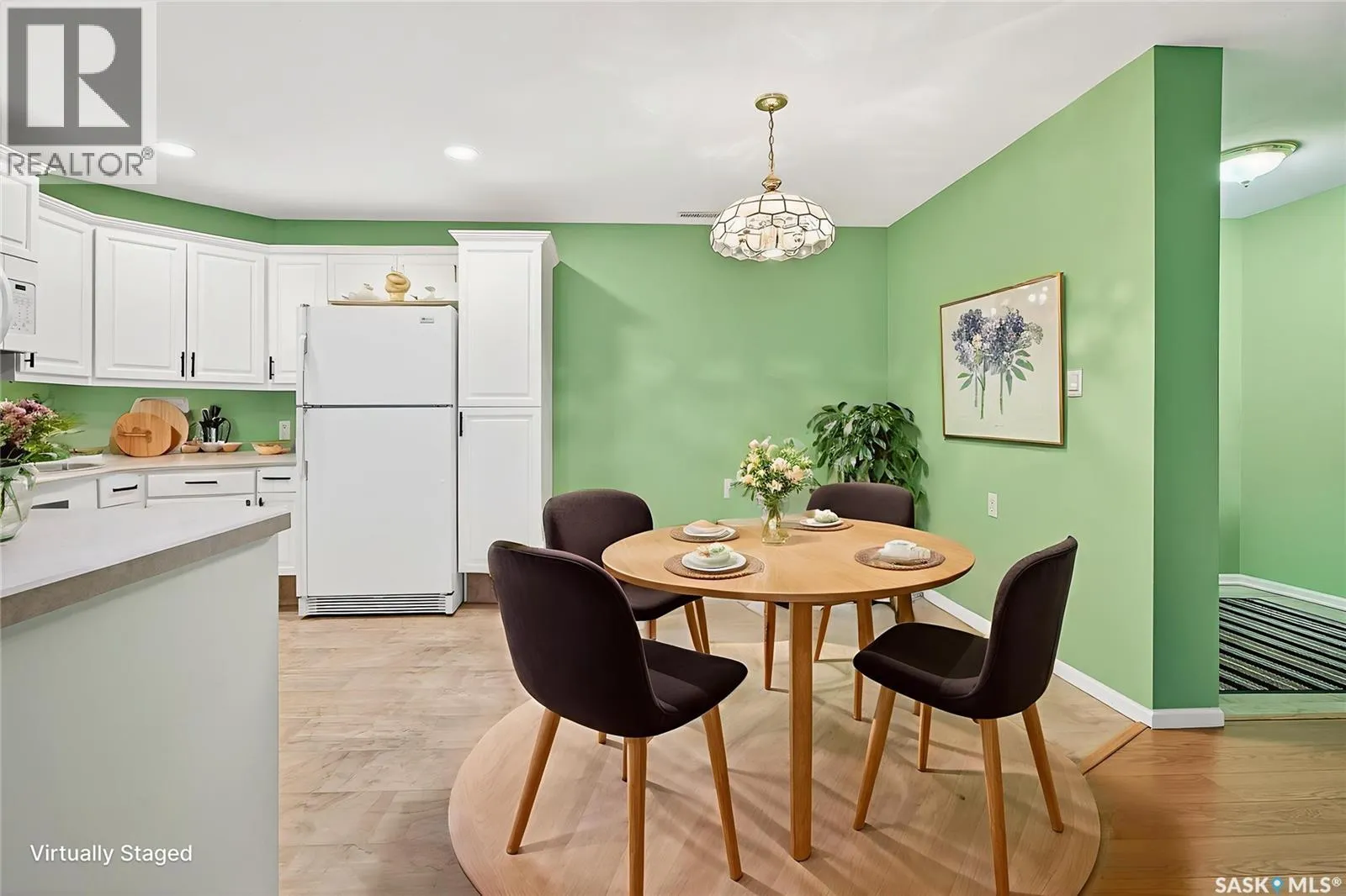 Condo living at its finest...."The Regency" is located across from Crescent Park & close to downtown amenities. A large foyer welcomes you into this comfortable "open concept" custom floor design. Efficiently styled kitchen featuring an abundance of white cabinetry with under cabinet lighting, counter space and pantry... plus, an adjoining dining area large enough for family gatherings. The spacious living room has garden doors leading to your private covered balcony for fair weather entertaining. The in-suite laundry room with a washer and dryer has extra storage space and cabinetry. An oversized bedroom has 2 large closets and is big enough to accommodate 2 beds. The large renovated 3pc bathroom has a stunning tile shower. A personal storage locker is included in the basement. There is 1 underground heated parking stall plus off-street parking for guests. New water heater installed March 2025. This custom designed condo development is wheelchair accessible, has security doors and an elevator for your convenience and comfort. Enjoy a carefree lifestyle. Come have a peek at your next home!! SOME PHOTOS ARE VIRTUALLY STAGED. (id:27476)