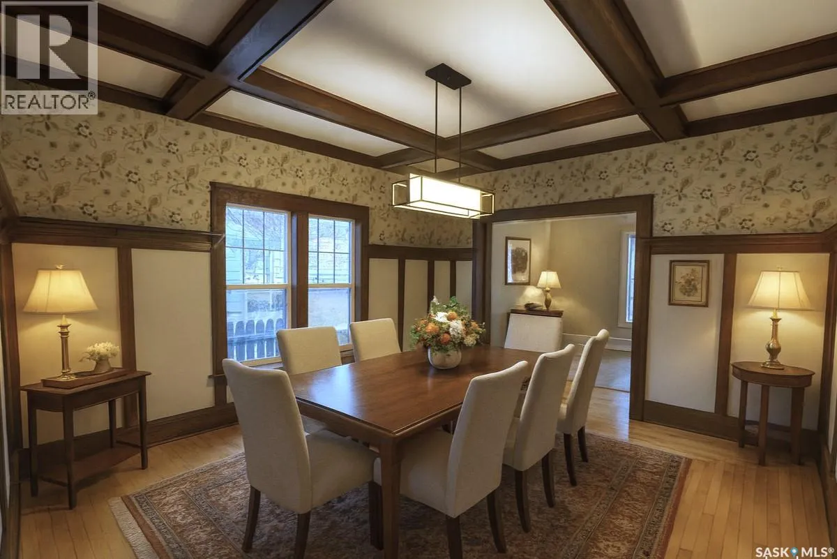 For more information, please click the "More Information" button. Welcome to this beautifully renovated 5-bedroom, 2-bath character home in the Avenues, where timeless craftsmanship meets modern comfort. The inviting living room features an original decorative (non-functional) fireplace that adds charm, while the dining area showcases wood beams and a coffered ceiling, highlighting the homeâs heritage appeal. Refinished hardwood floors flow throughout, and the updated kitchen offers quartz countertops, new cabinetry, and a bright, functional layout. Upstairs are four spacious bedrooms and a fully updated 4-piece bathroom, and the third floor provides a large primary suite with ensuite or flexible useâideal as a family room, home office, or creative space. In 2025, full-height, engineered concrete basement walls were poured and city-inspected, creating a solid foundation and ready-to-develop area; additional upgrades include newer vinyl windows, siding, shingles, and a 2020 high-efficiency furnace with 200-amp service. The backyard offers off-street parking for two vehicles, adding everyday convenience. Located in a quiet, established neighbourhood close to both elementary and post-secondary schools and everyday amenities, this is a rare opportunity to own a beautifully restored character home that combines heritage charm with structural integrity, modern updates, and ample space to call home. (id:27476)